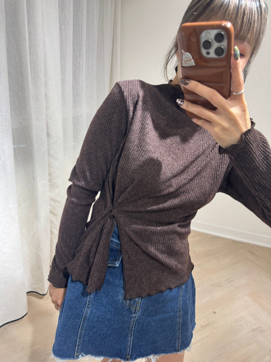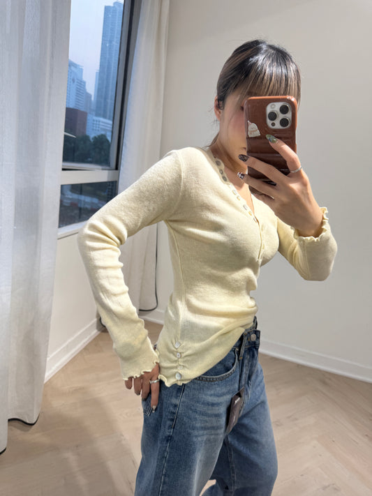 皺褶木耳顯瘦彈性上衣 ( 黃/灰 )