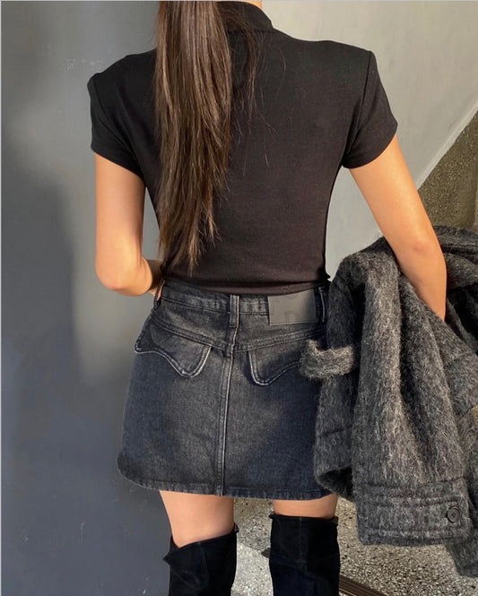深藍色高腰牛仔裙褲 ( S/M/L )