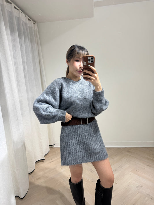 連皮帶冷線連衣裙 ( 灰/米白/啡 )