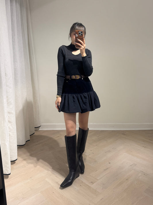 麂料併太空棉傘形短裙 ( 深藍/墨綠 )