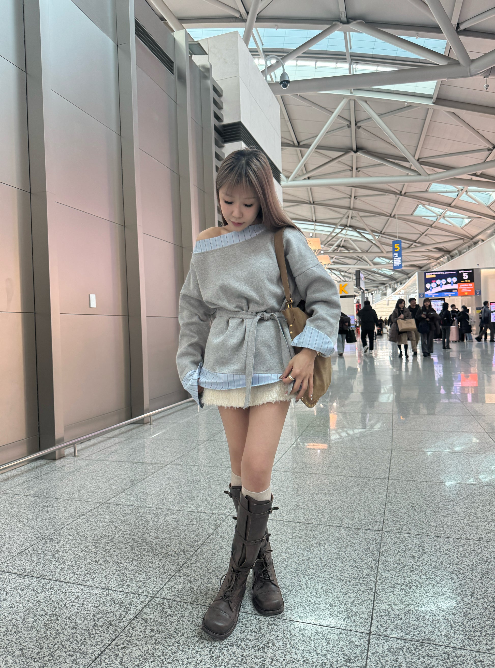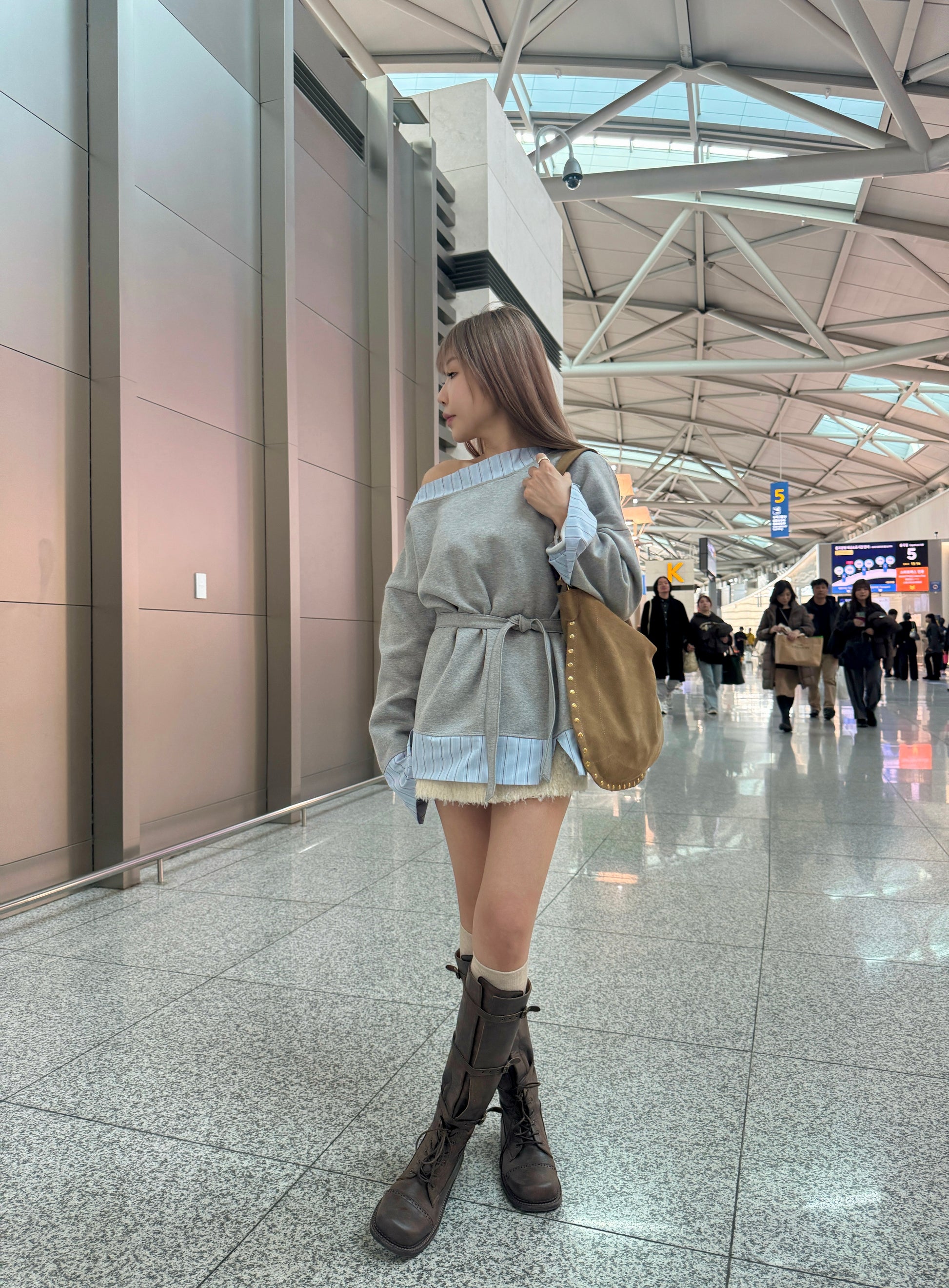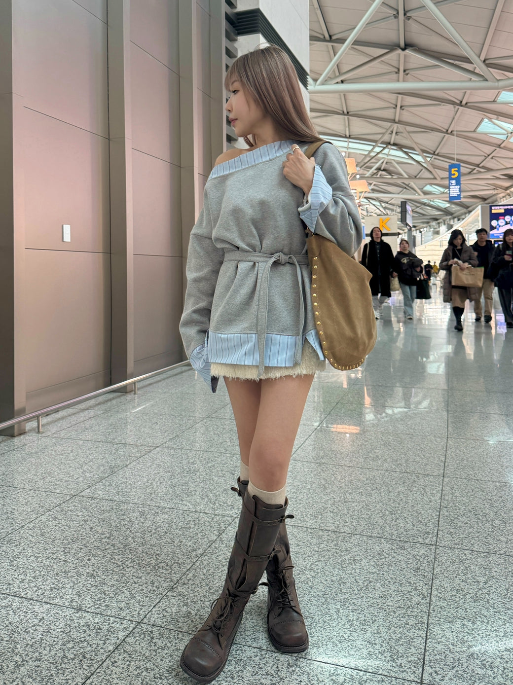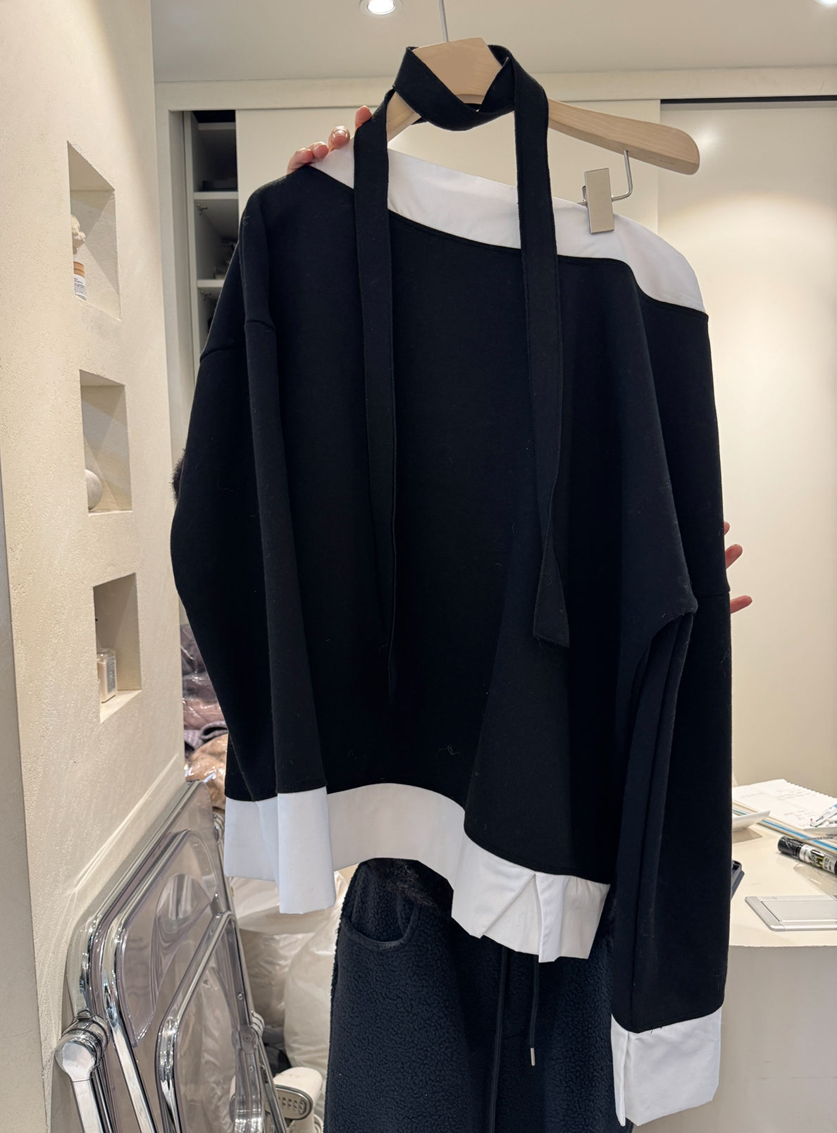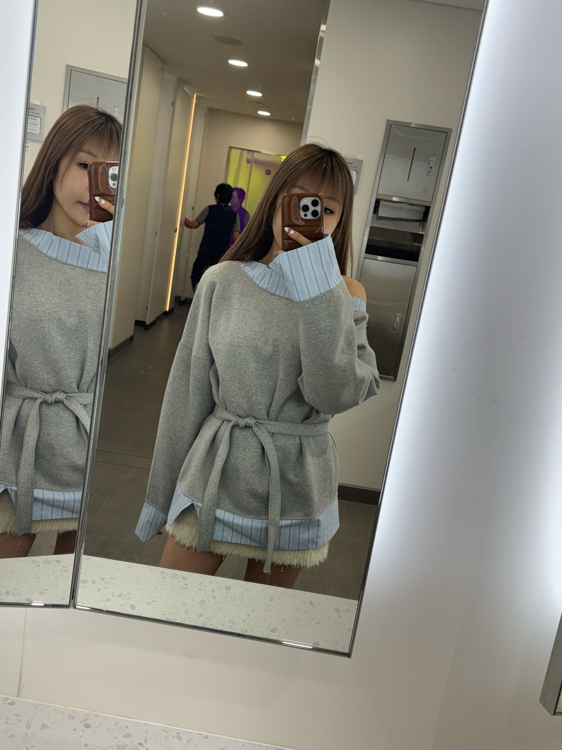 併恤衫邊綁帶衛衣 ( 黑/灰 )