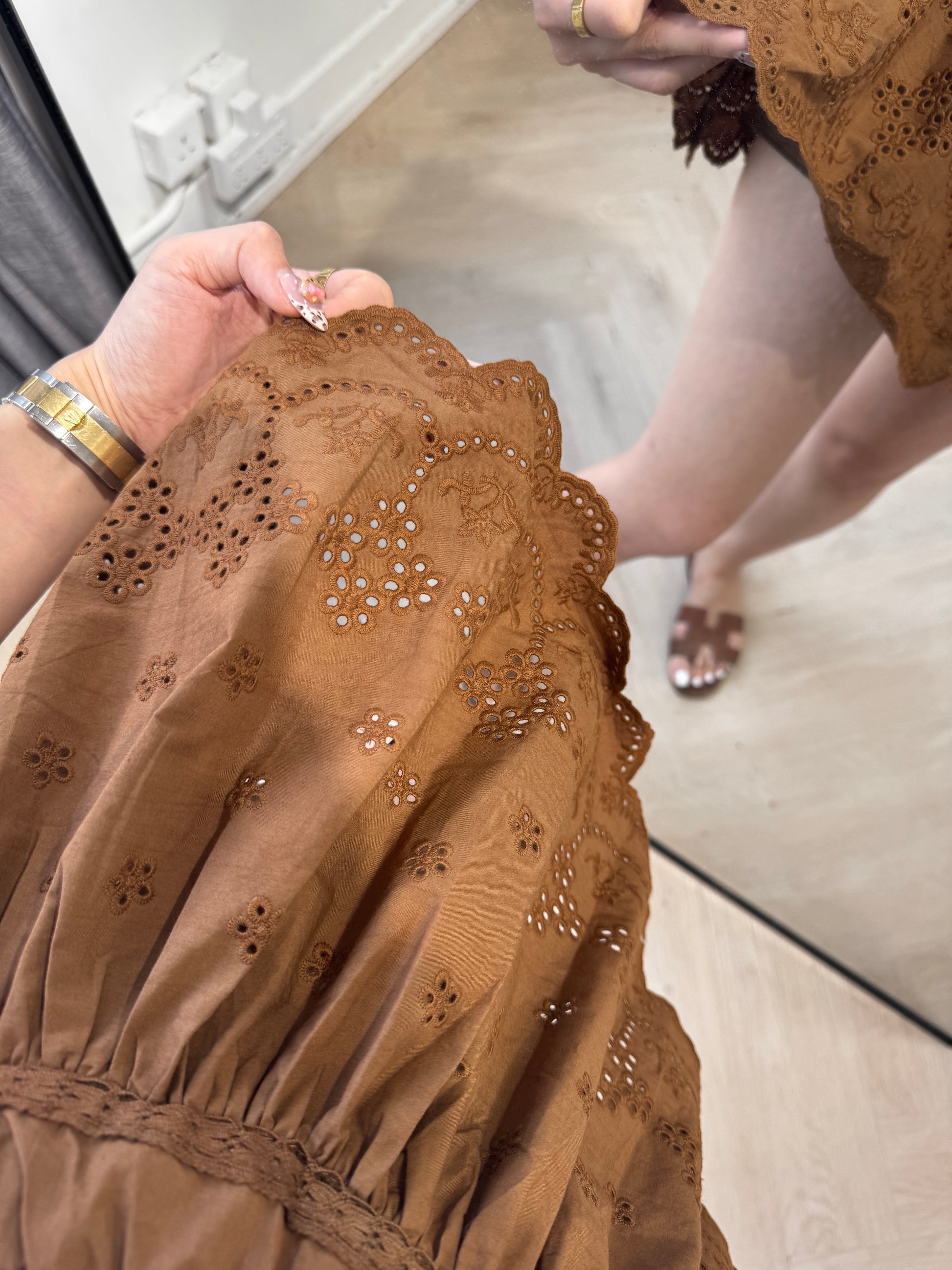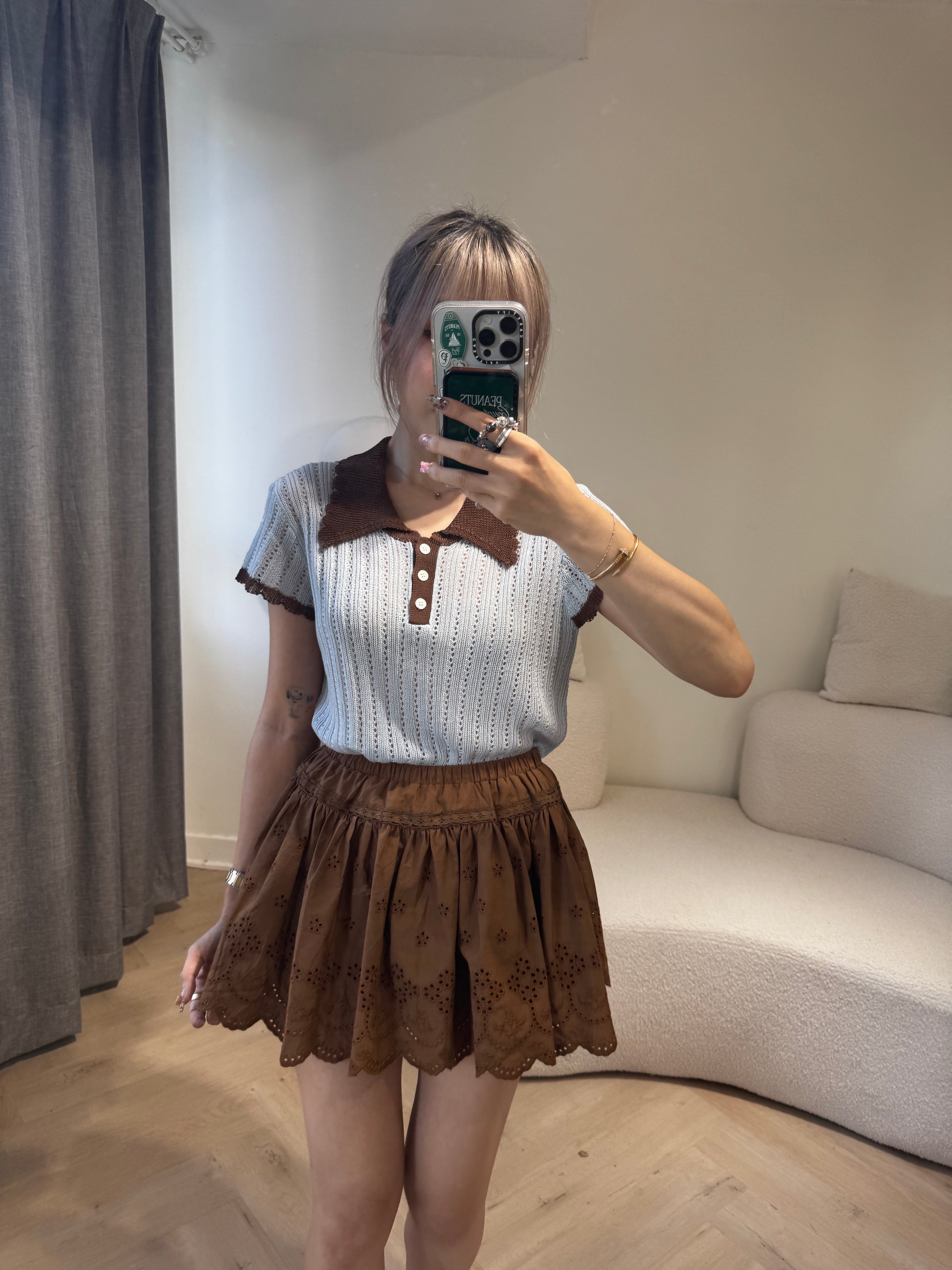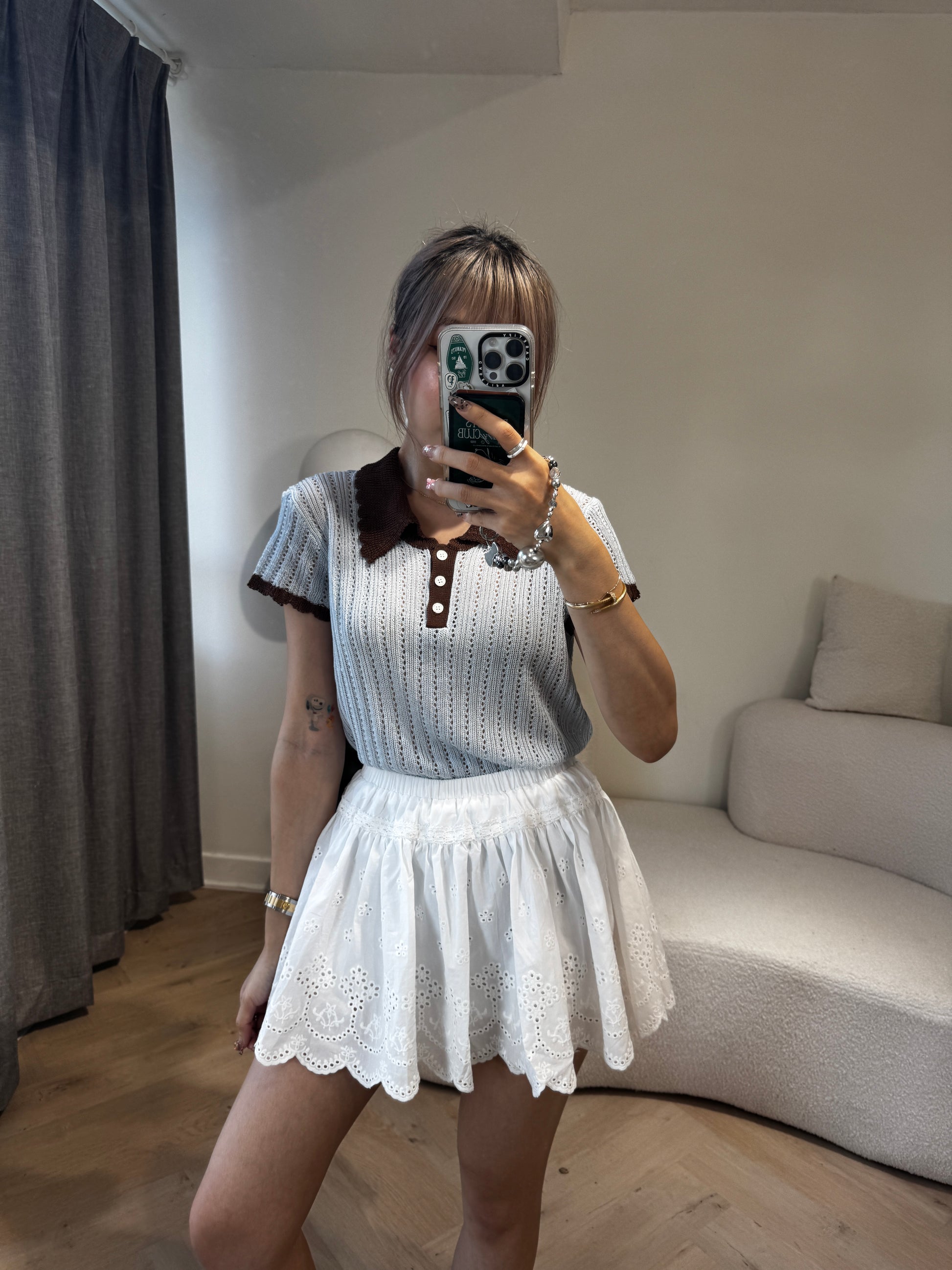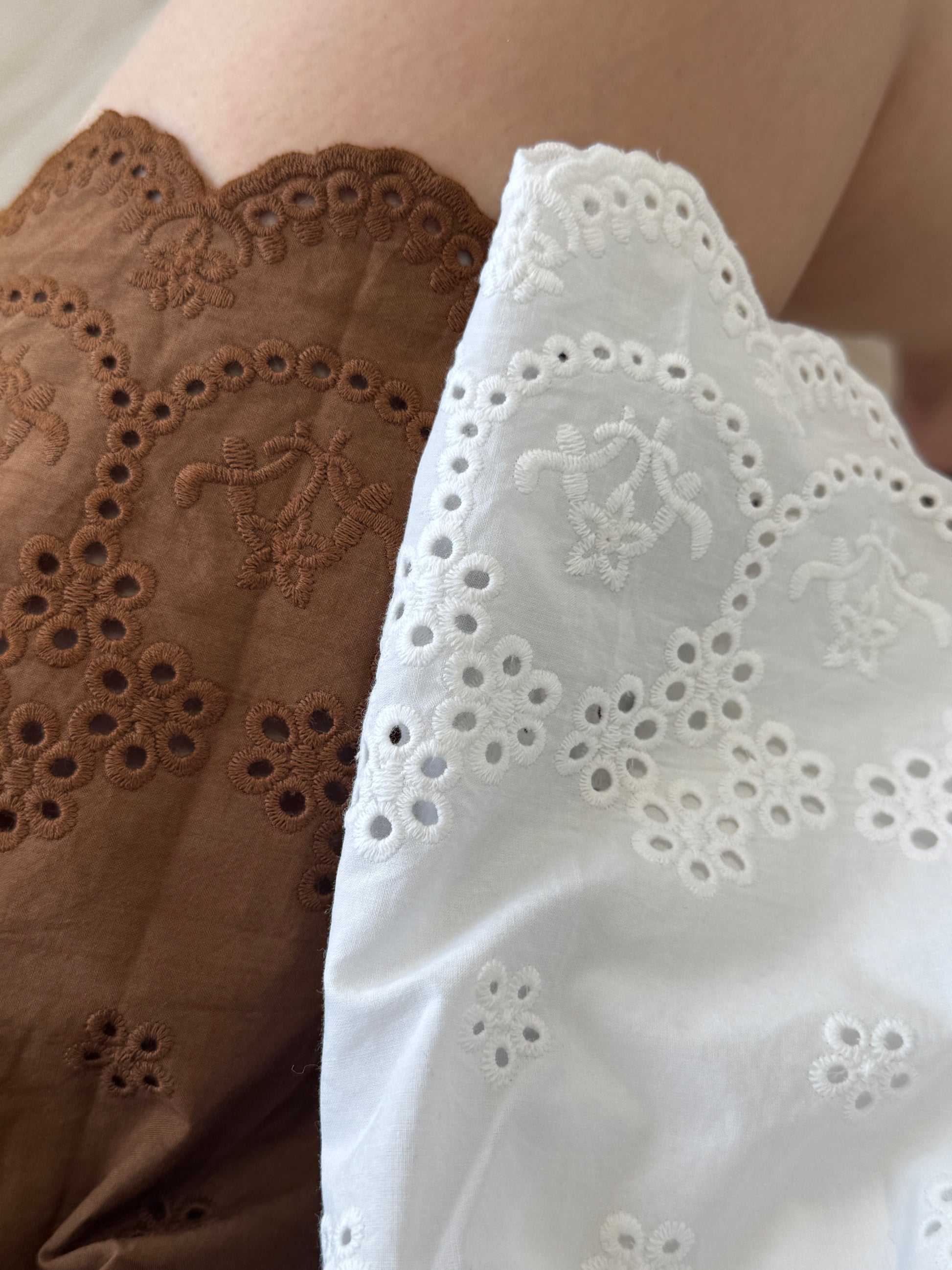 勾花波浪邊短裙 ( 白/啡 )