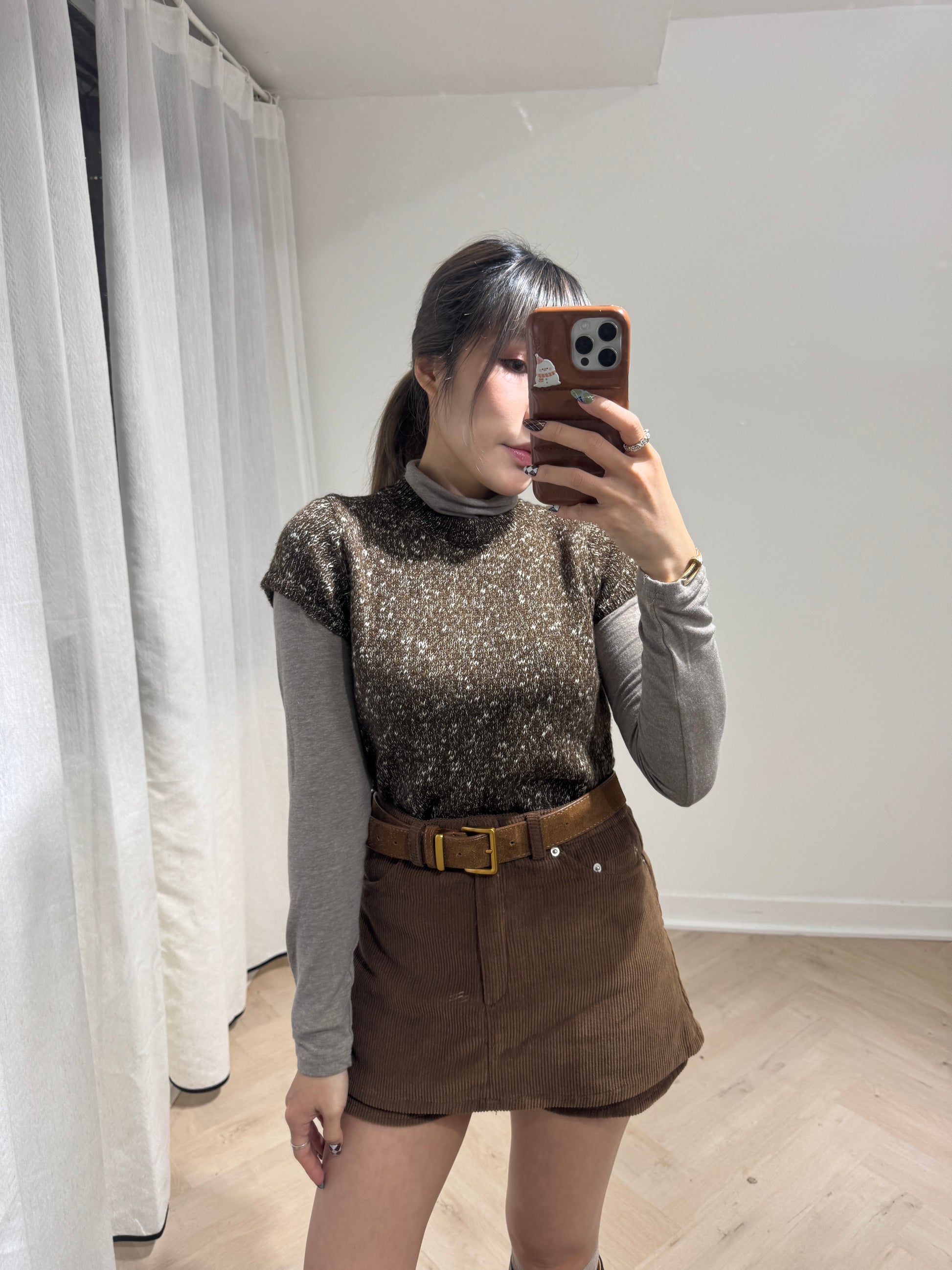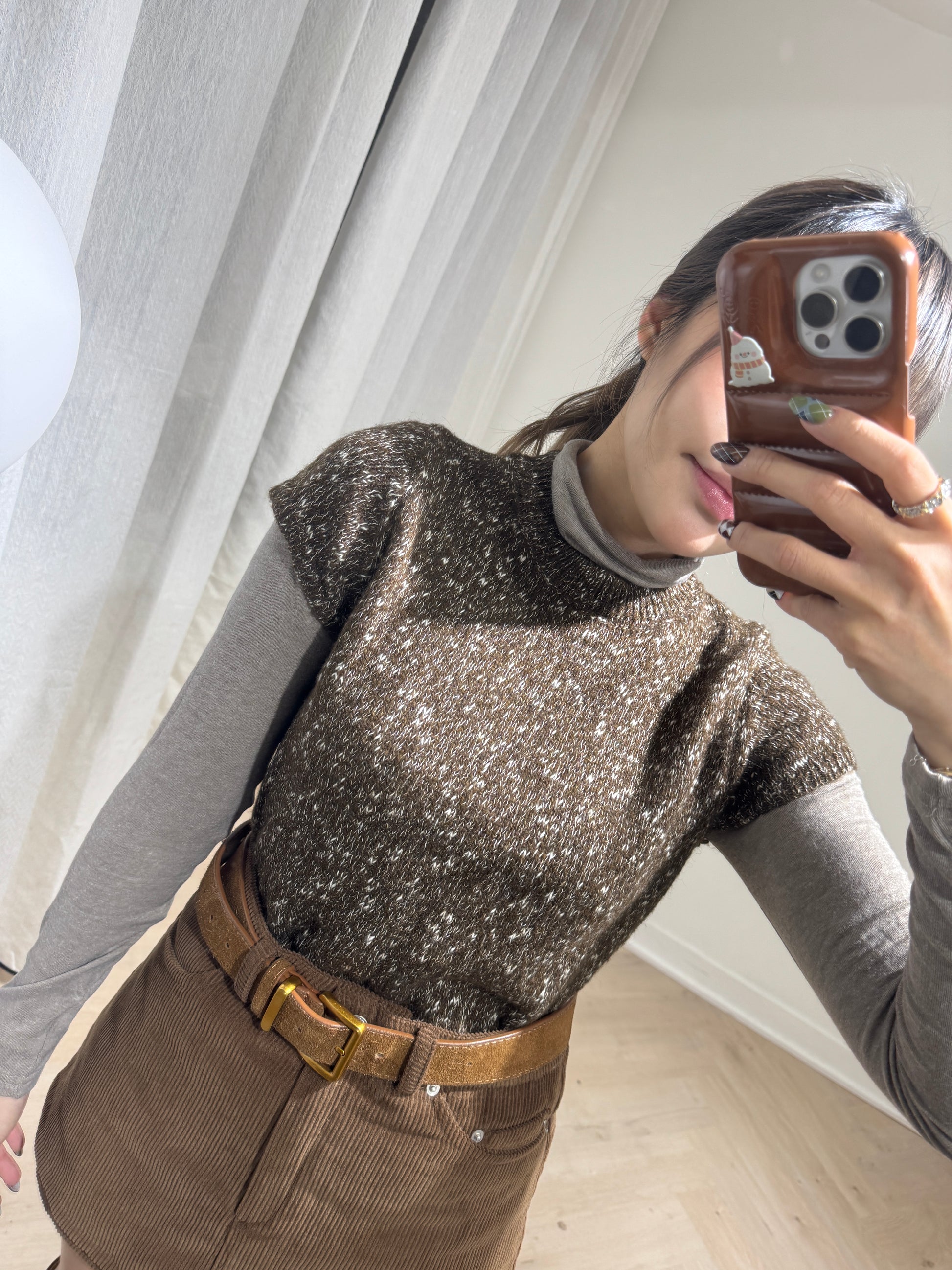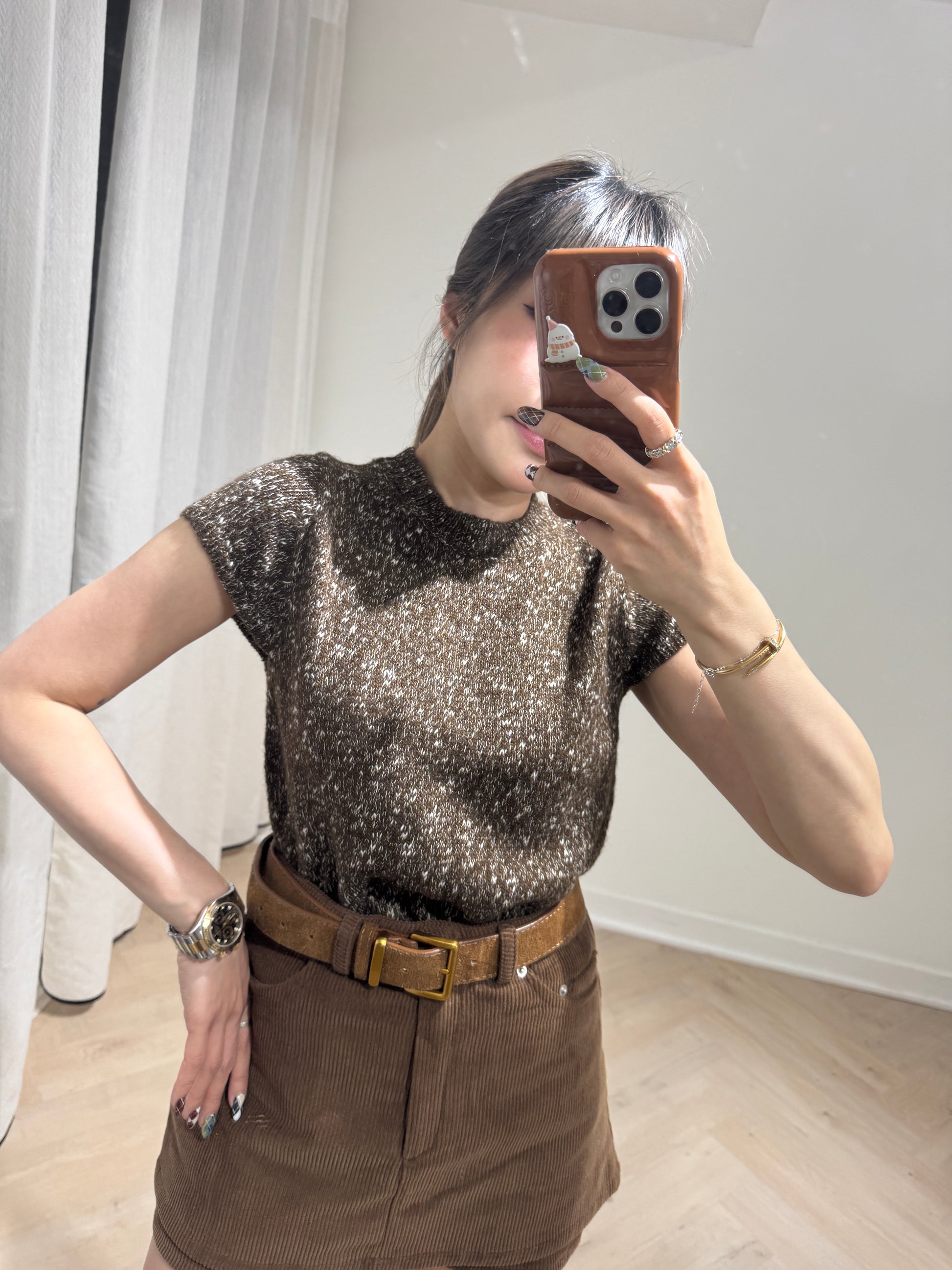 啡色混線短袖上衣