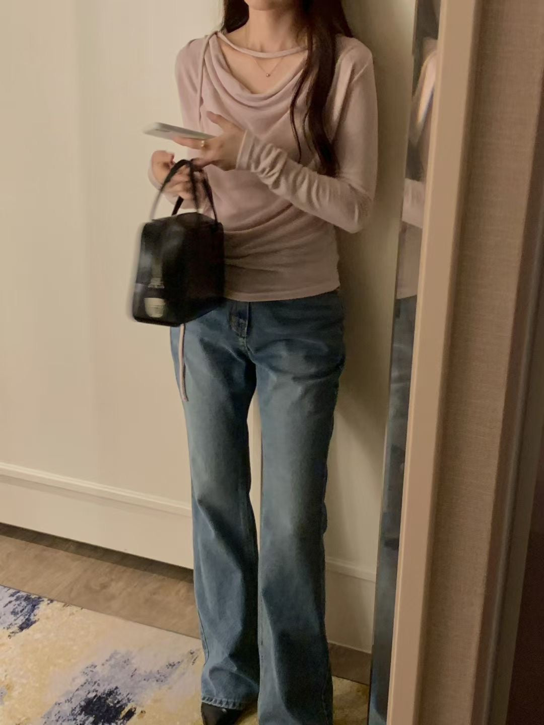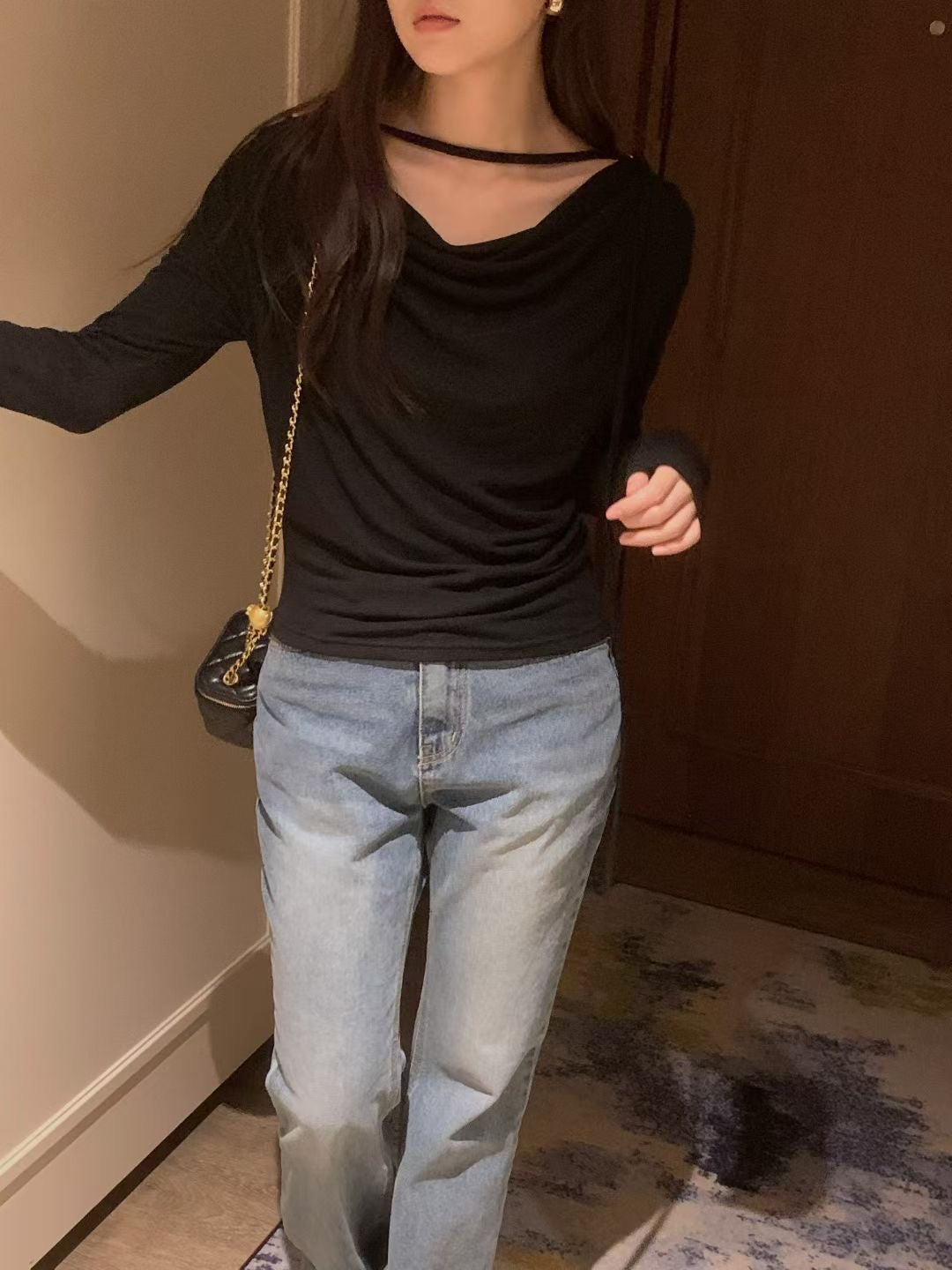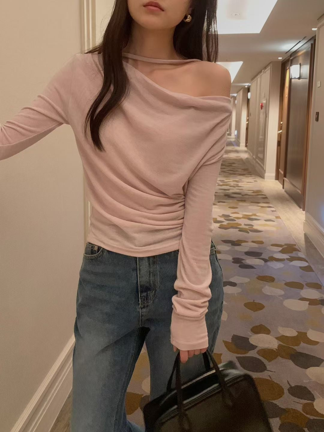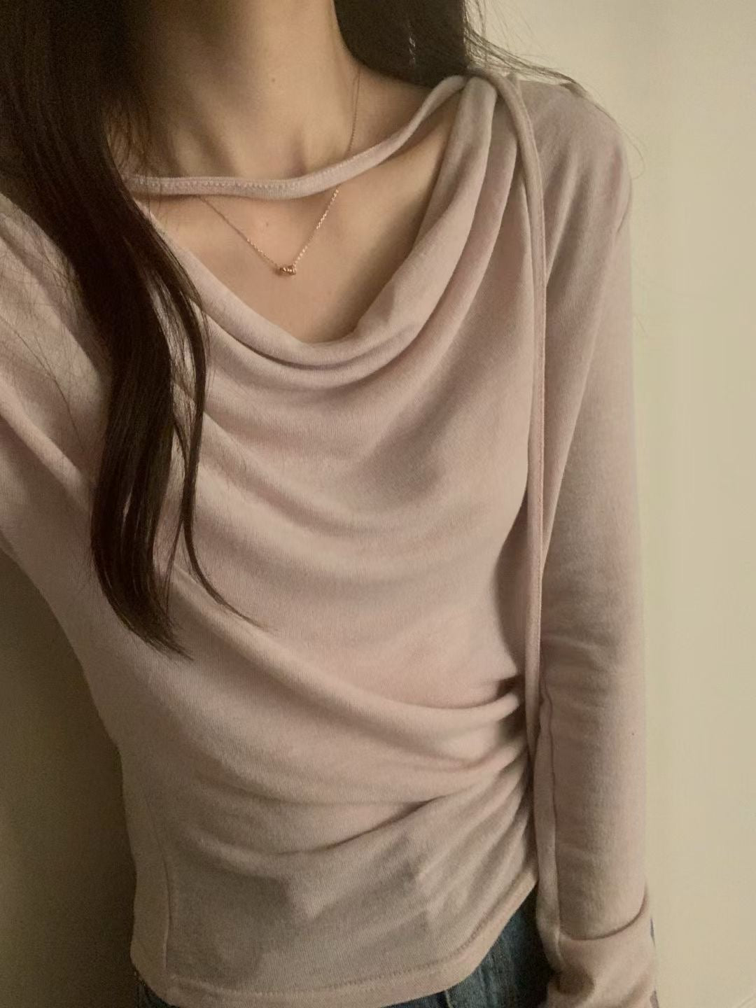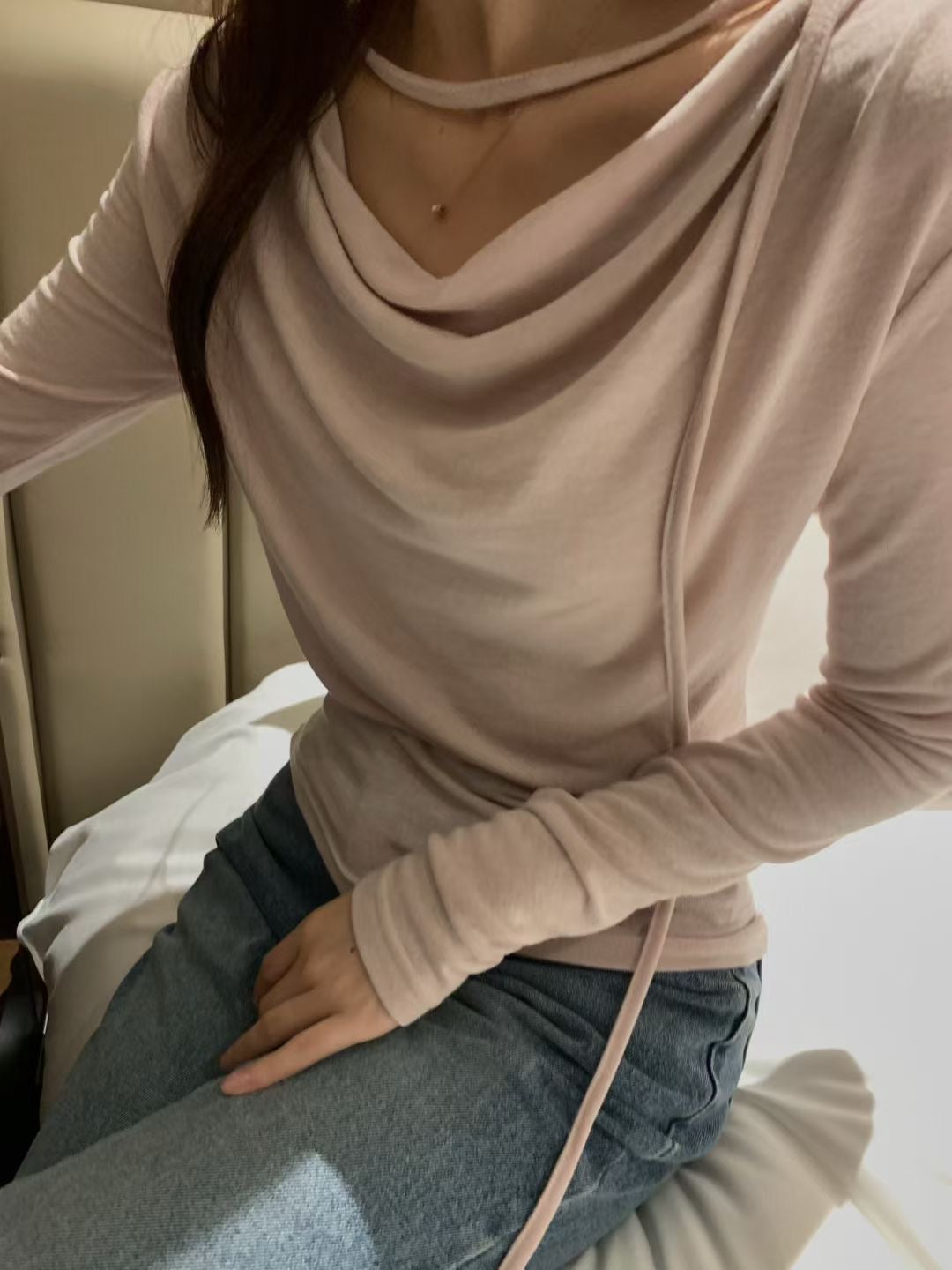 垂領幼繩彈性上衣 ( 黑/白/粉/深灰 )