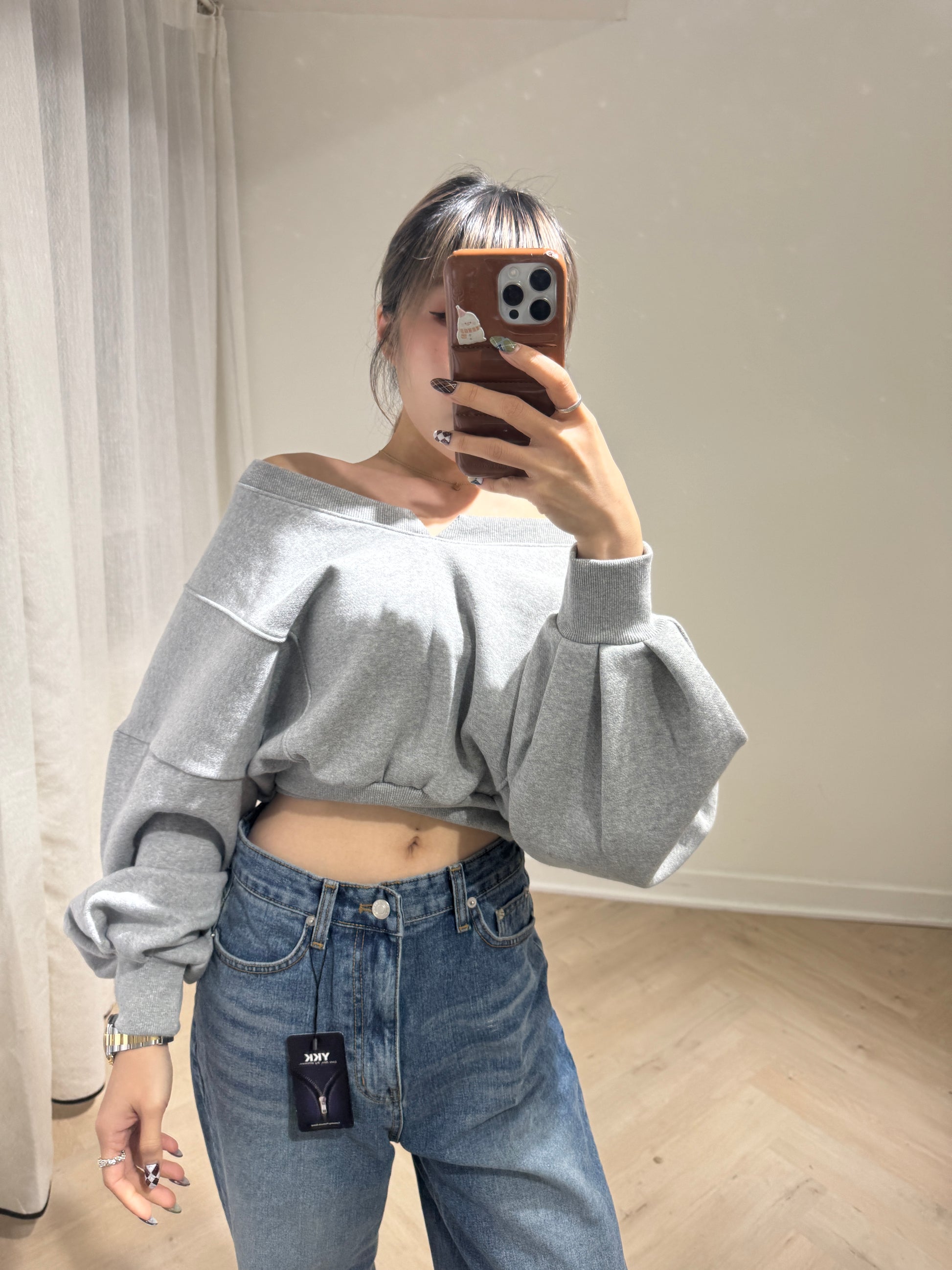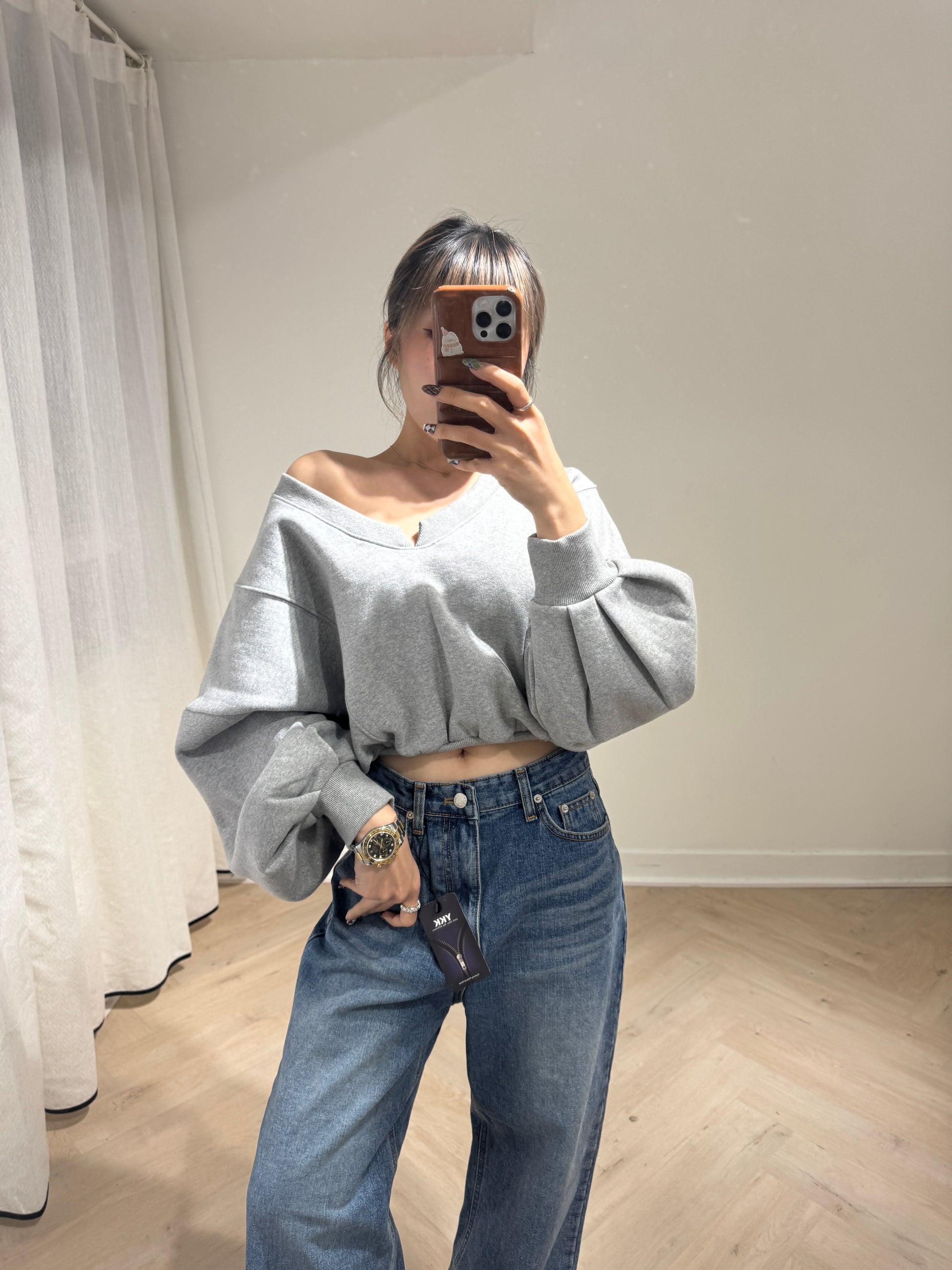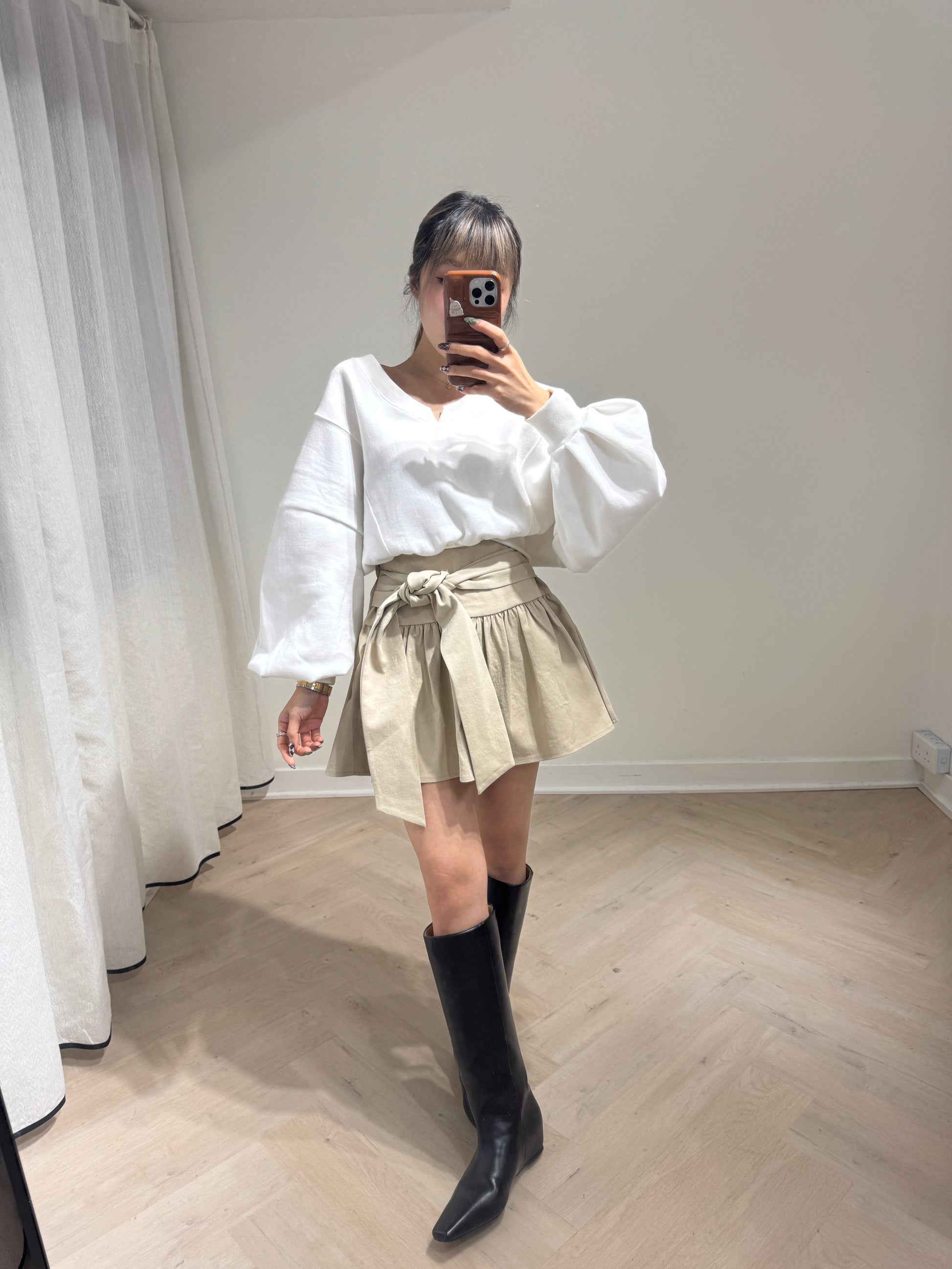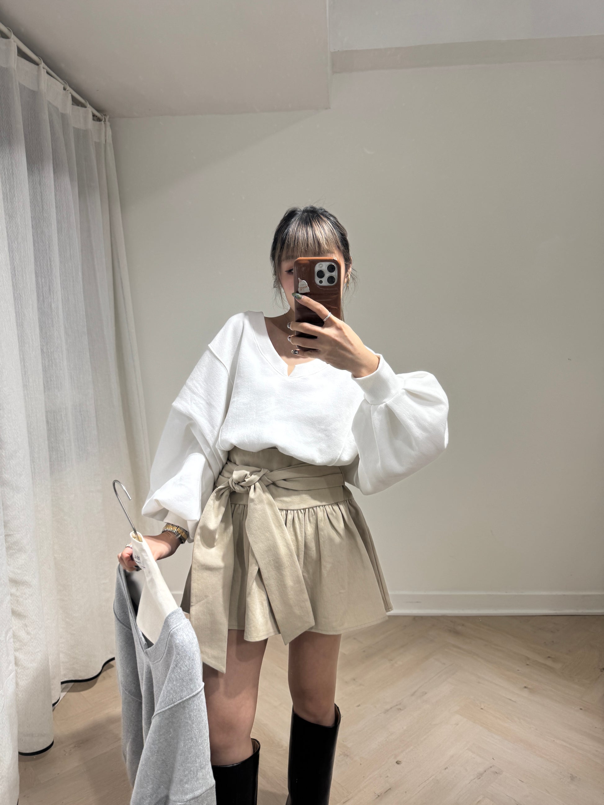 大領束腰衛衣款上衣 ( 黑/白/灰 )