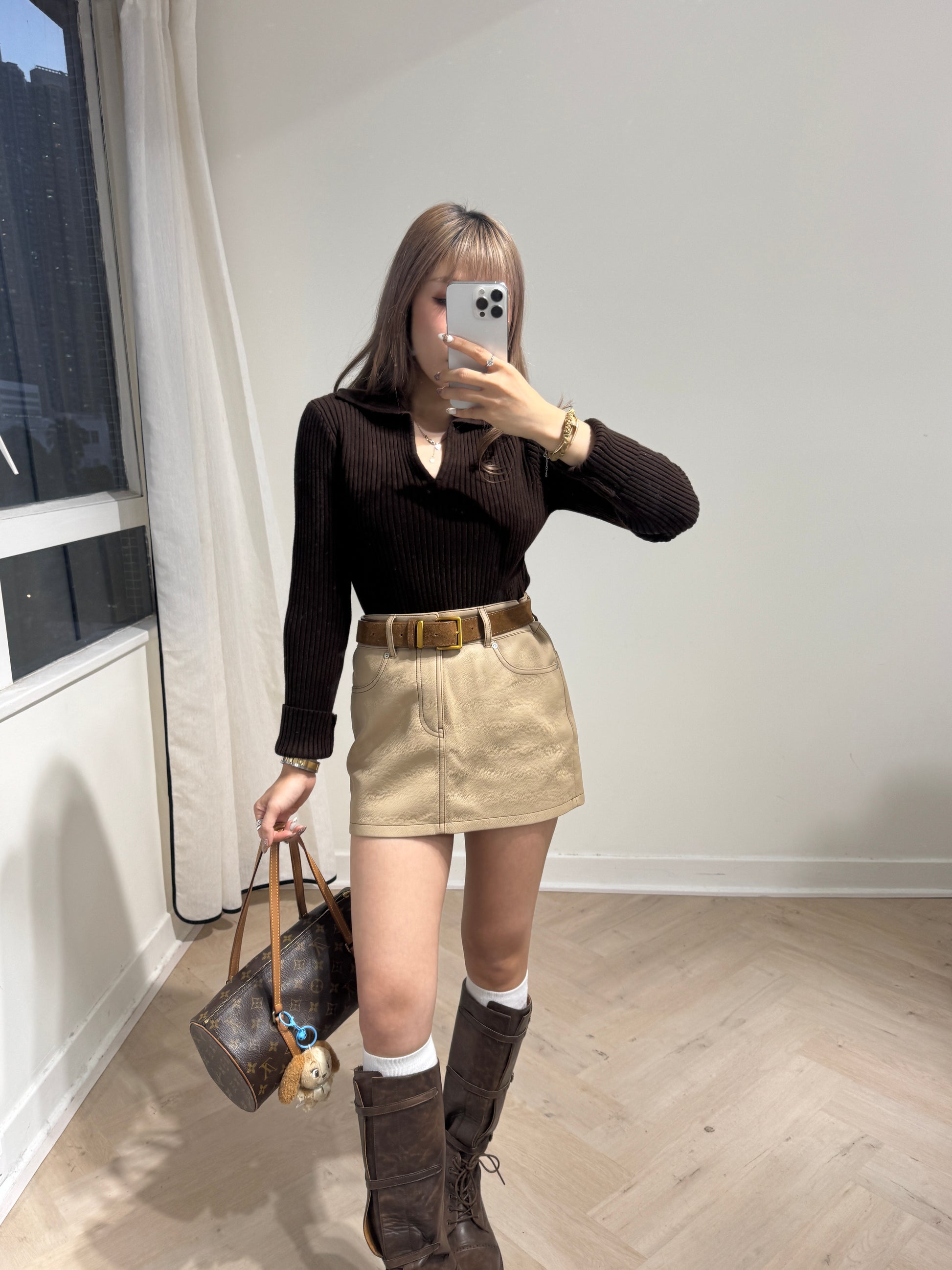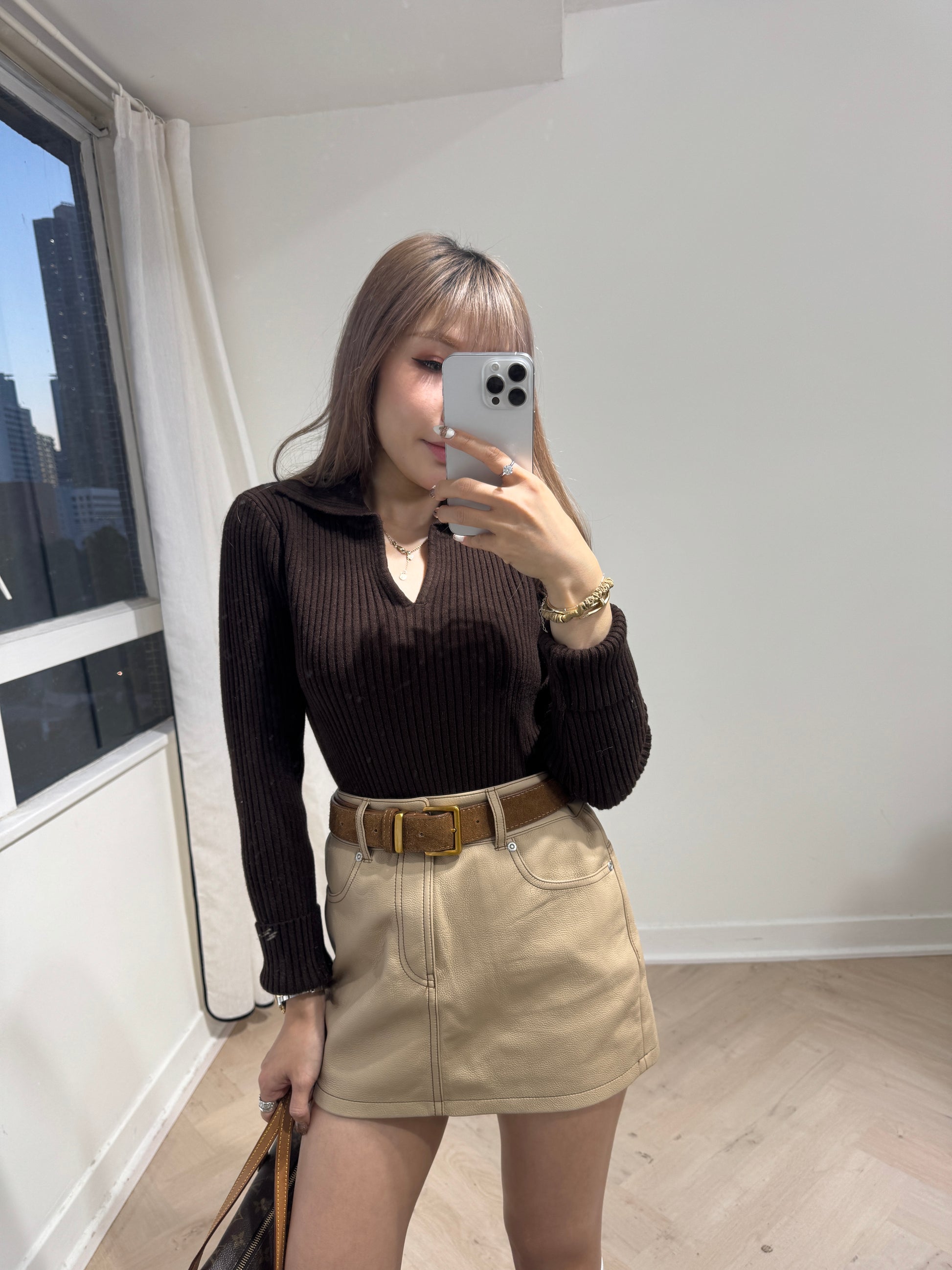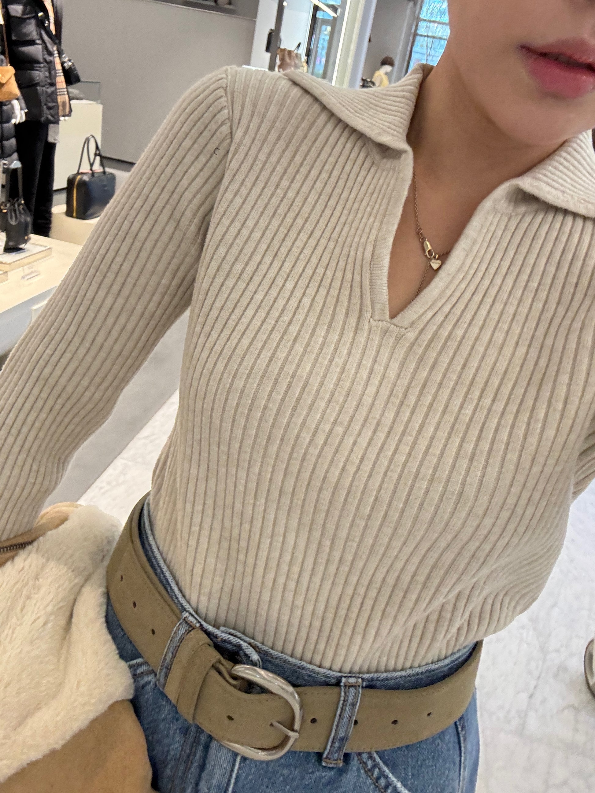暗直紋POLO上衣 ( 米杏/深啡/深灰 )