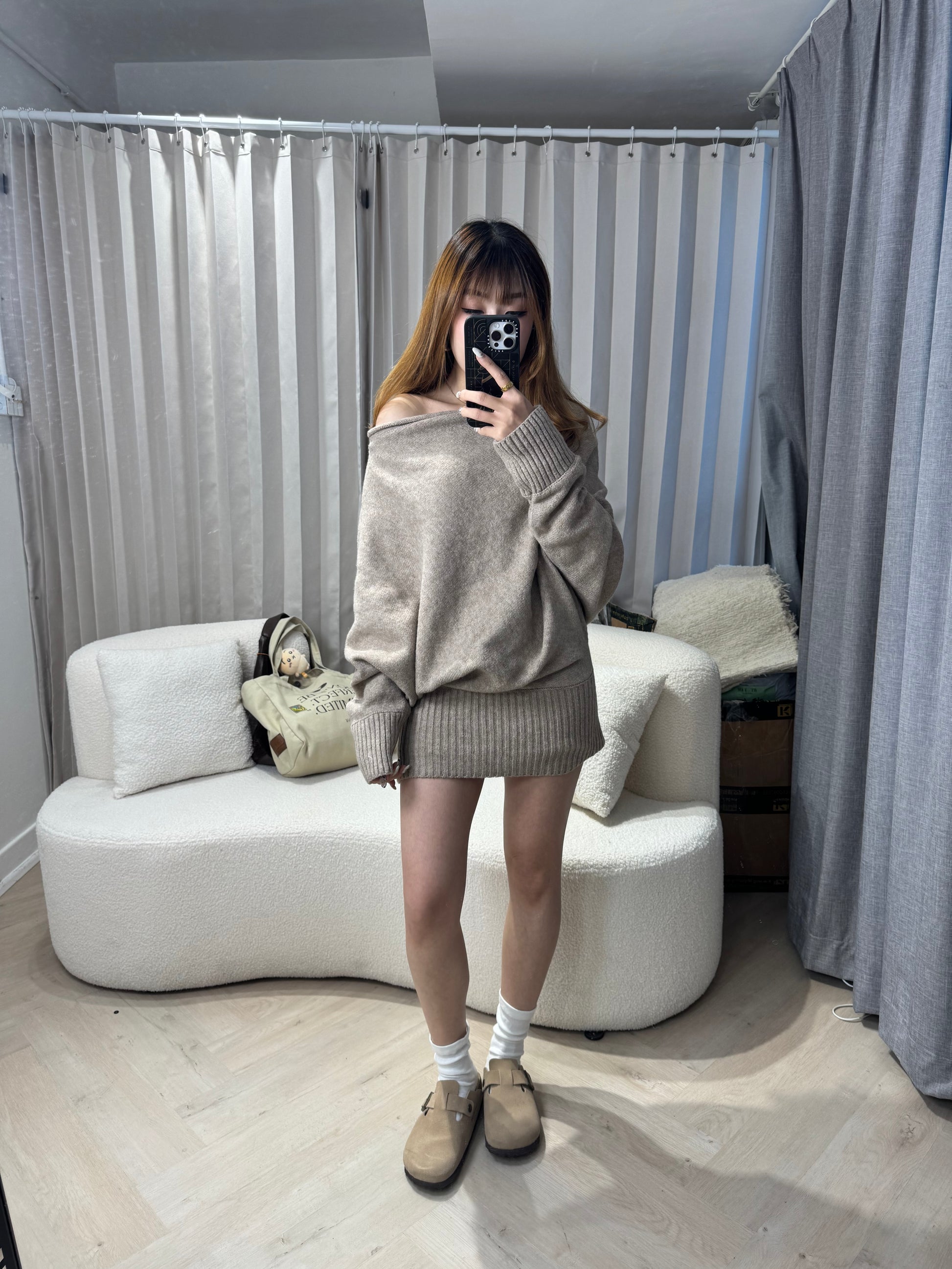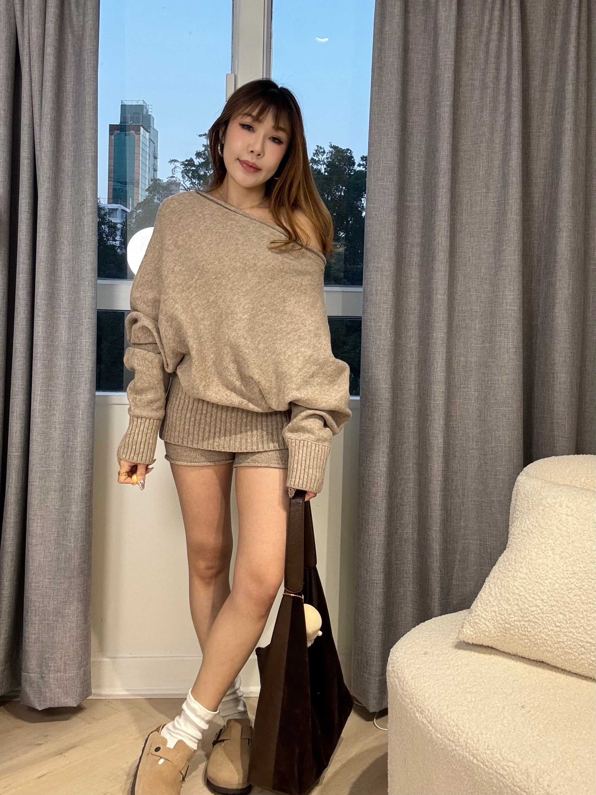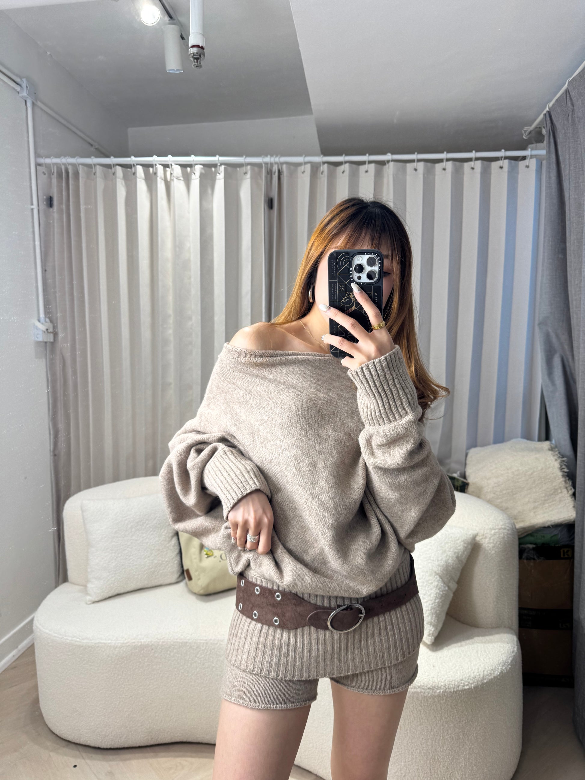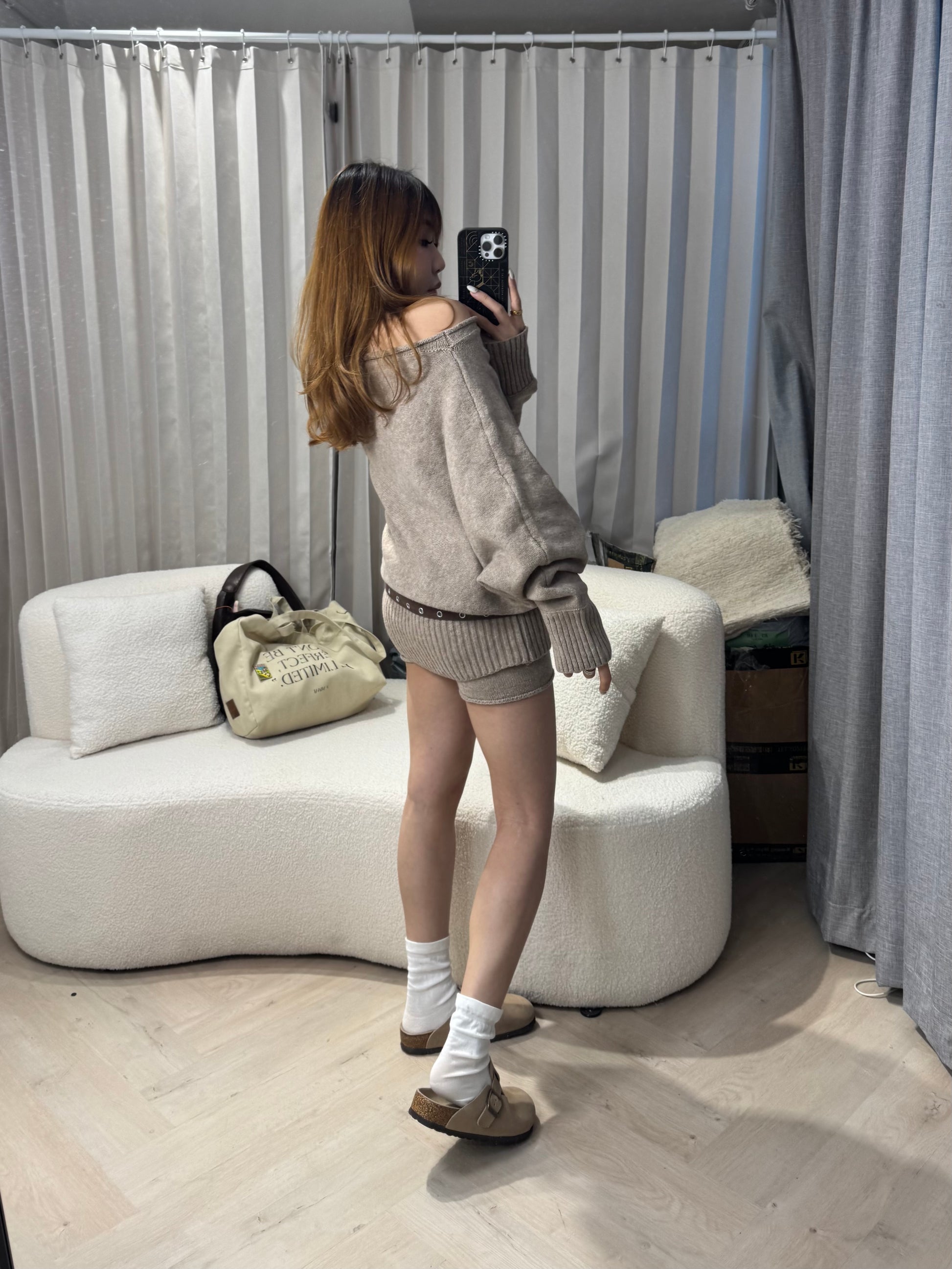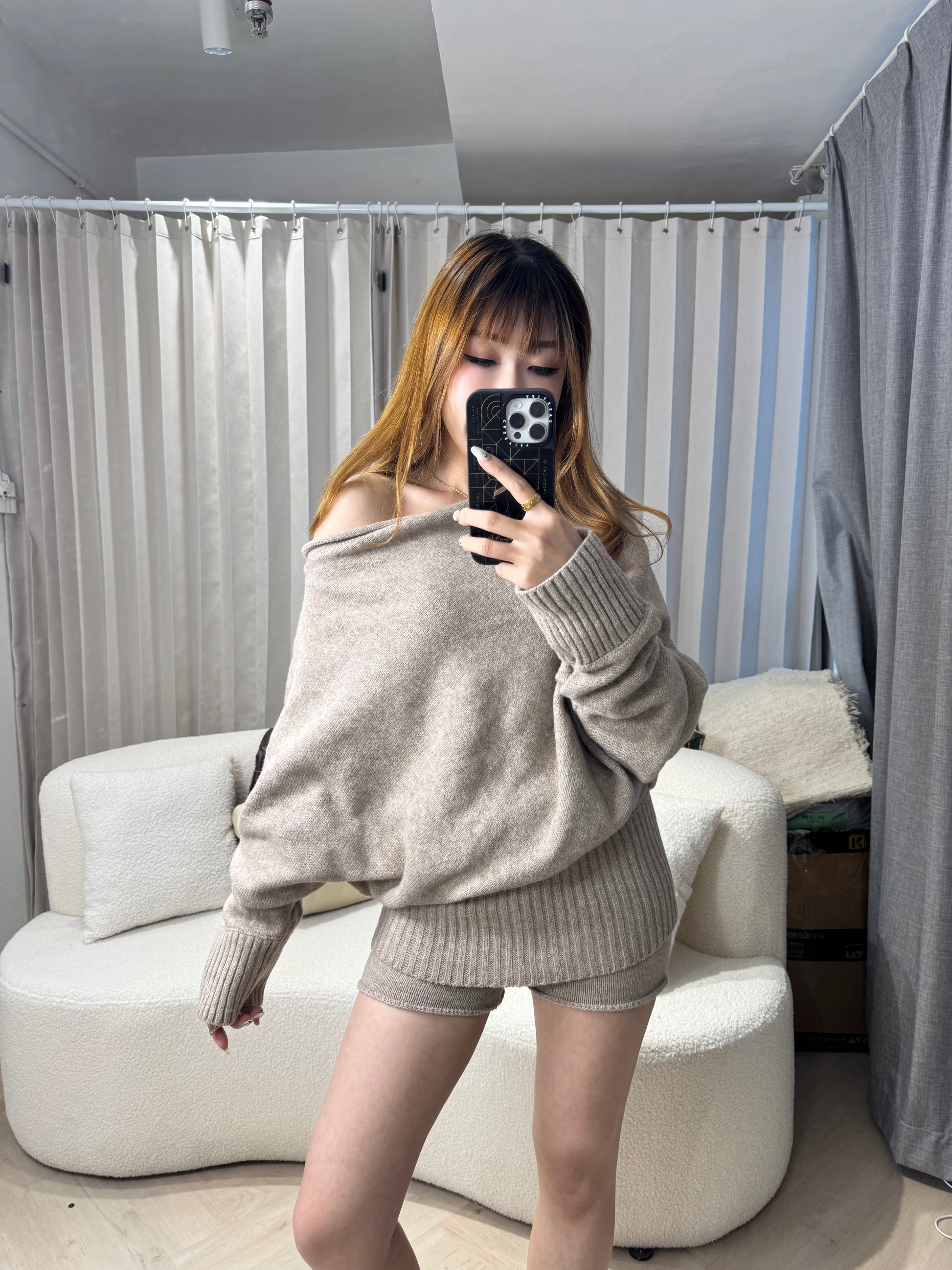 泡泡領冷上衣+短褲套裝SET ( 灰/杏 )