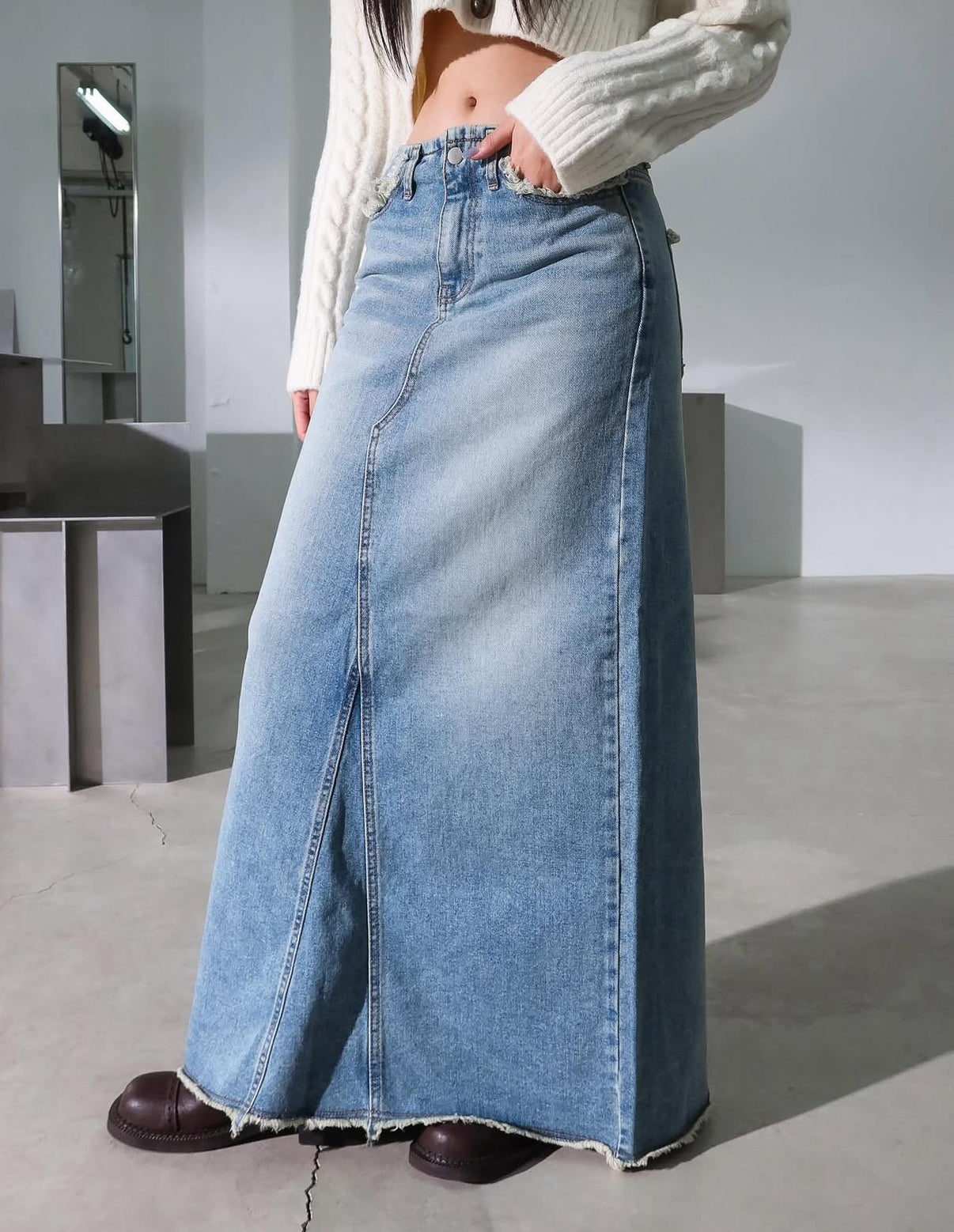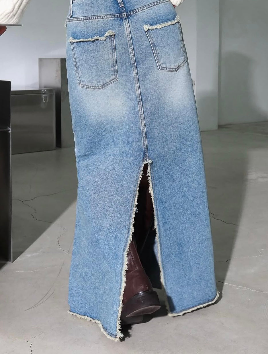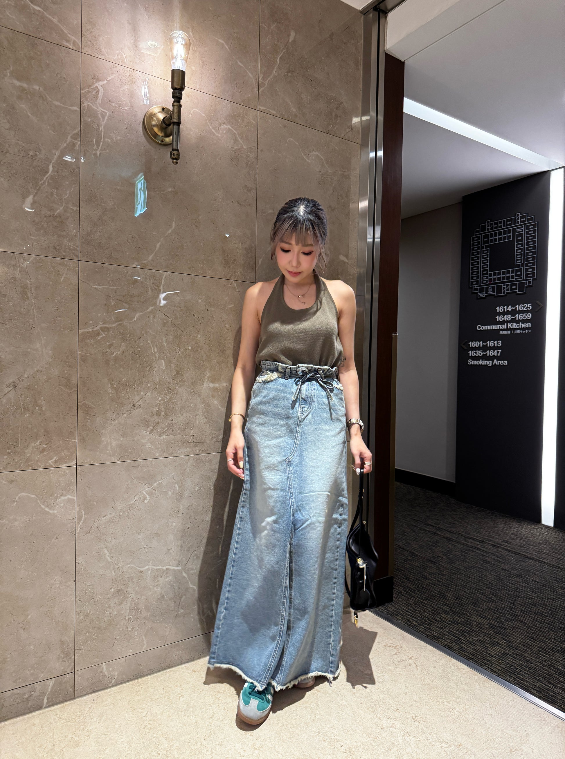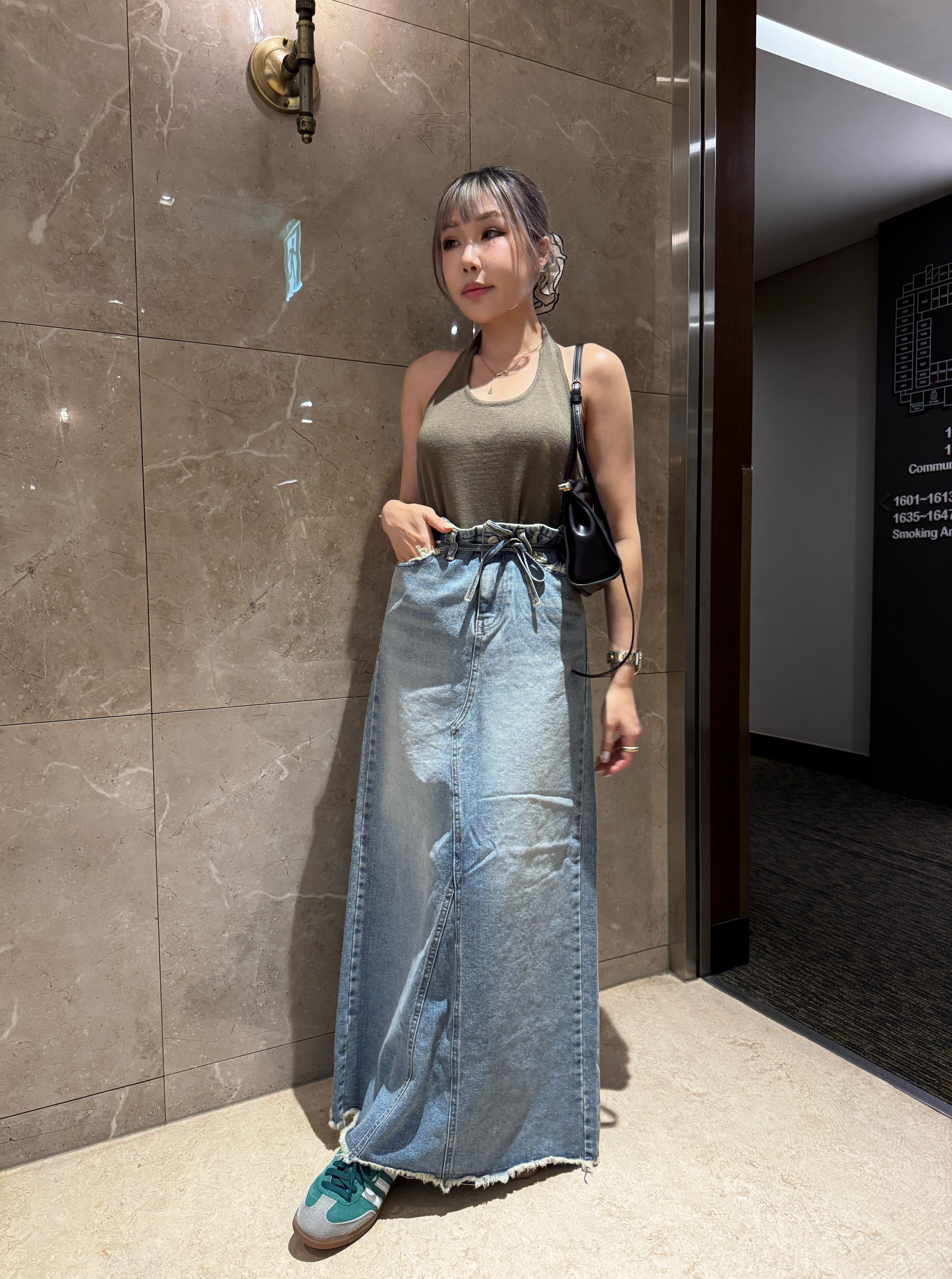 洗水後開叉連腰繩牛仔長裙 ( S/M )