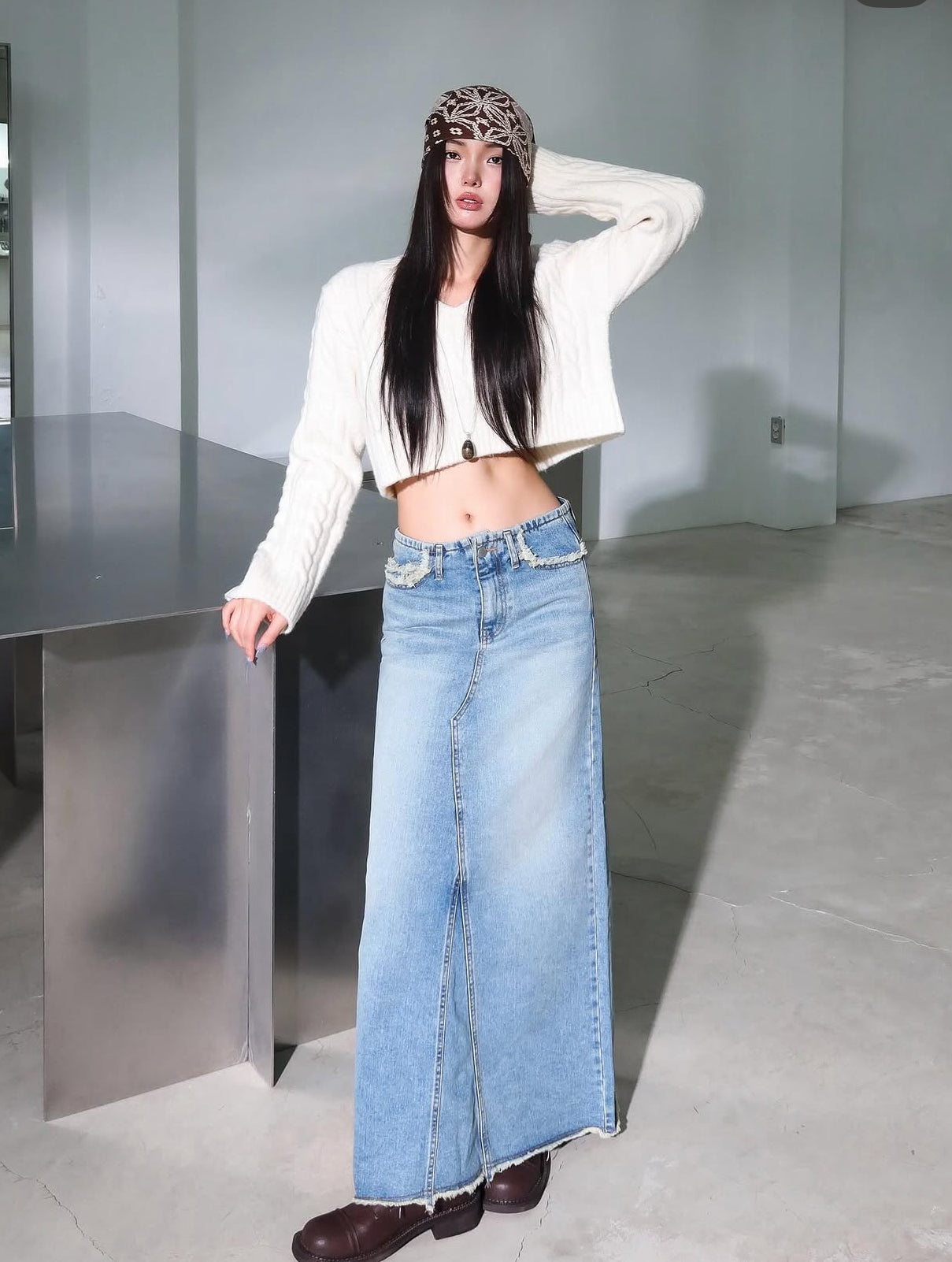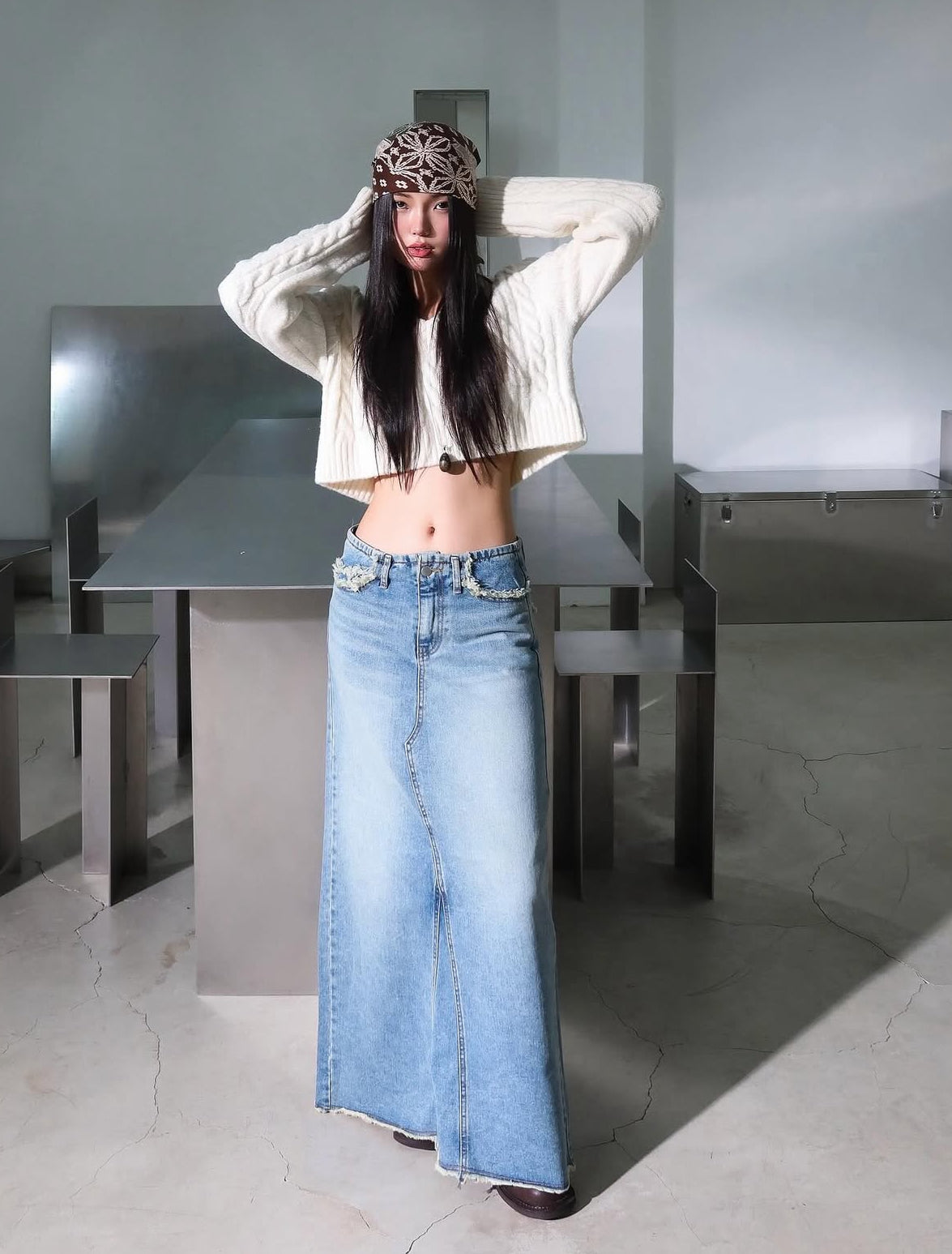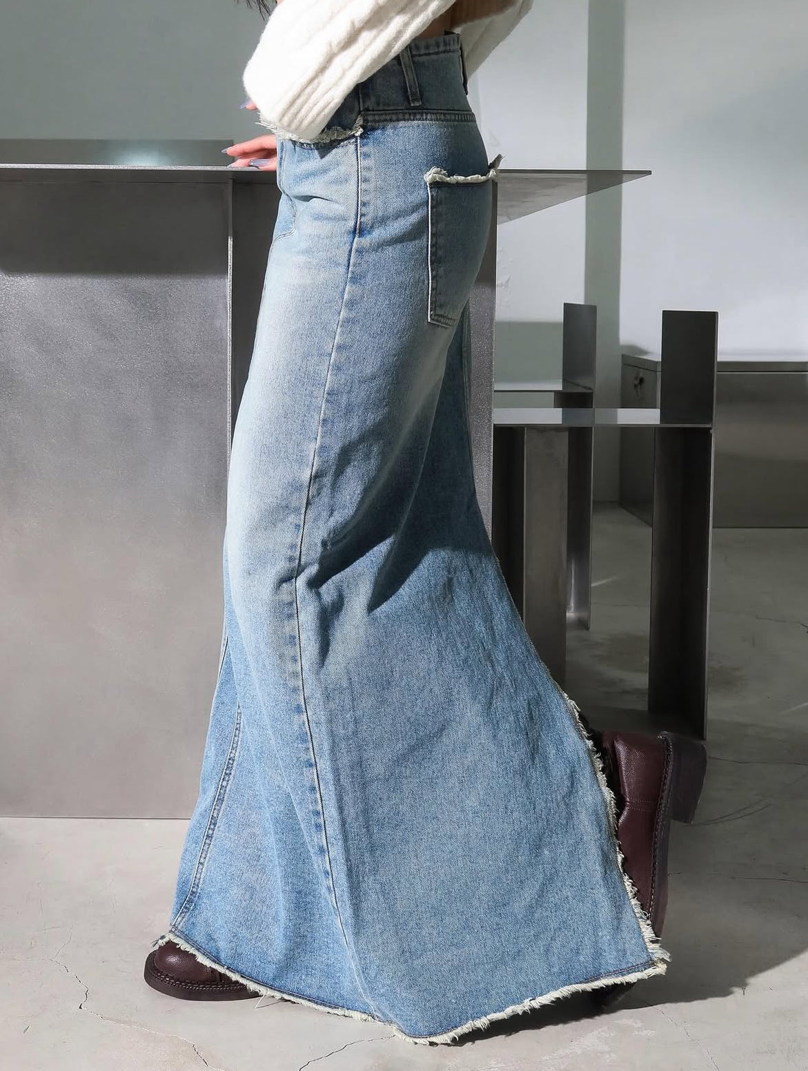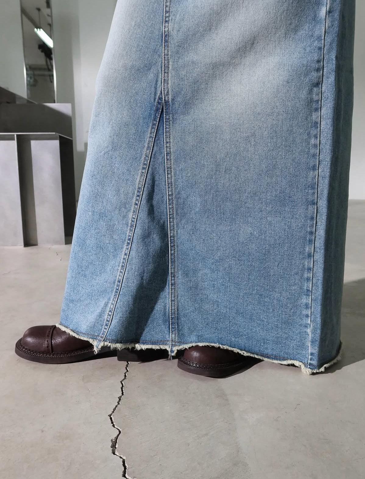 洗水後開叉連腰繩牛仔長裙 ( S/M )