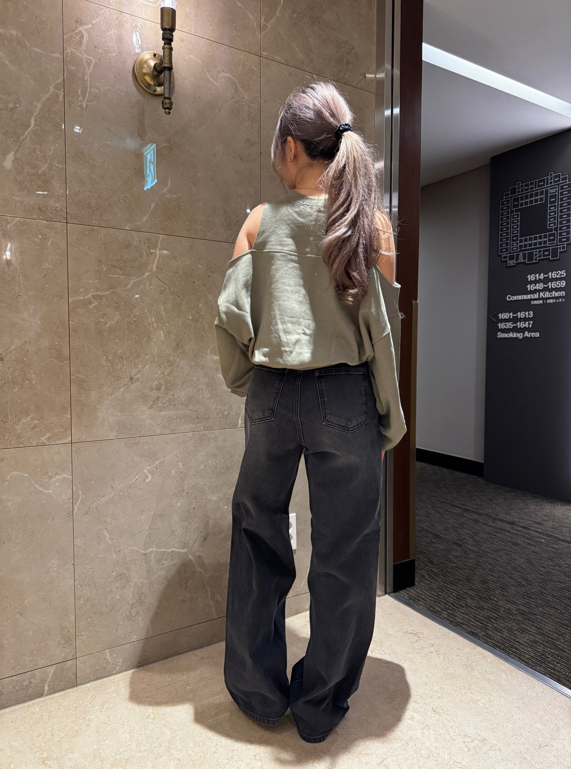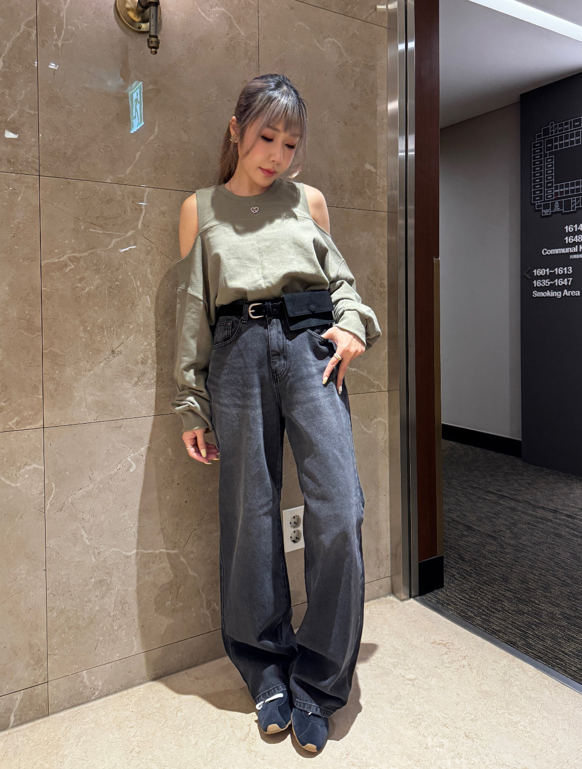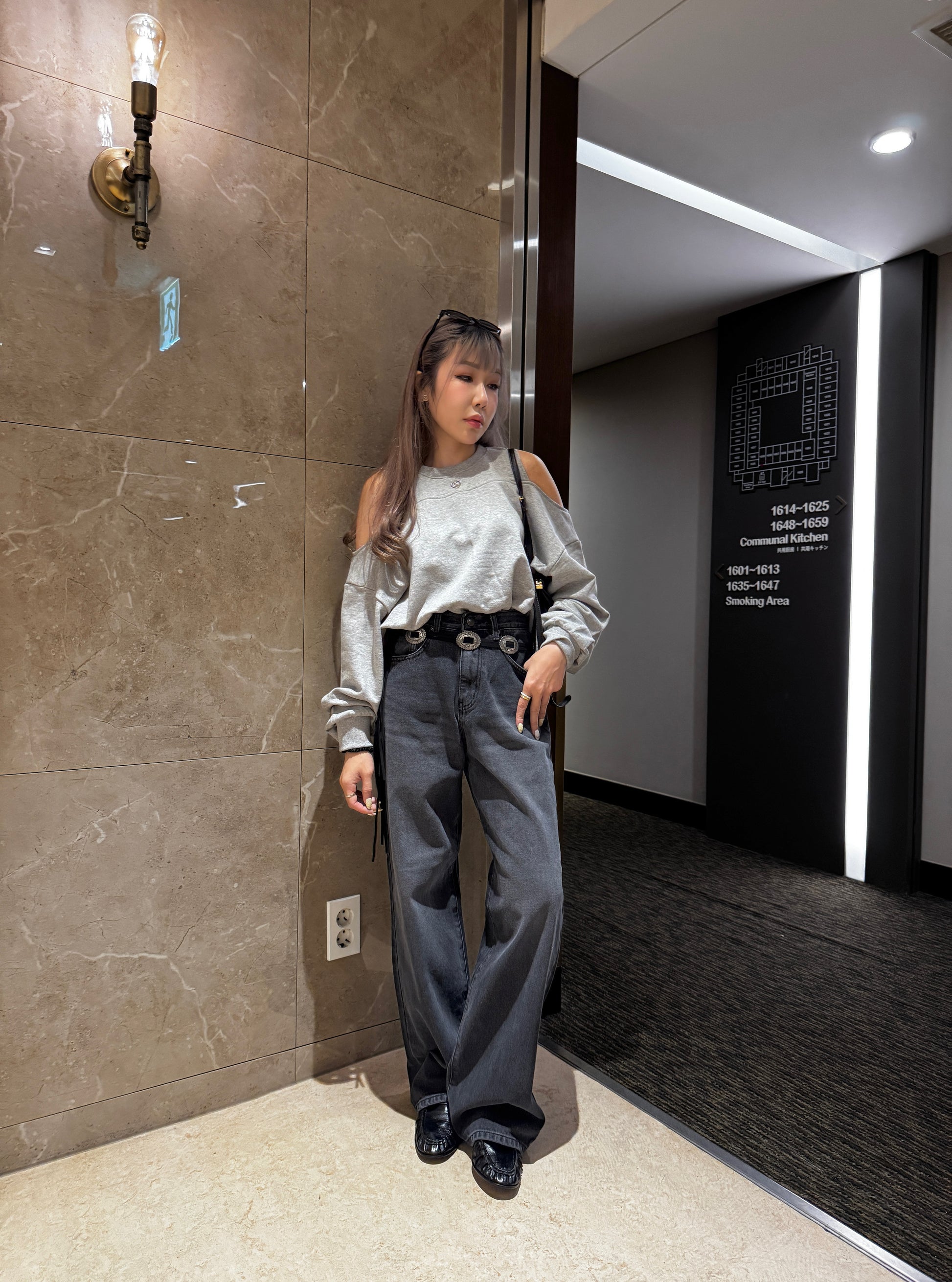 灰黑洗水直腳牛仔褲 ( S/M/L )