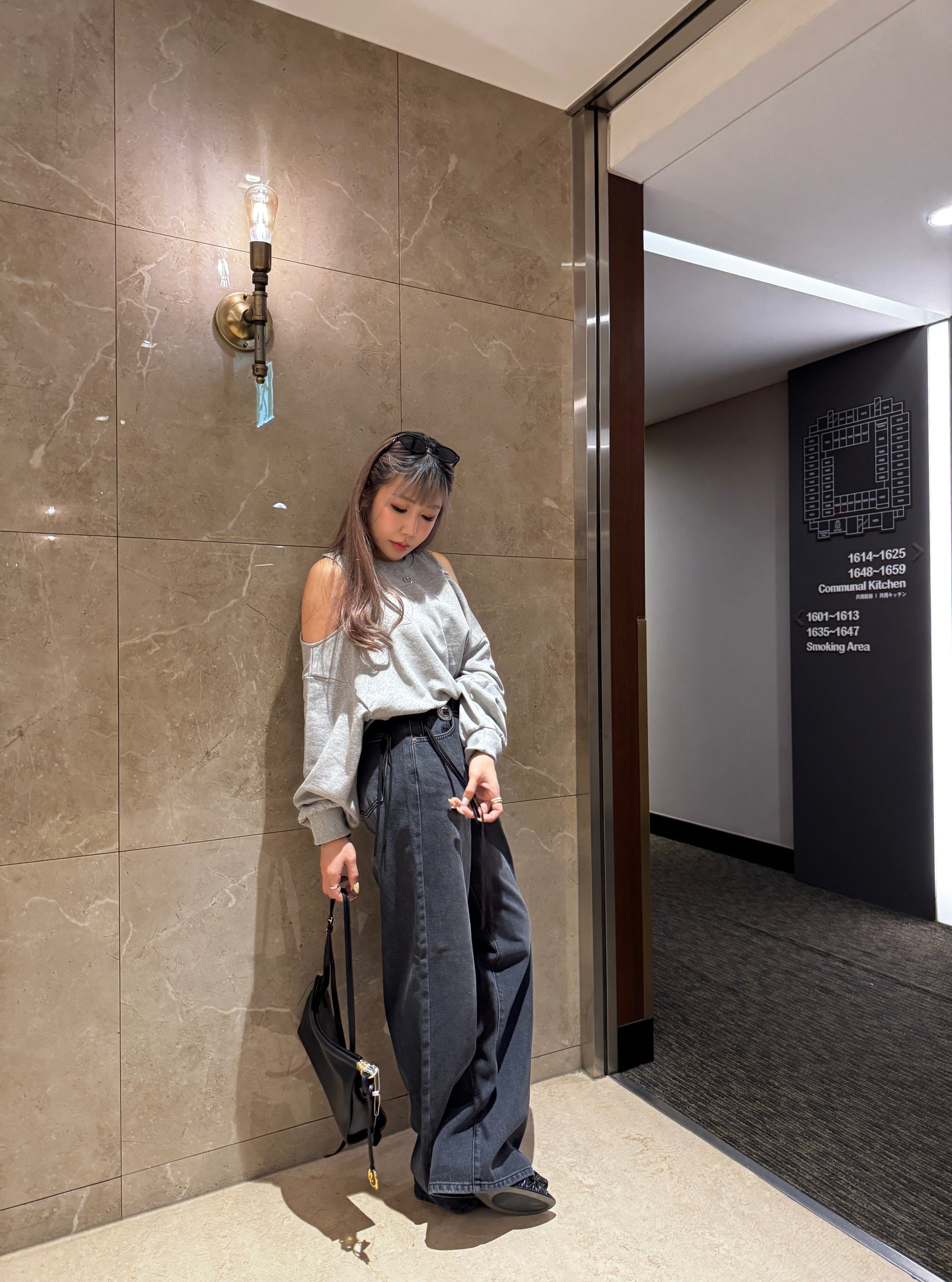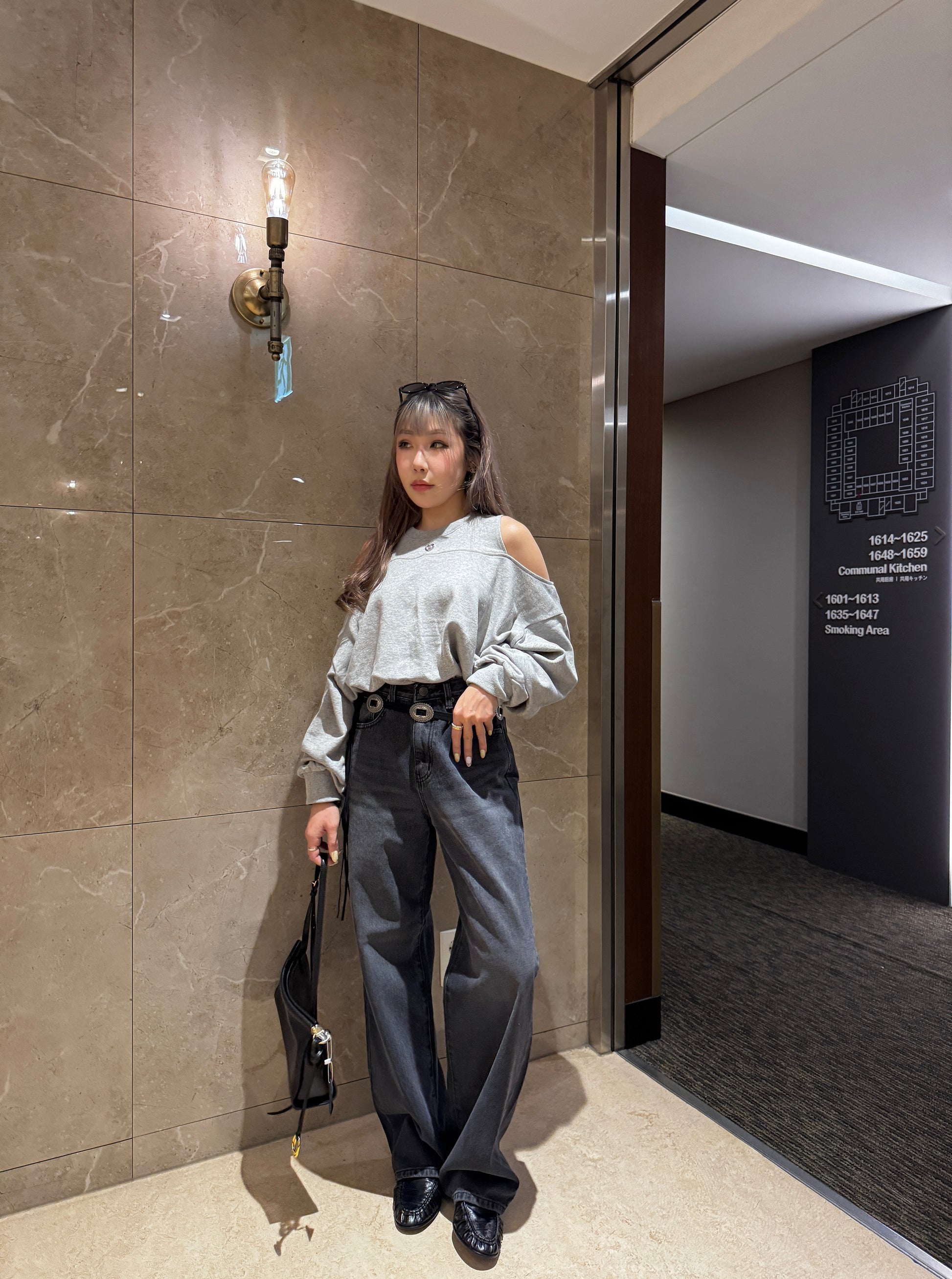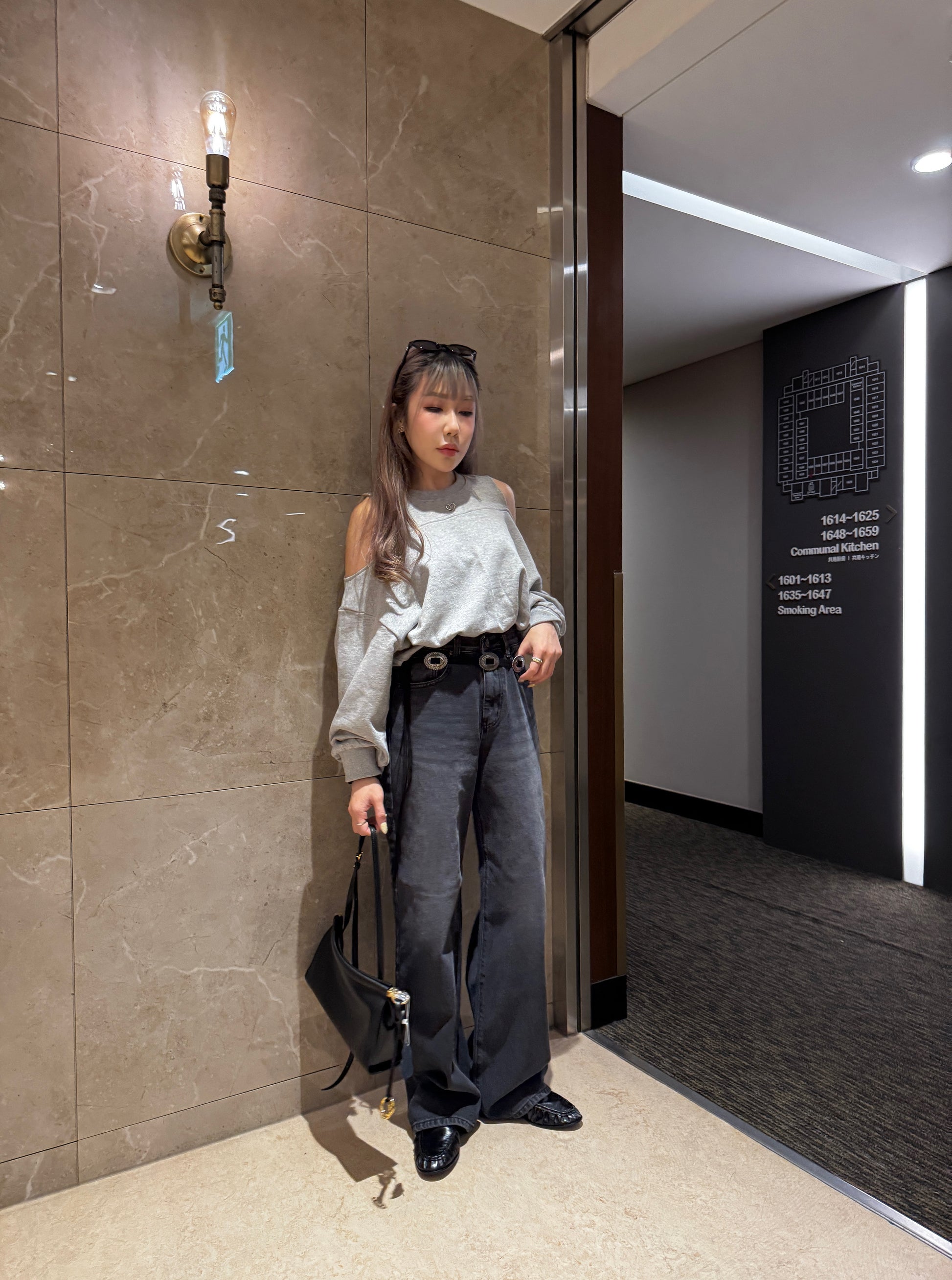 灰黑洗水直腳牛仔褲 ( S/M/L )