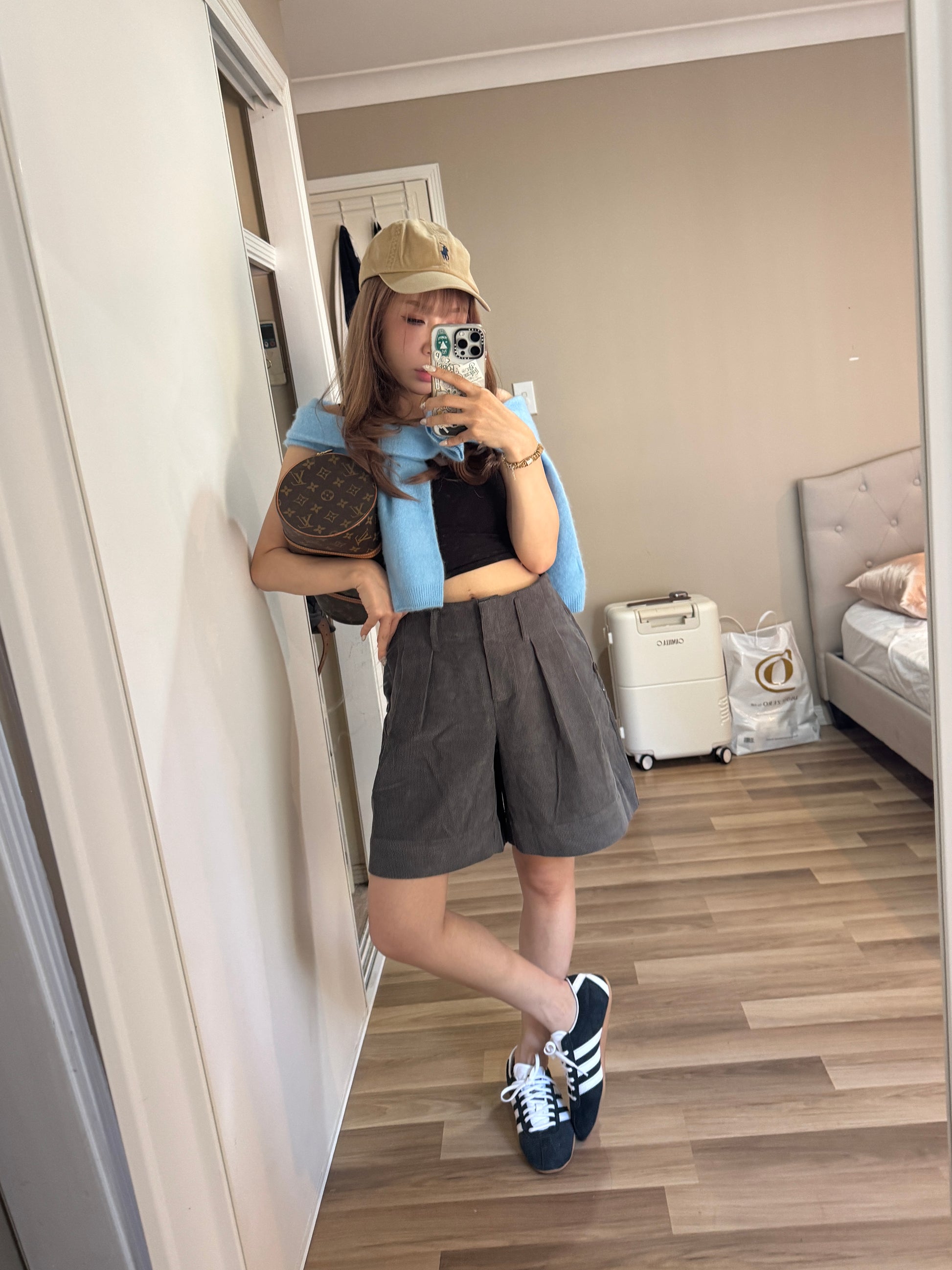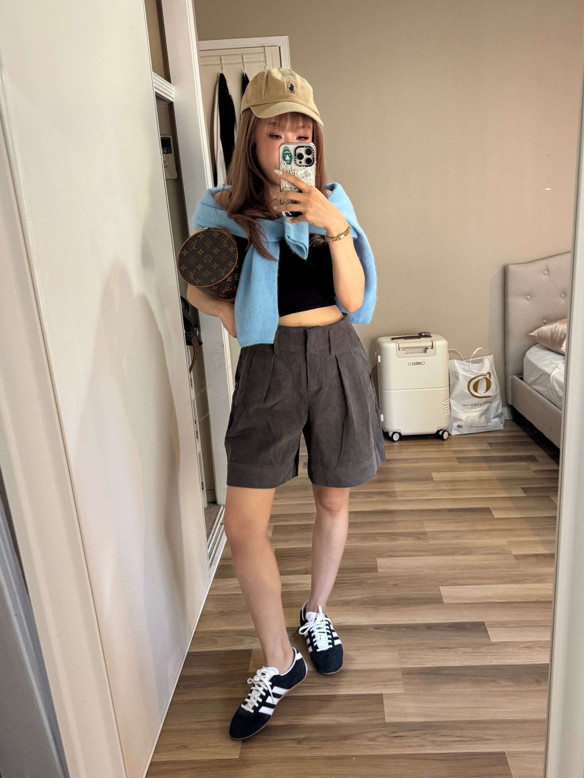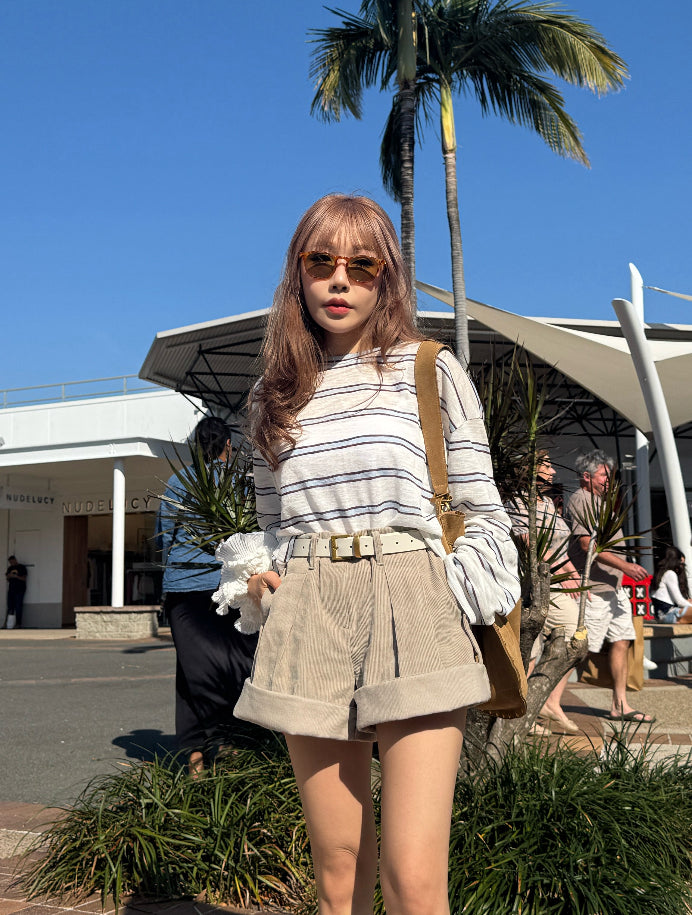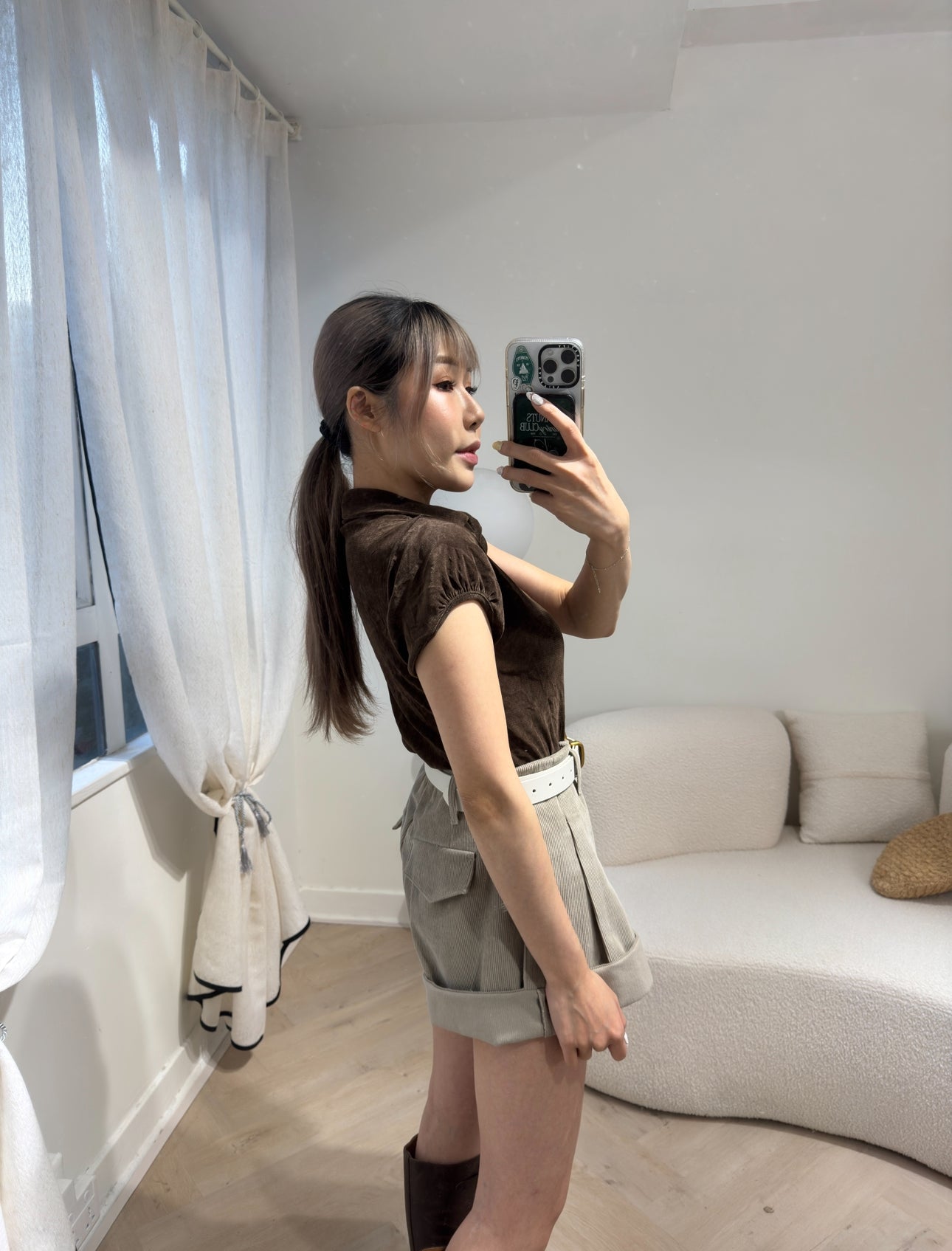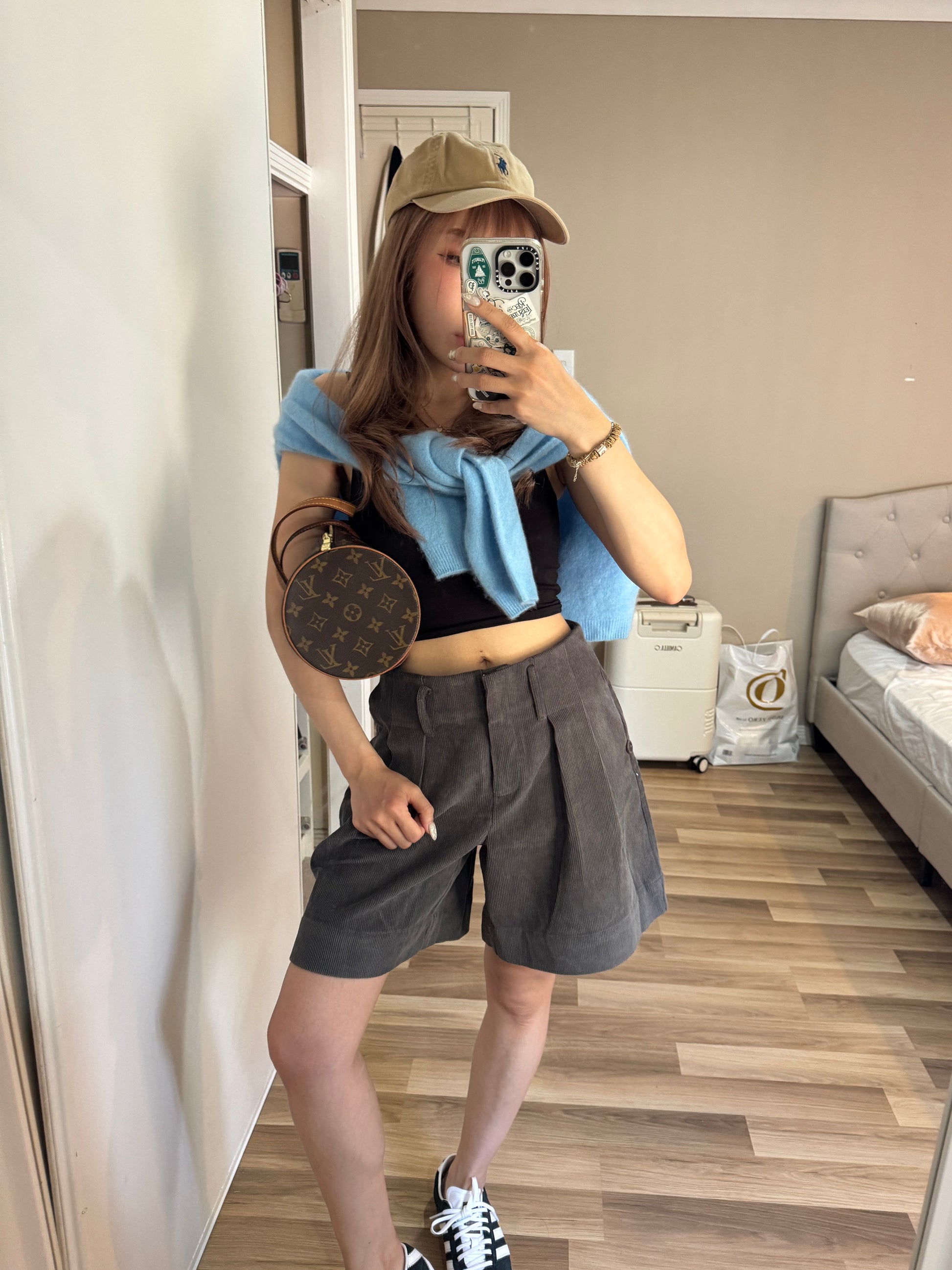 燈芯絨可反摺短褲 ( 米杏/深灰 )