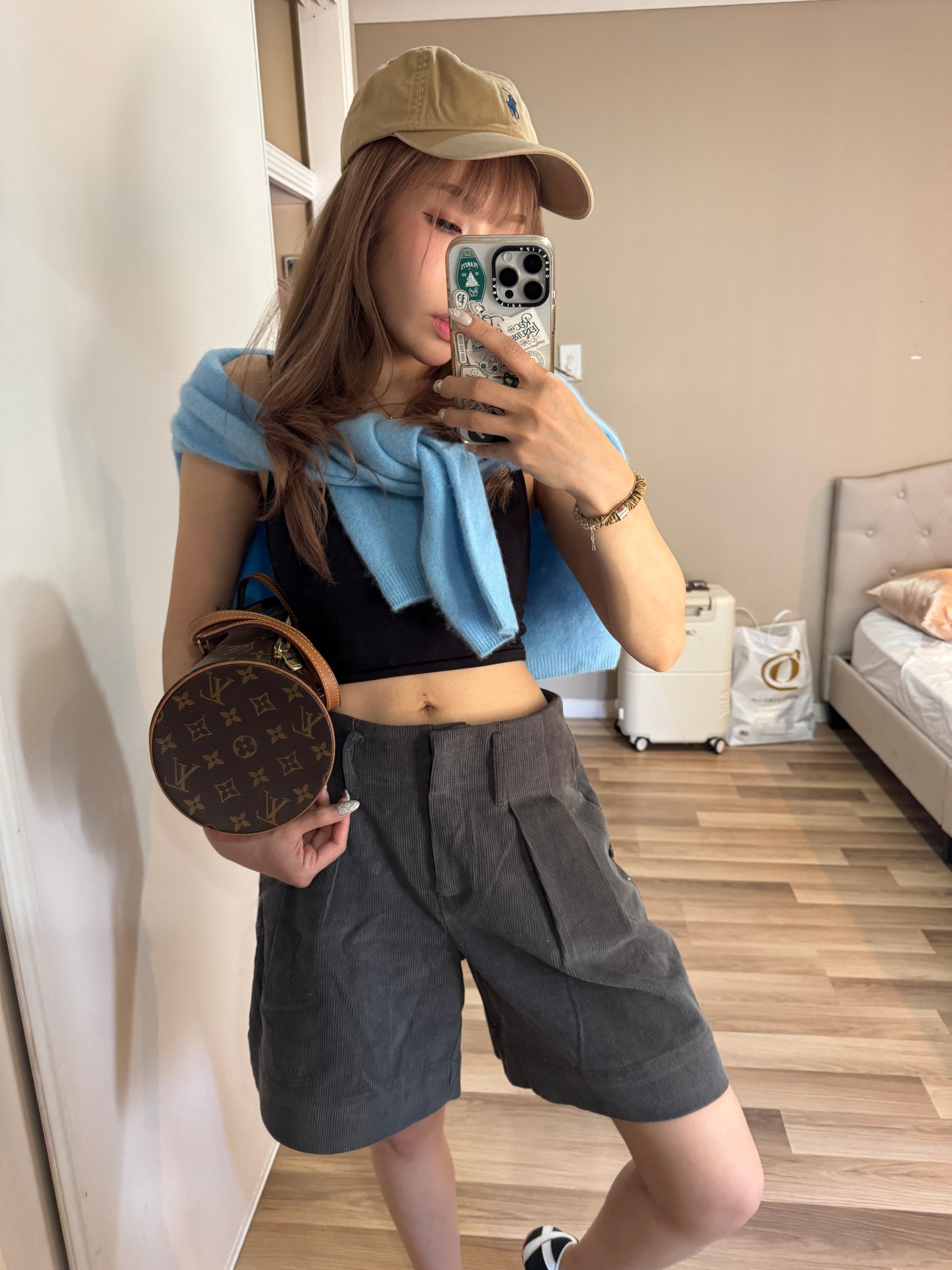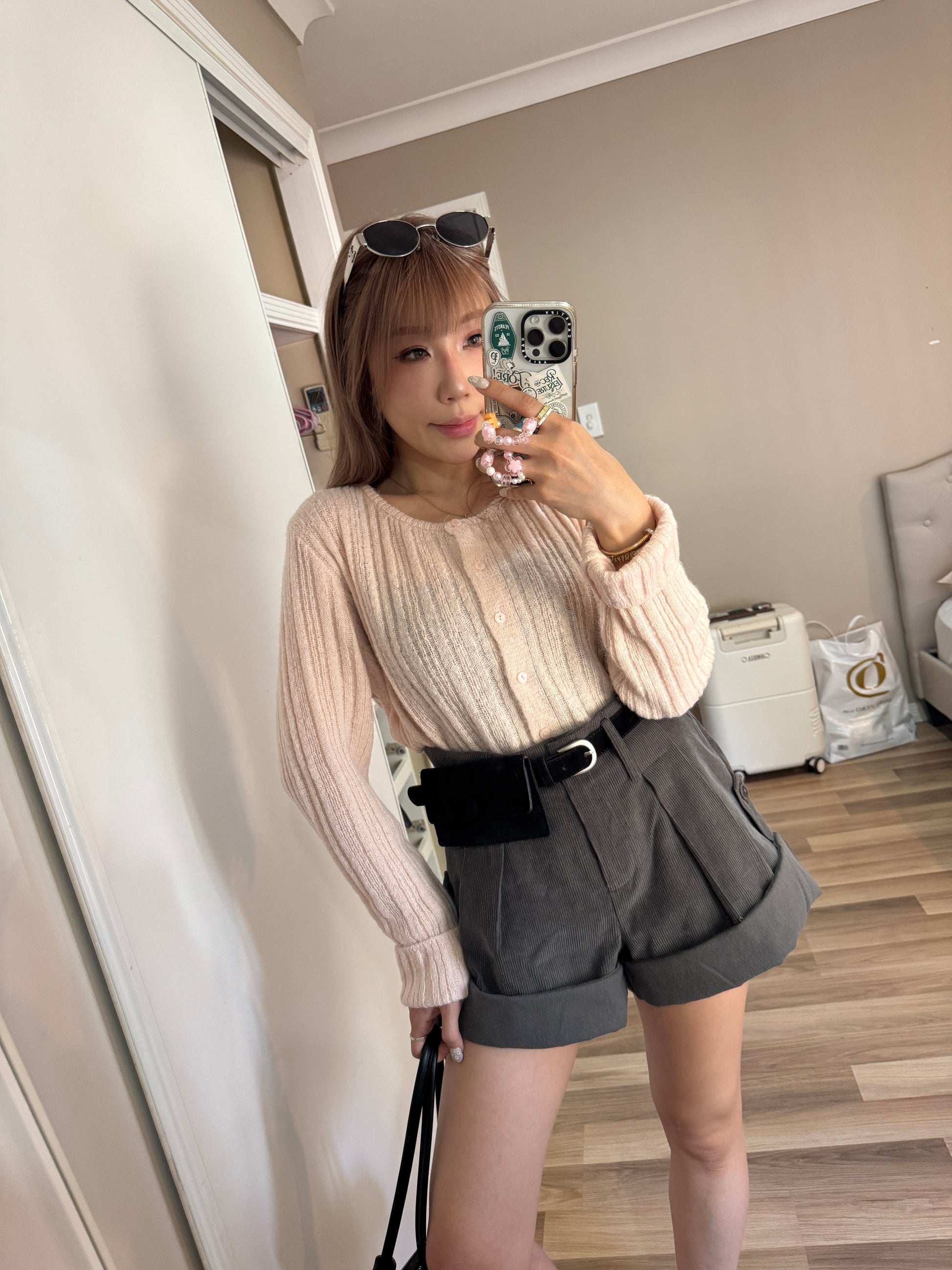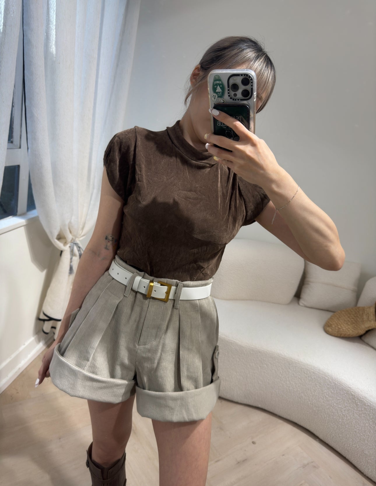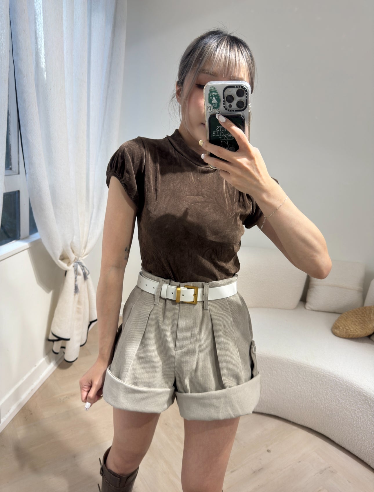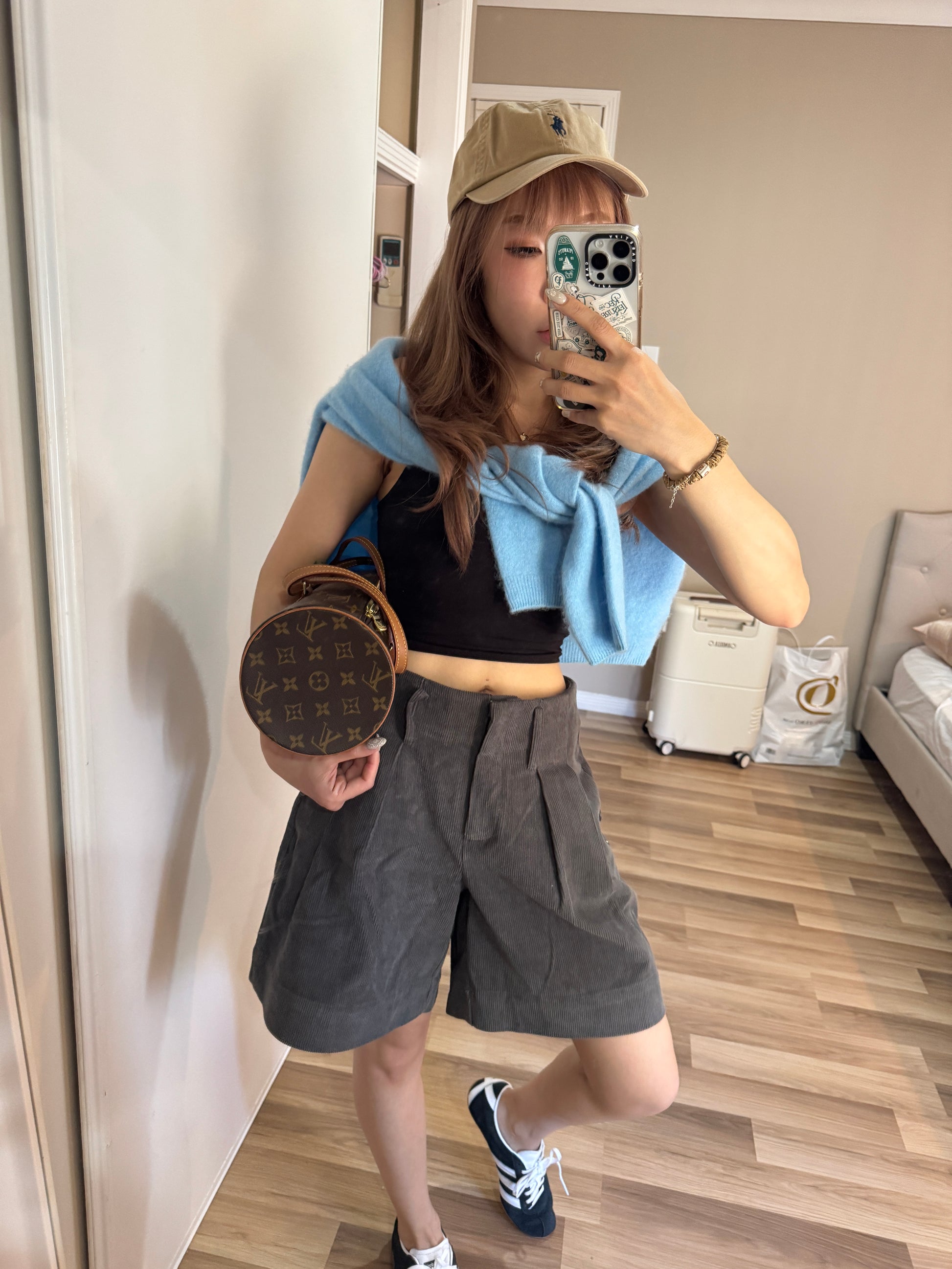燈芯絨可反摺短褲 ( 米杏/深灰 )