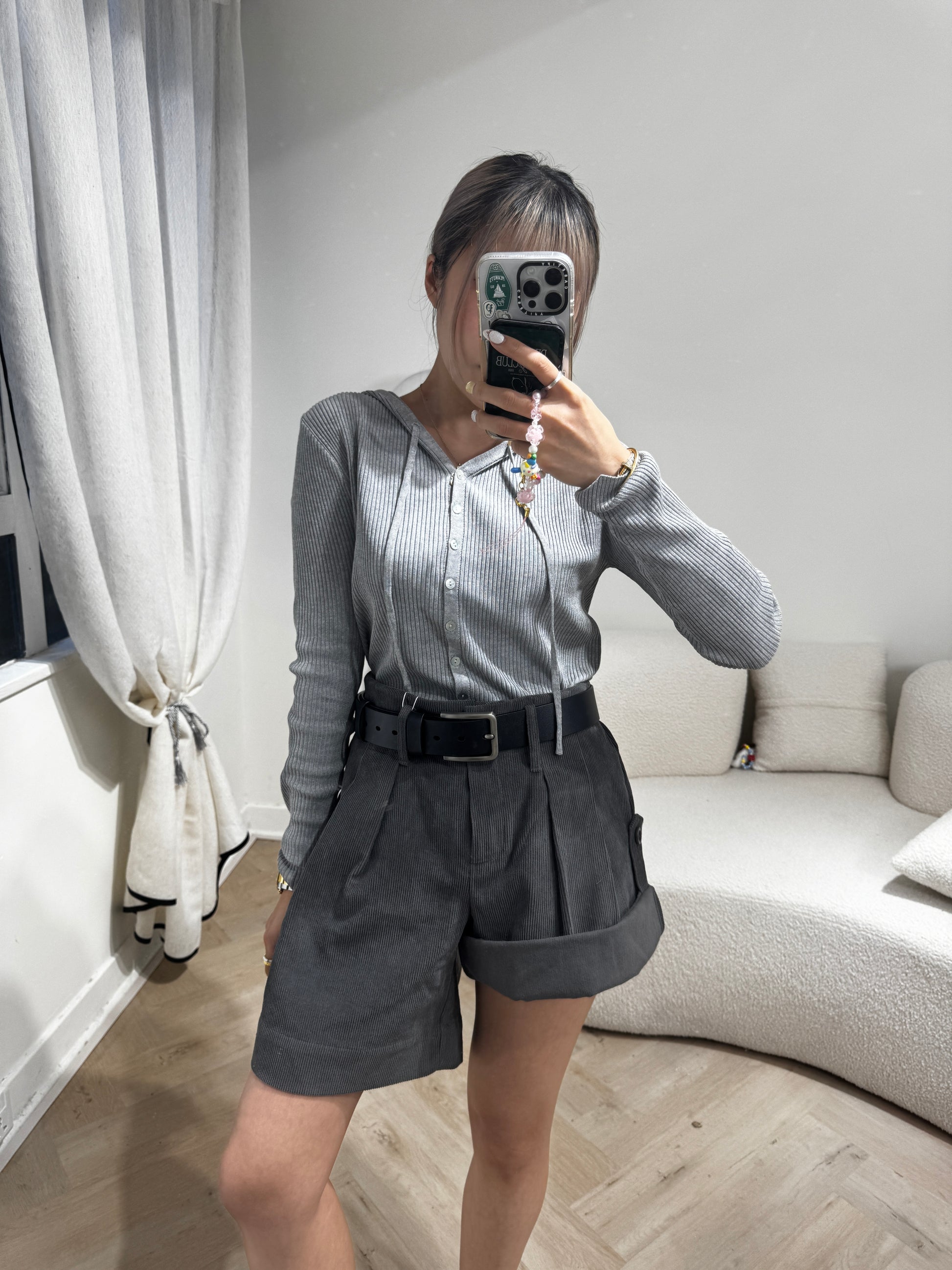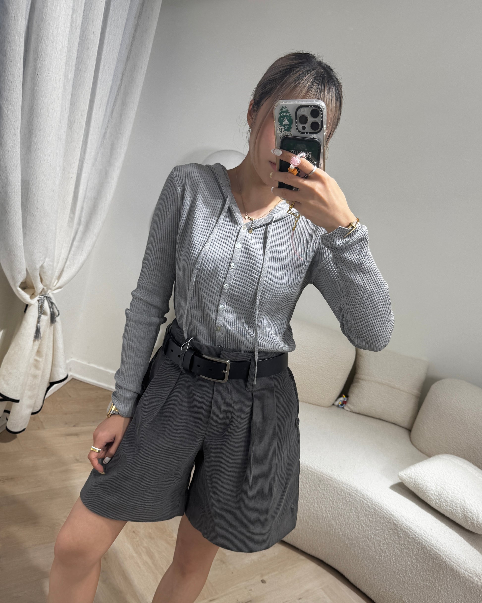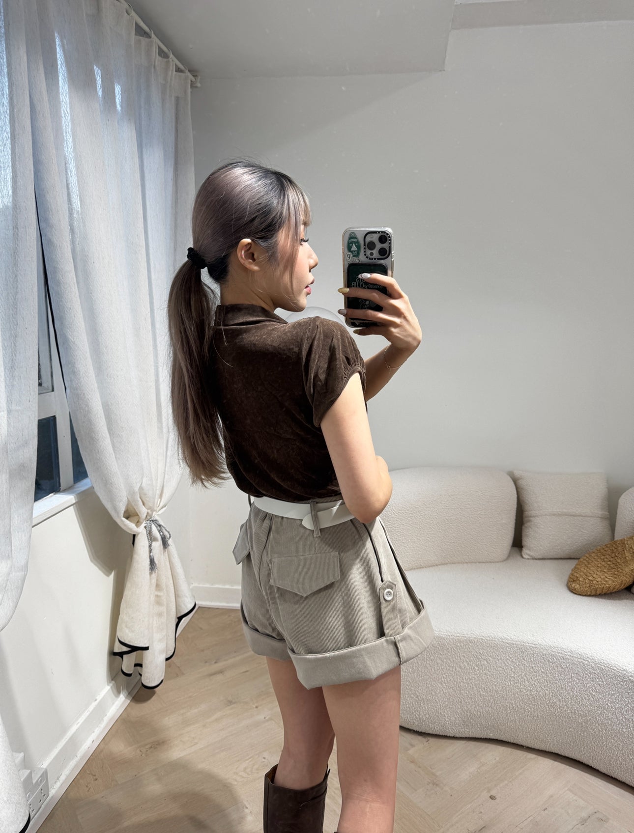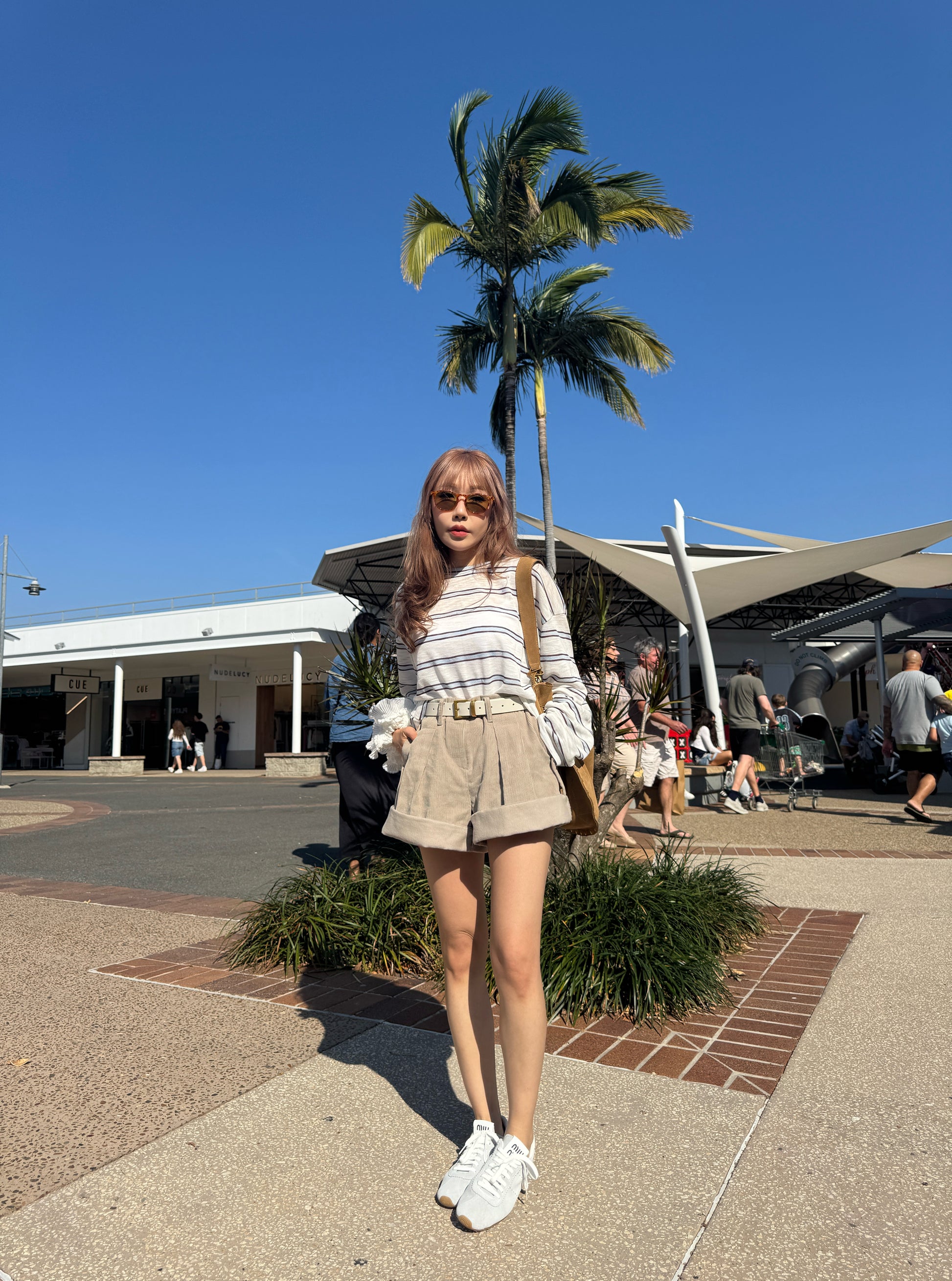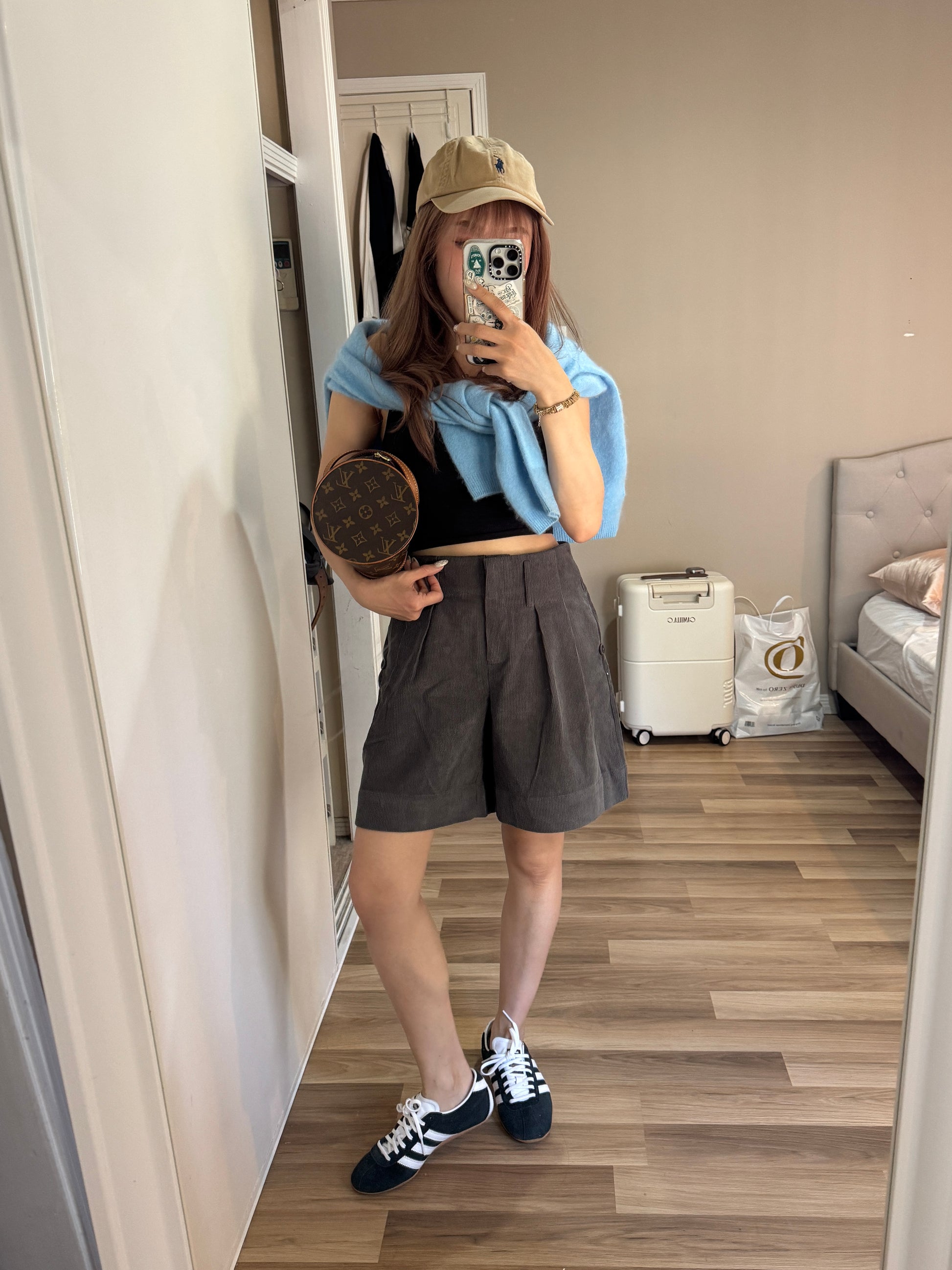 燈芯絨可反摺短褲 ( 米杏/深灰 )