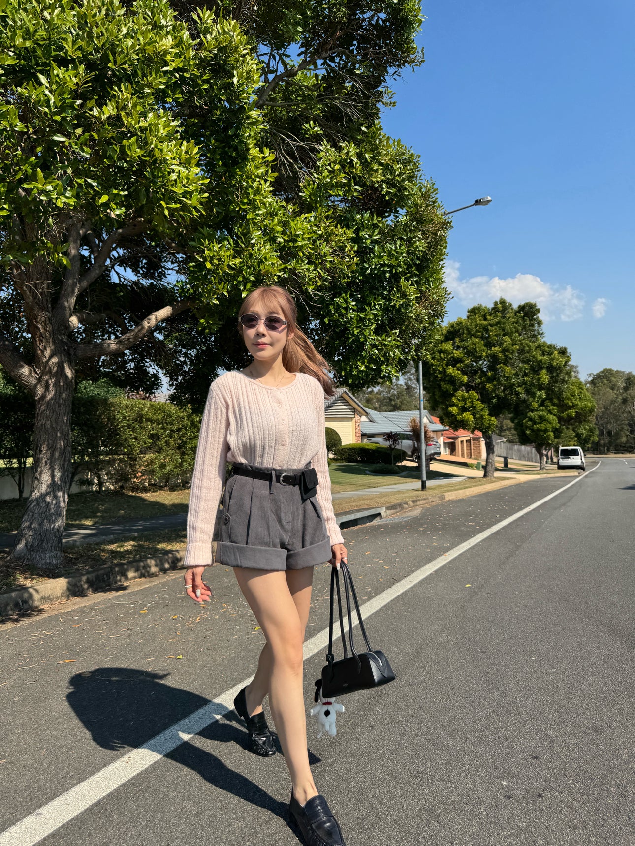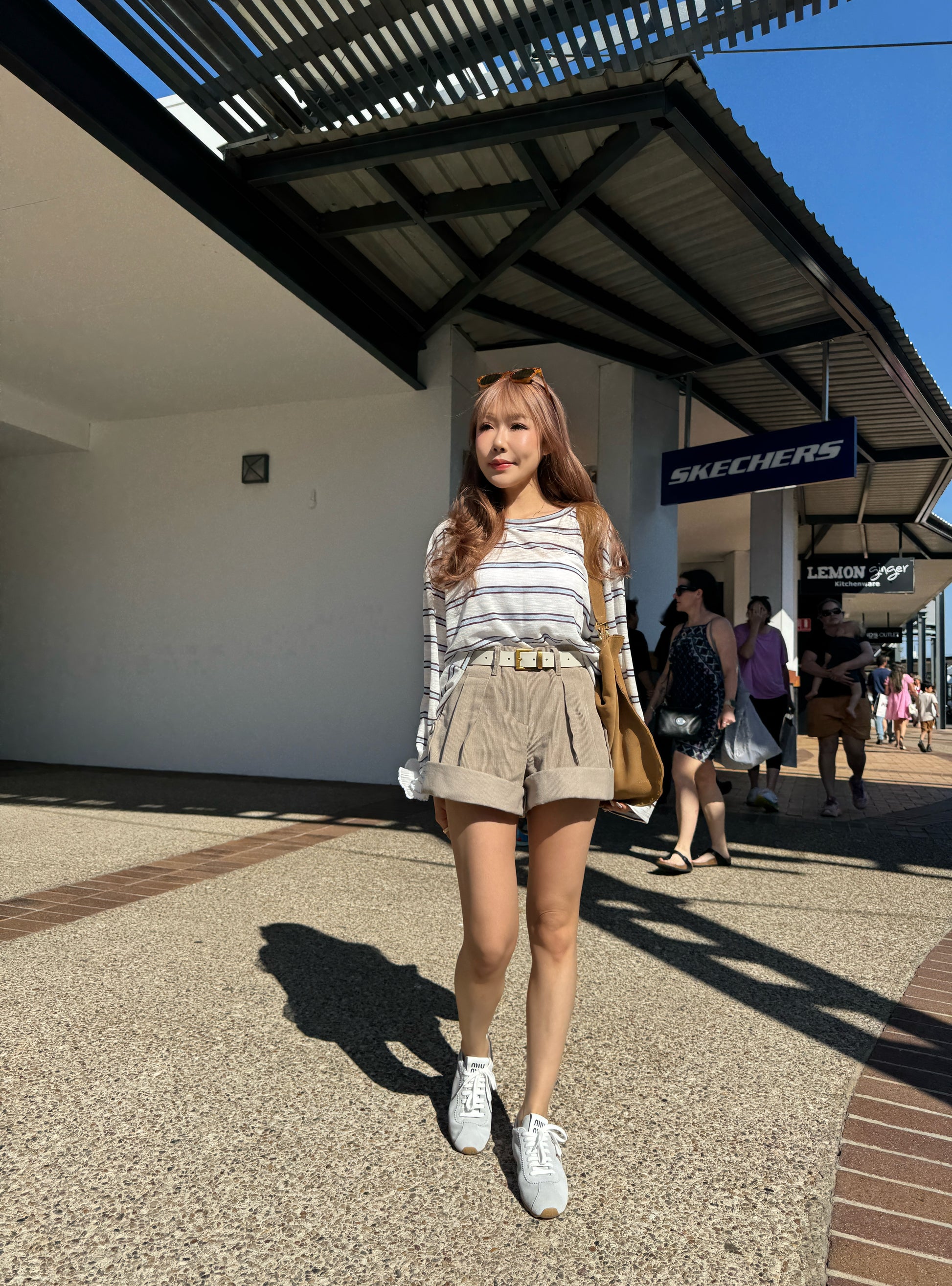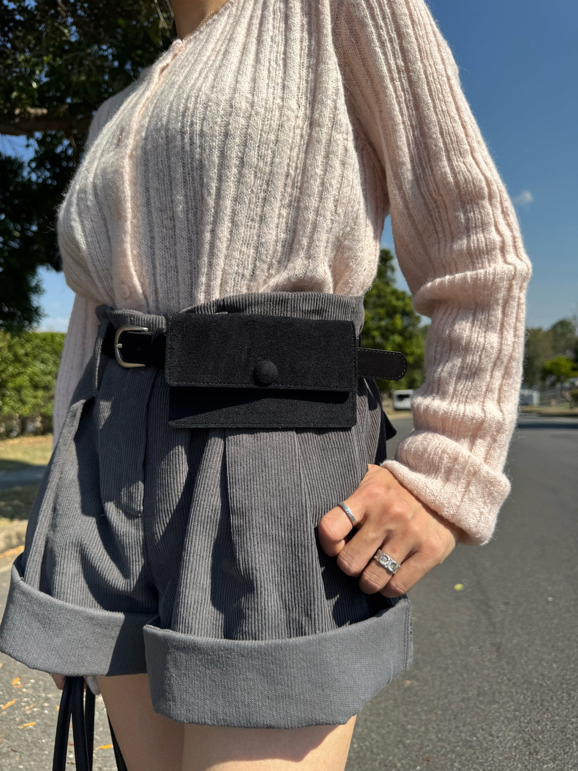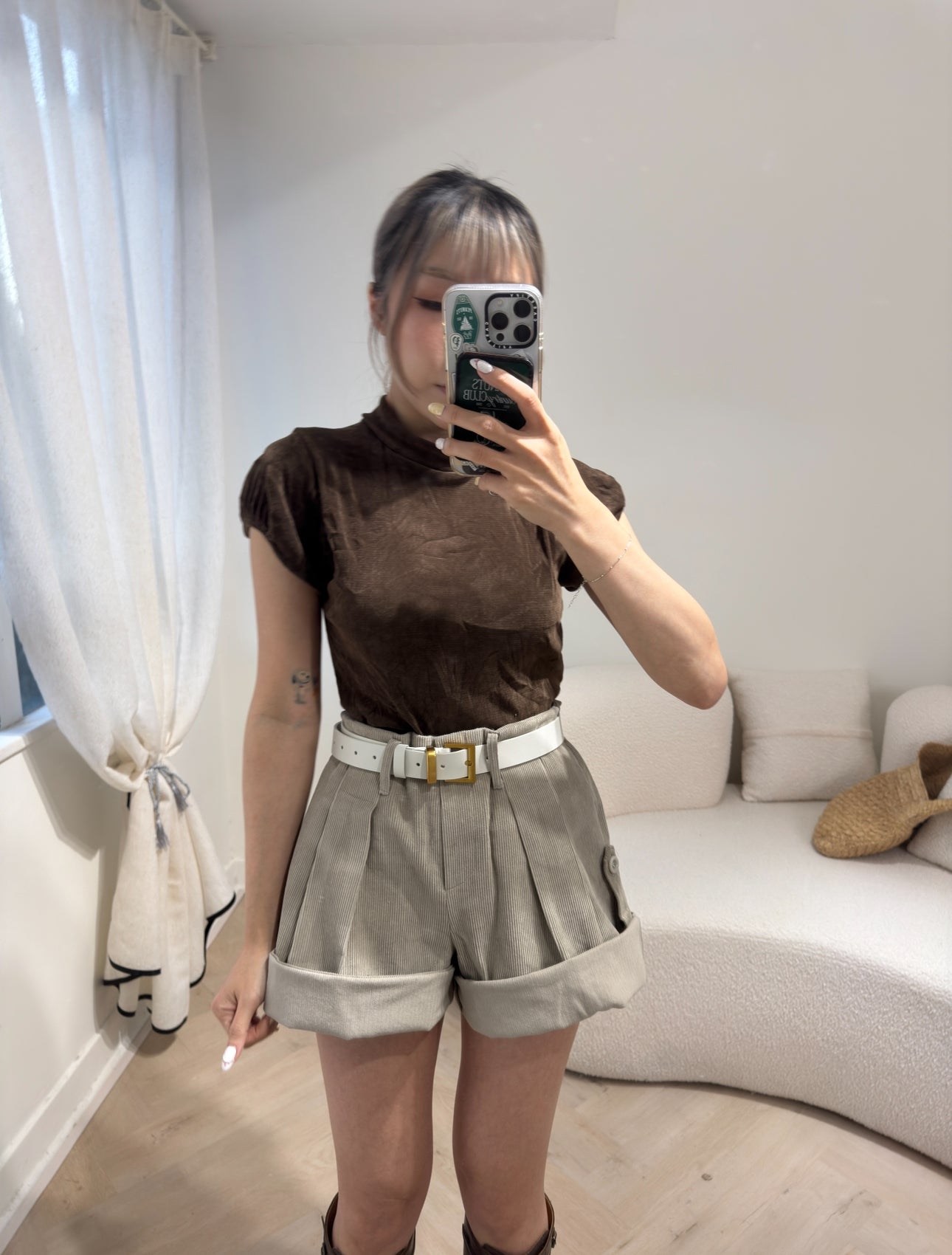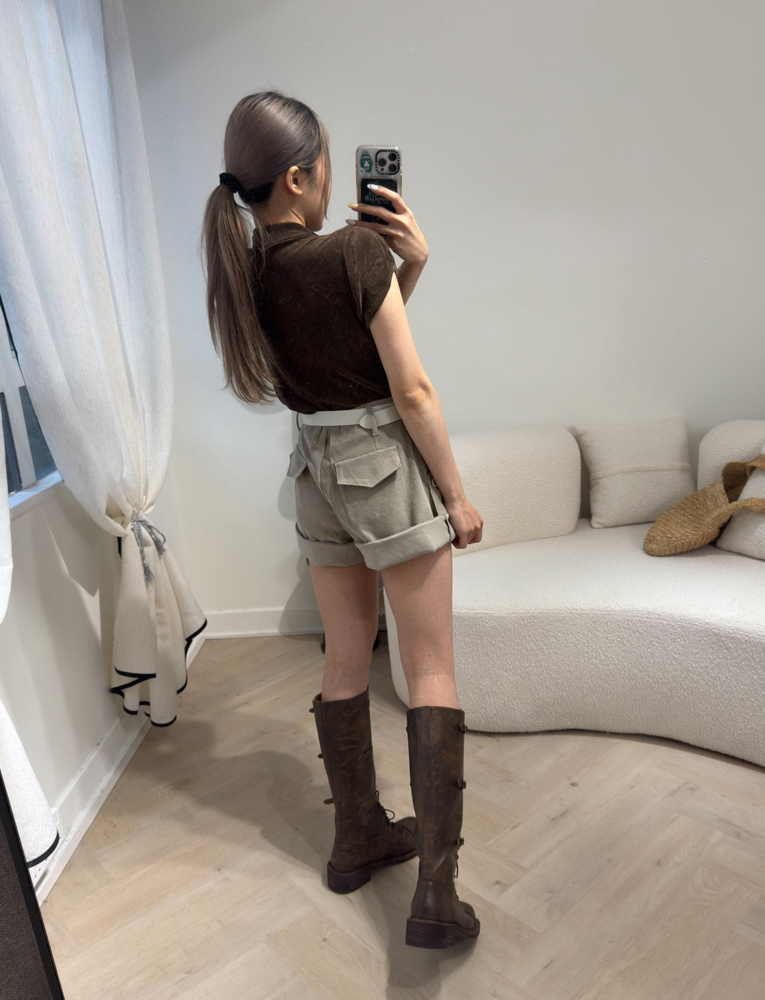 燈芯絨可反摺短褲 ( 米杏/深灰 )