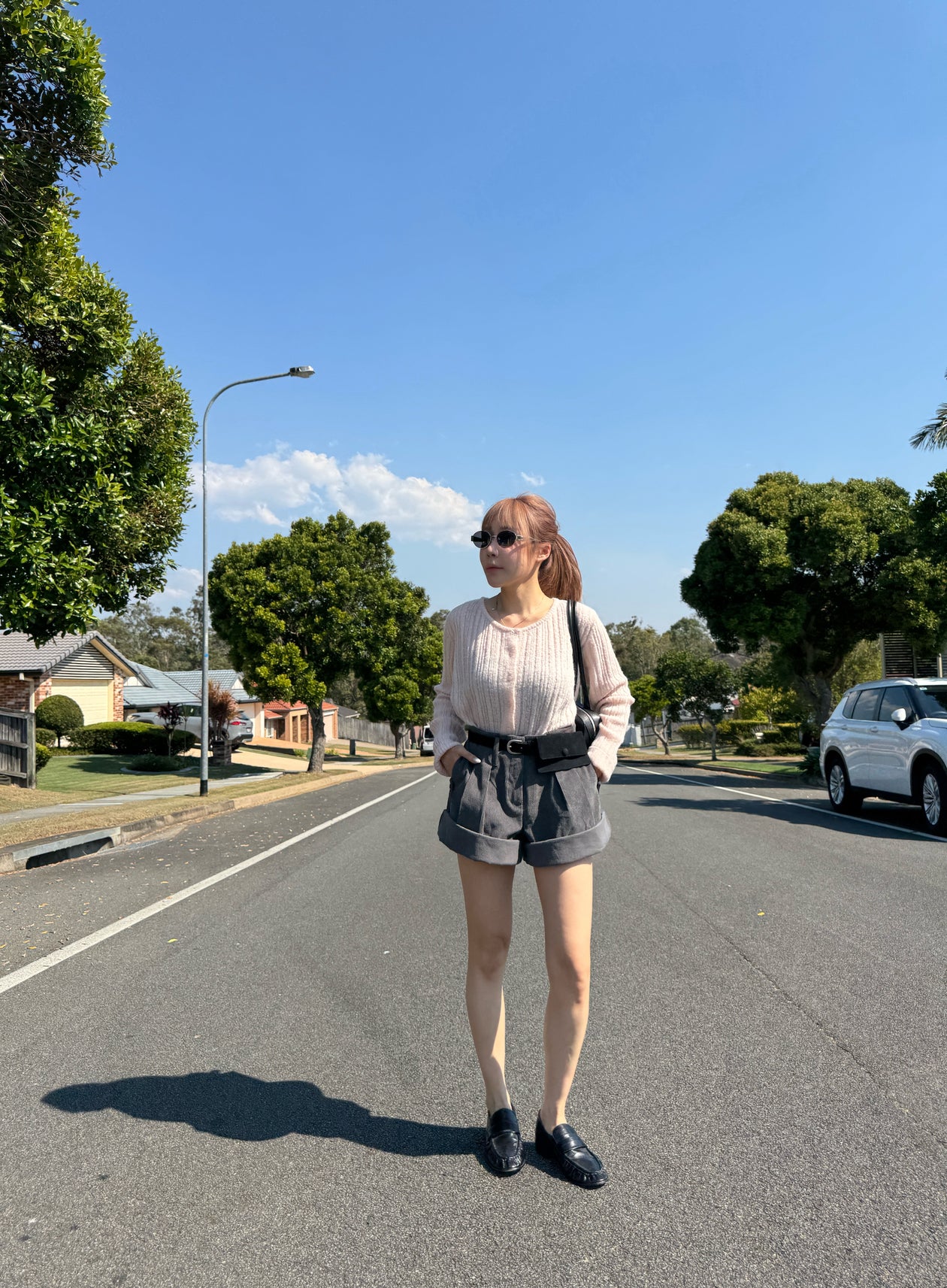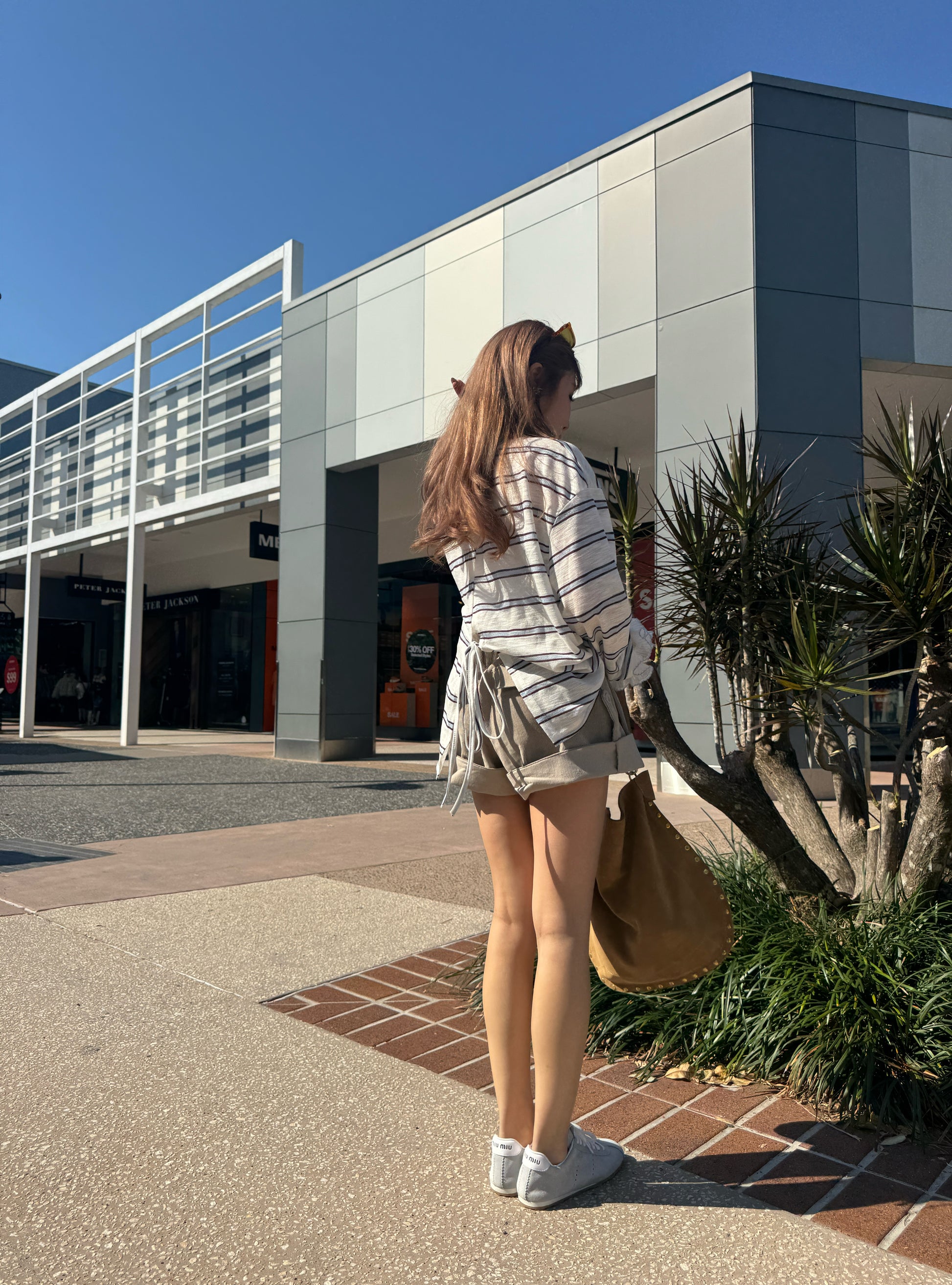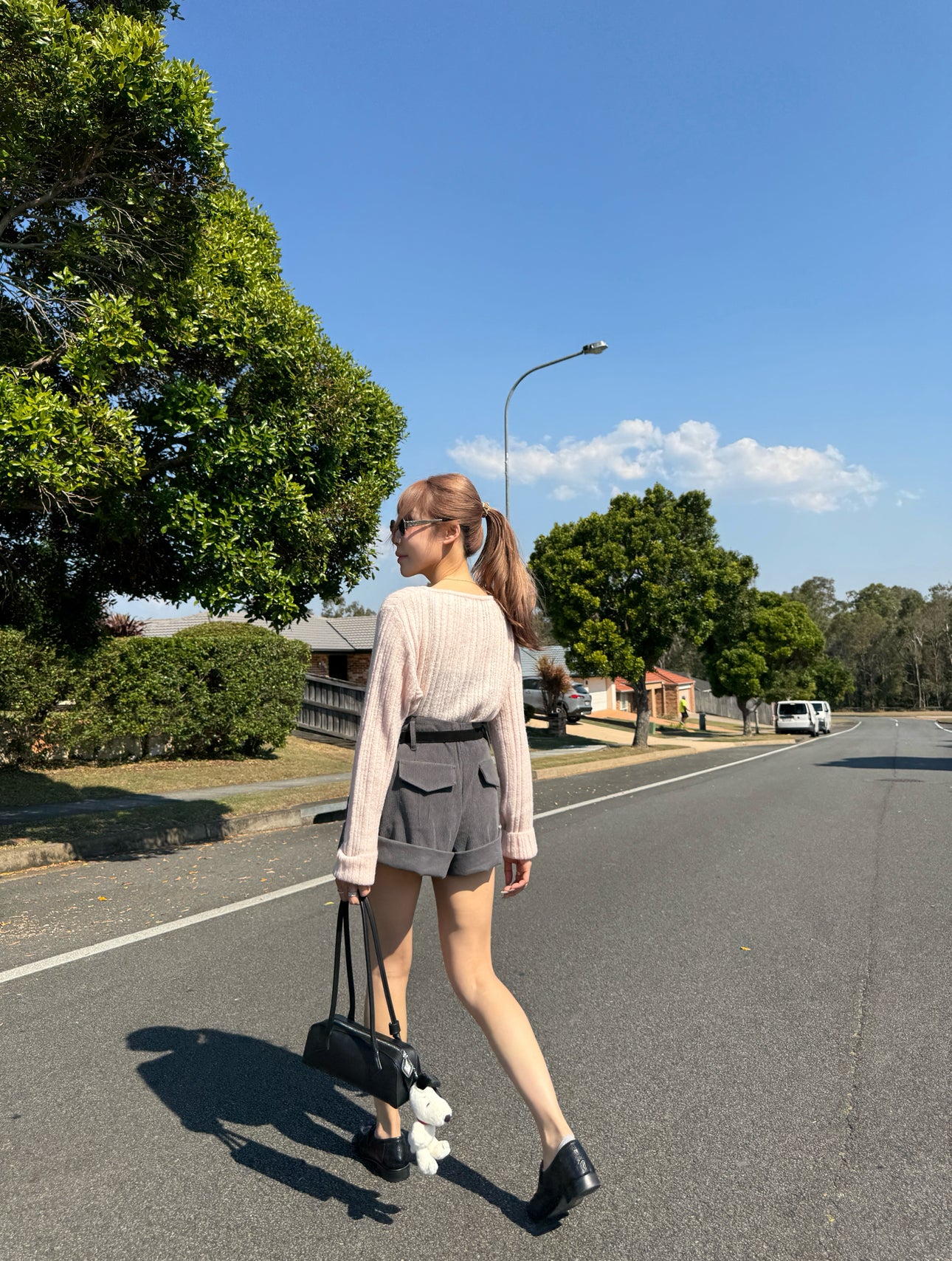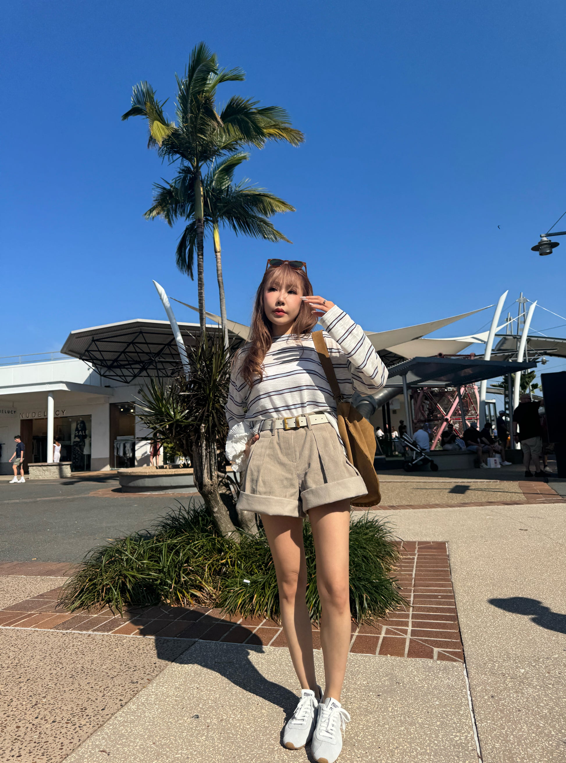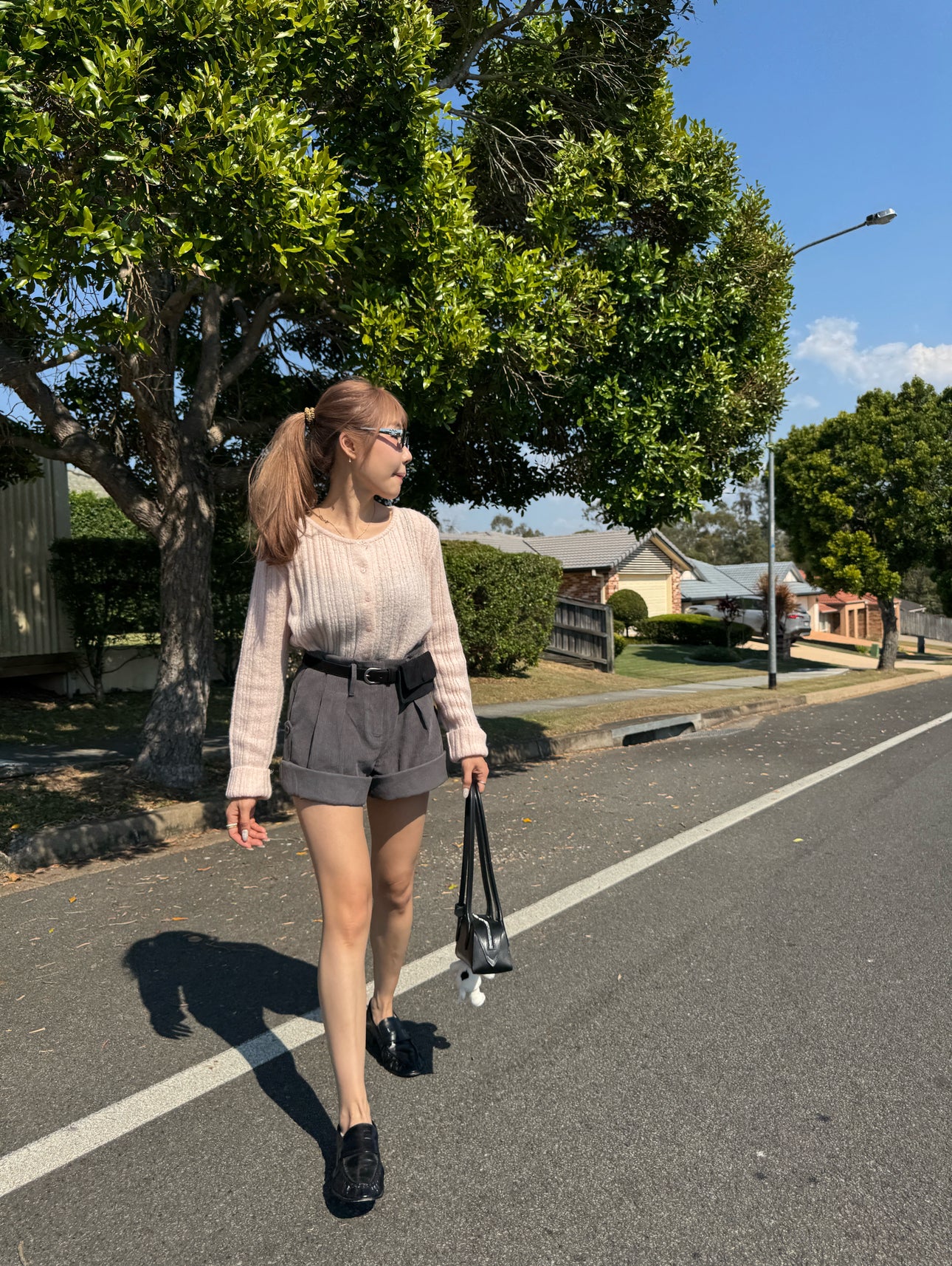 燈芯絨可反摺短褲 ( 米杏/深灰 )
