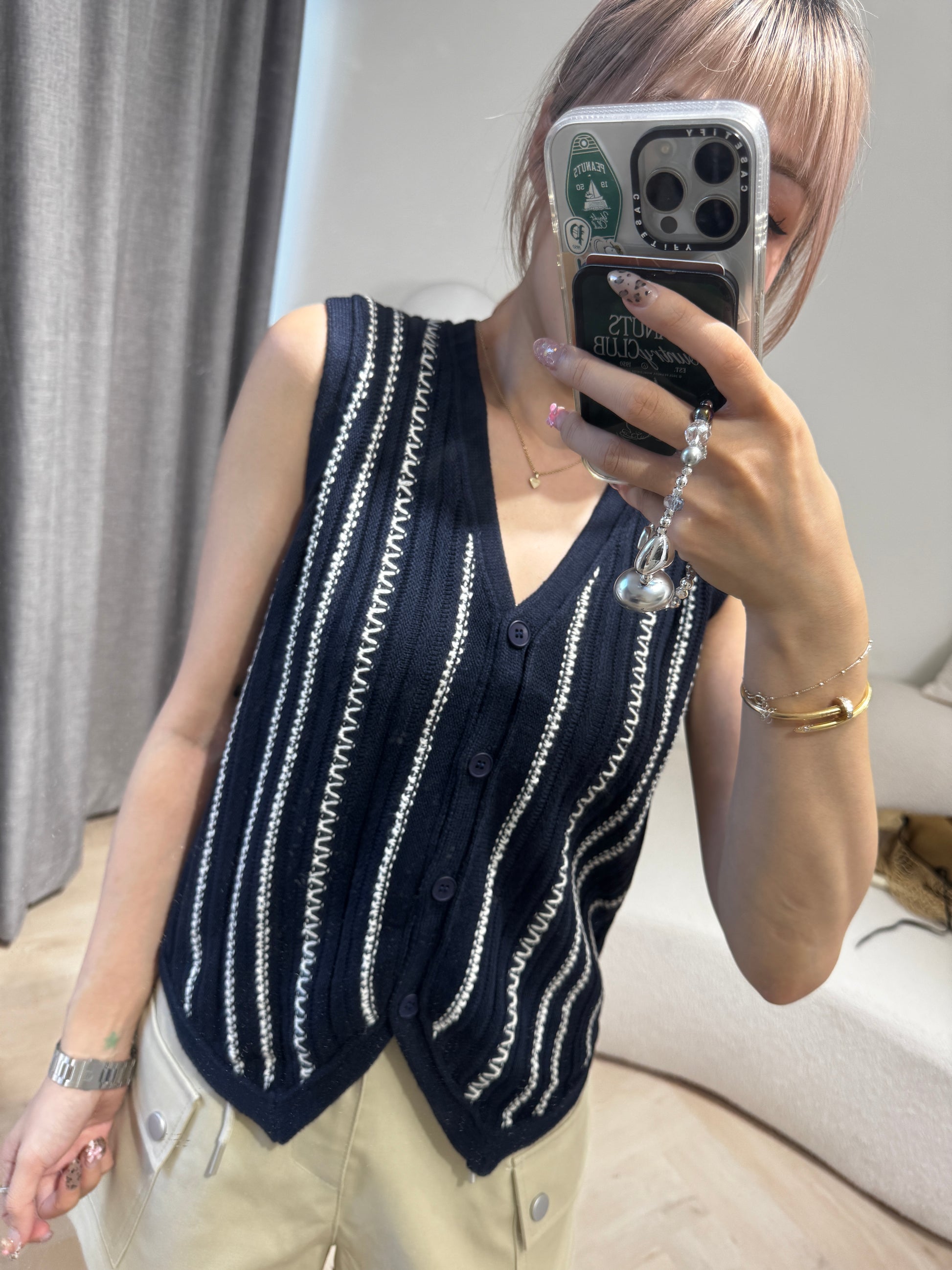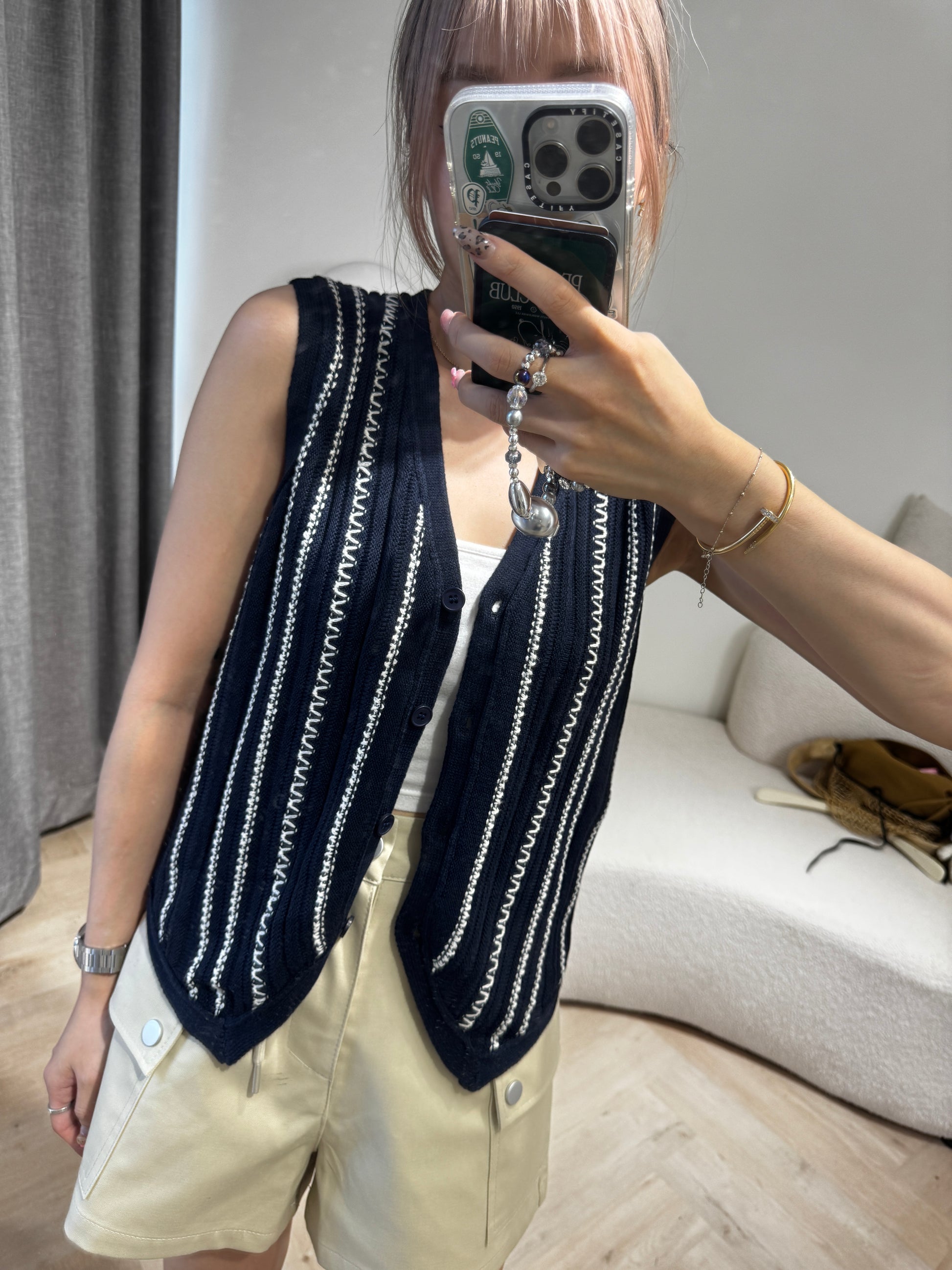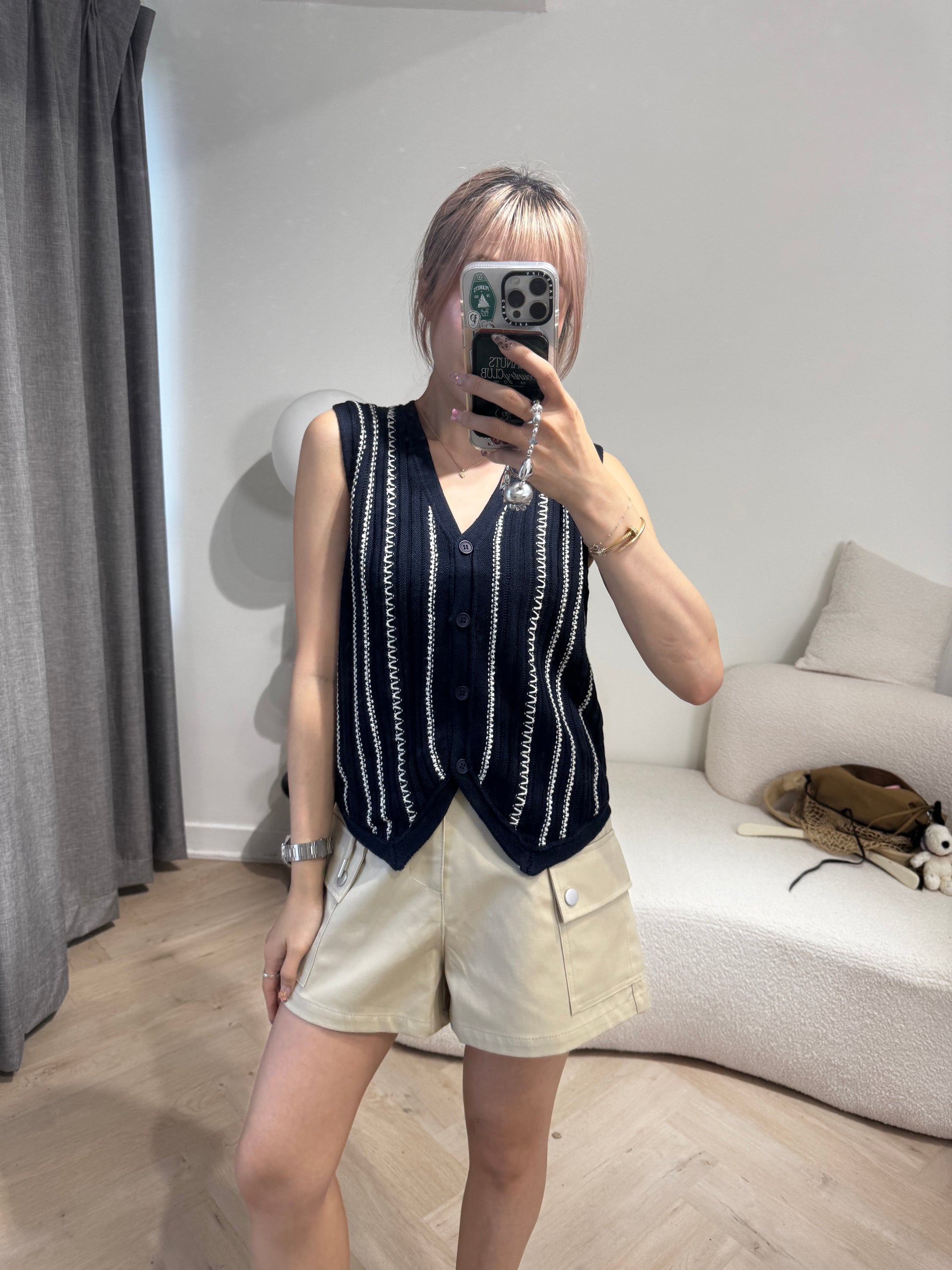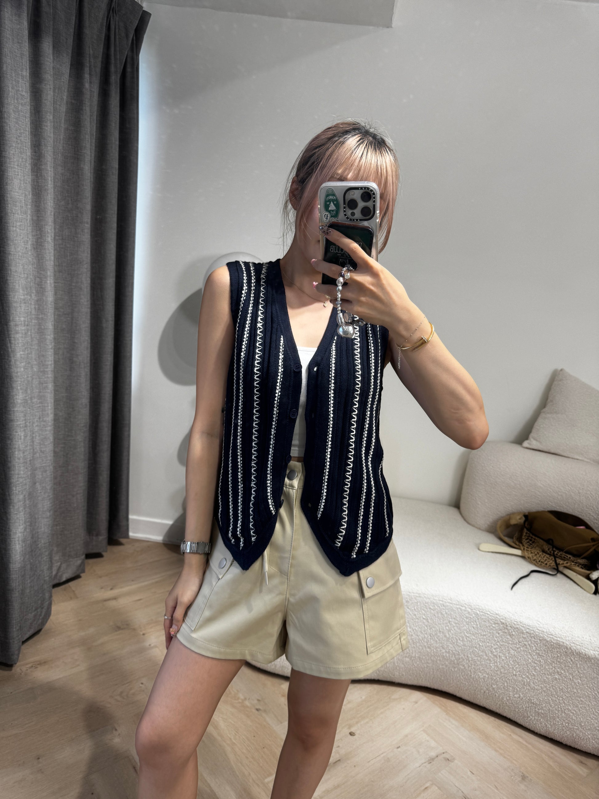白線紋馬甲背心 ( 啡/寶藍 )