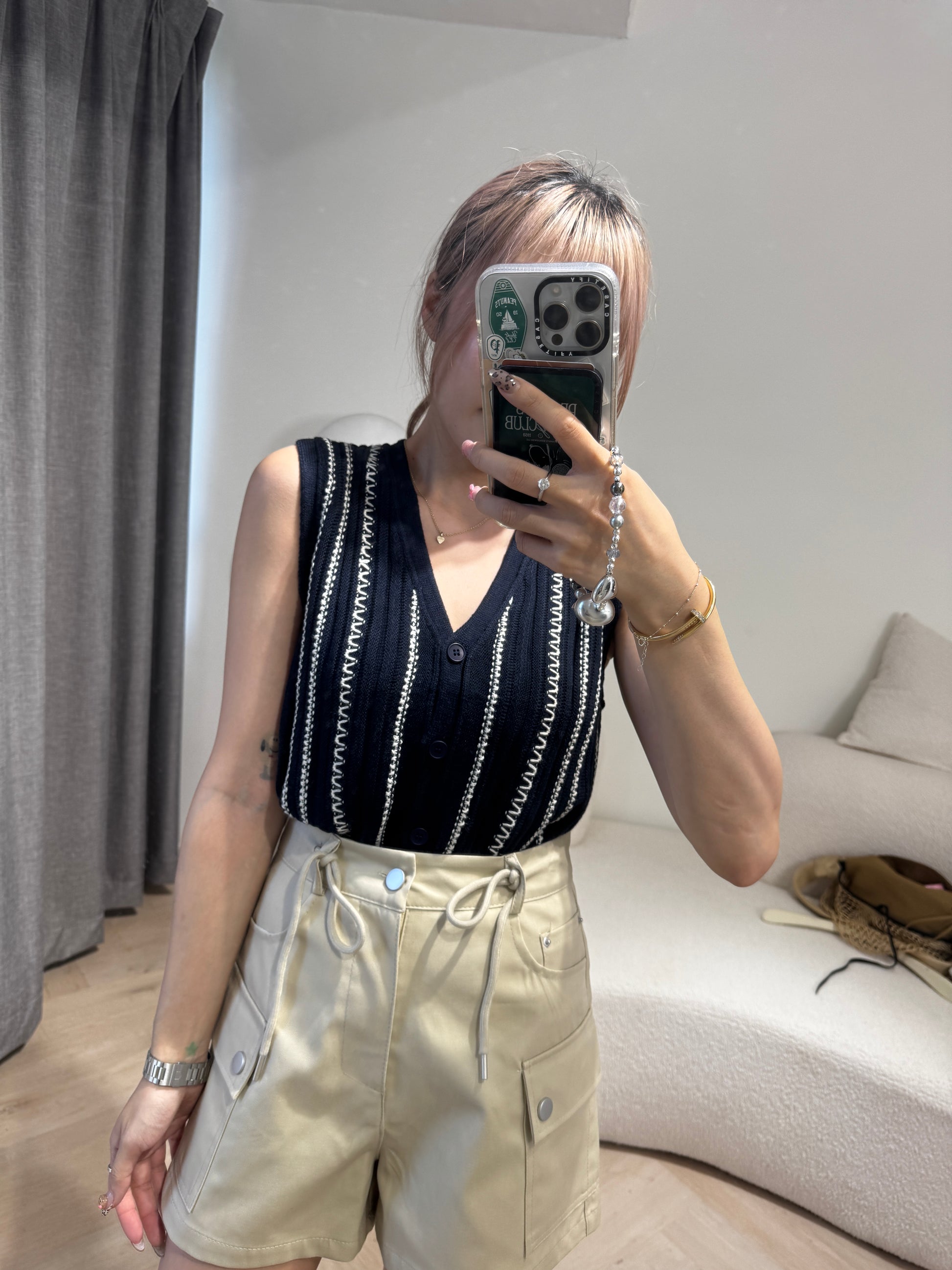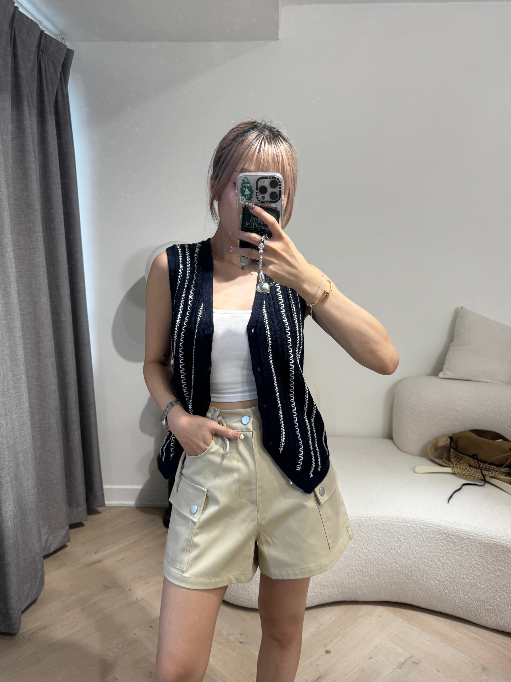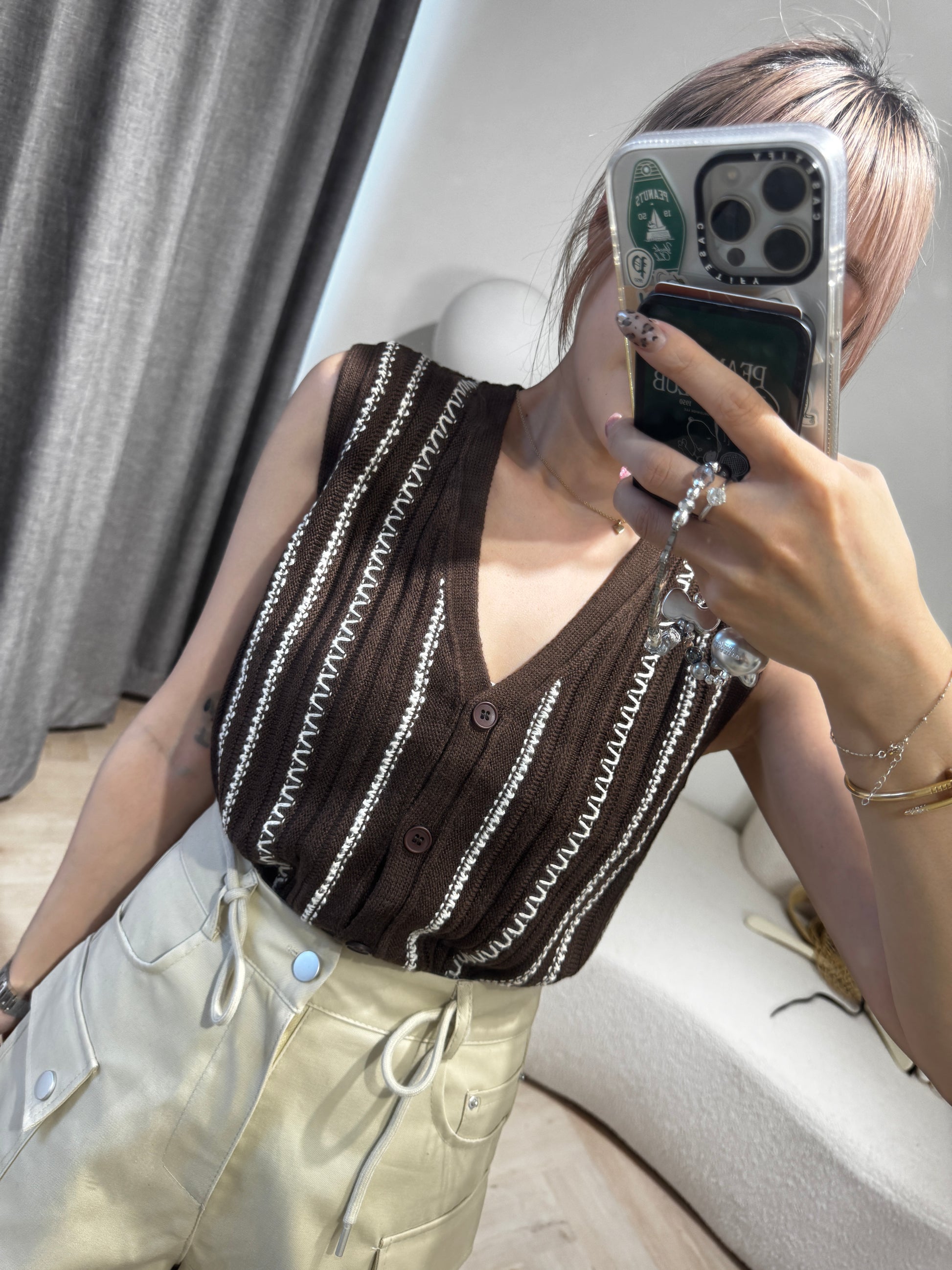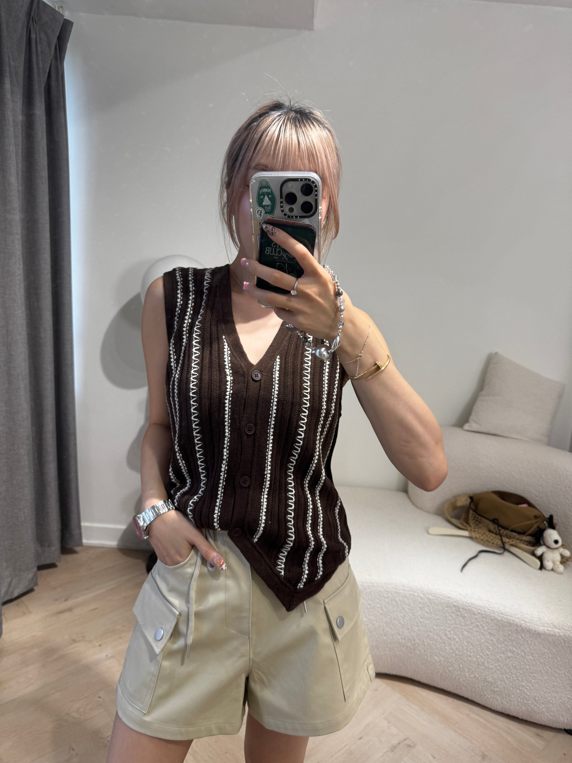 白線紋馬甲背心 ( 啡/寶藍 )