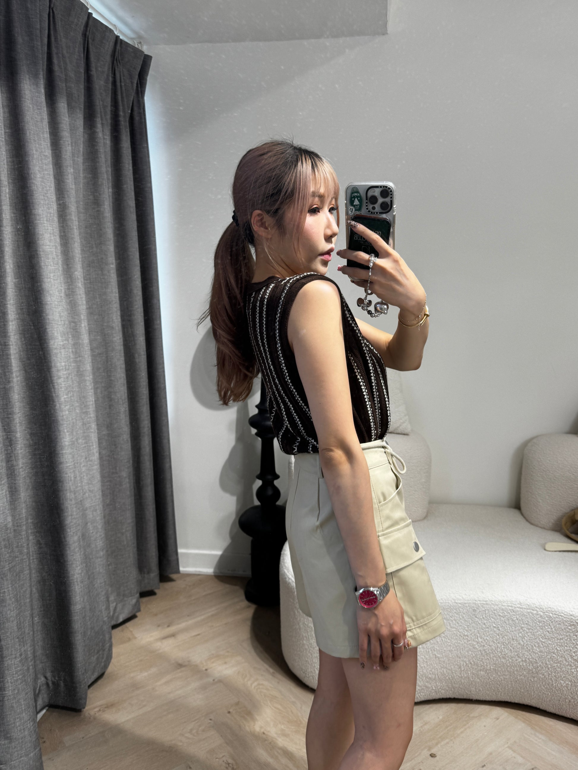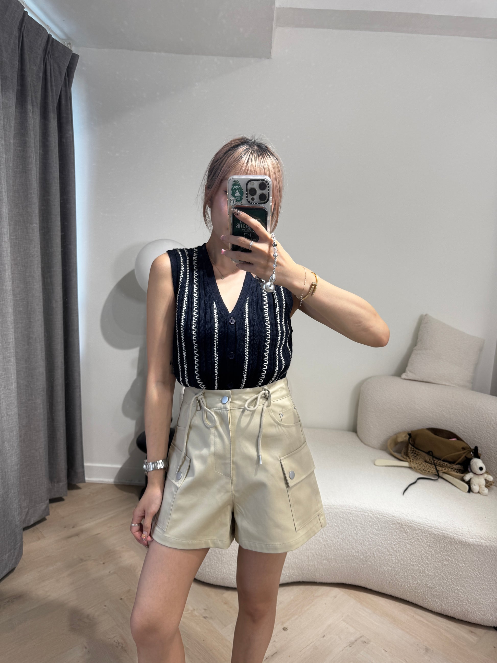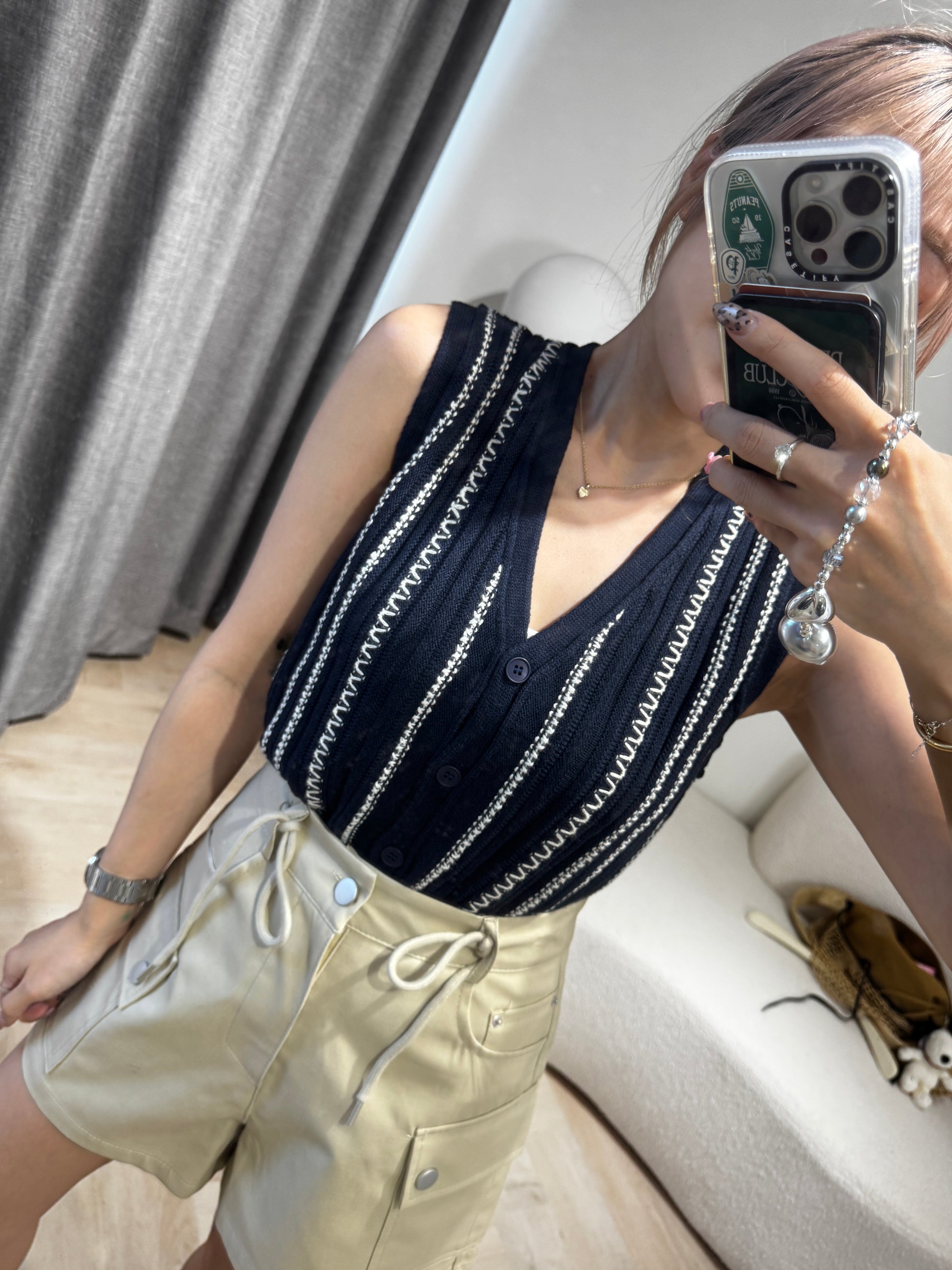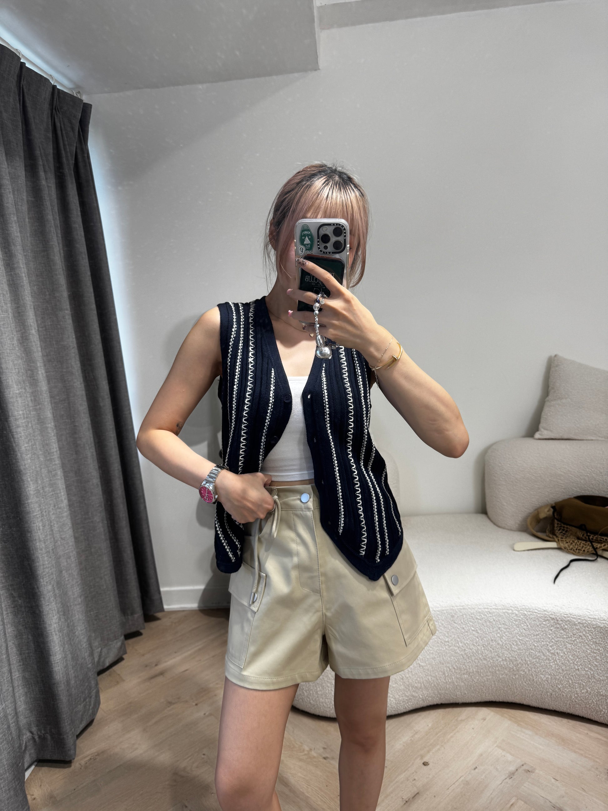 白線紋馬甲背心 ( 啡/寶藍 )