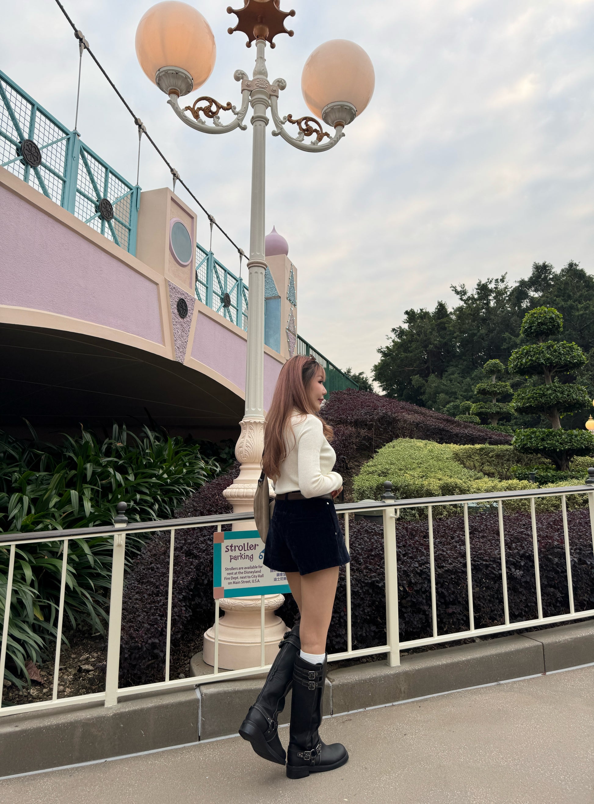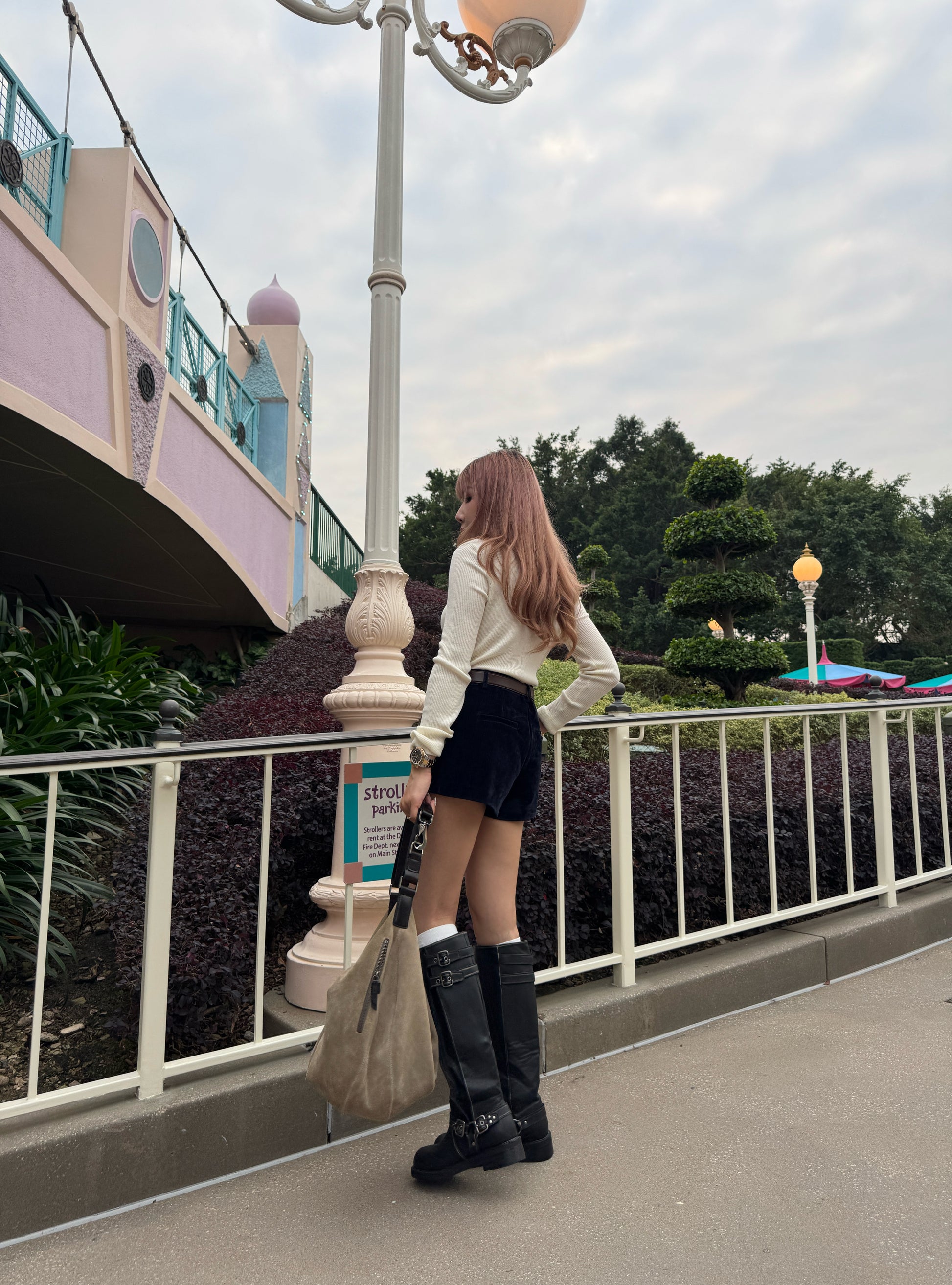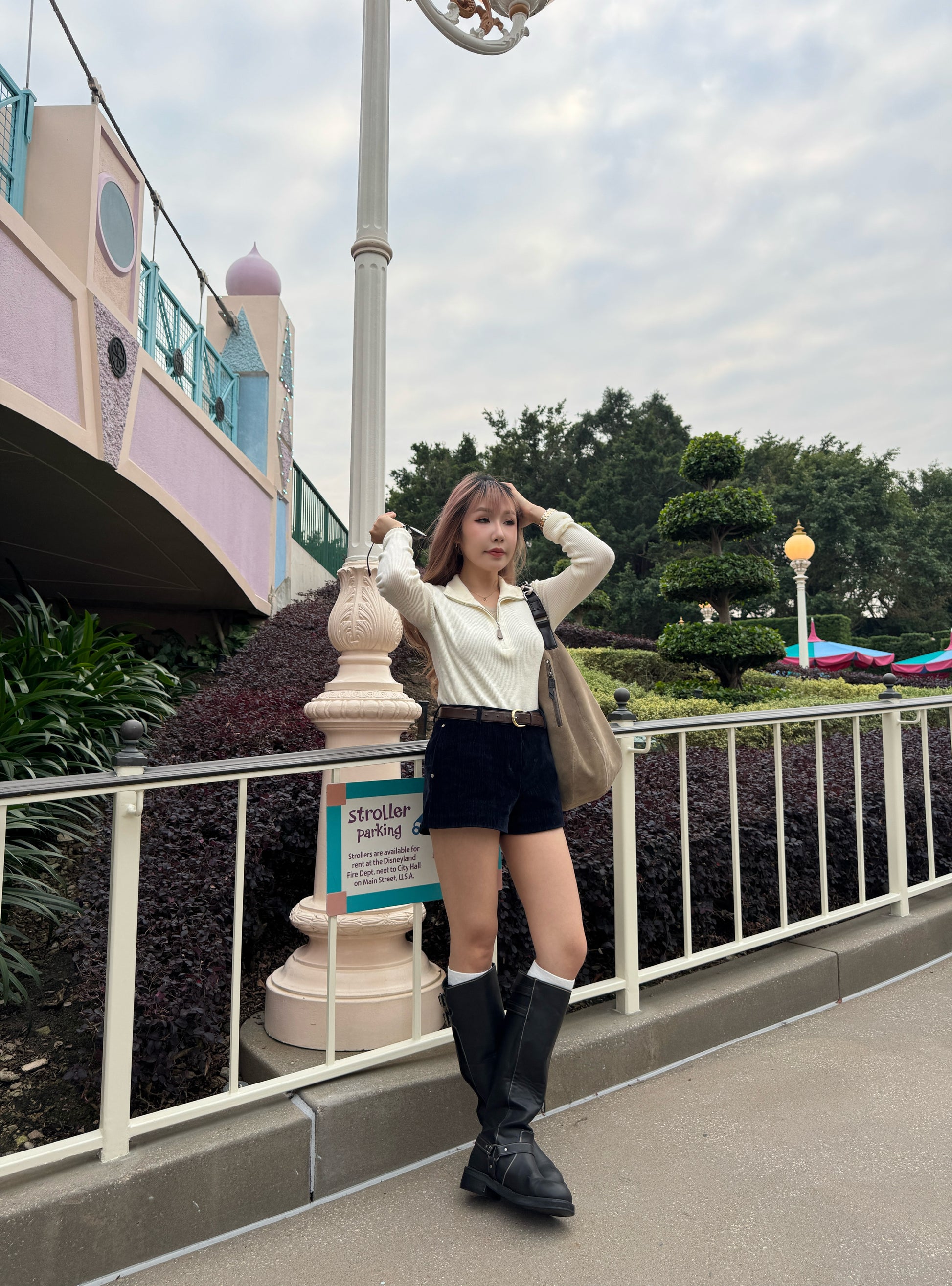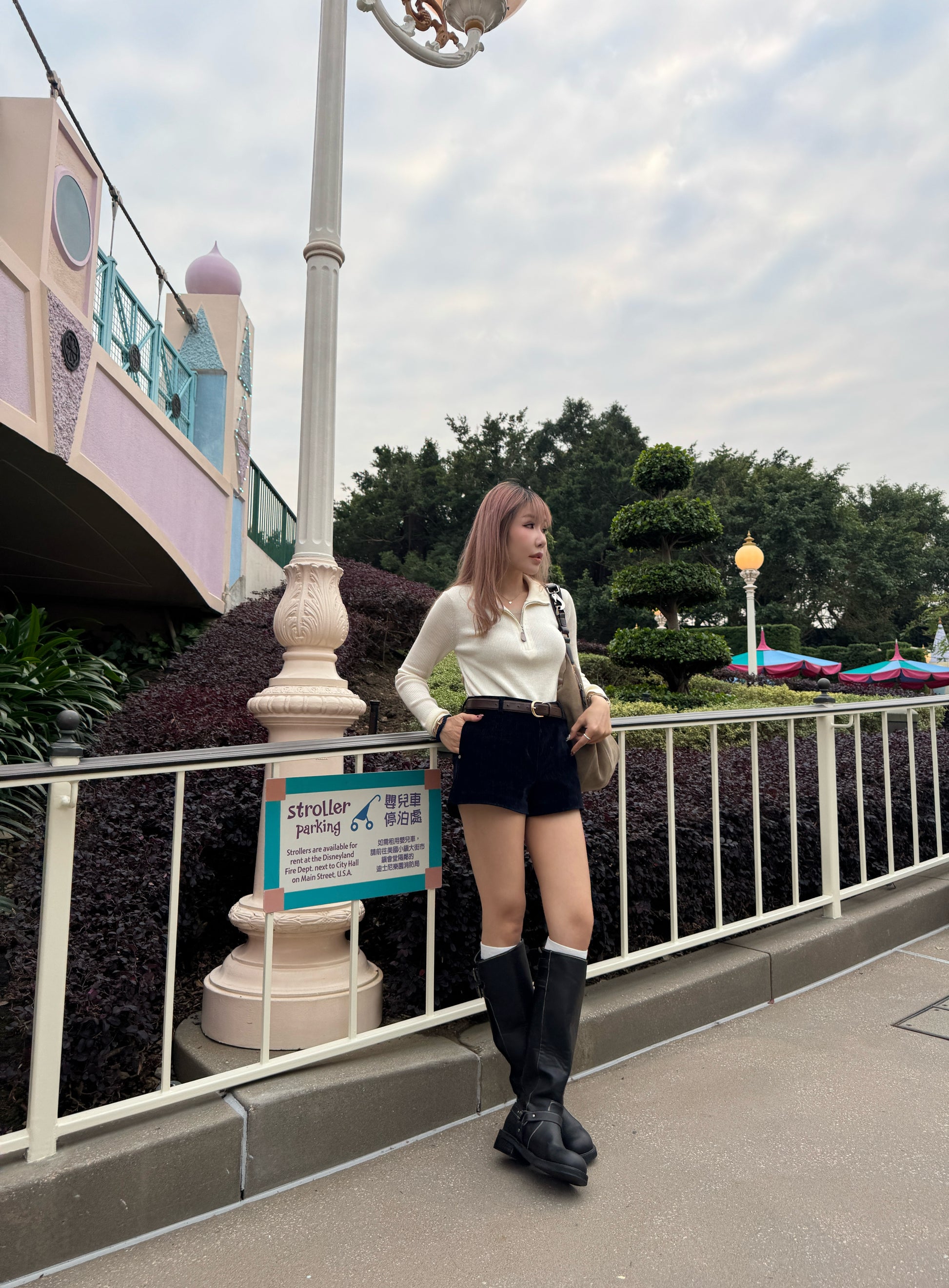 皮扣拉鍊假兩件上衣 ( 杏/米白 )