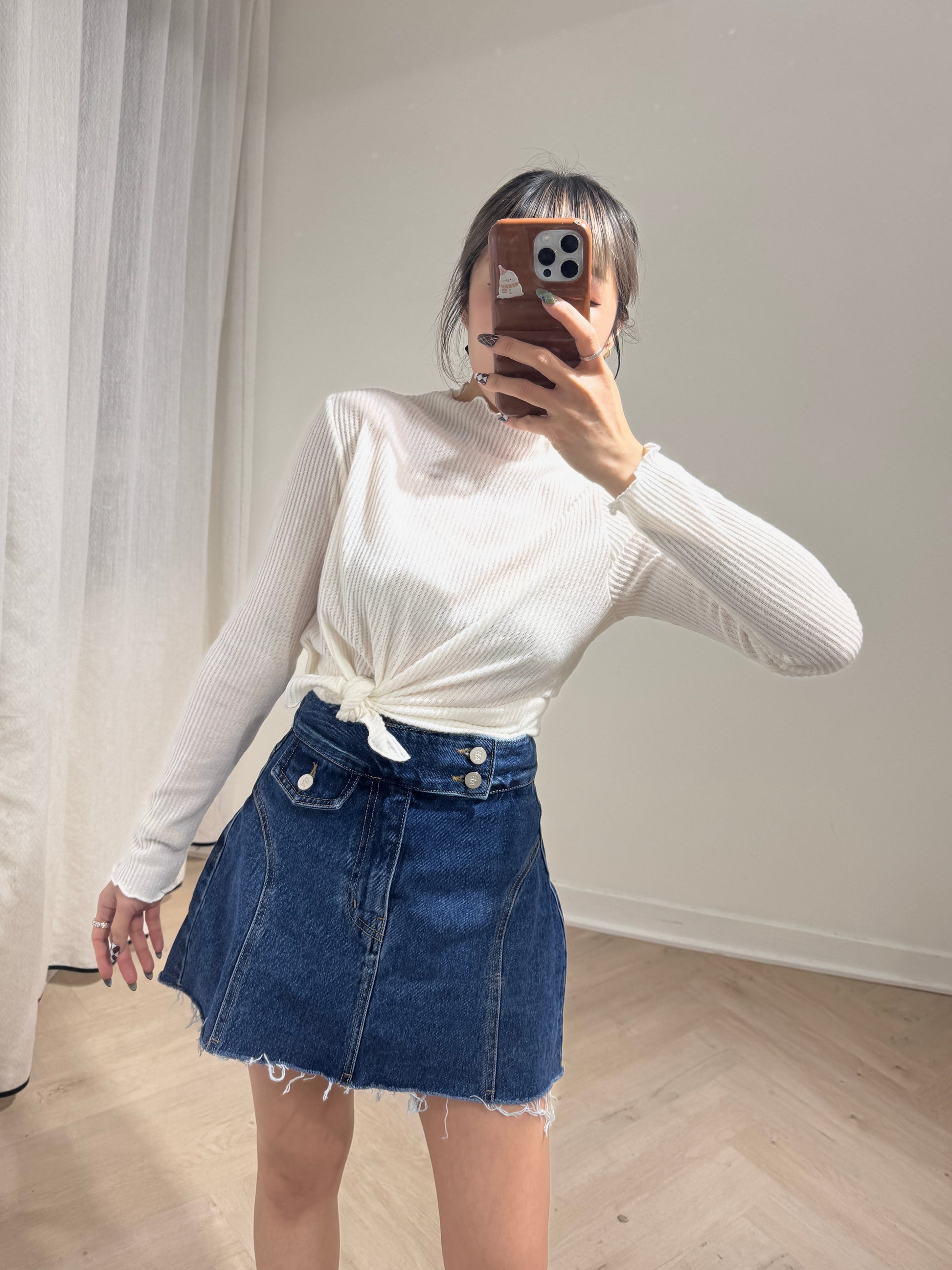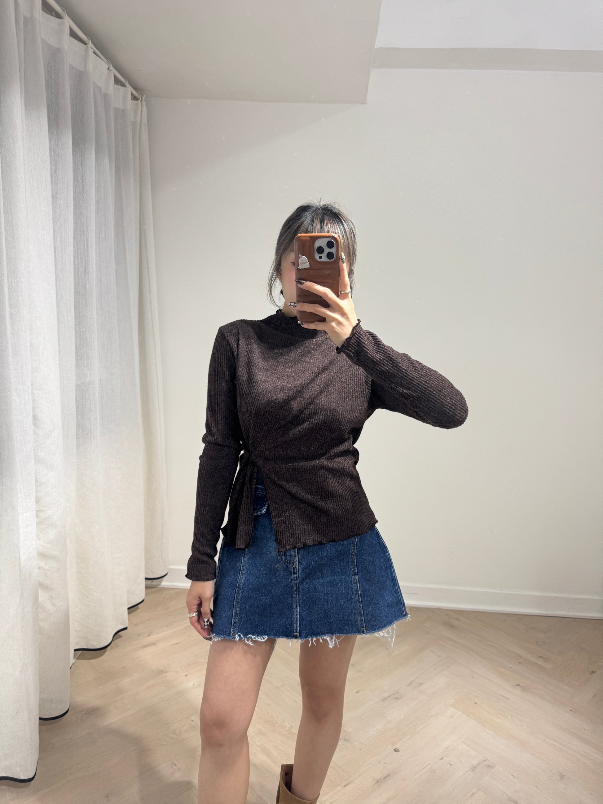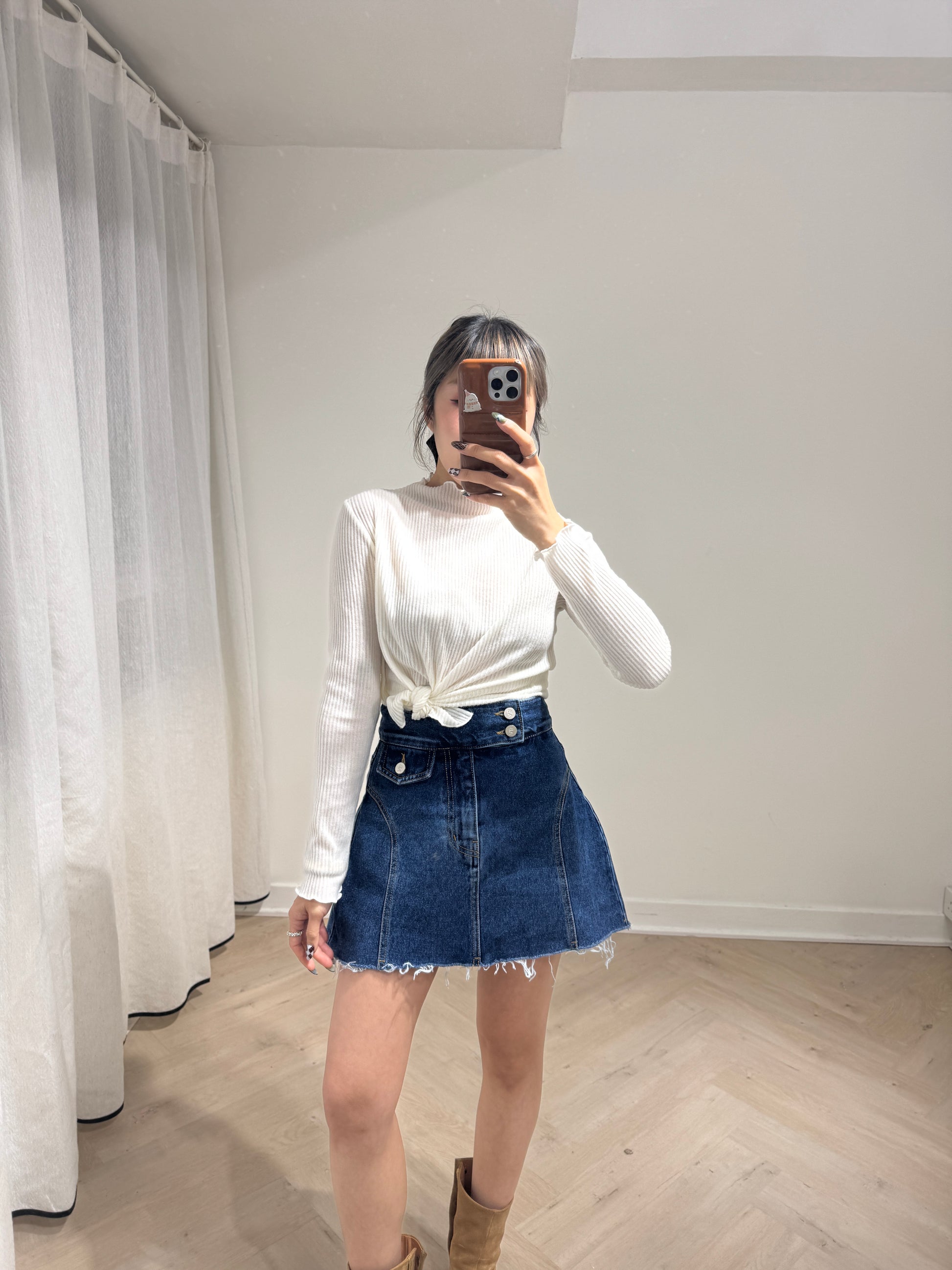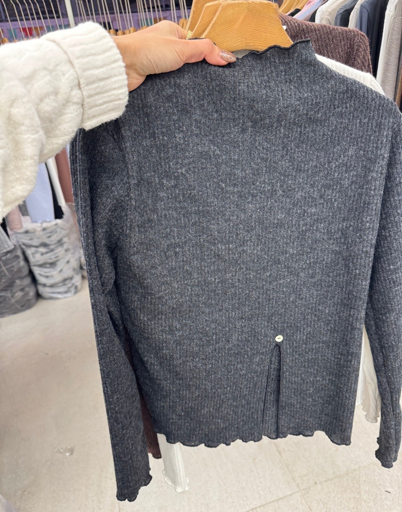 直紋木耳邊側鈕扣上衣 ( 米白/啡/深灰 )