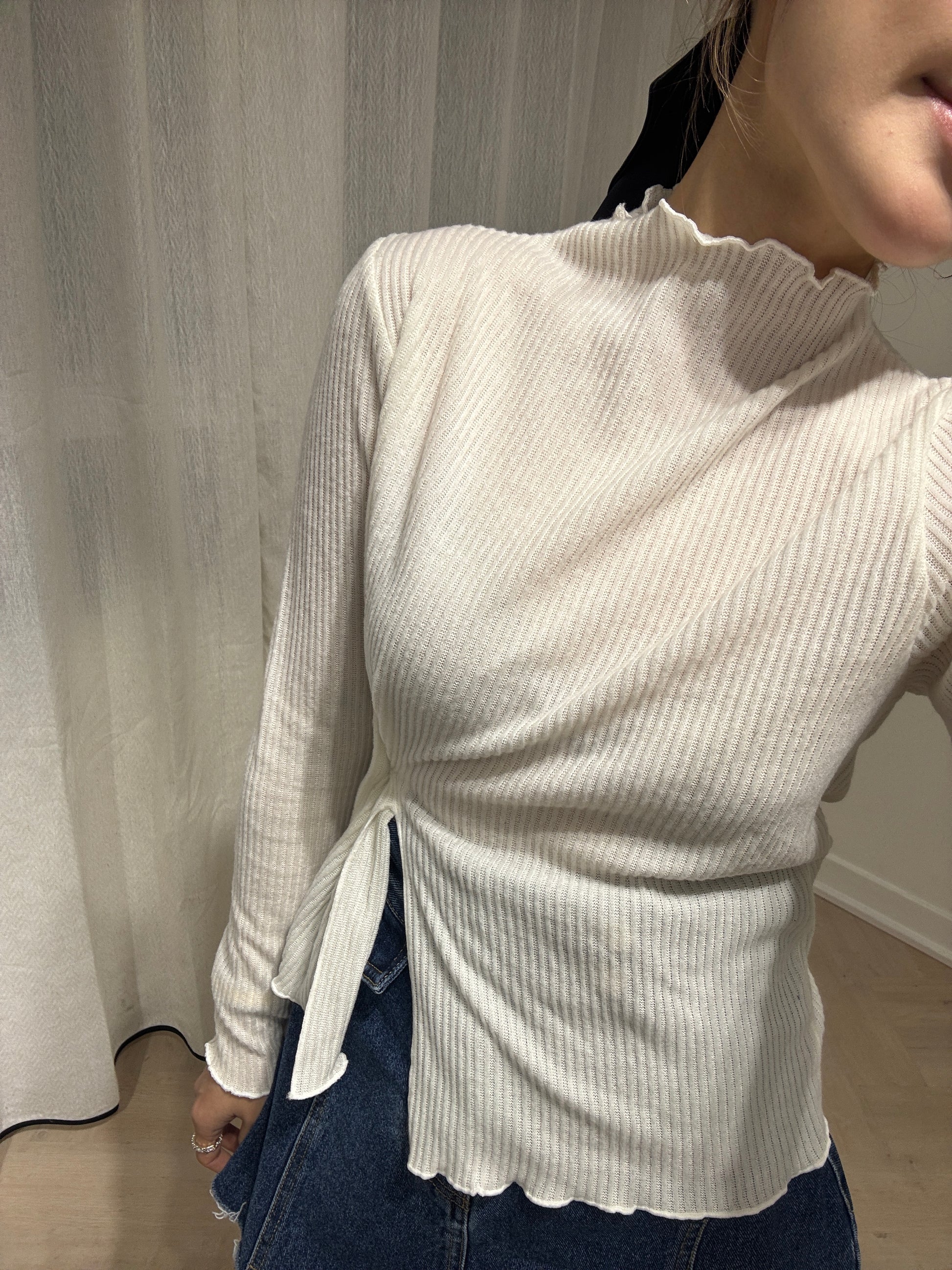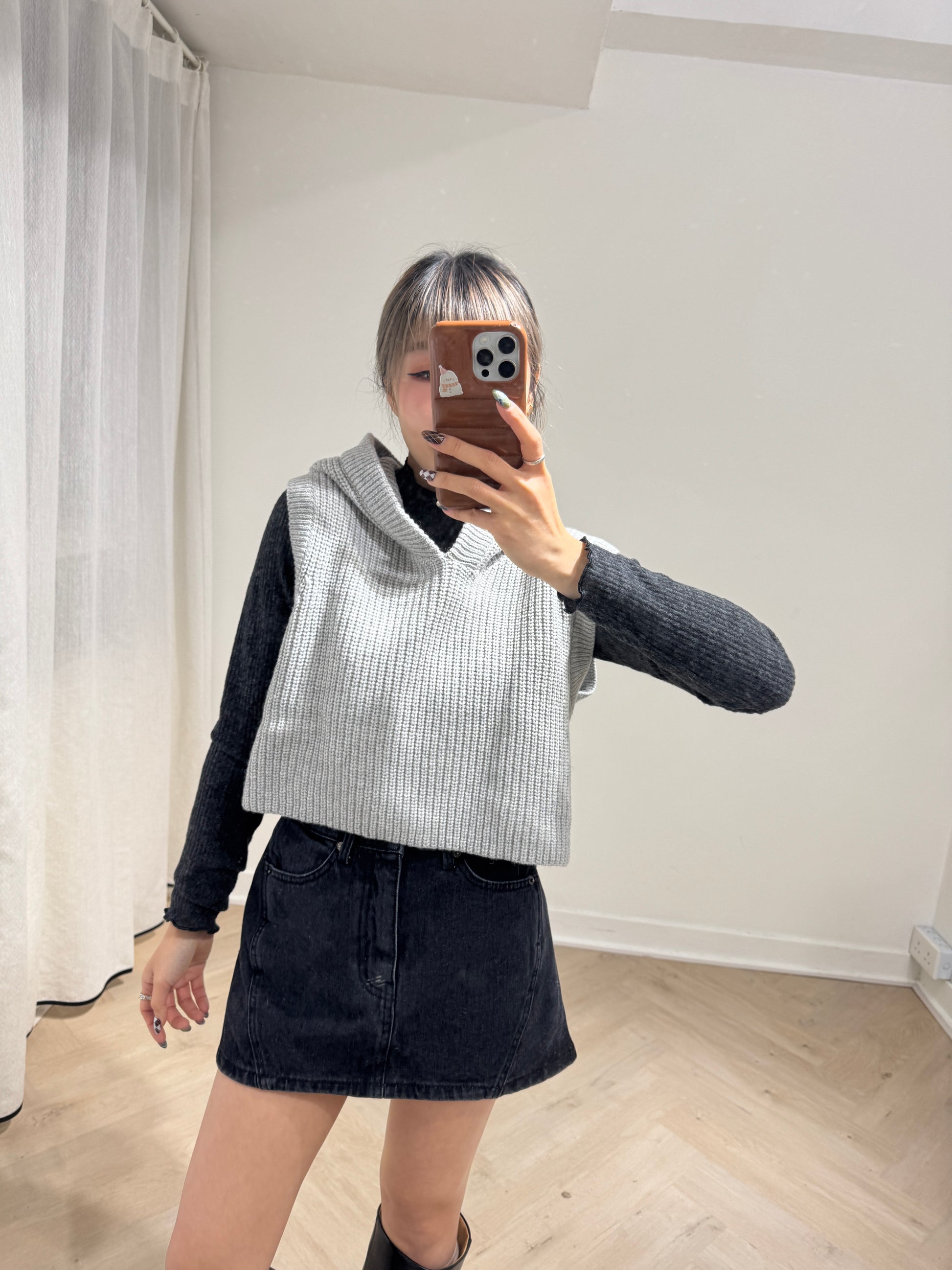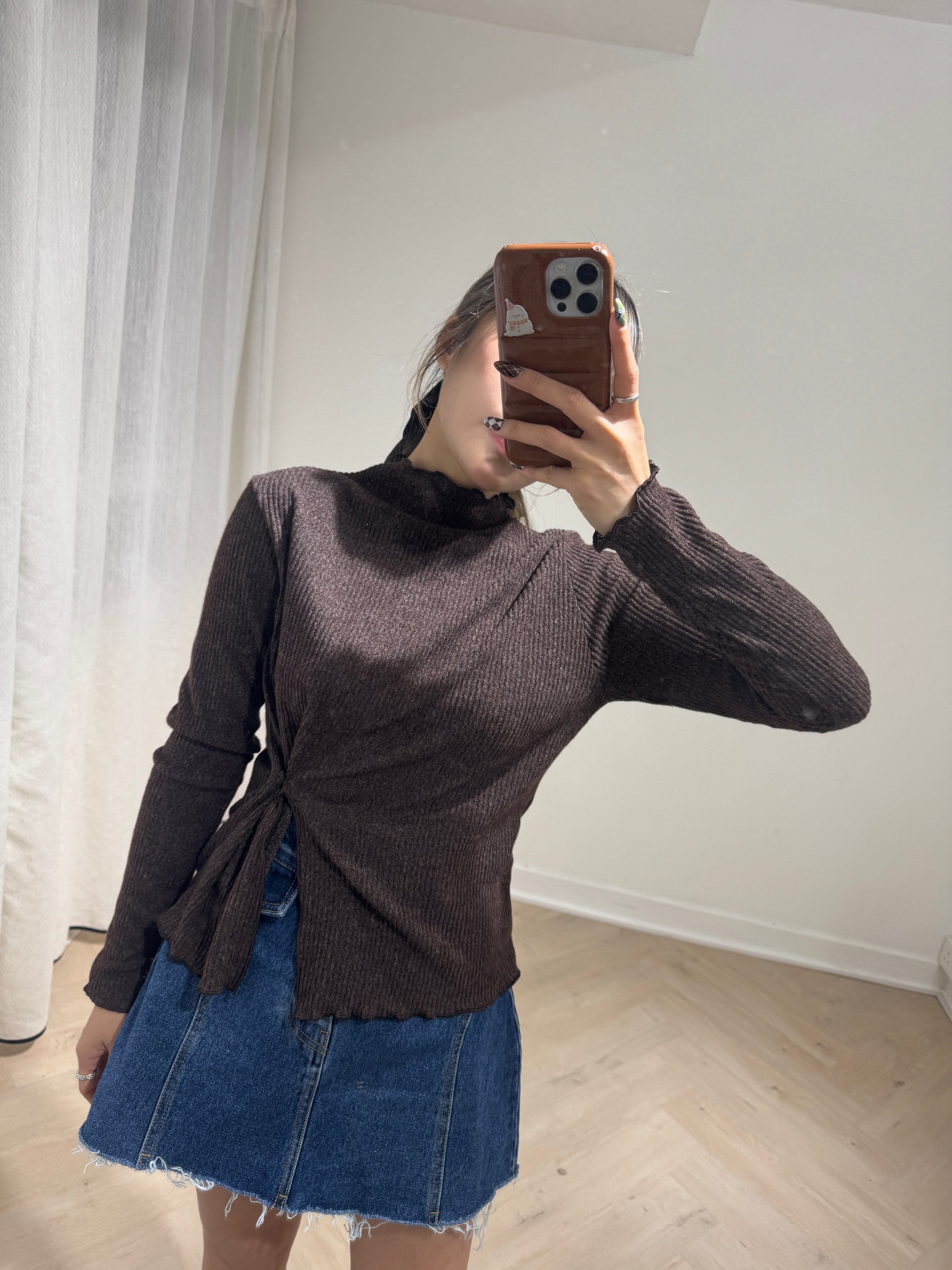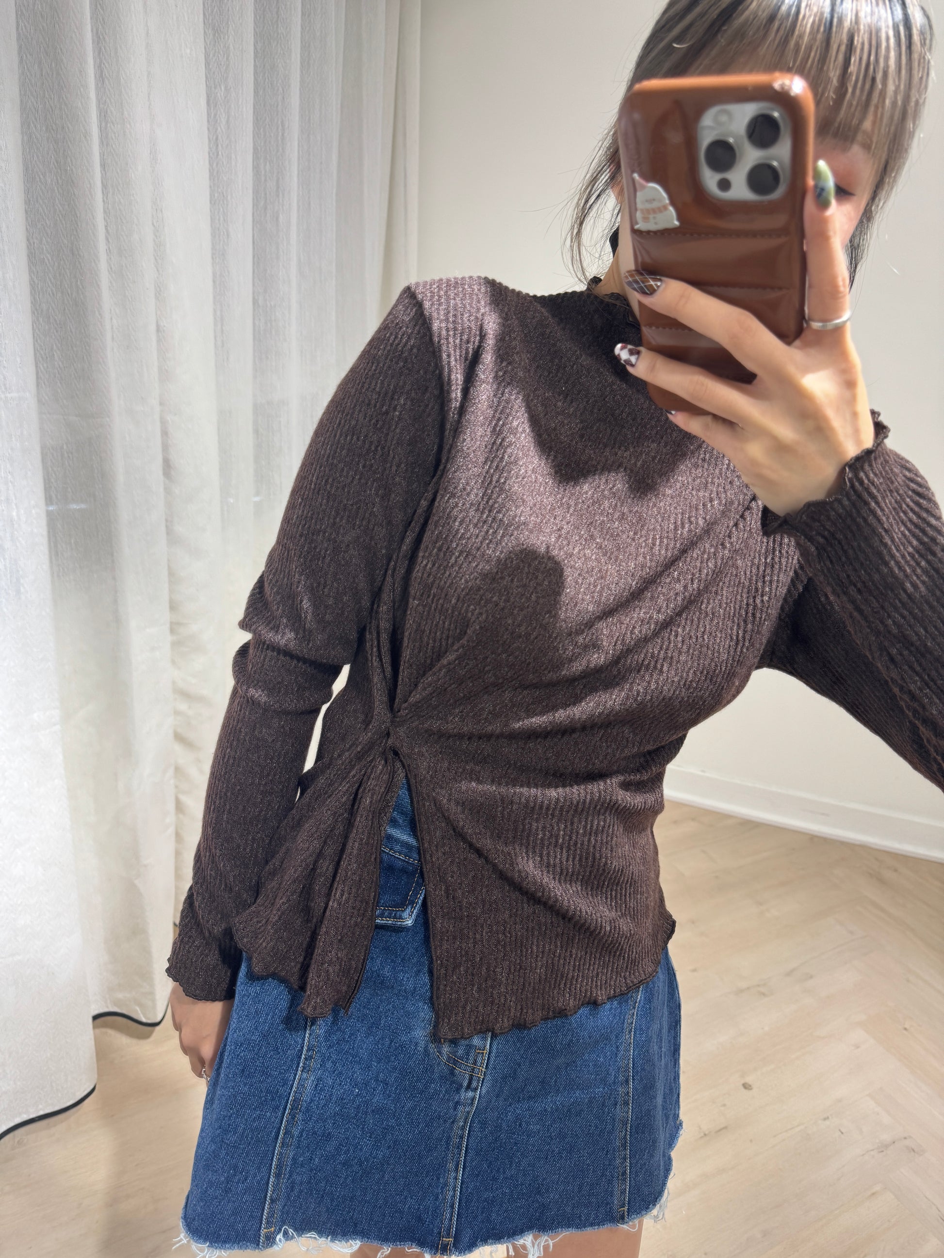 直紋木耳邊側鈕扣上衣 ( 米白/啡/深灰 )