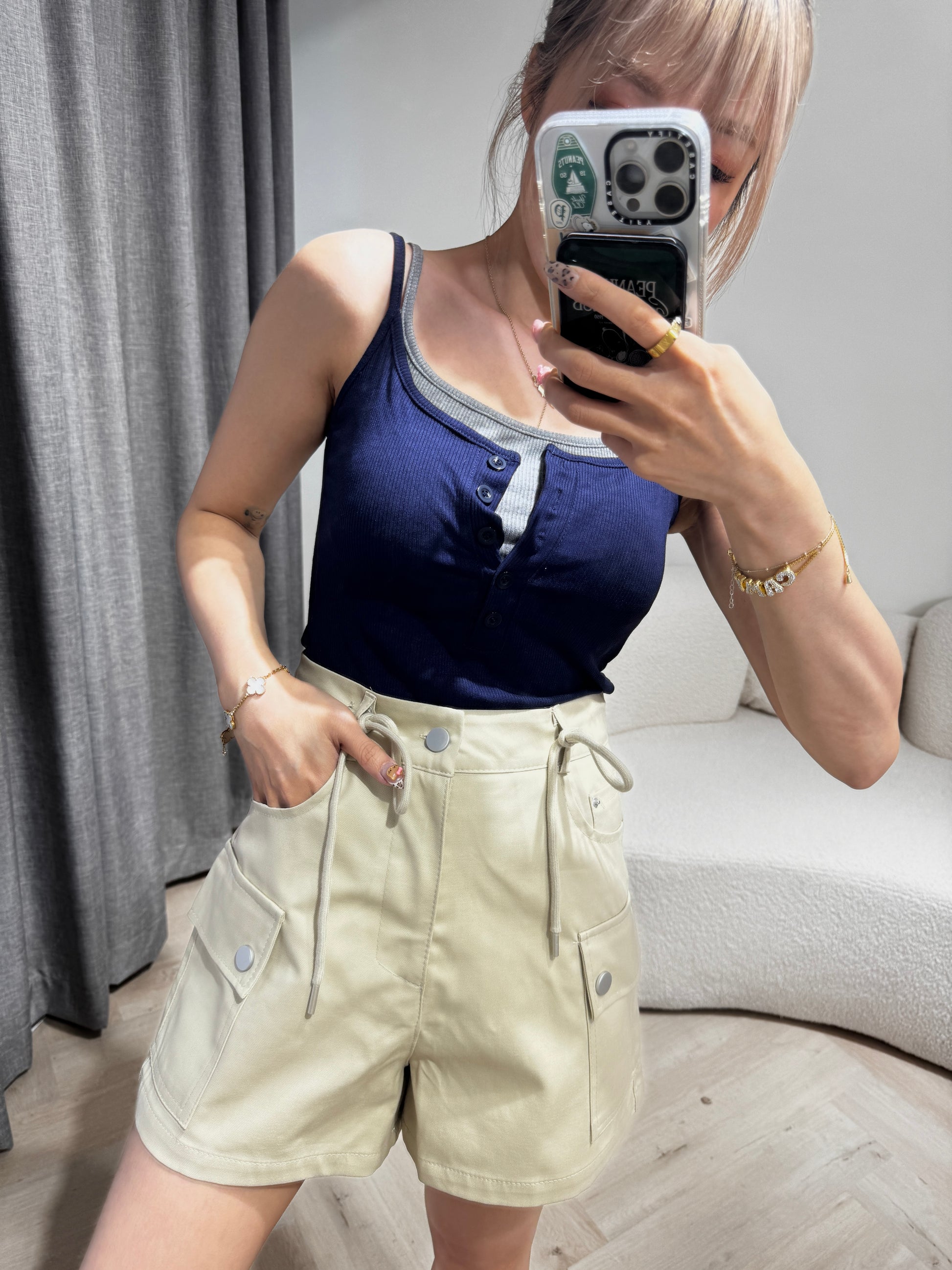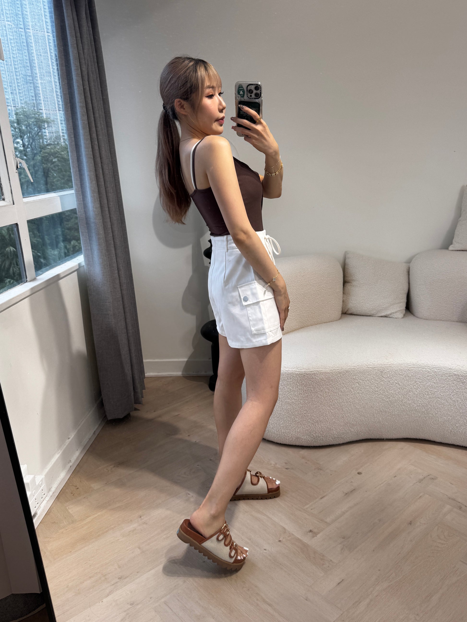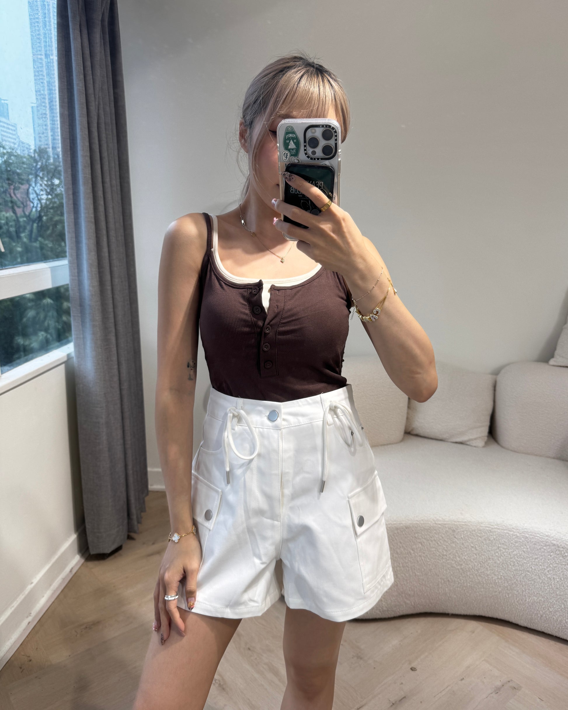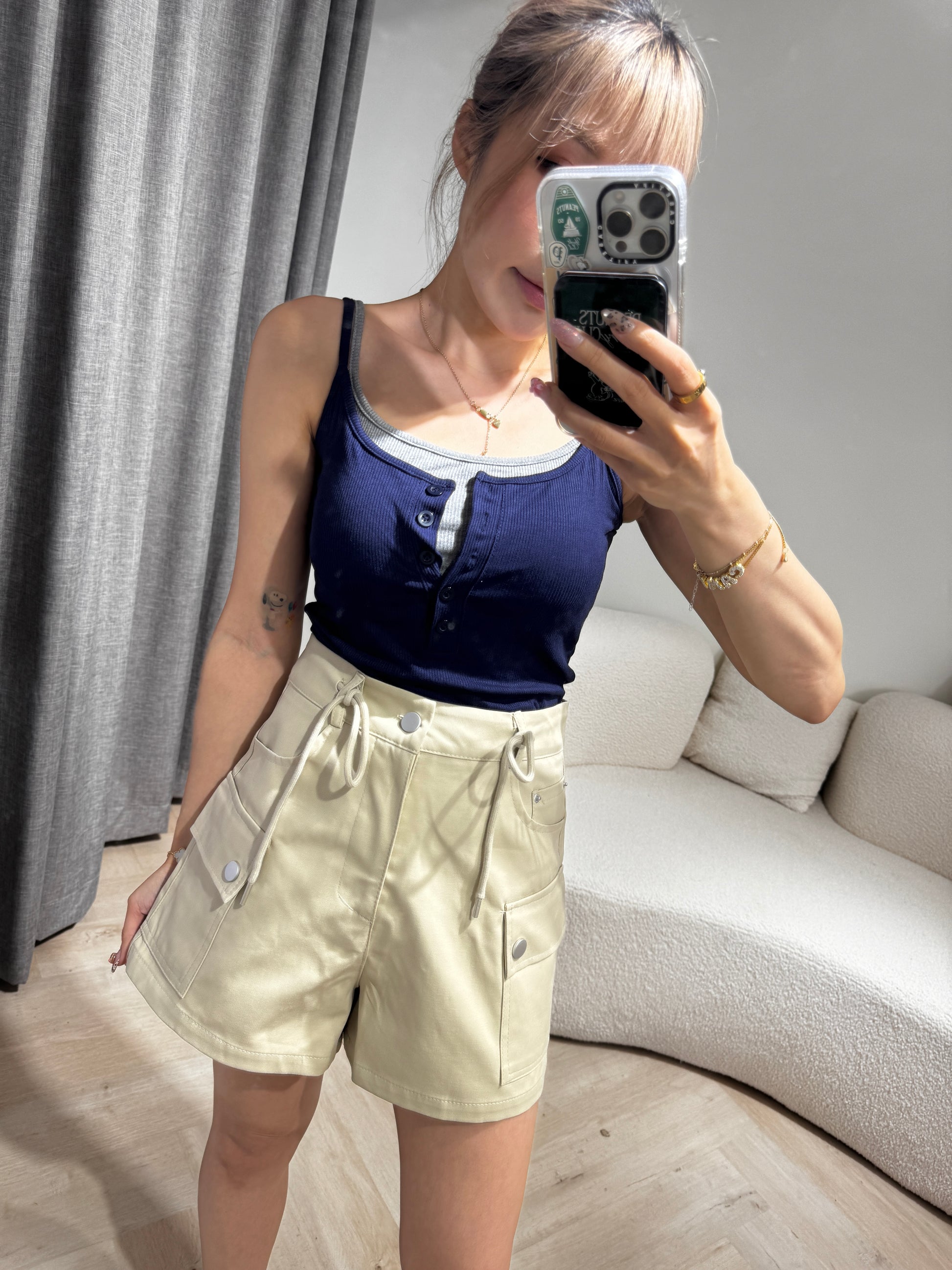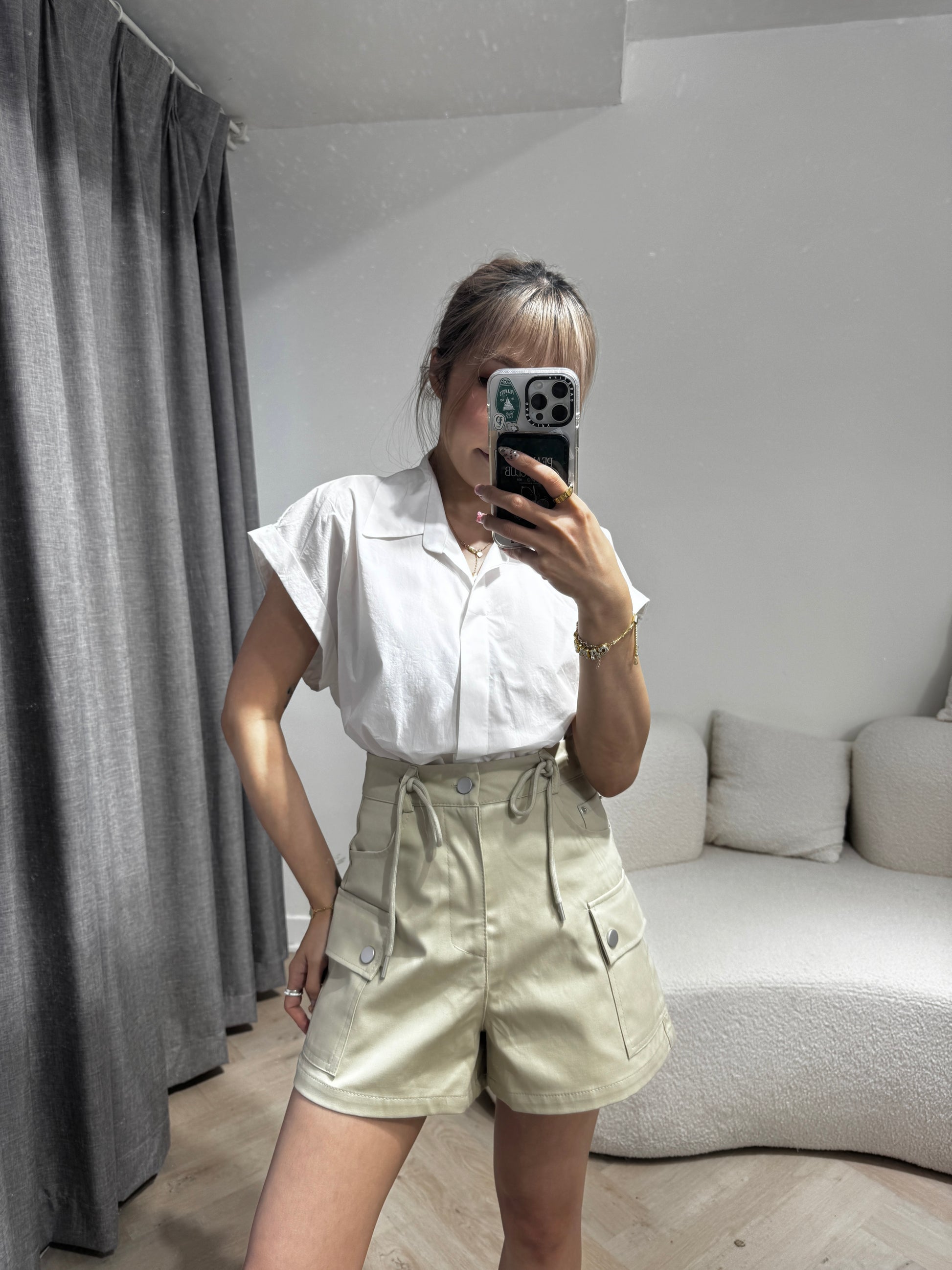 索繩口袋短褲 ( 白/杏 )