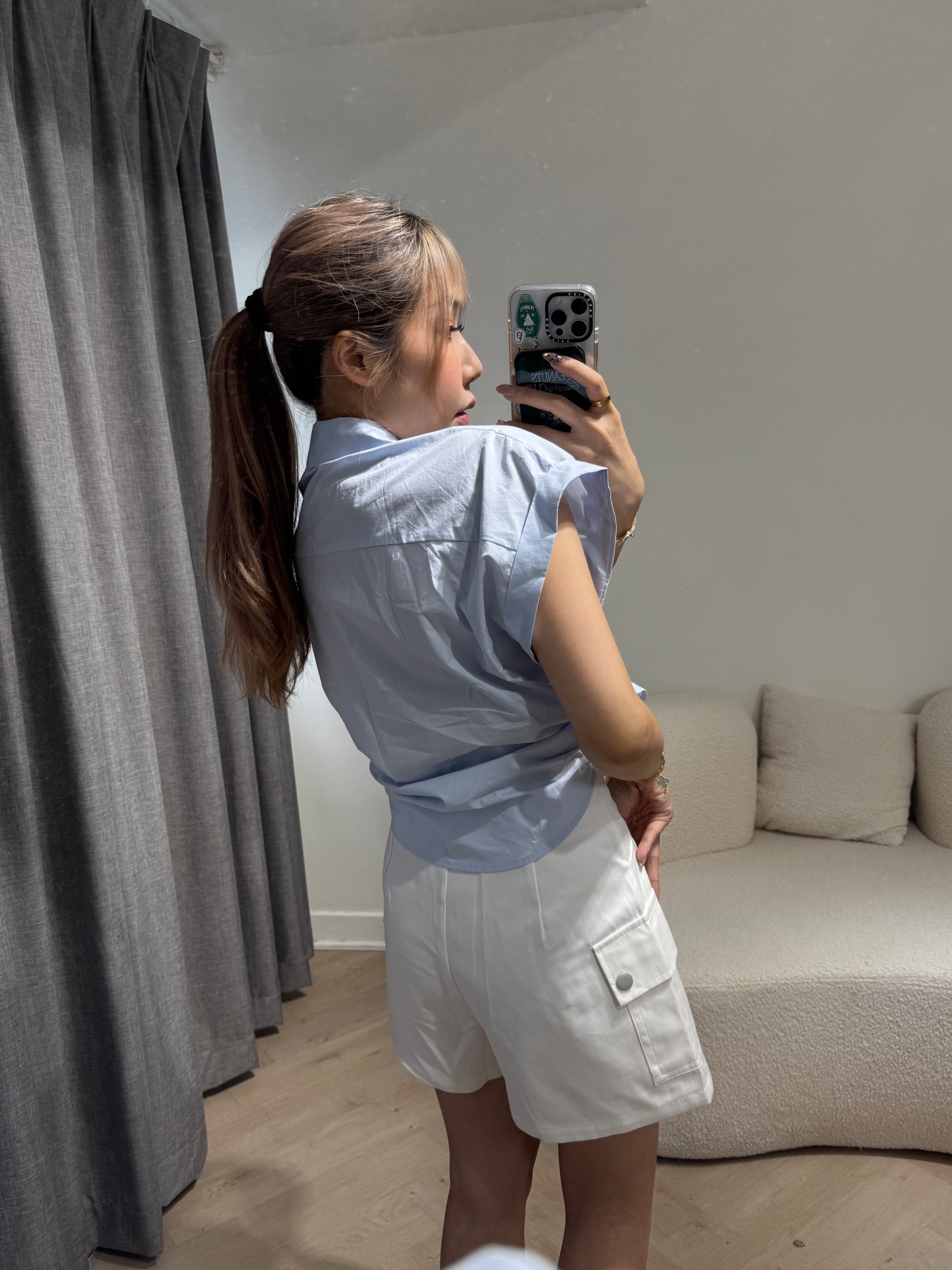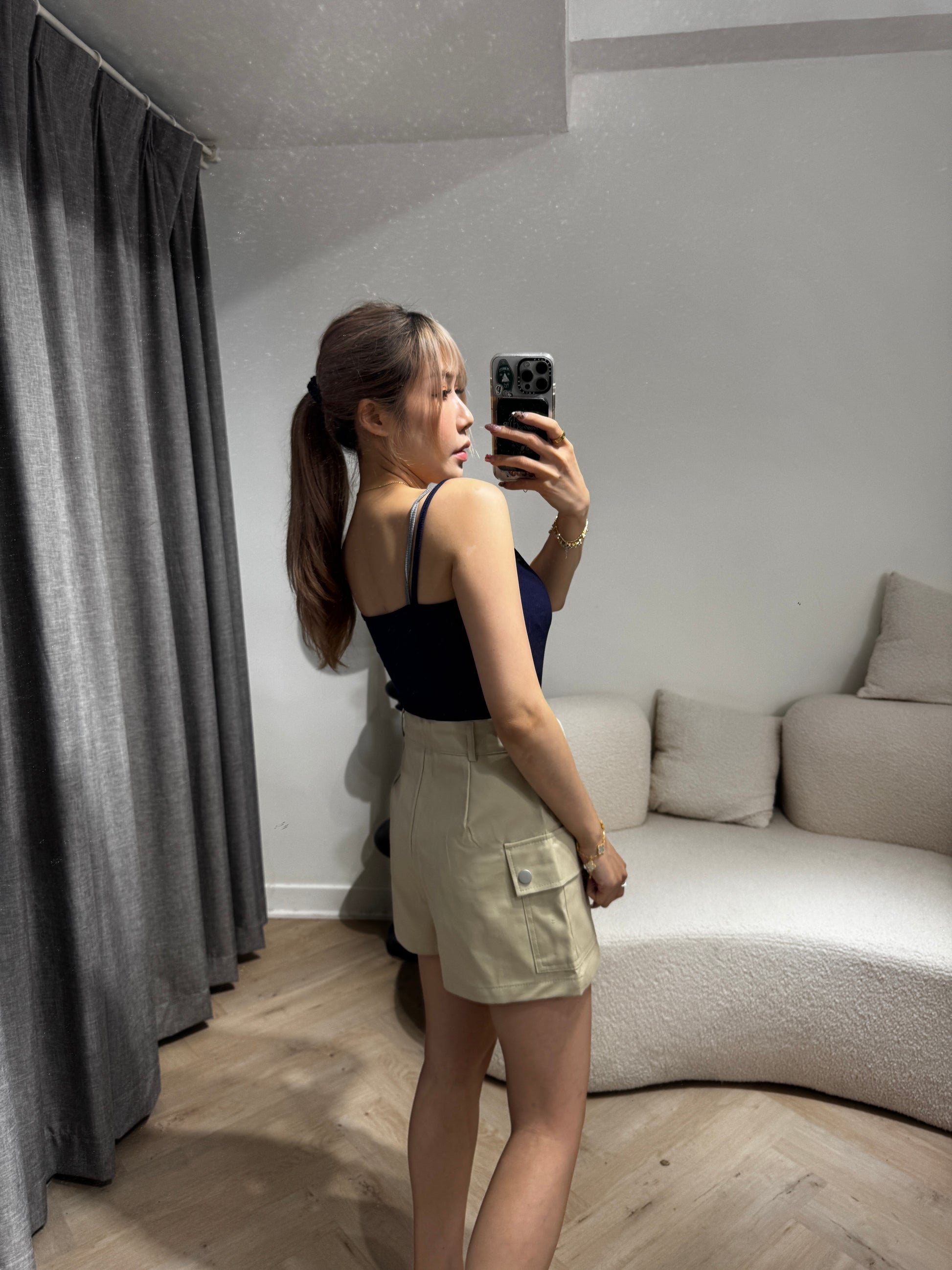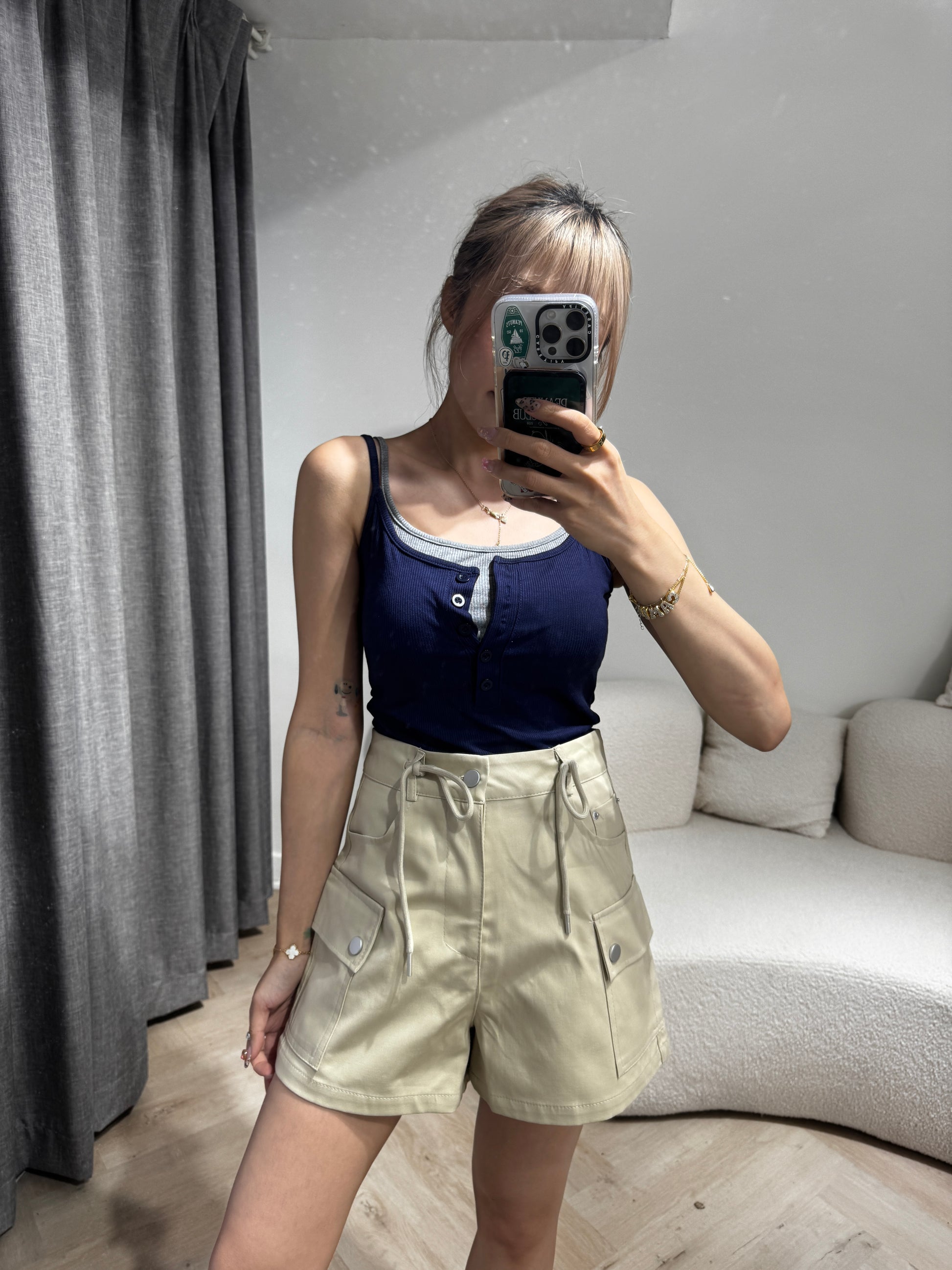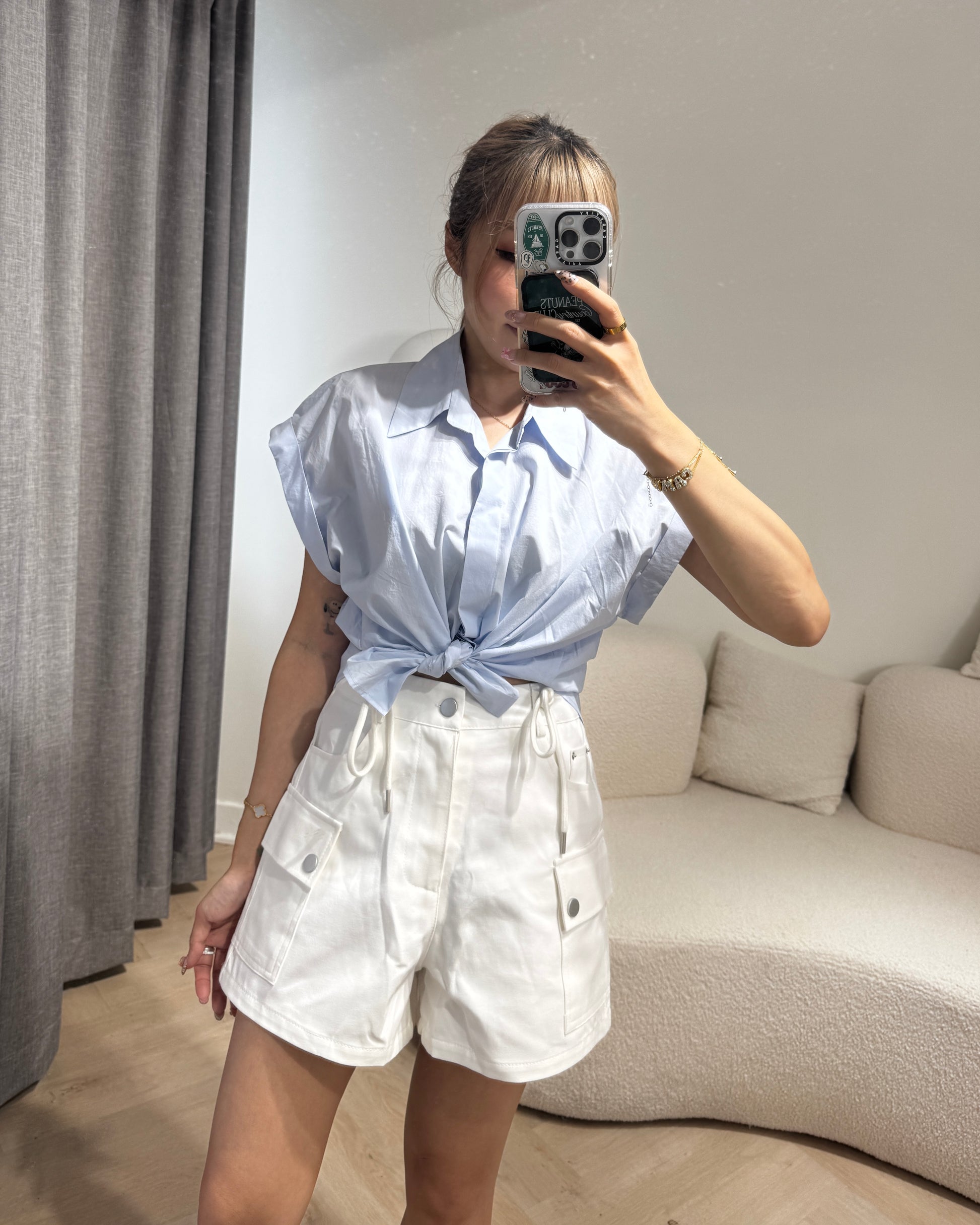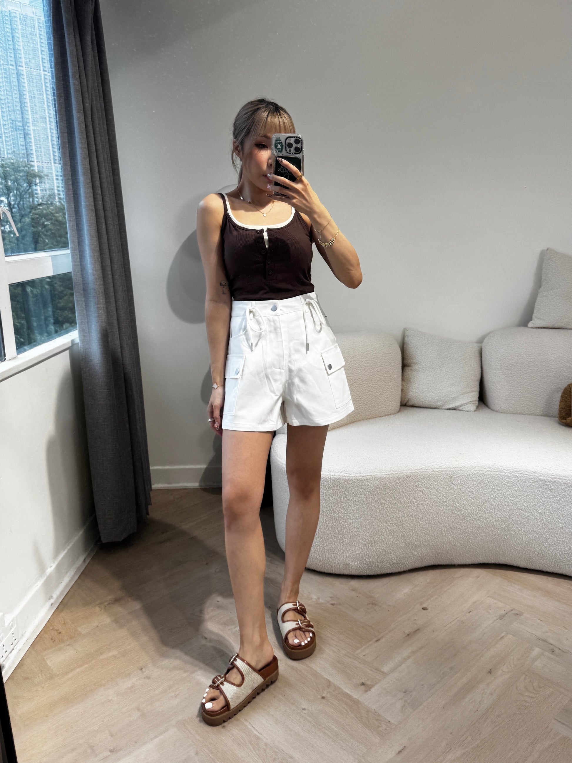 索繩口袋短褲 ( 白/杏 )