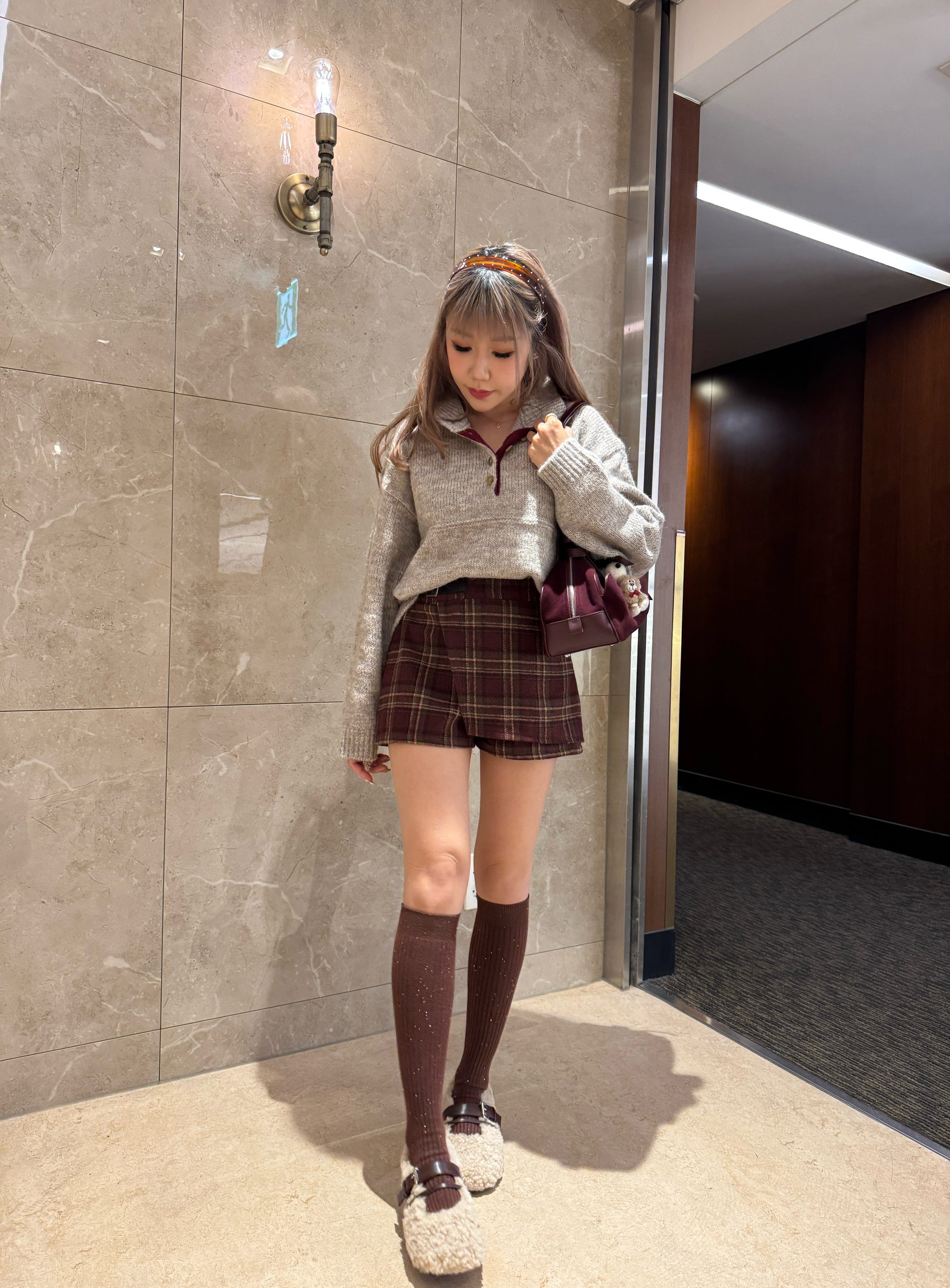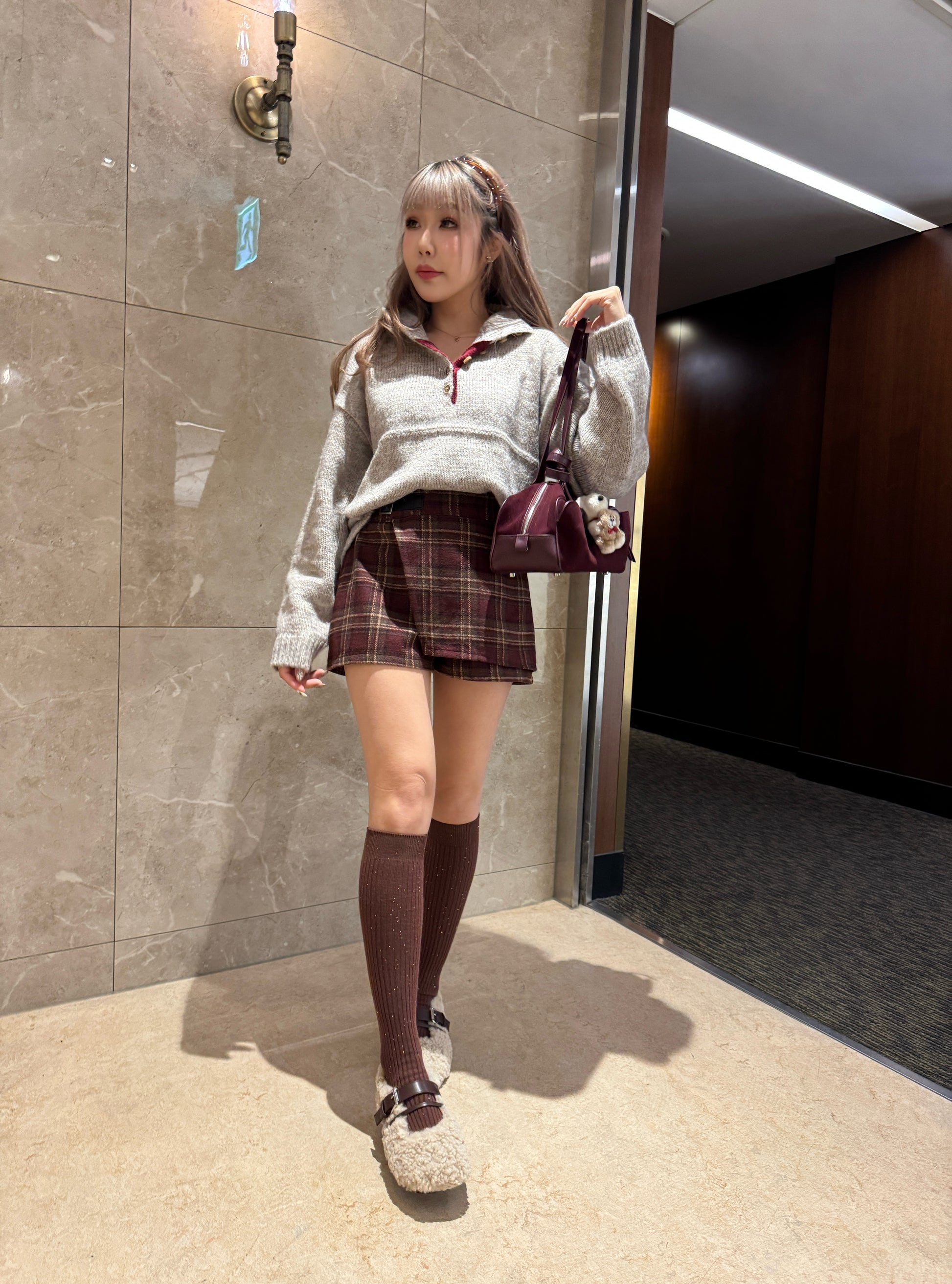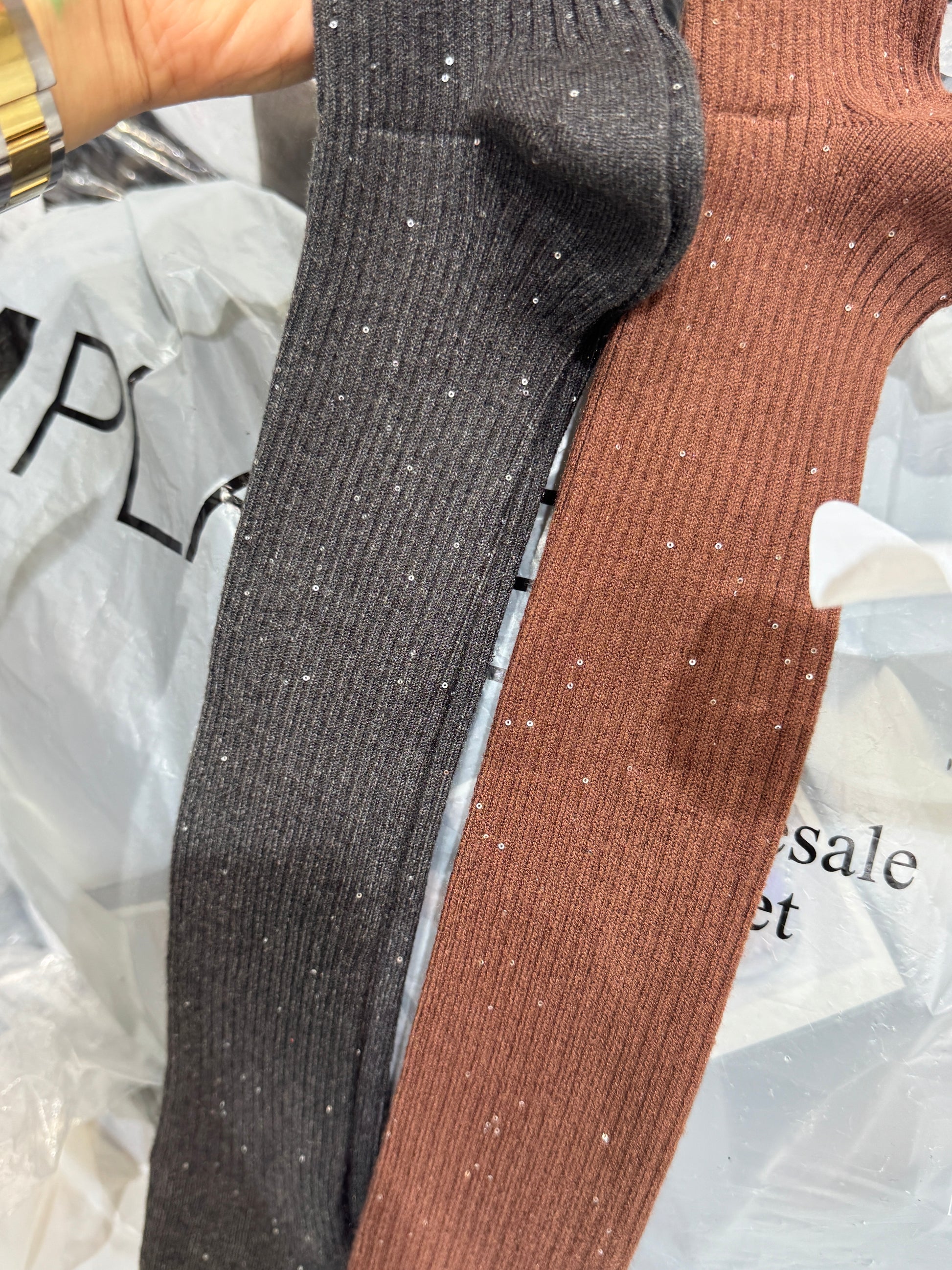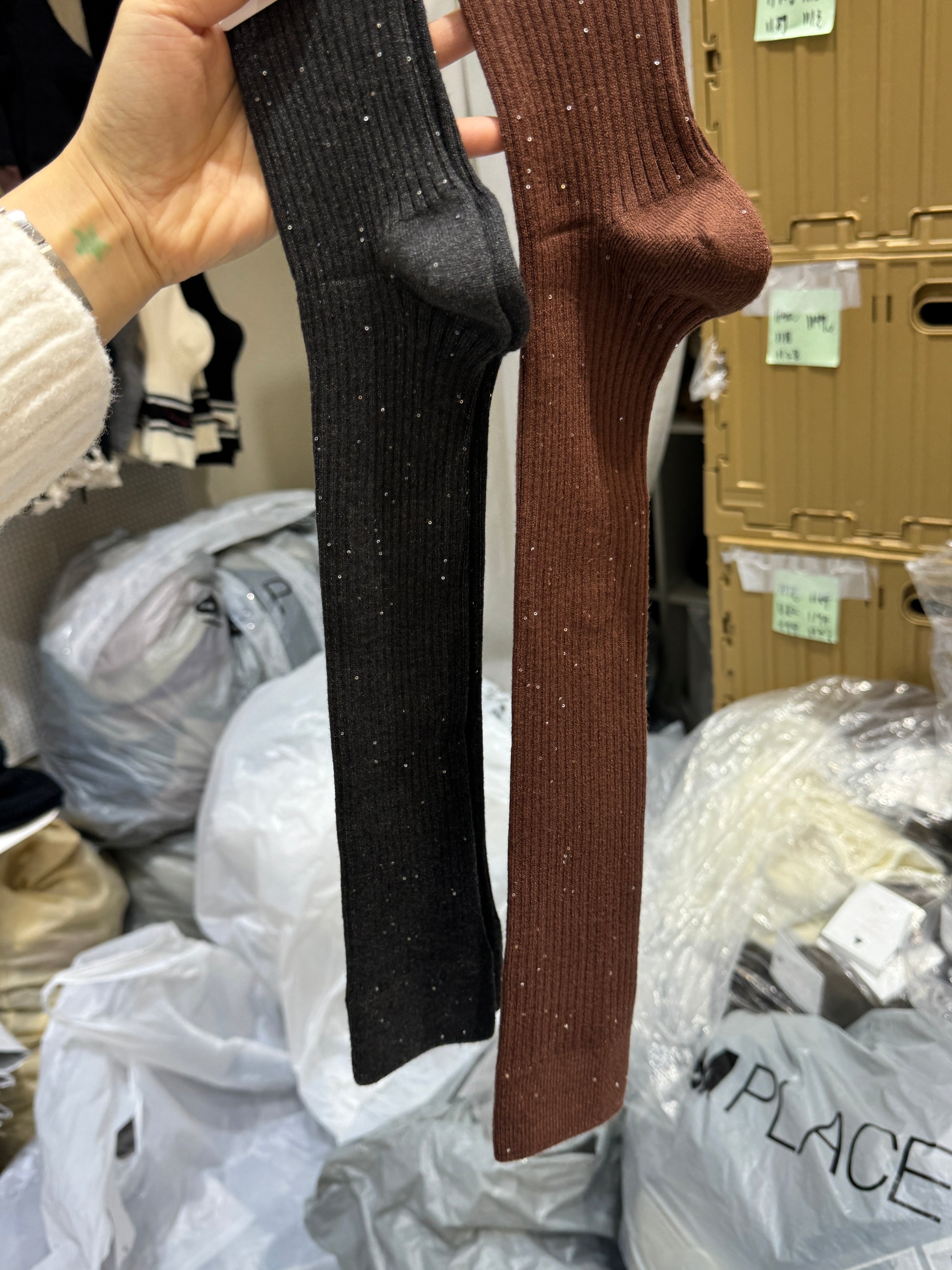 細閃片暗紋中長襪 ( 深灰/啡 )