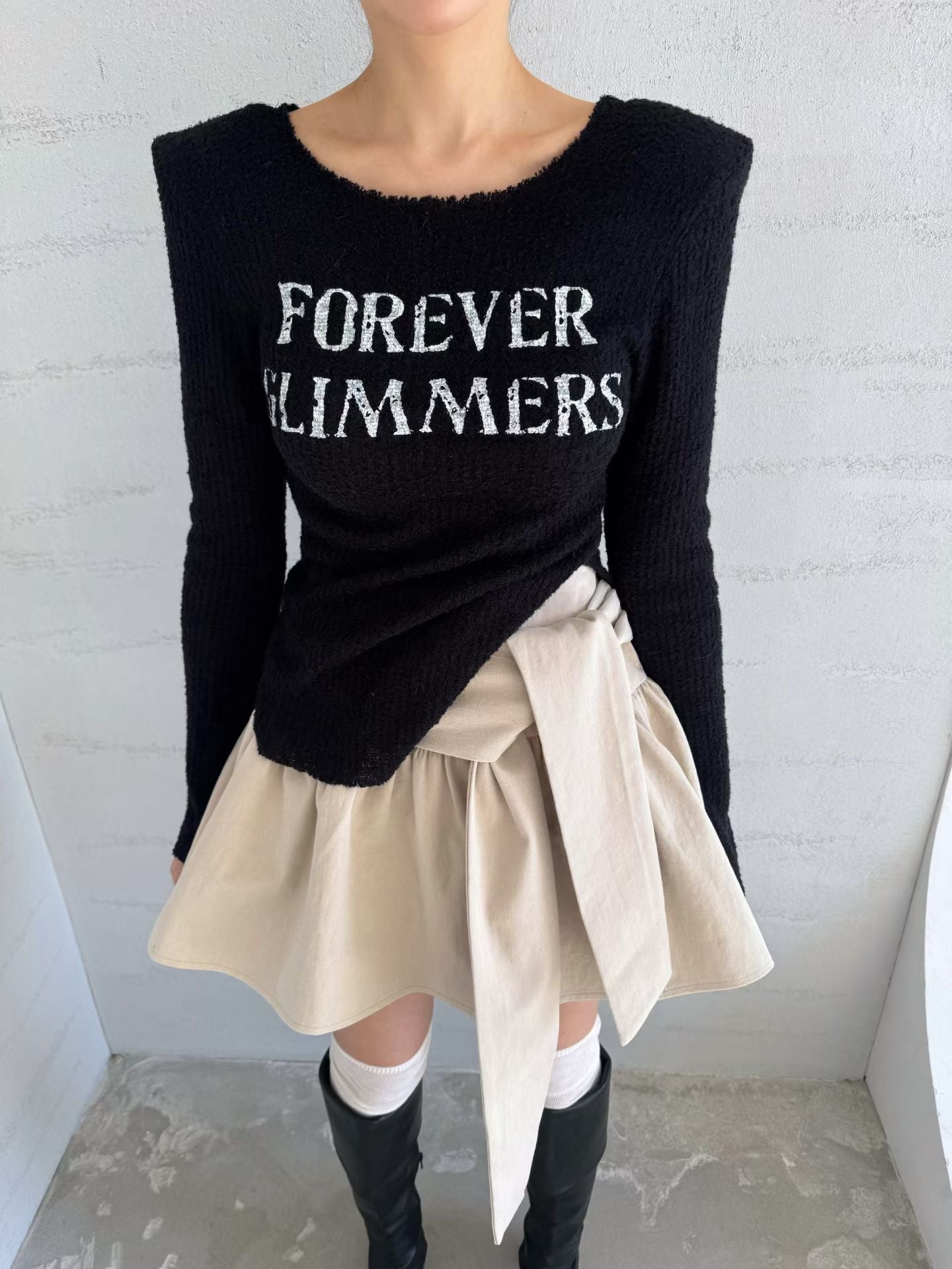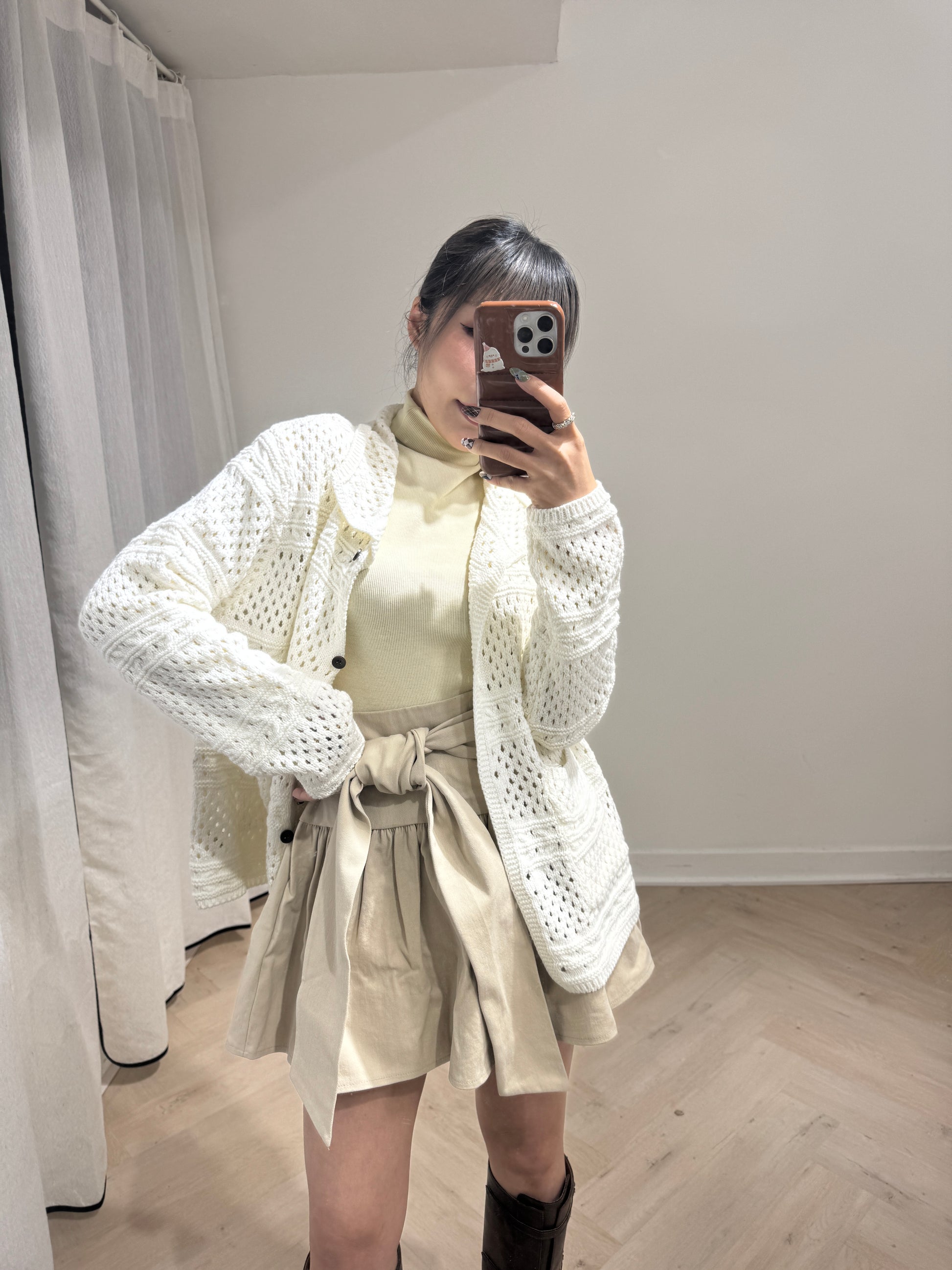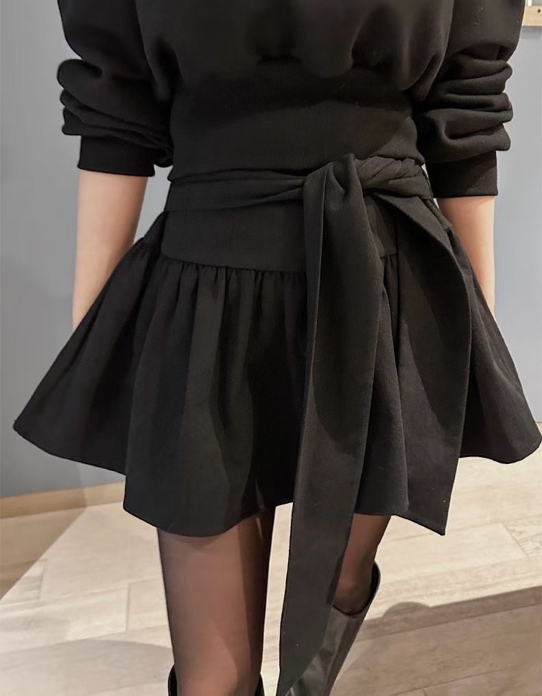 綁結傘形短裙 ( 黑/杏 )