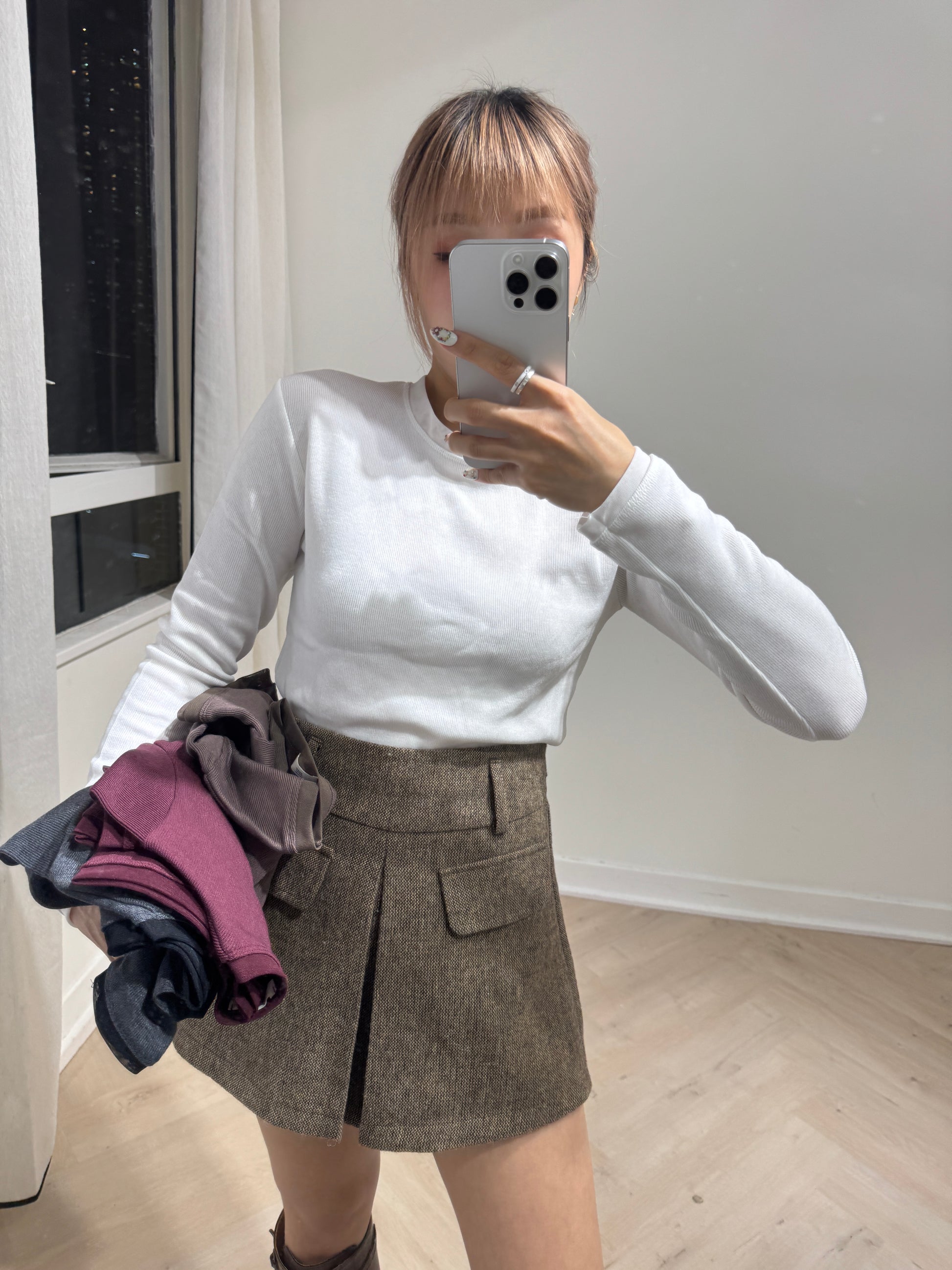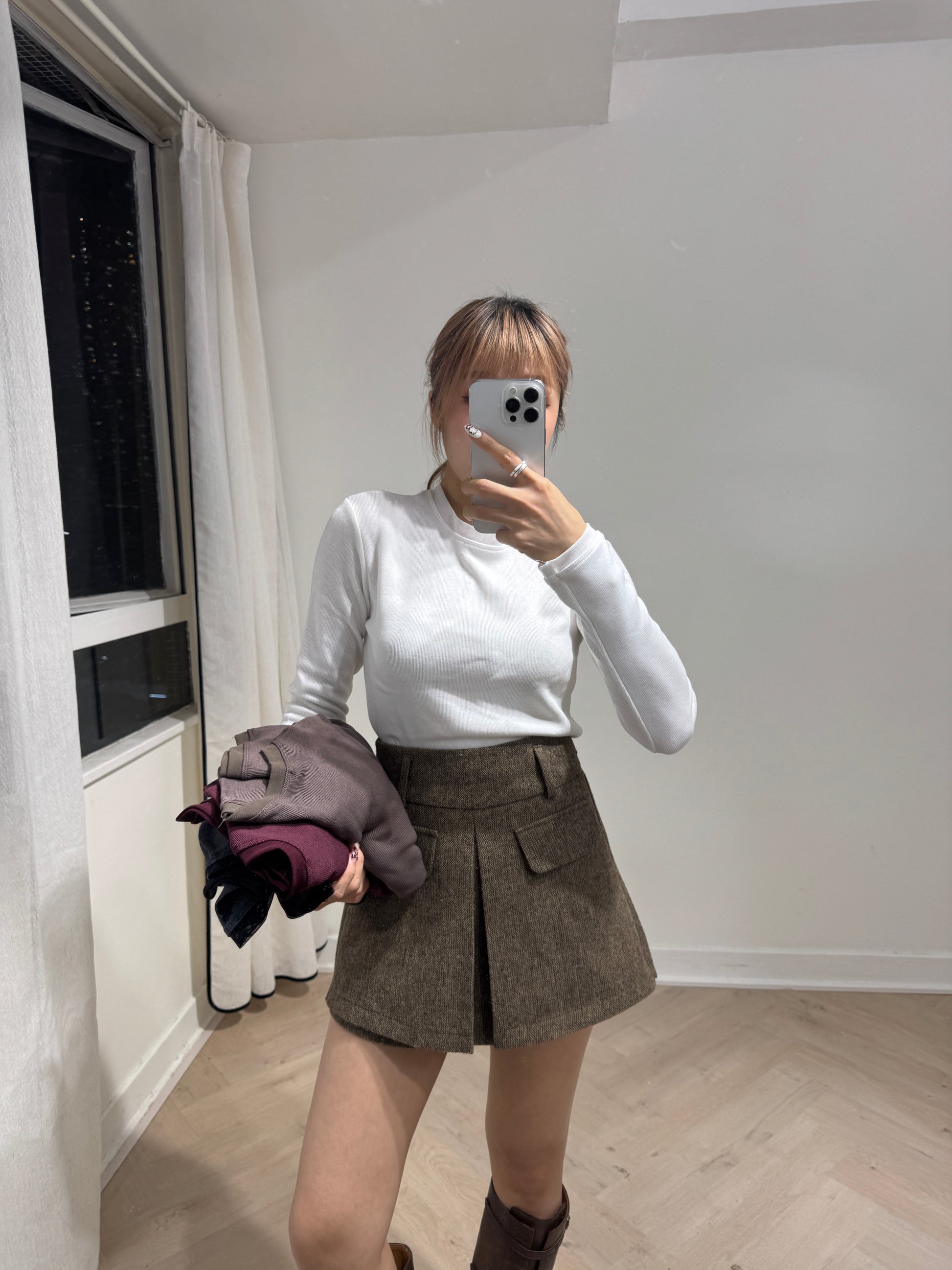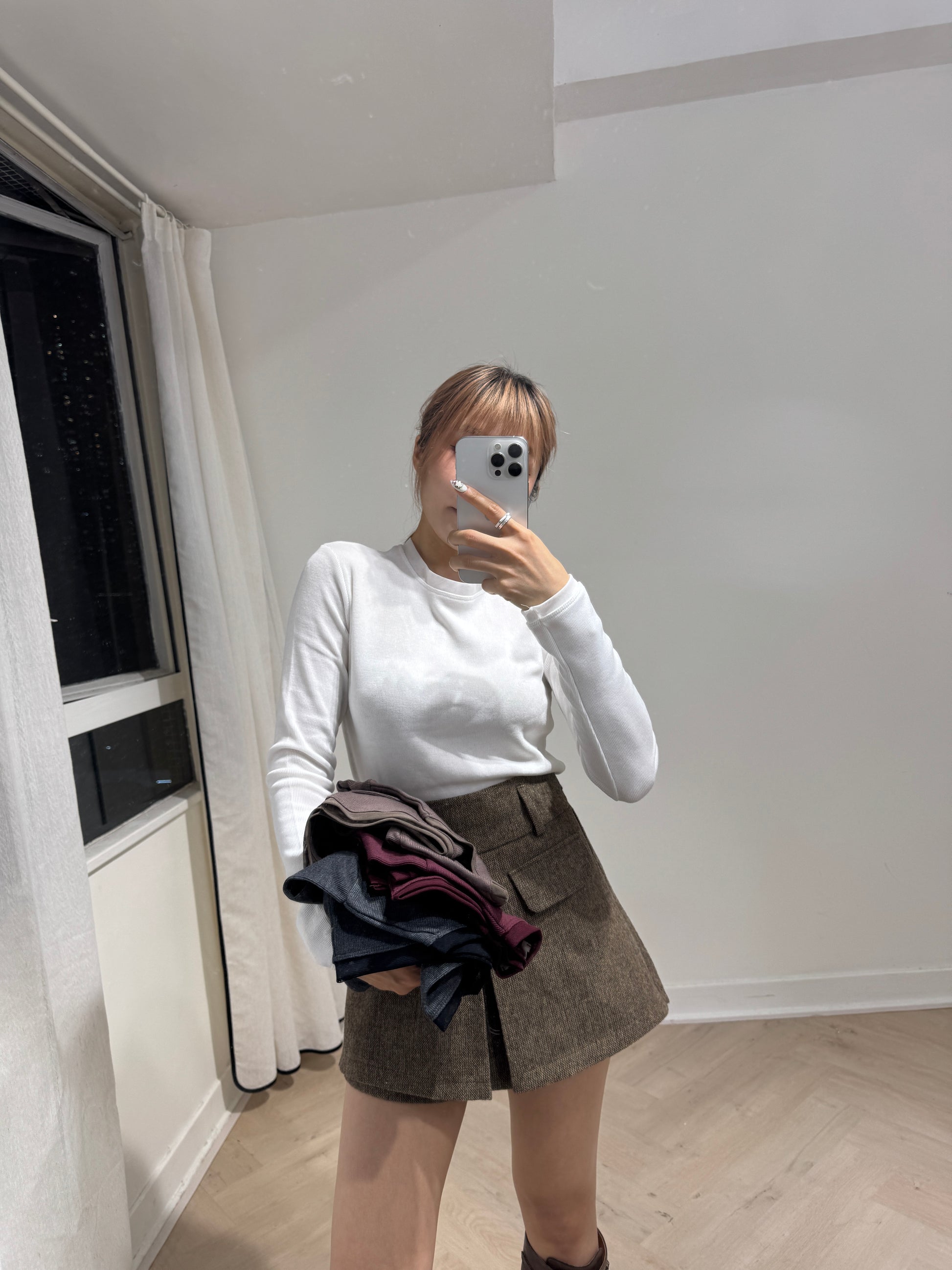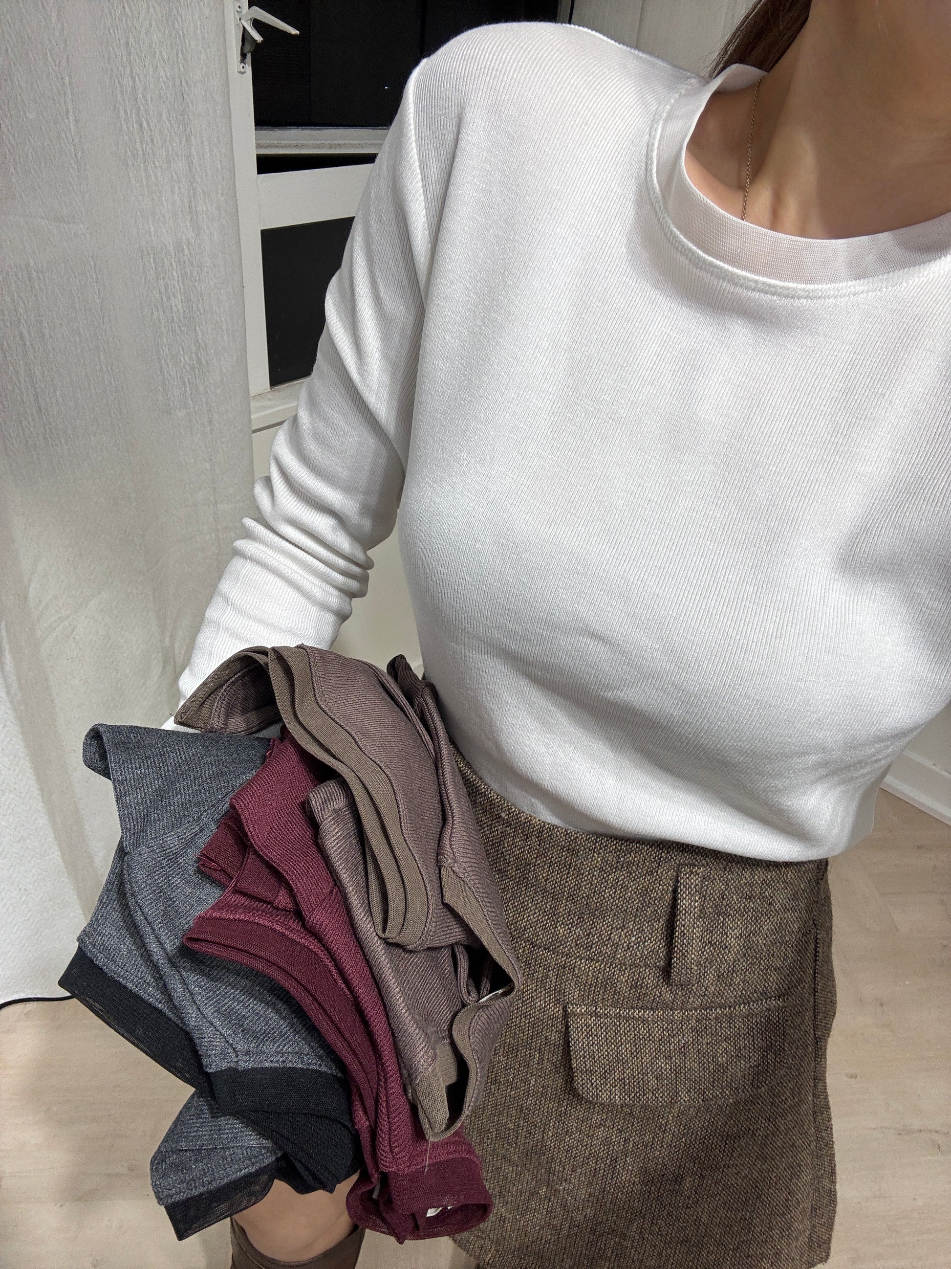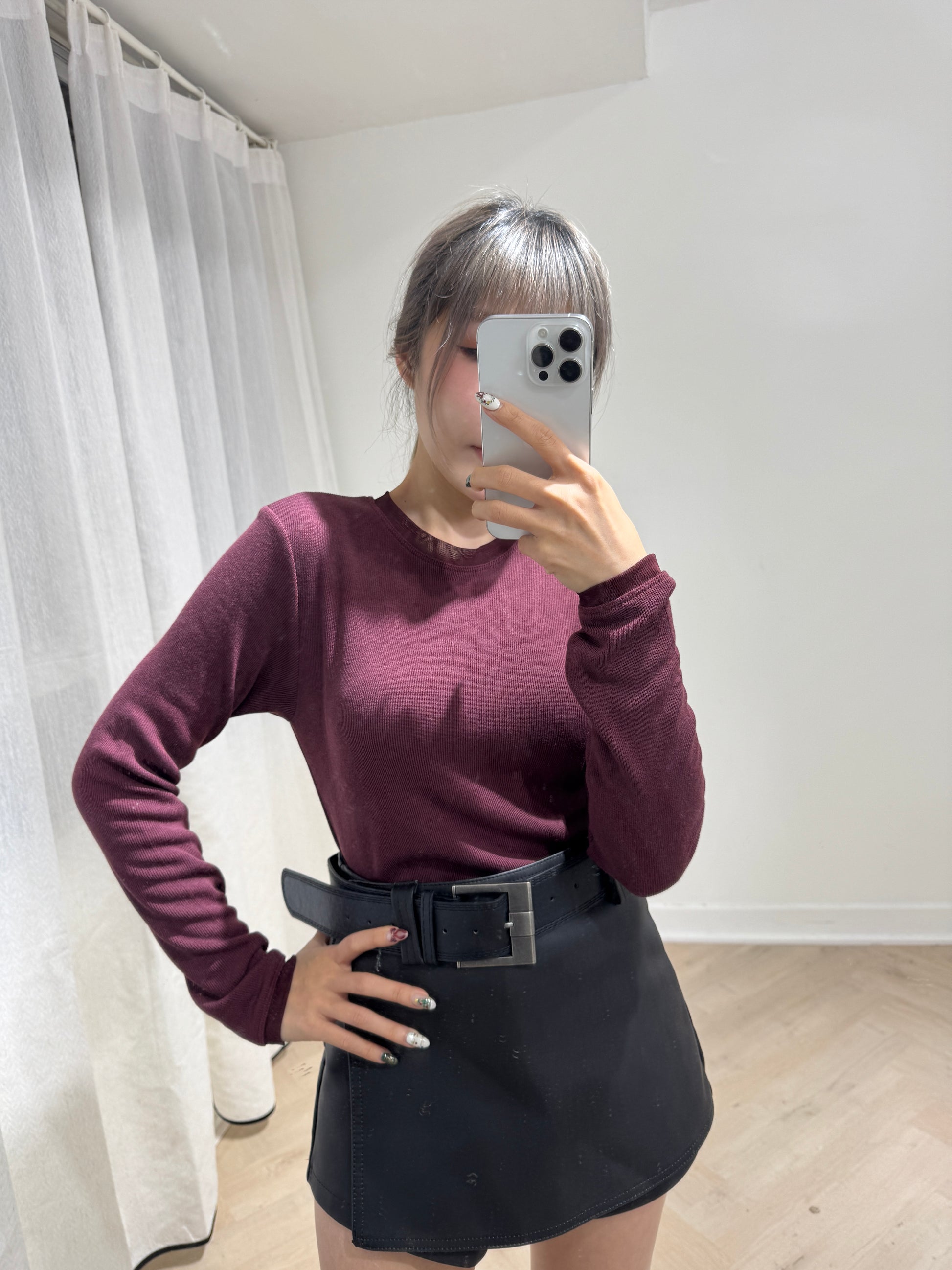 網網邊純綿打底上衣 ( 白/啡/酒紅/深灰 )