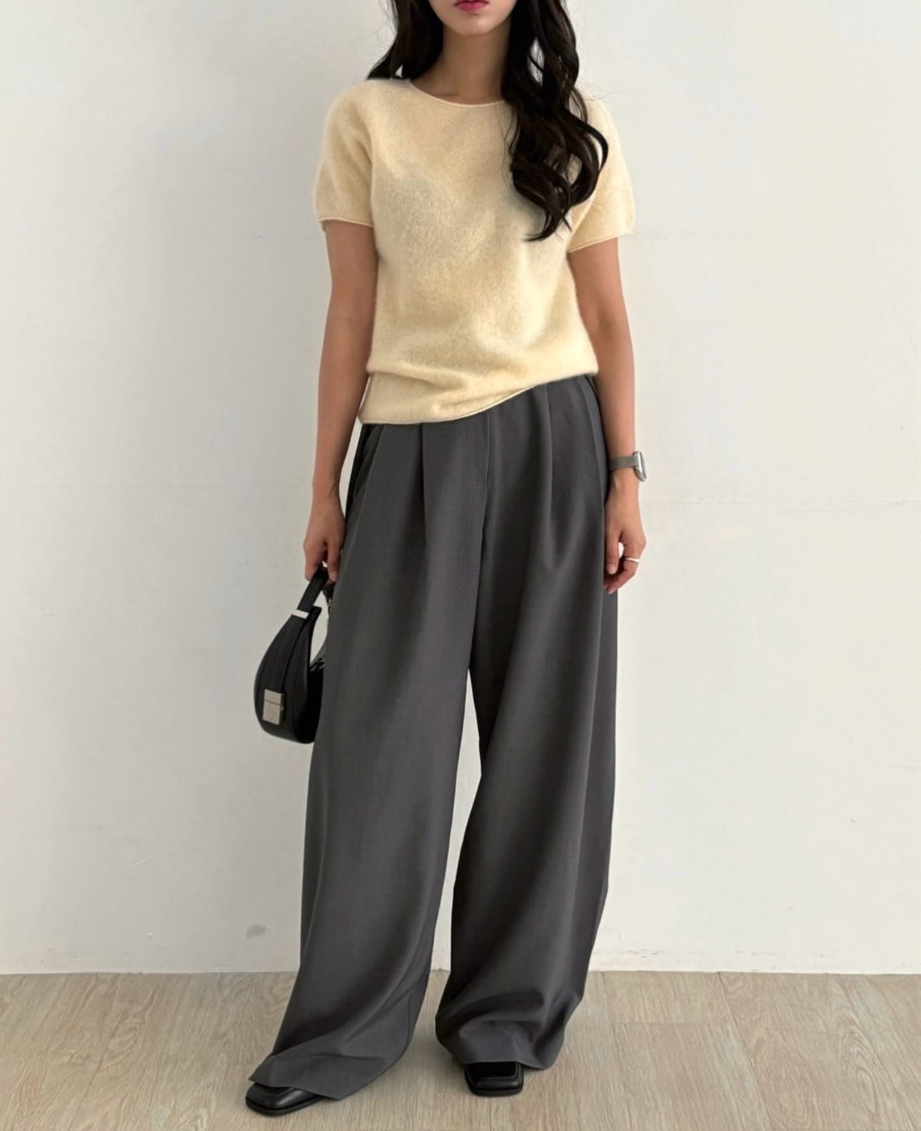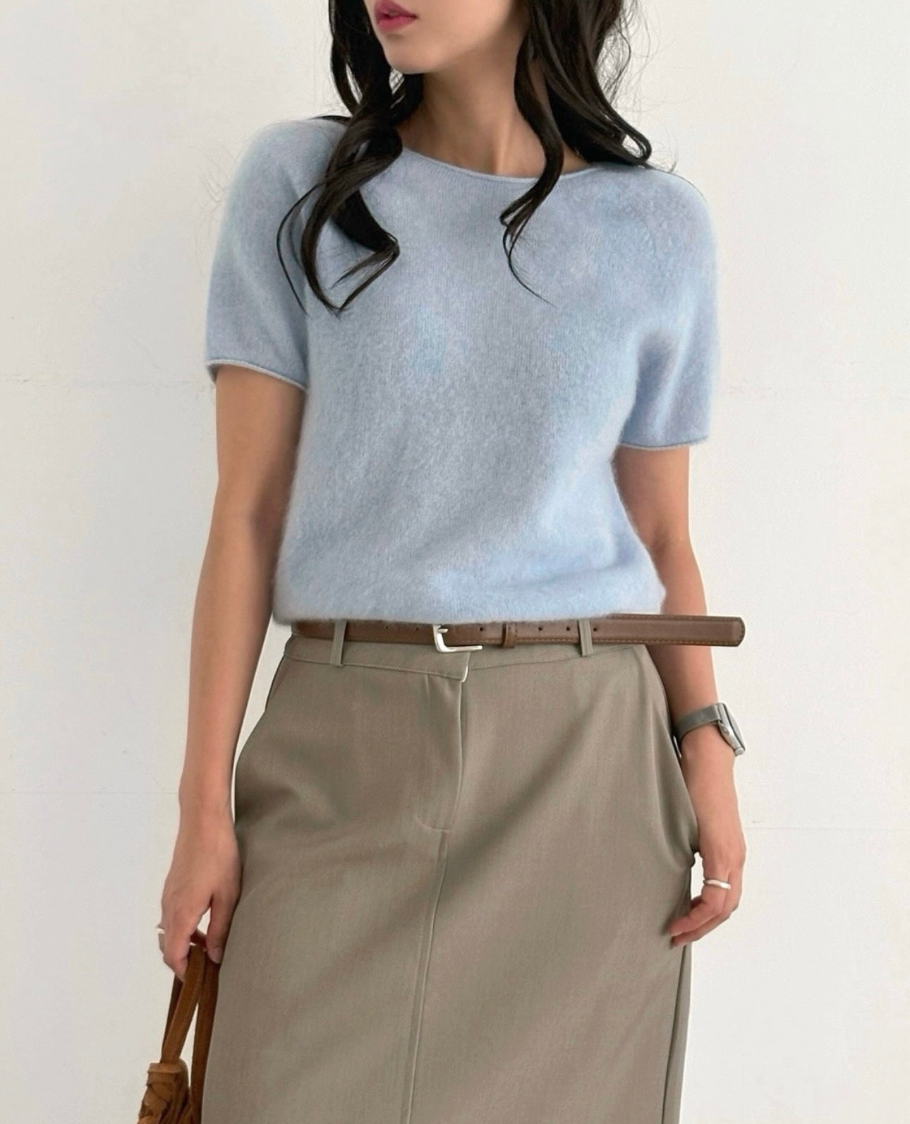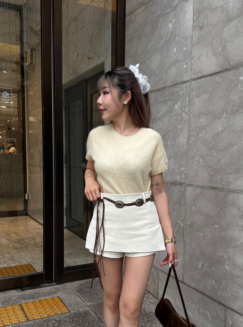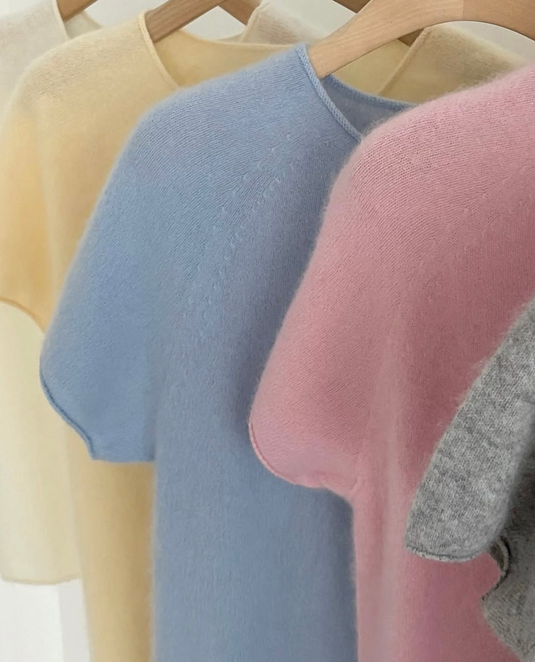 羊毛親膚短袖線上衣 ( 灰/白/粉/黃/藍 )
