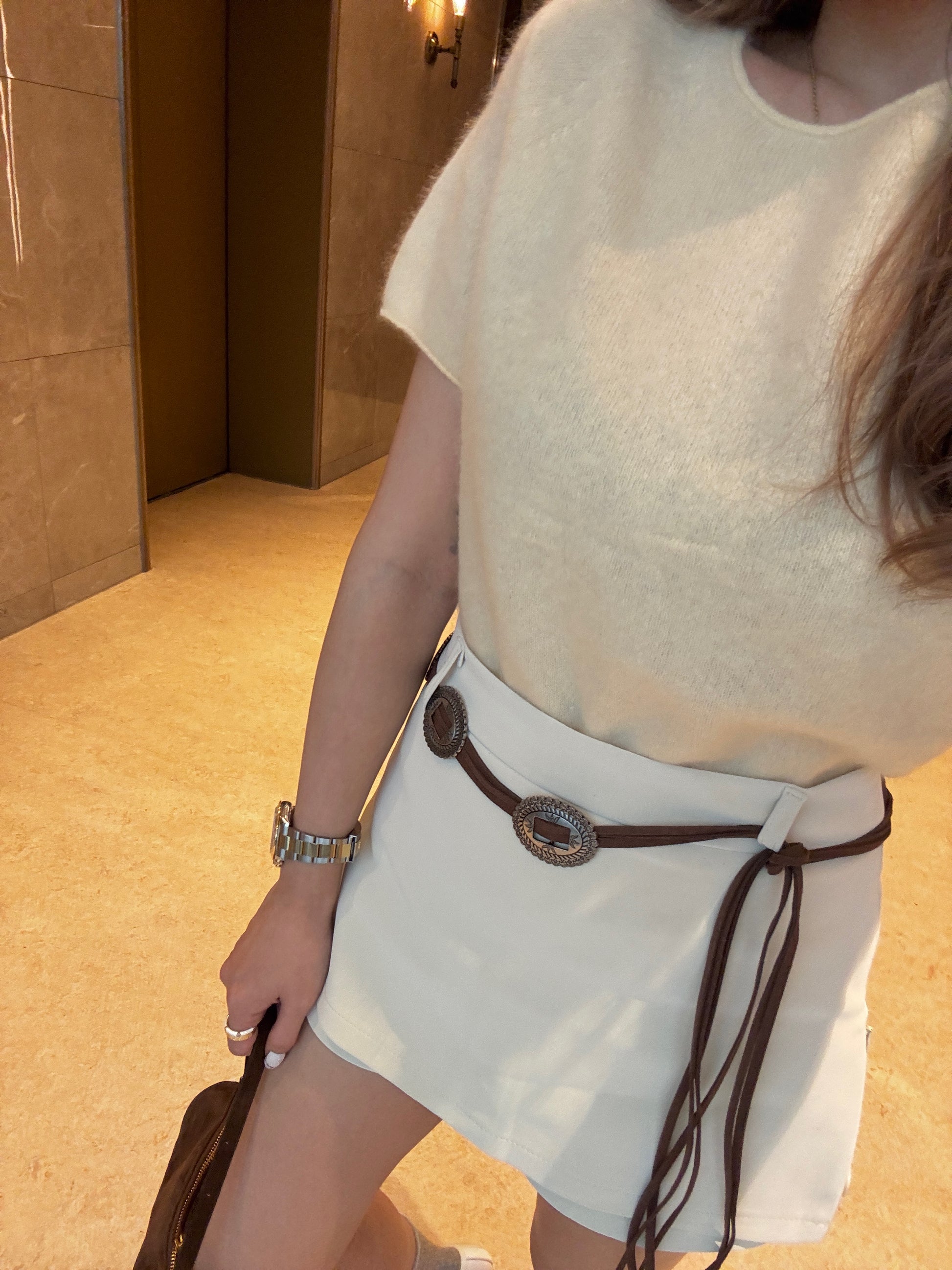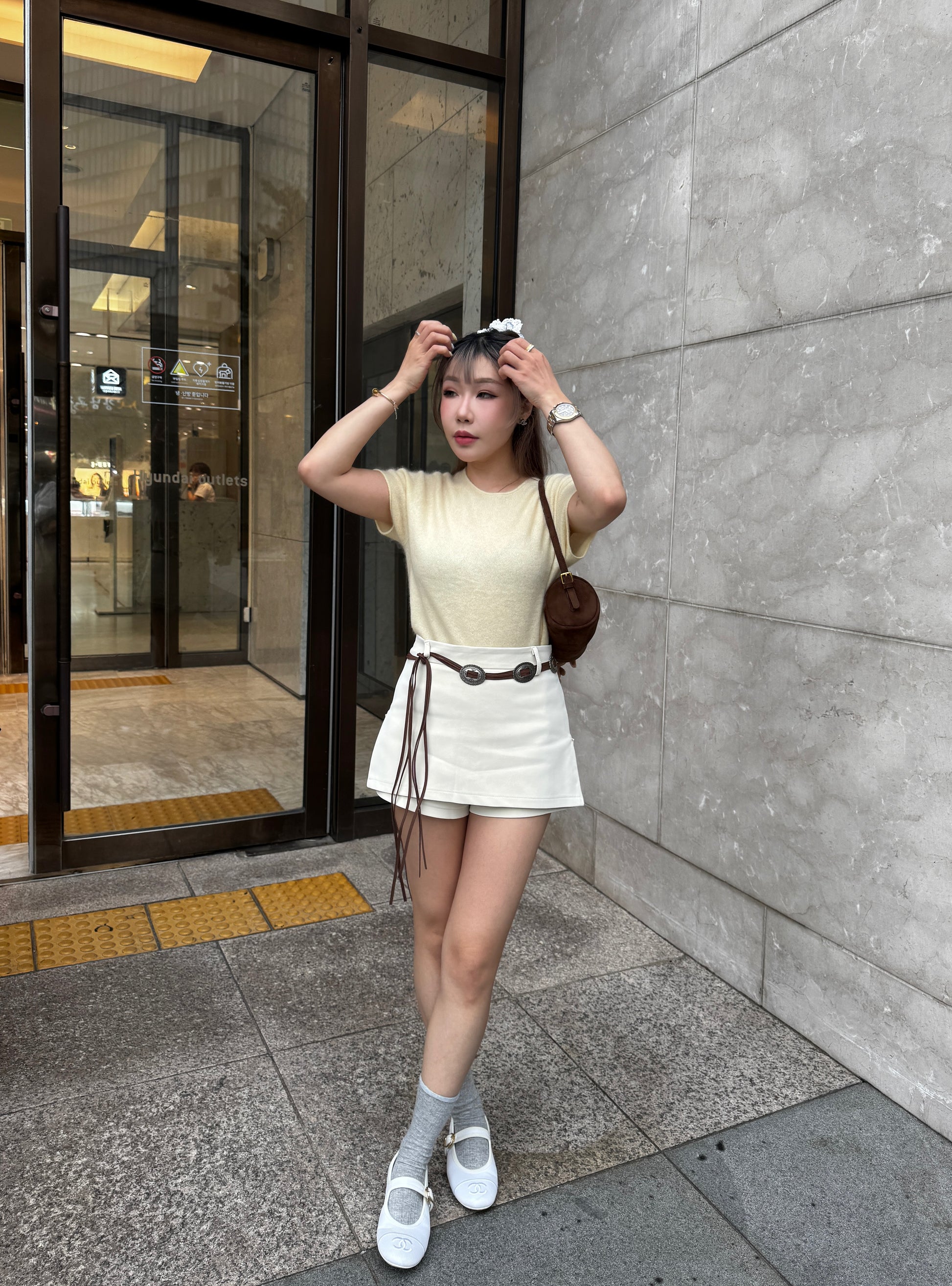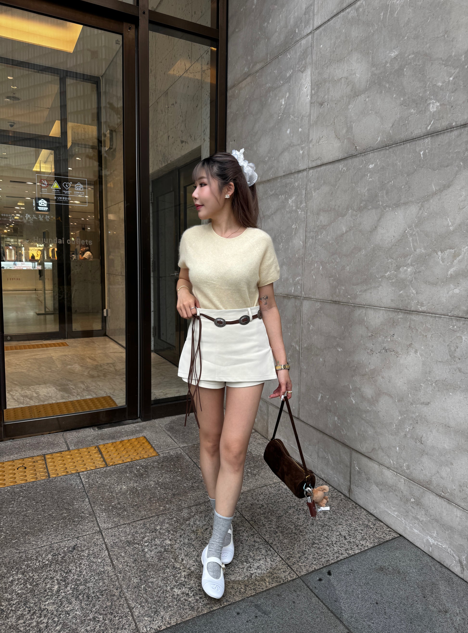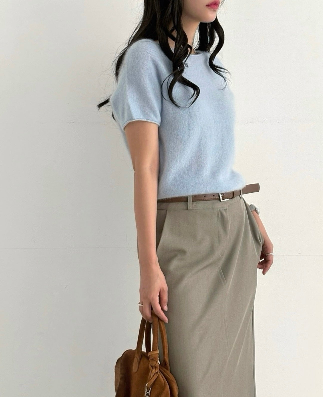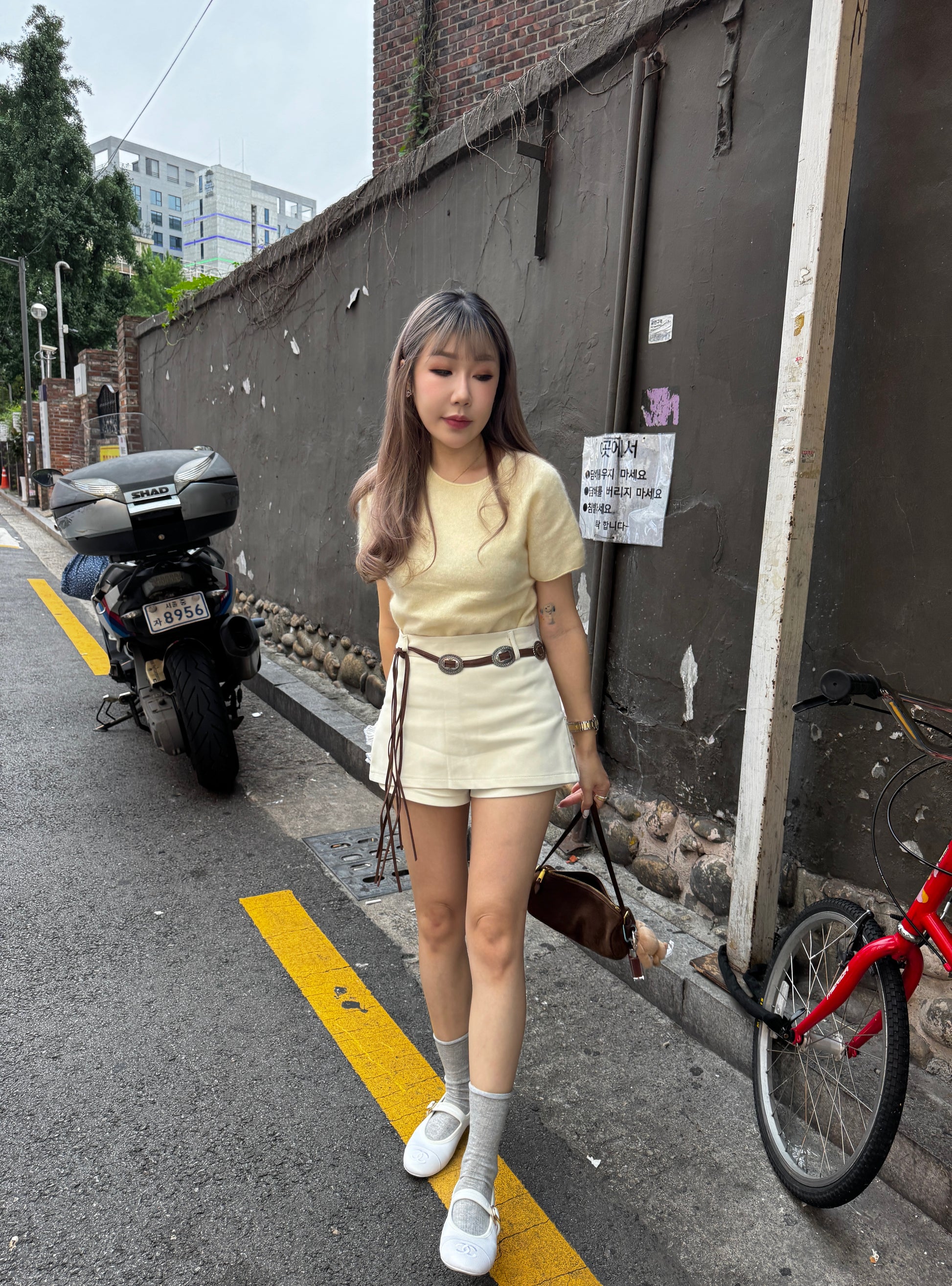 羊毛親膚短袖線上衣 ( 灰/白/粉/黃/藍 )
