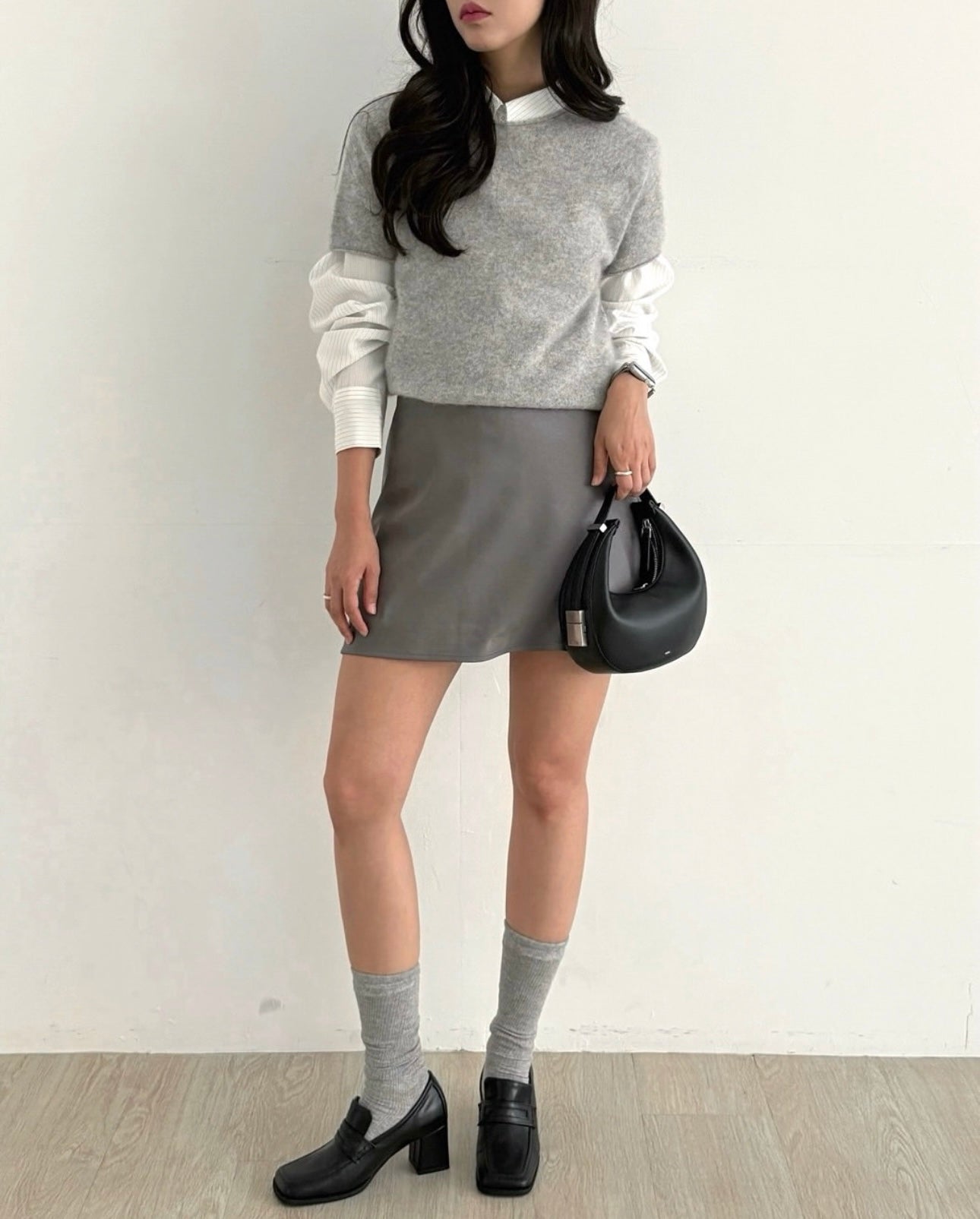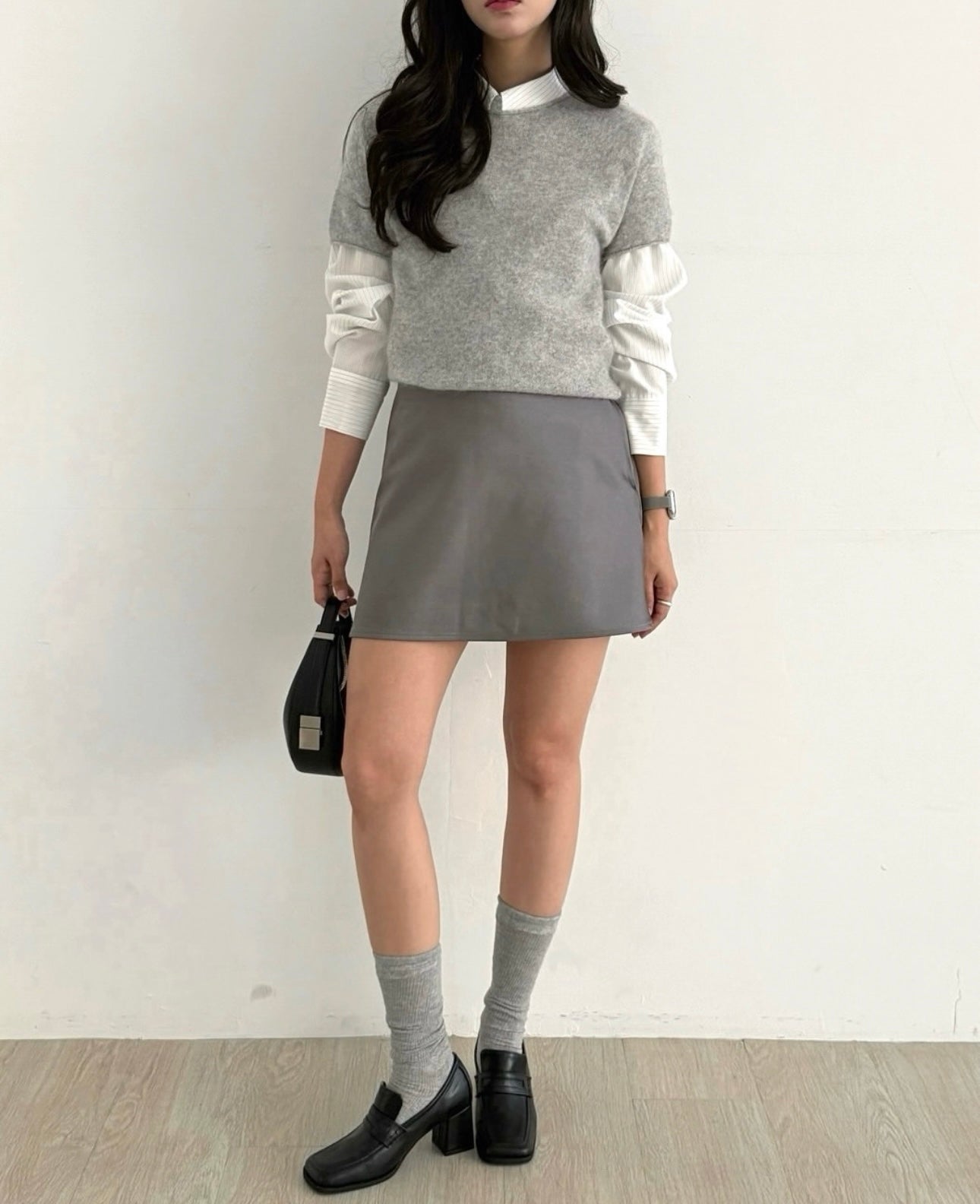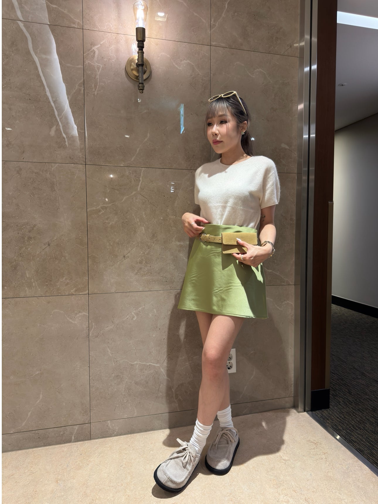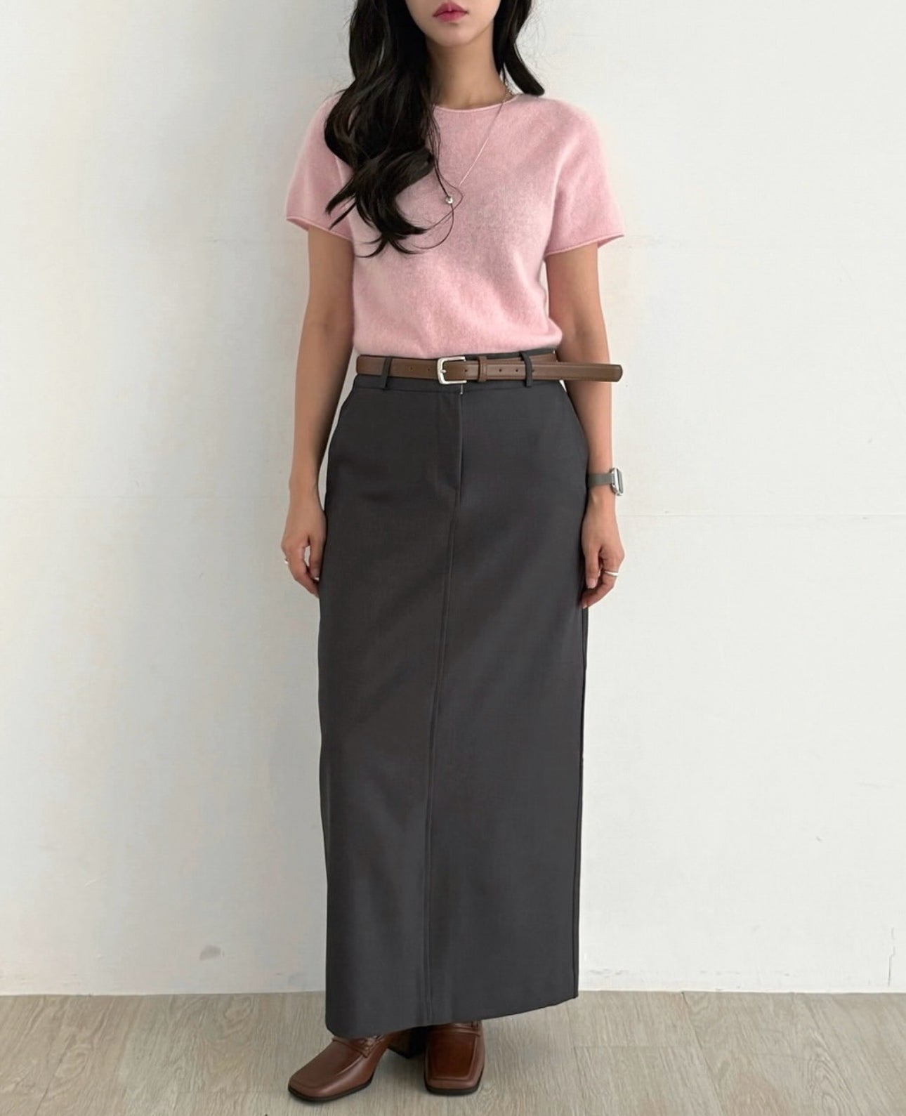 羊毛親膚短袖線上衣 ( 灰/白/粉/黃/藍 )
