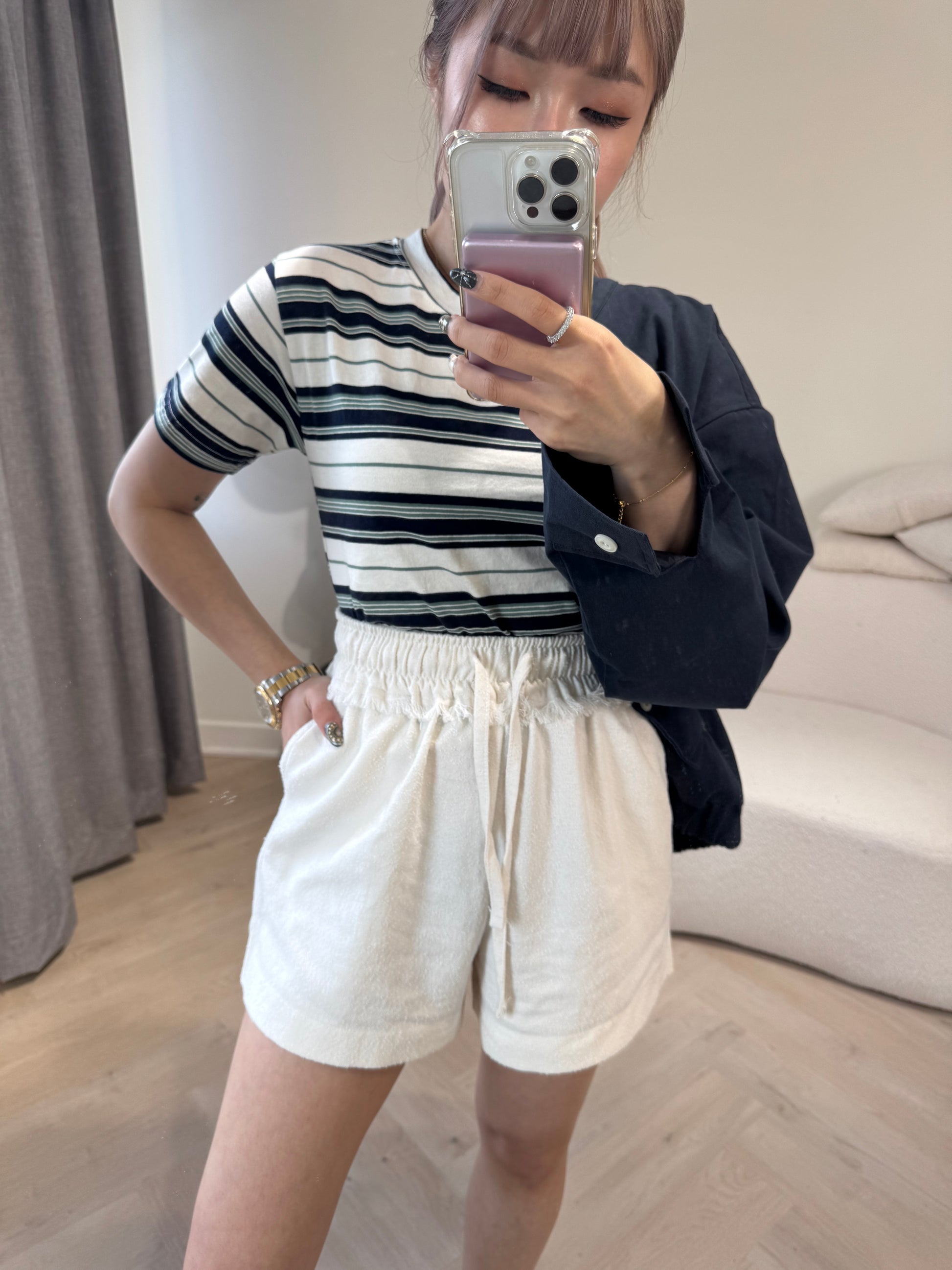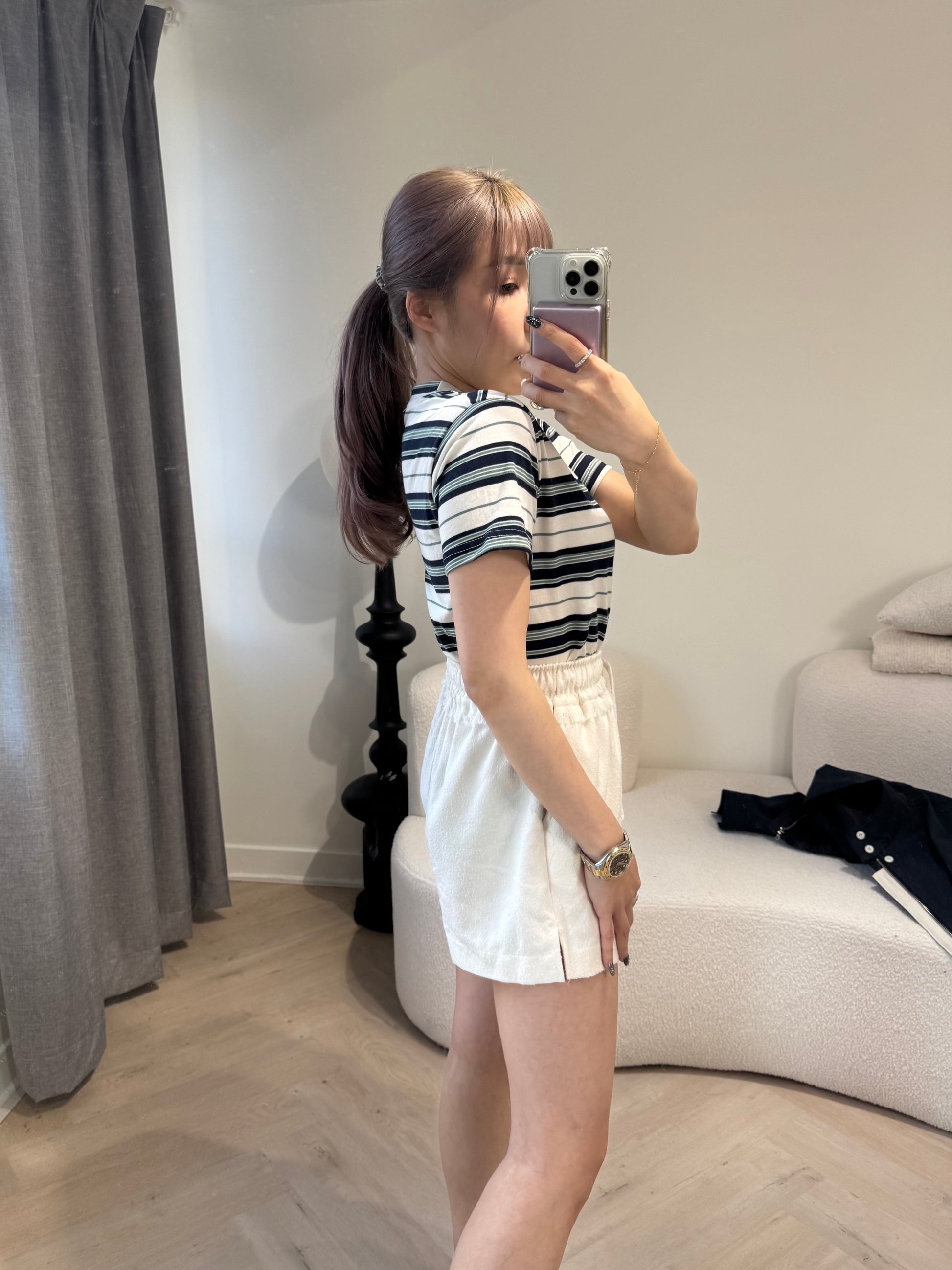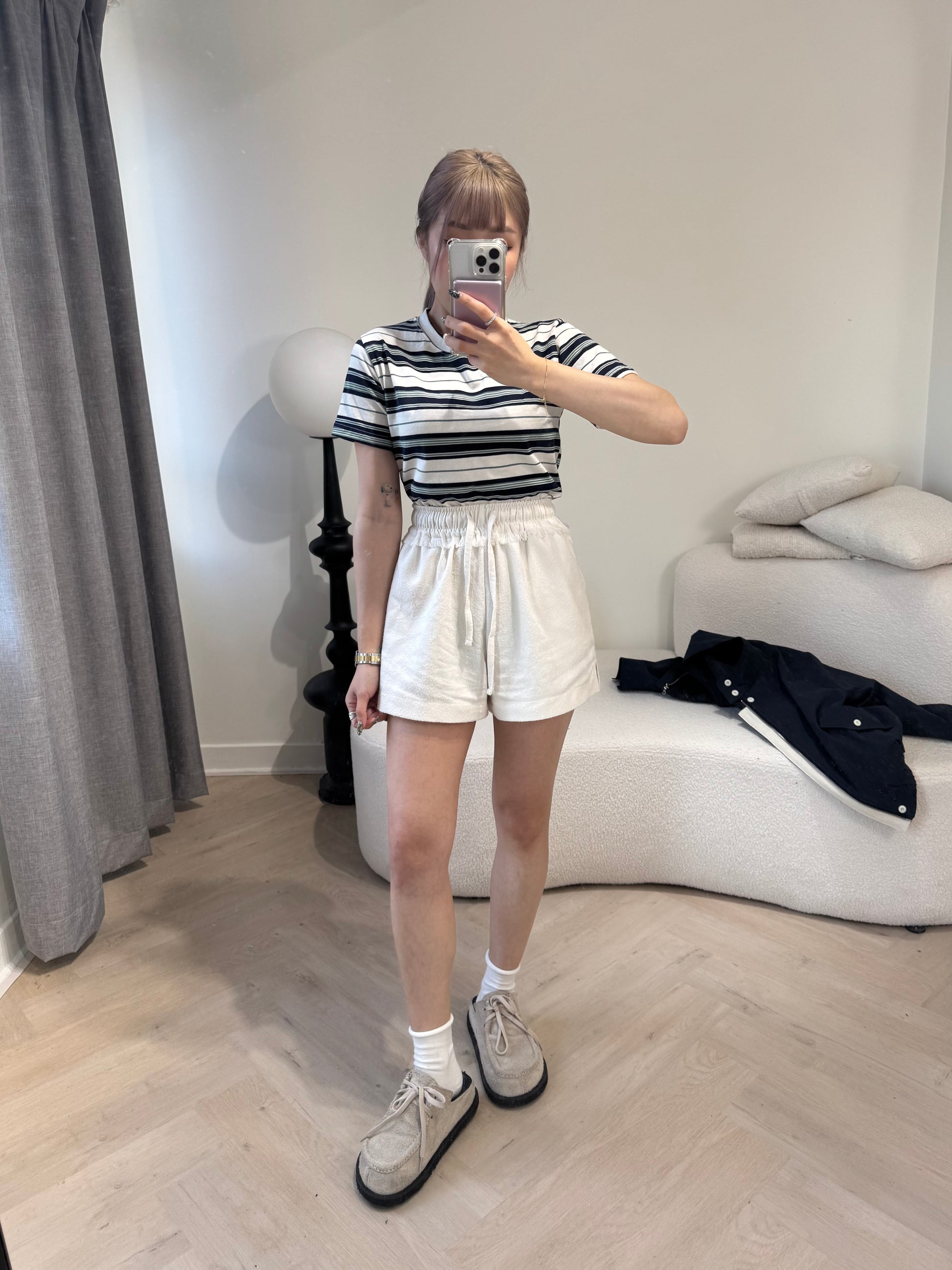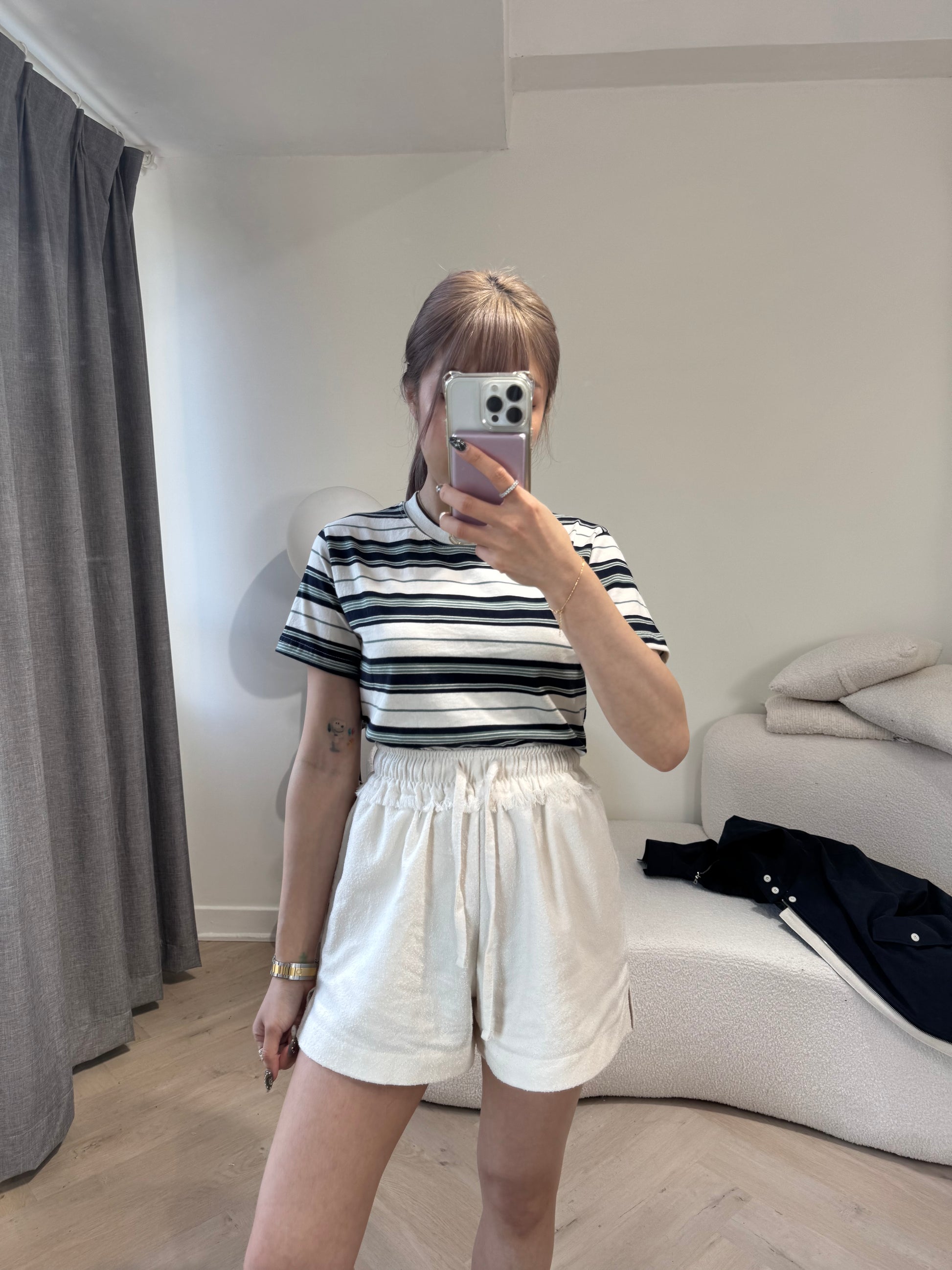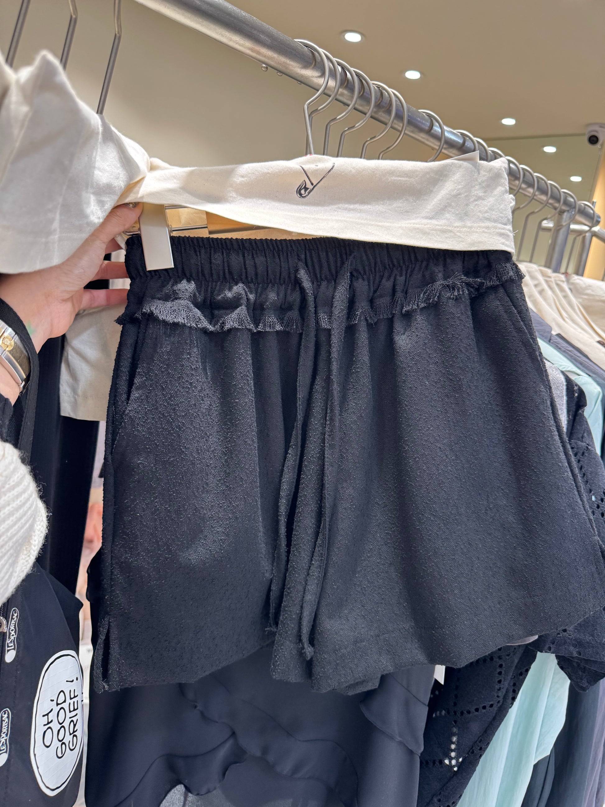 蘇蘇面料橡筋短褲 ( 黑/米 )