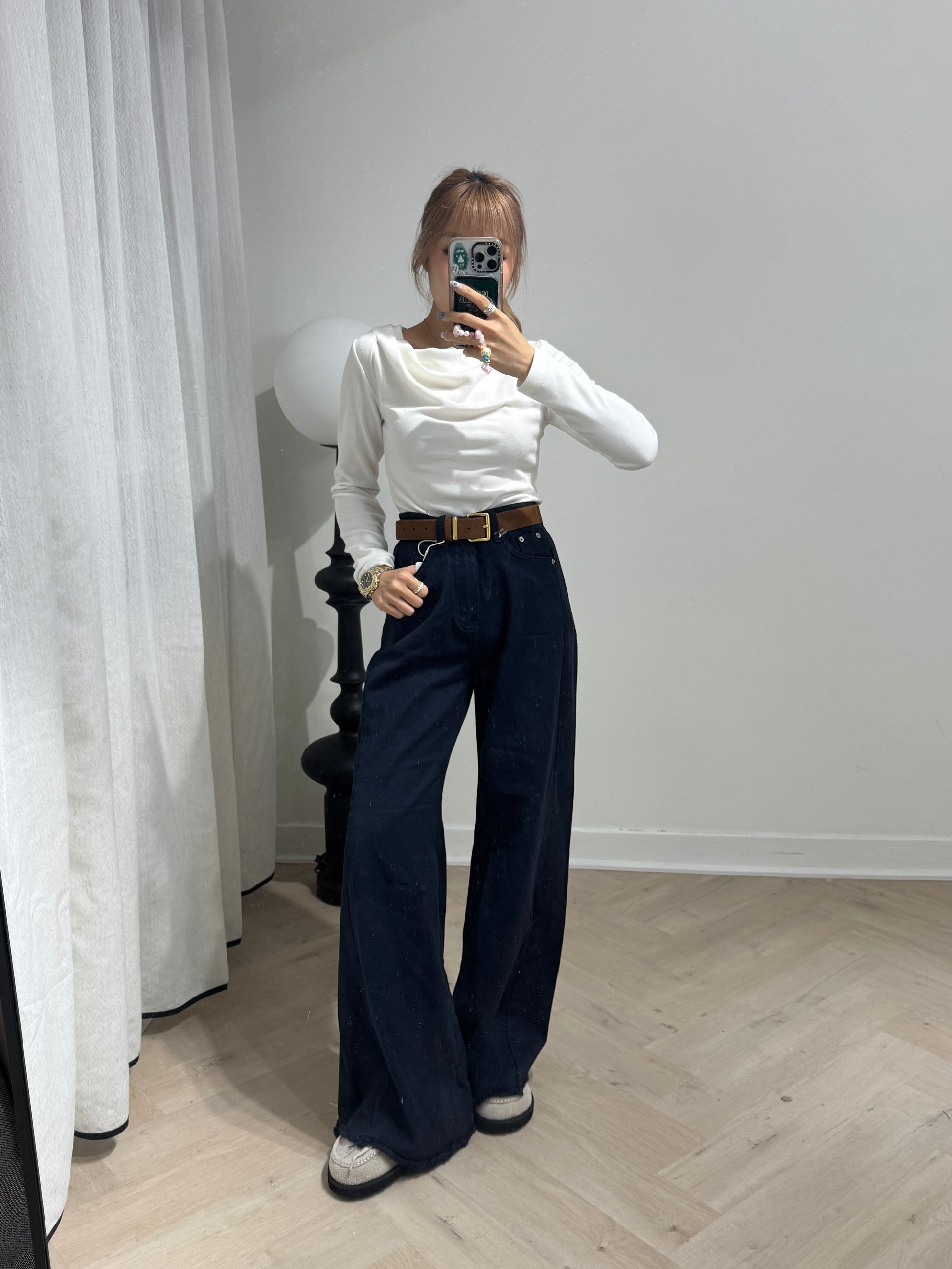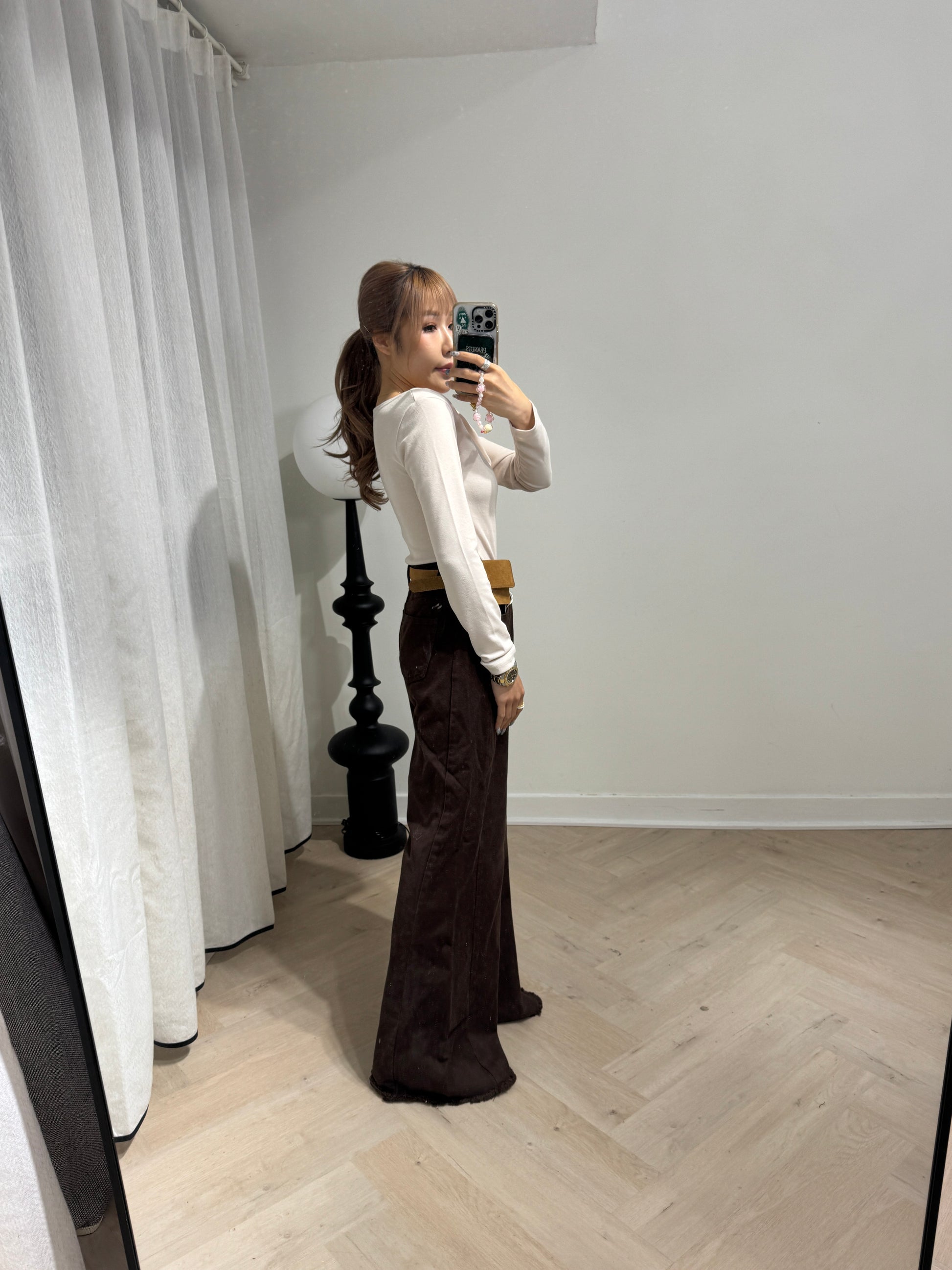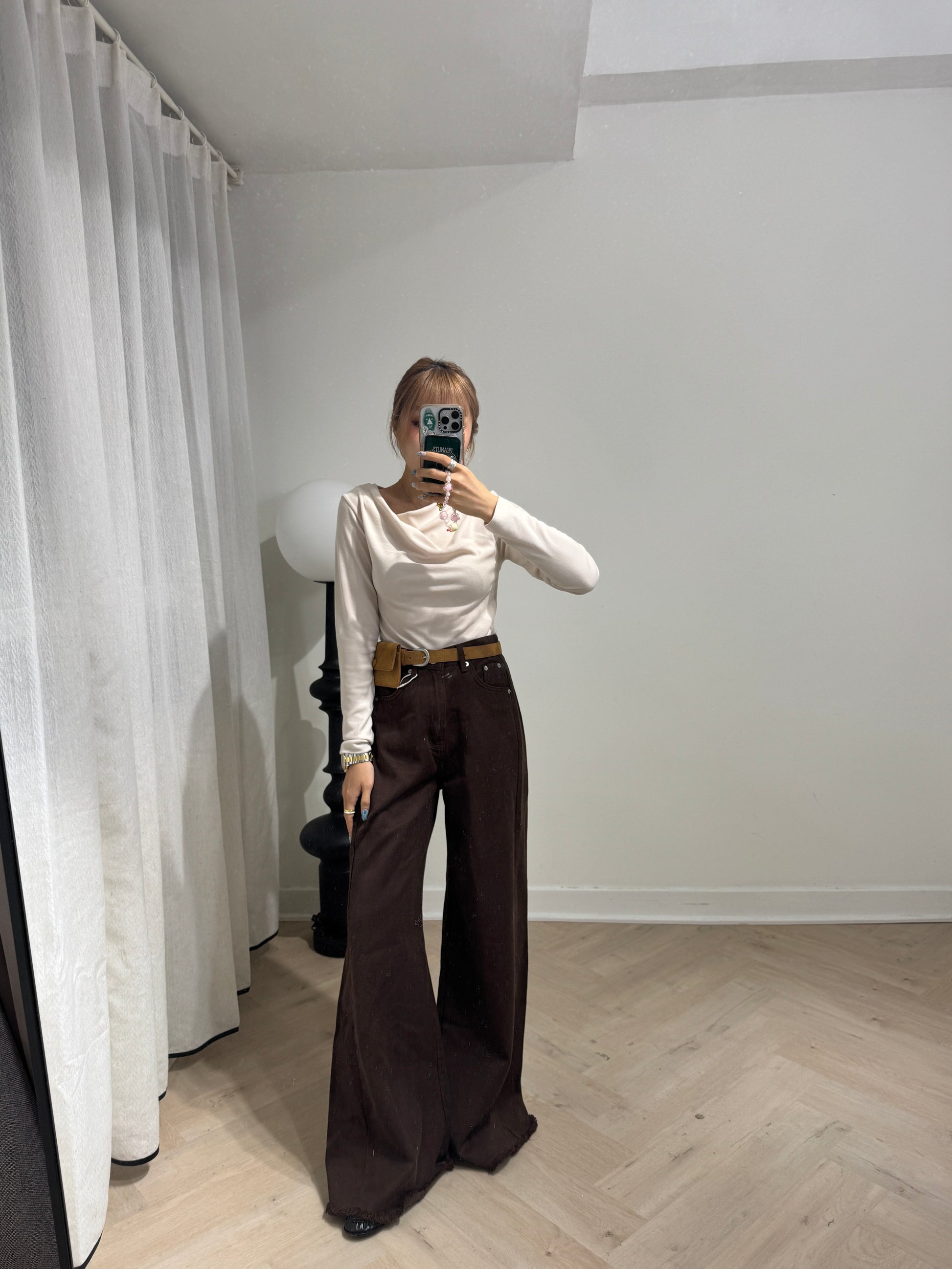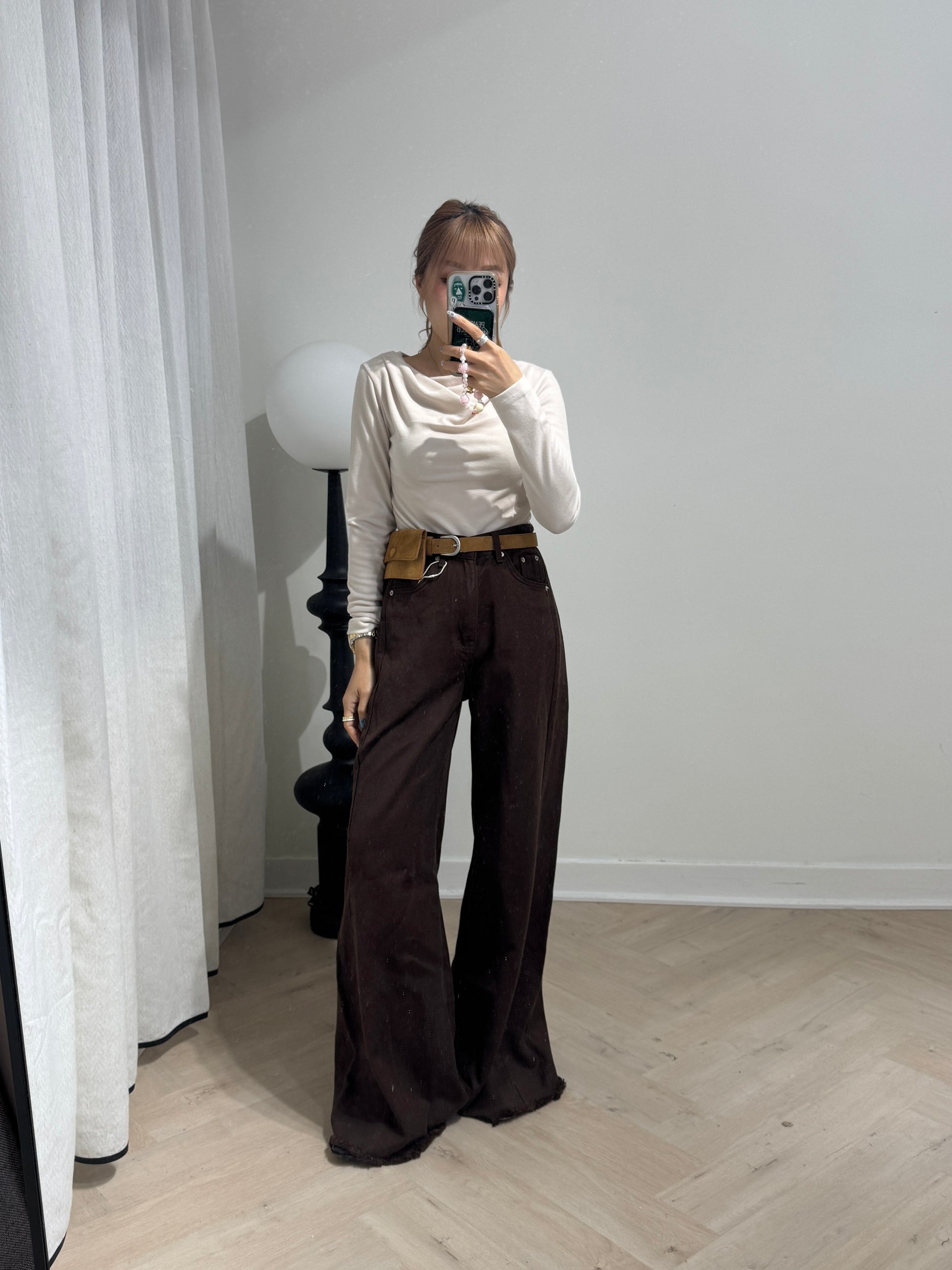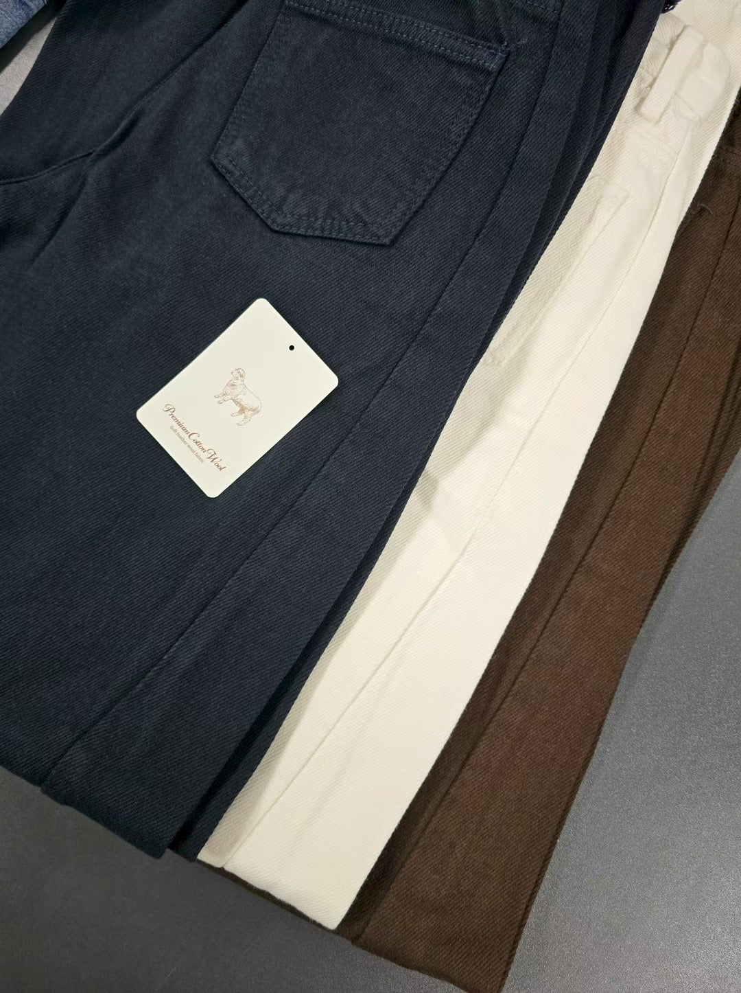 軟料斜布長直褲 ( 啡/白/寶藍 )