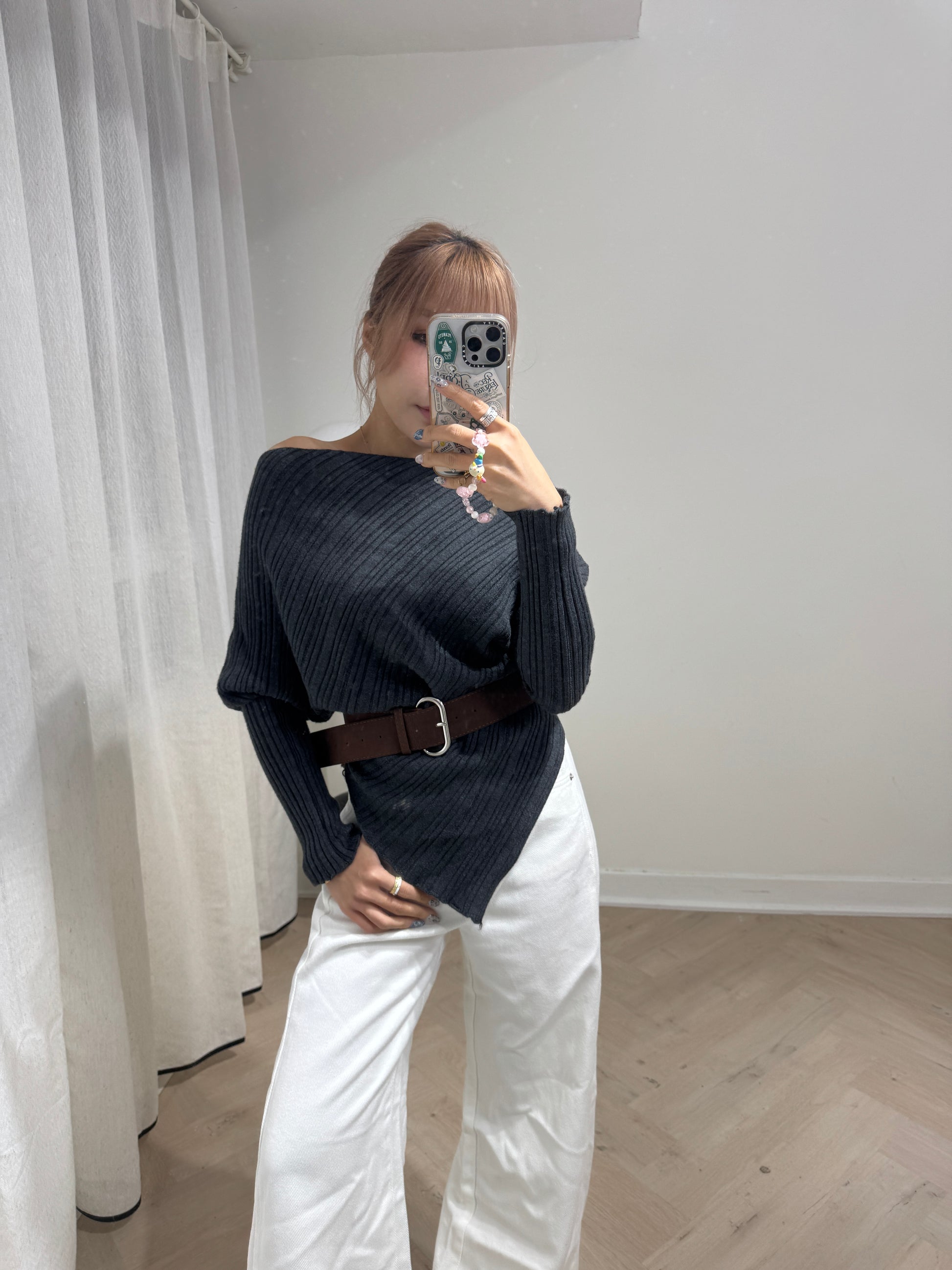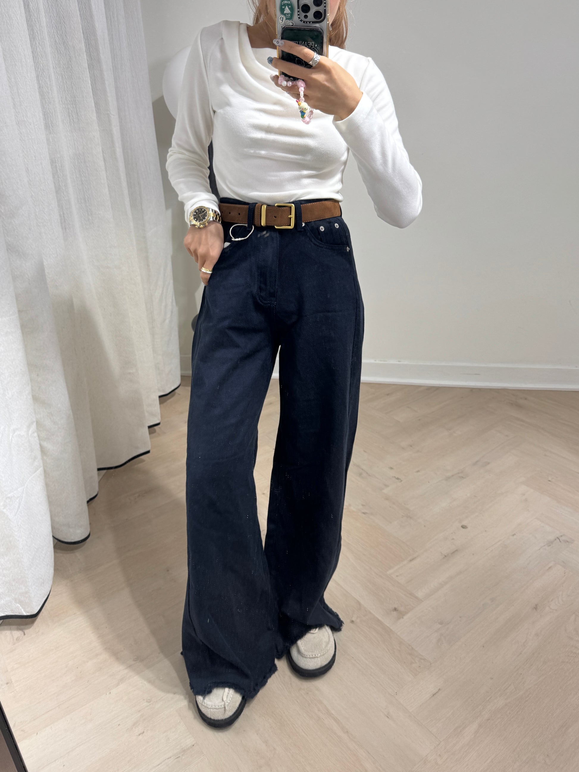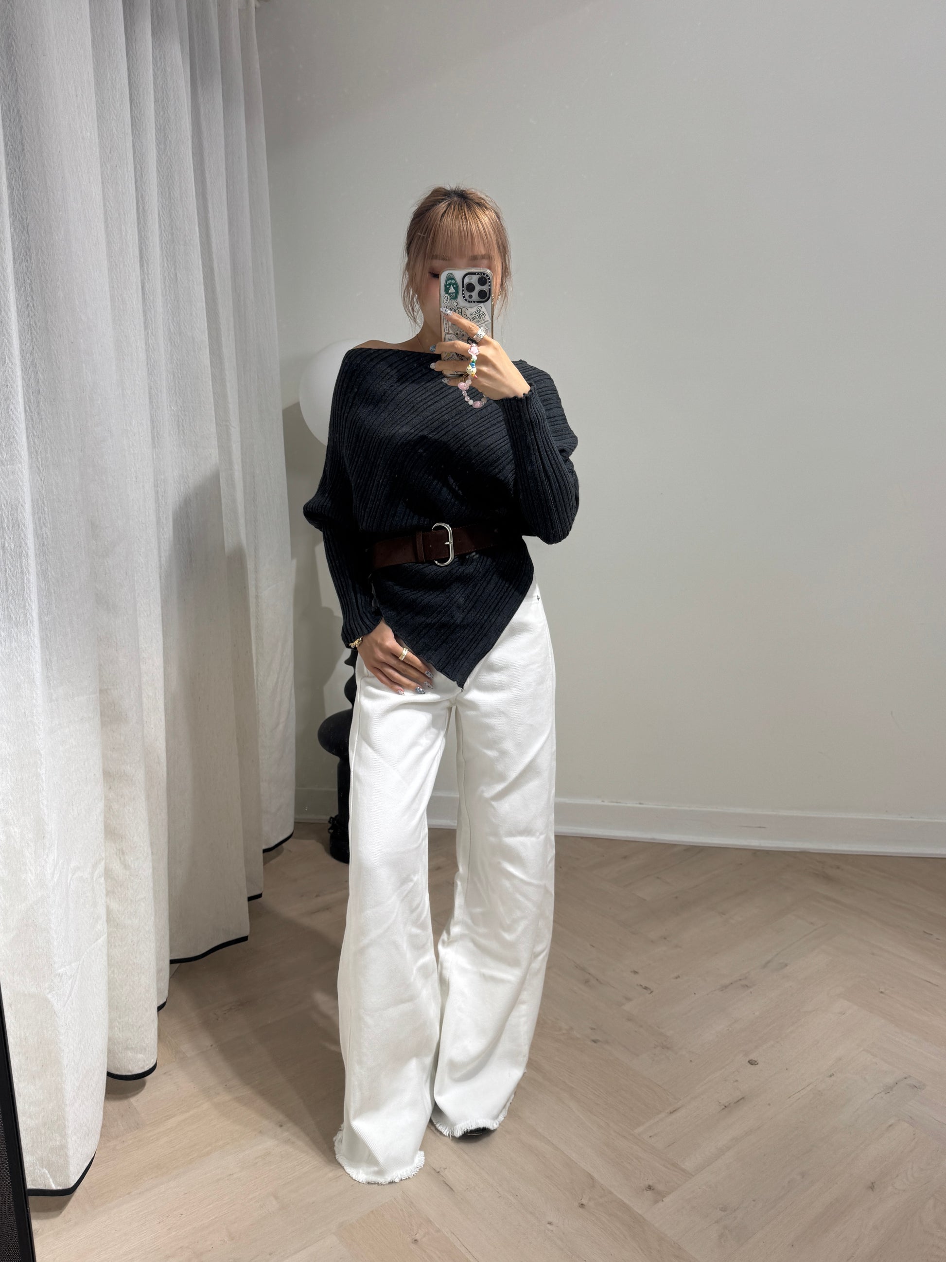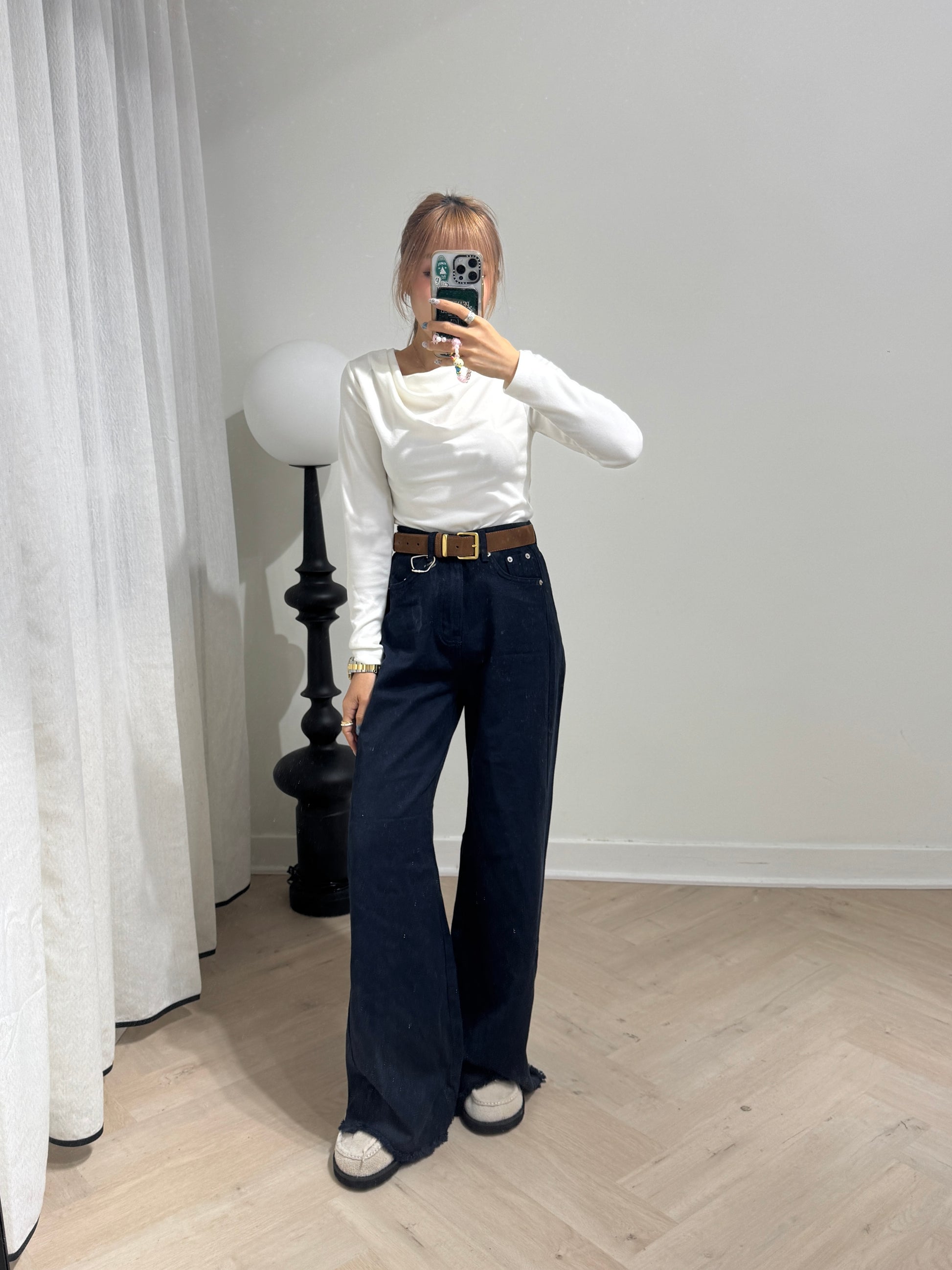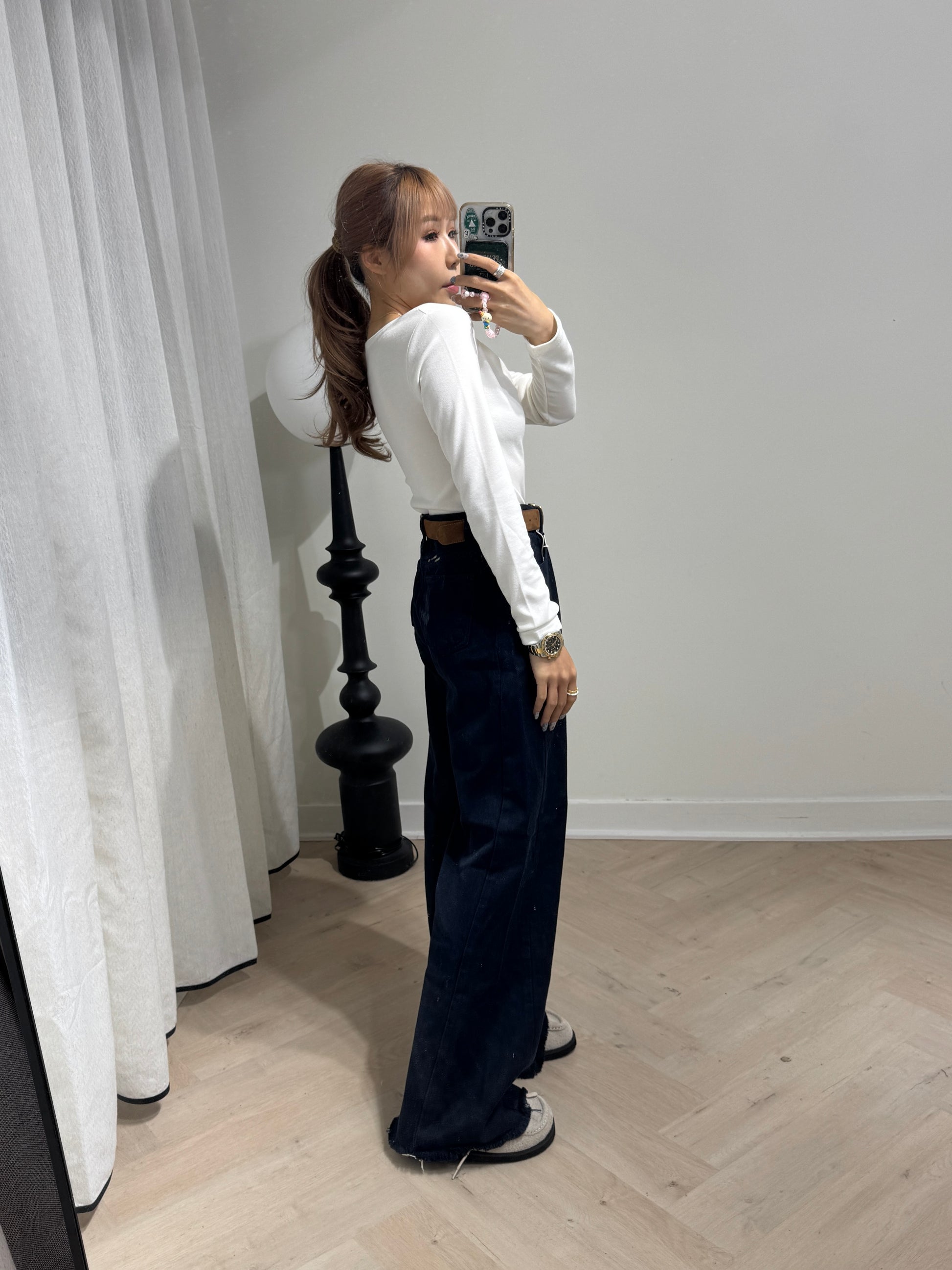 軟料斜布長直褲 ( 啡/白/寶藍 )