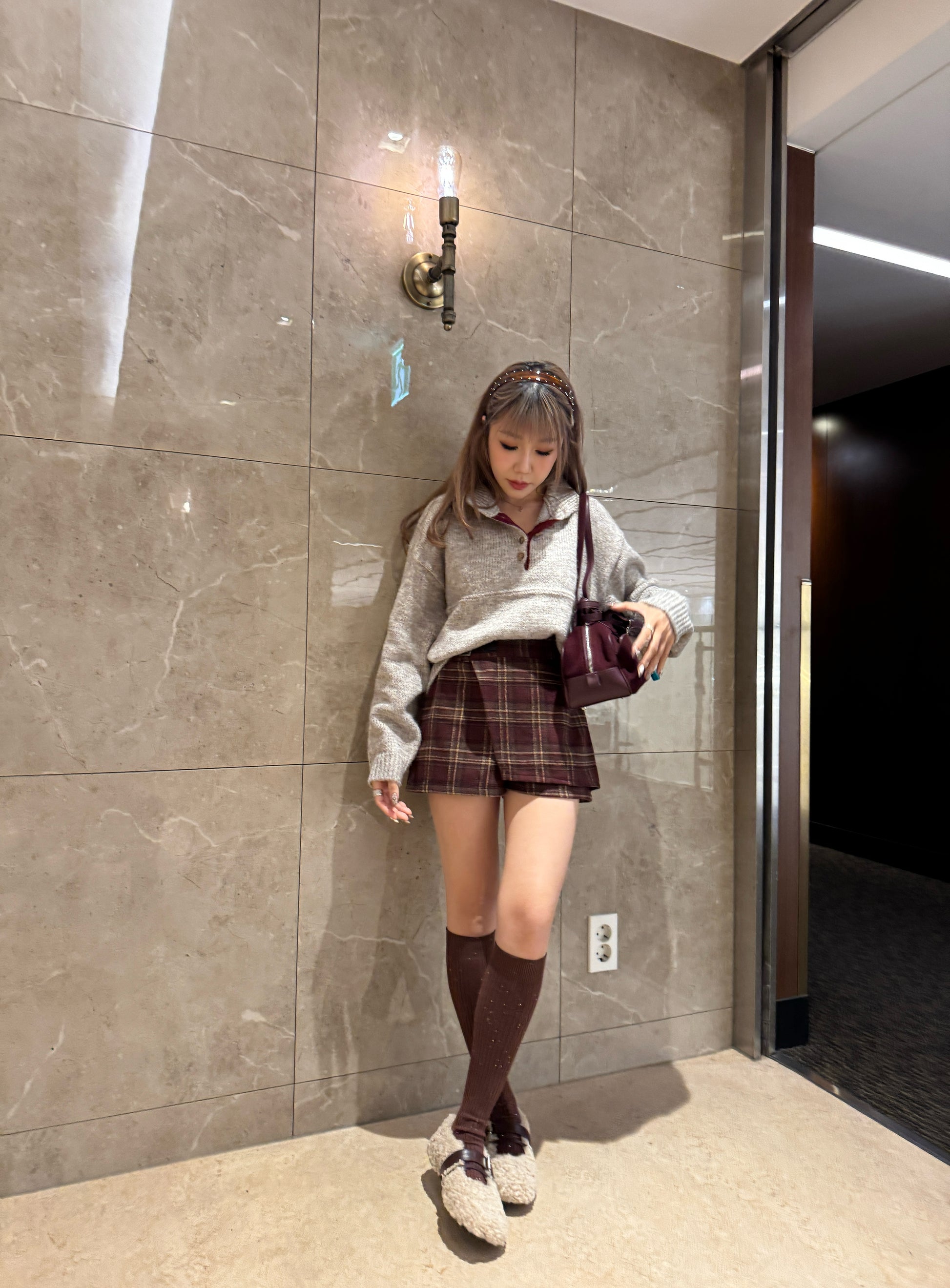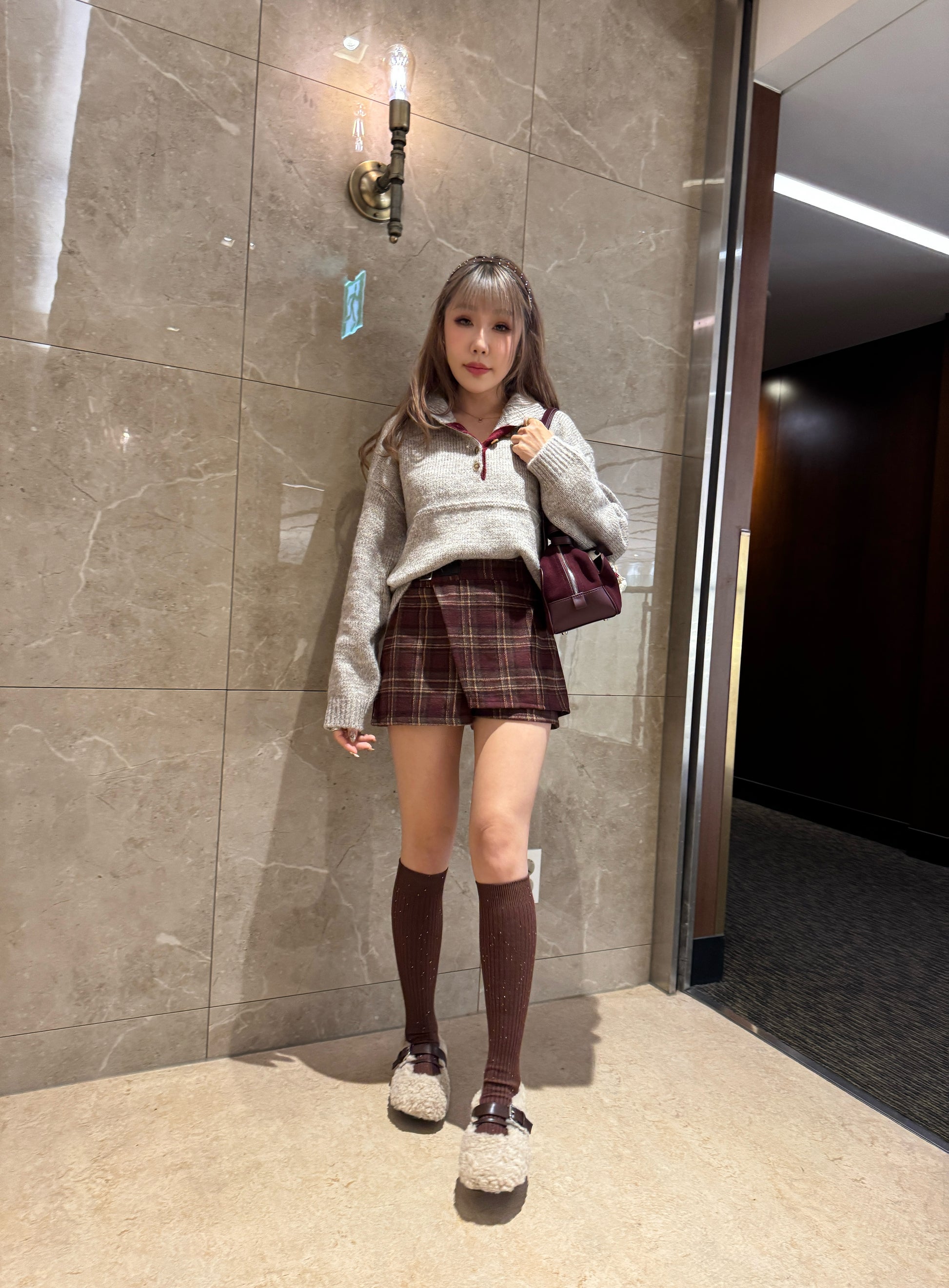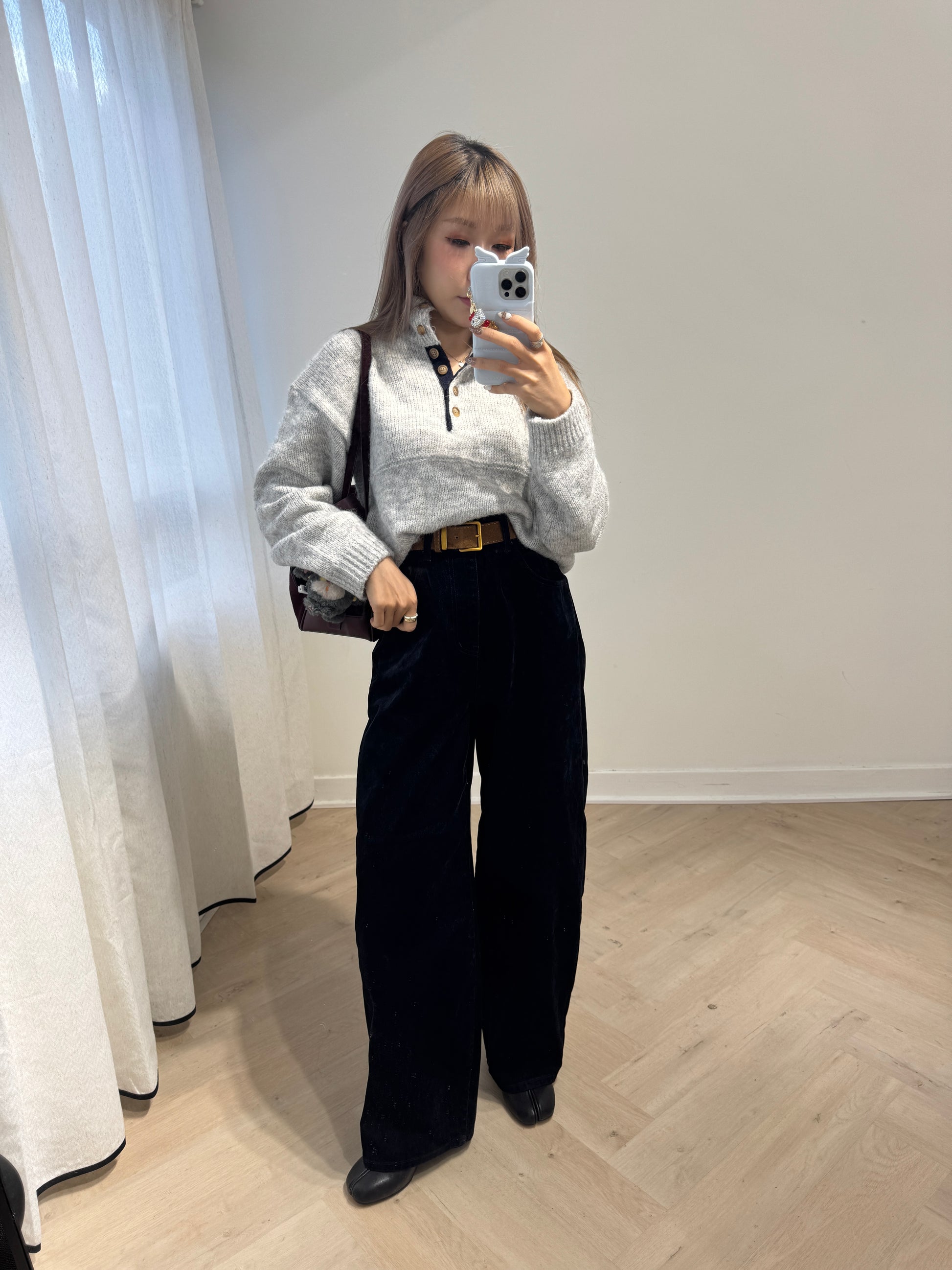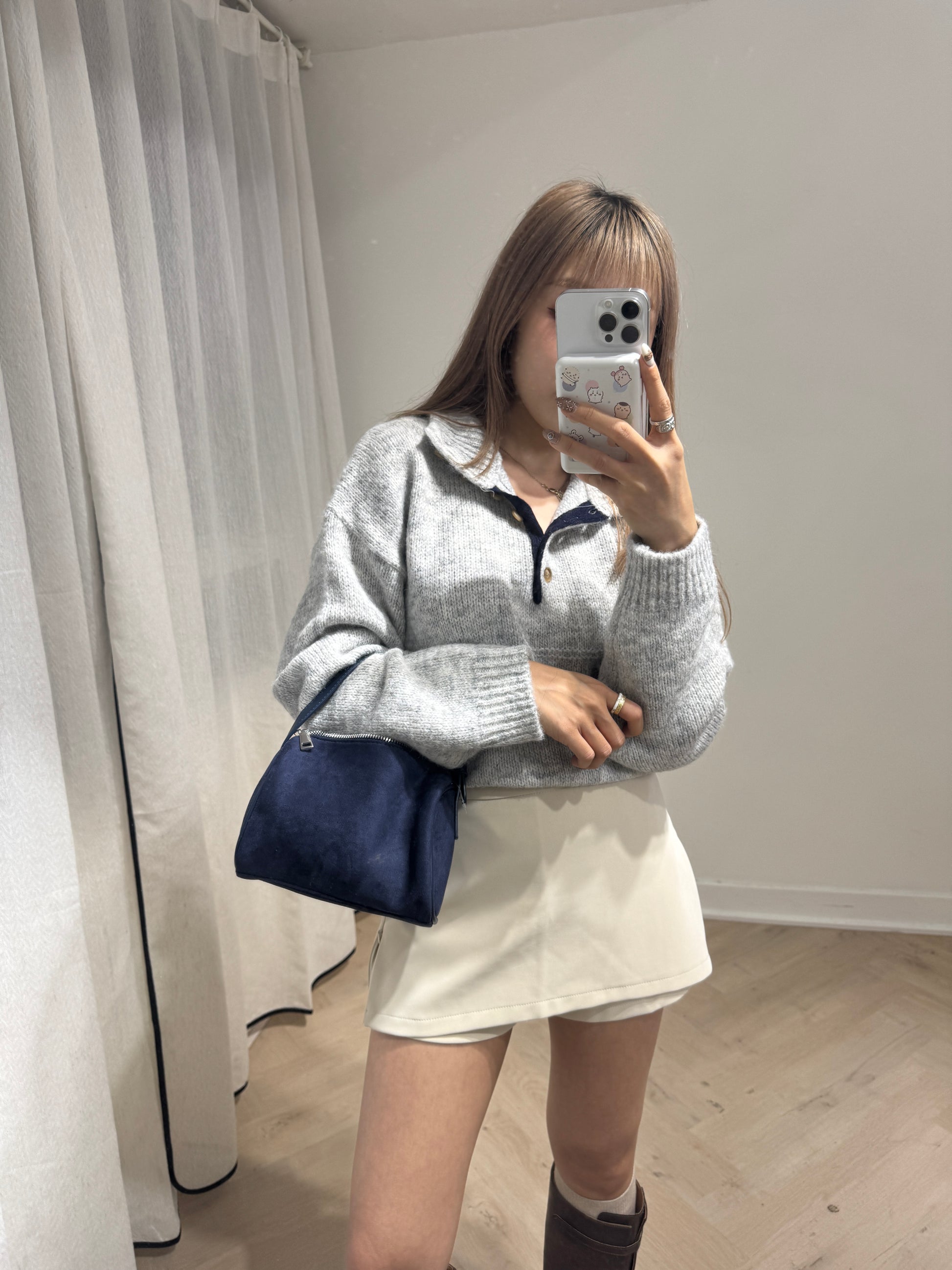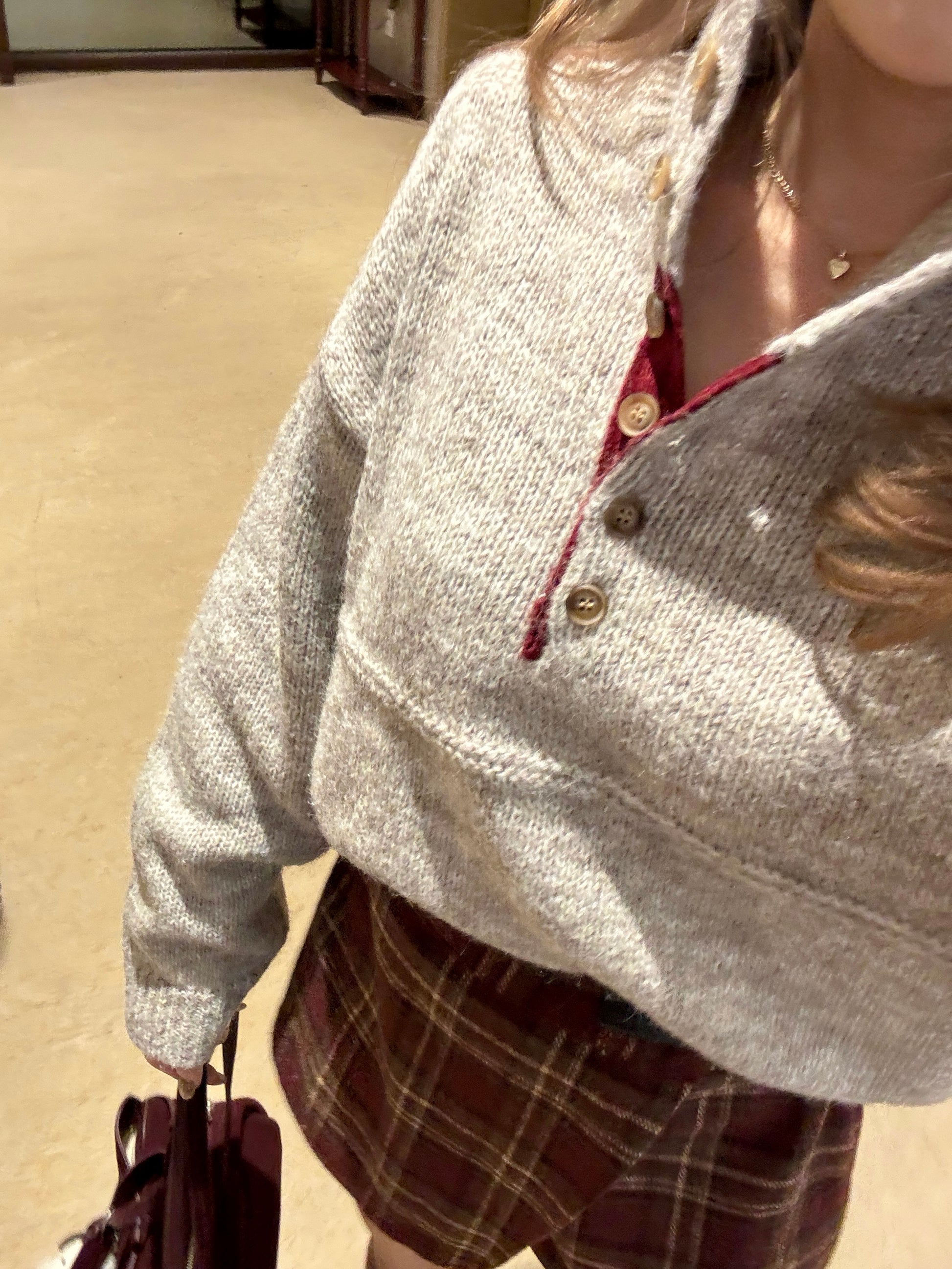 鈕扣企領混線冷衫 ( 米杏/淺灰 )