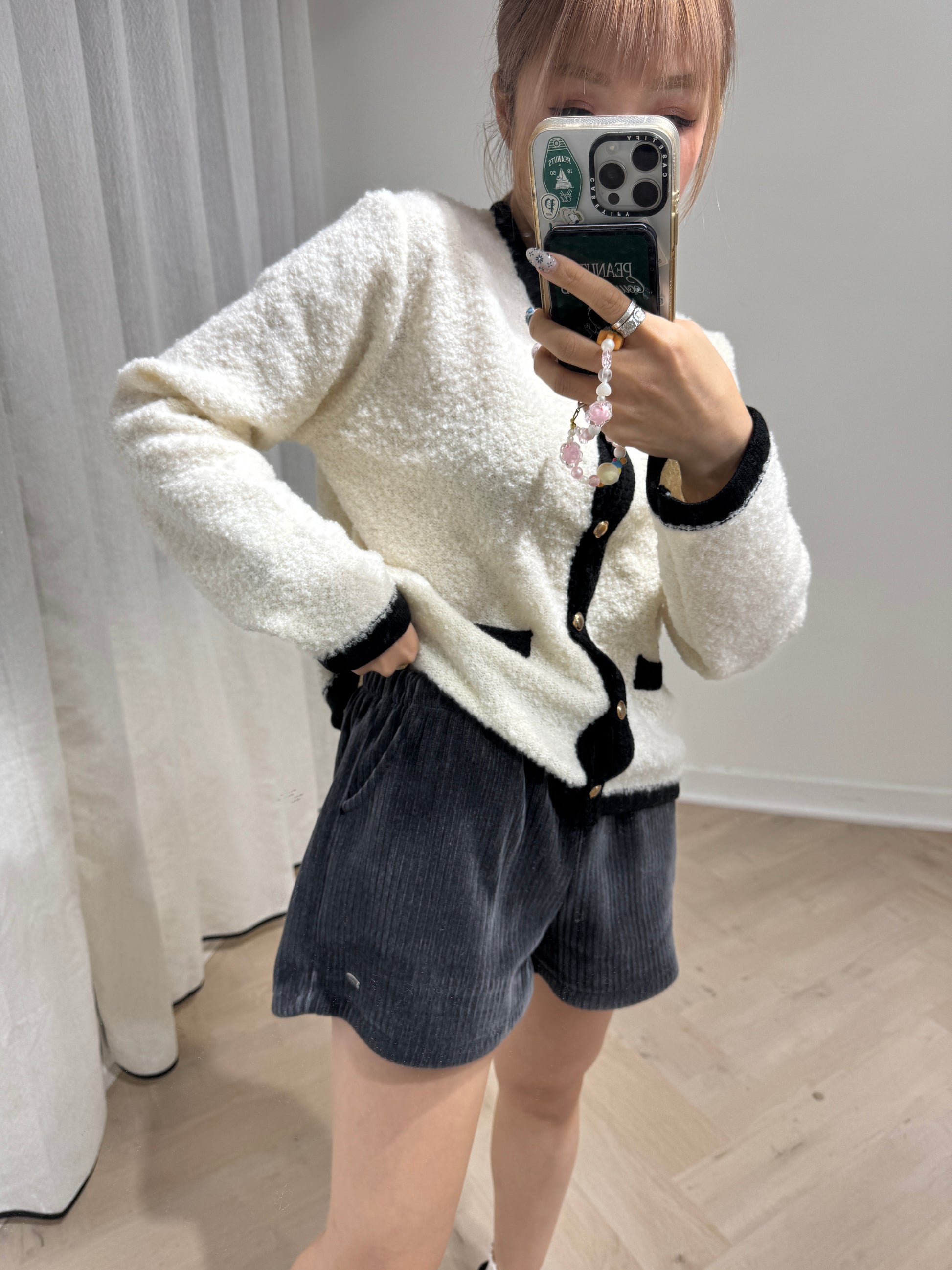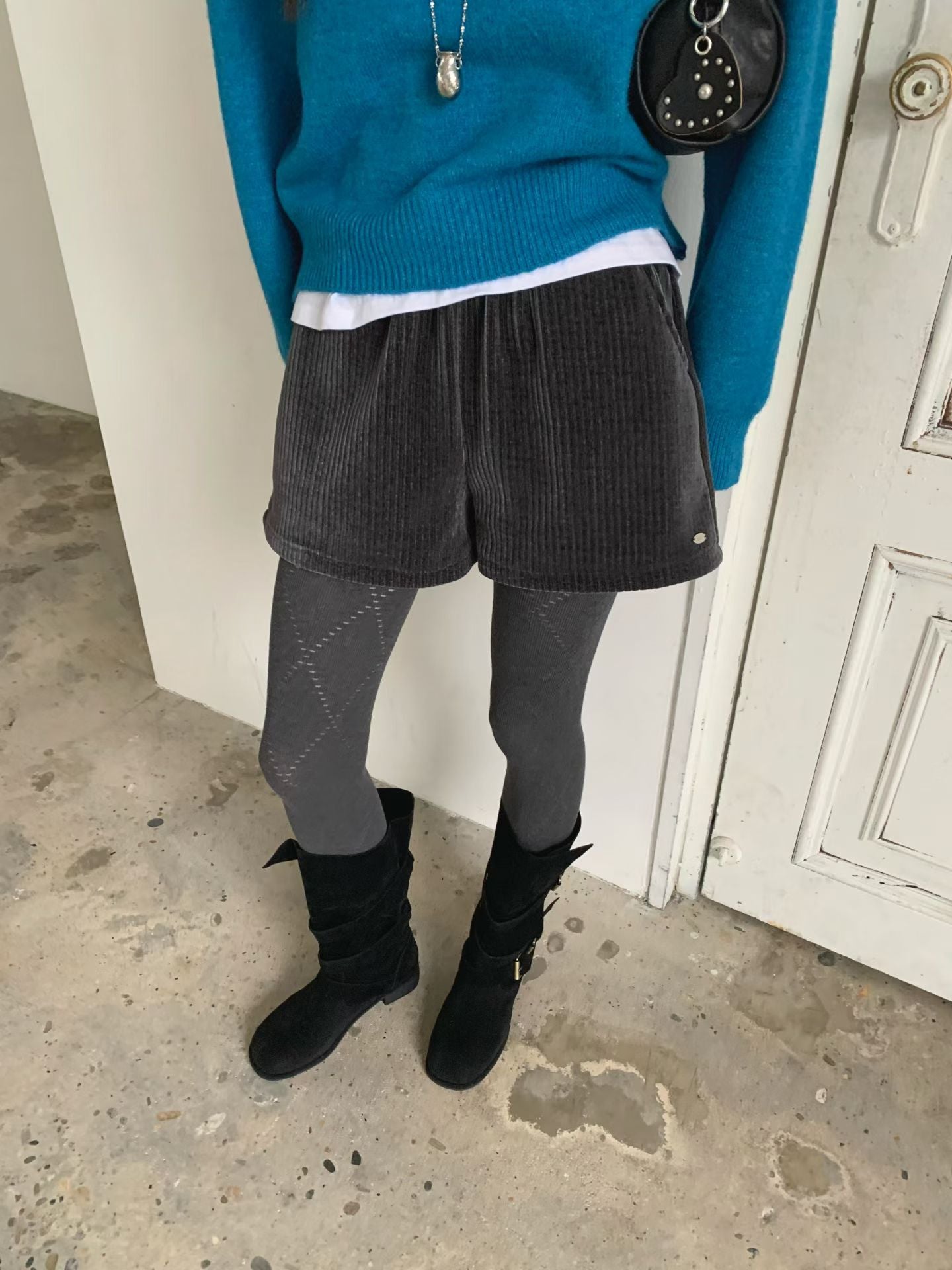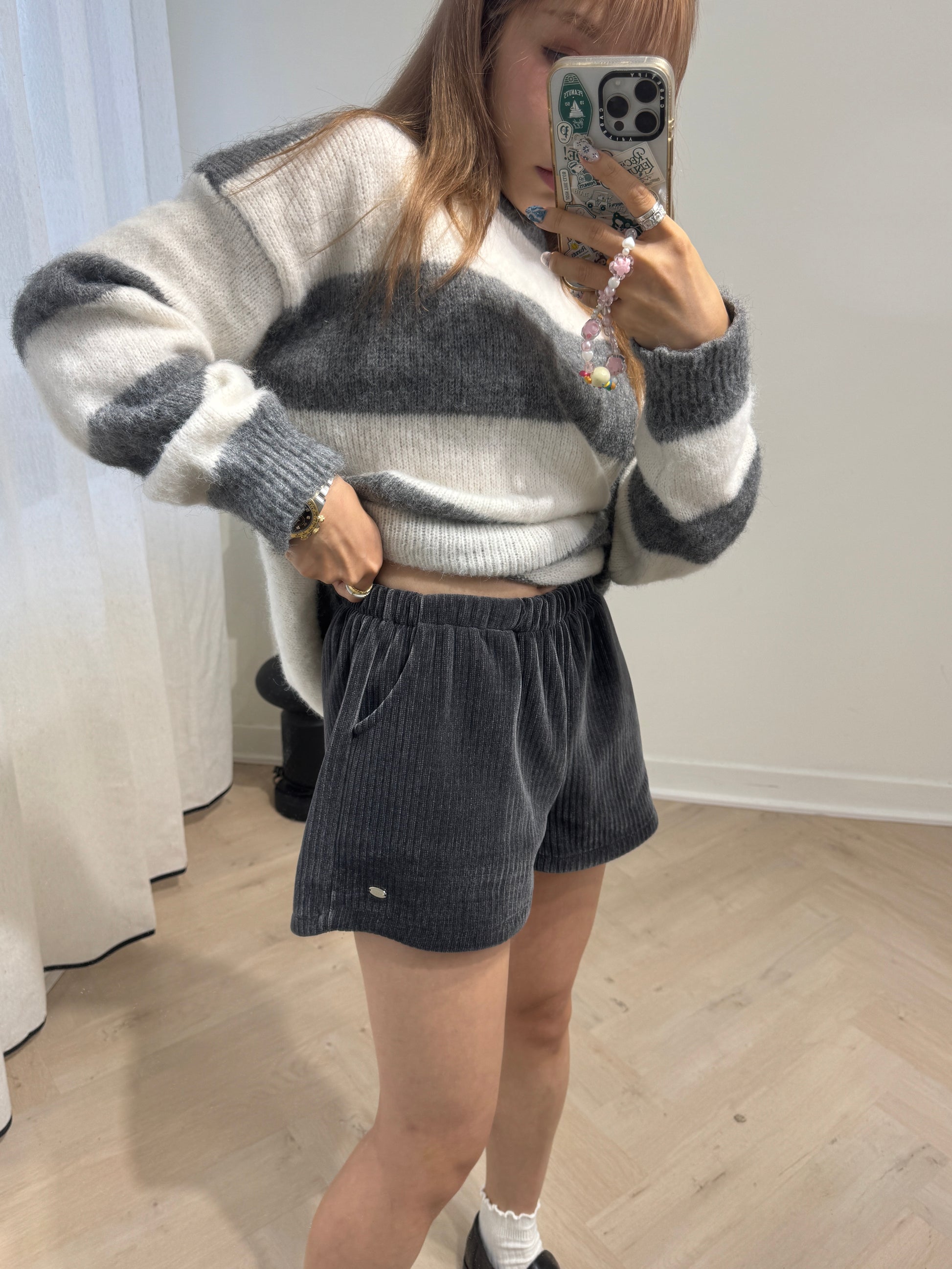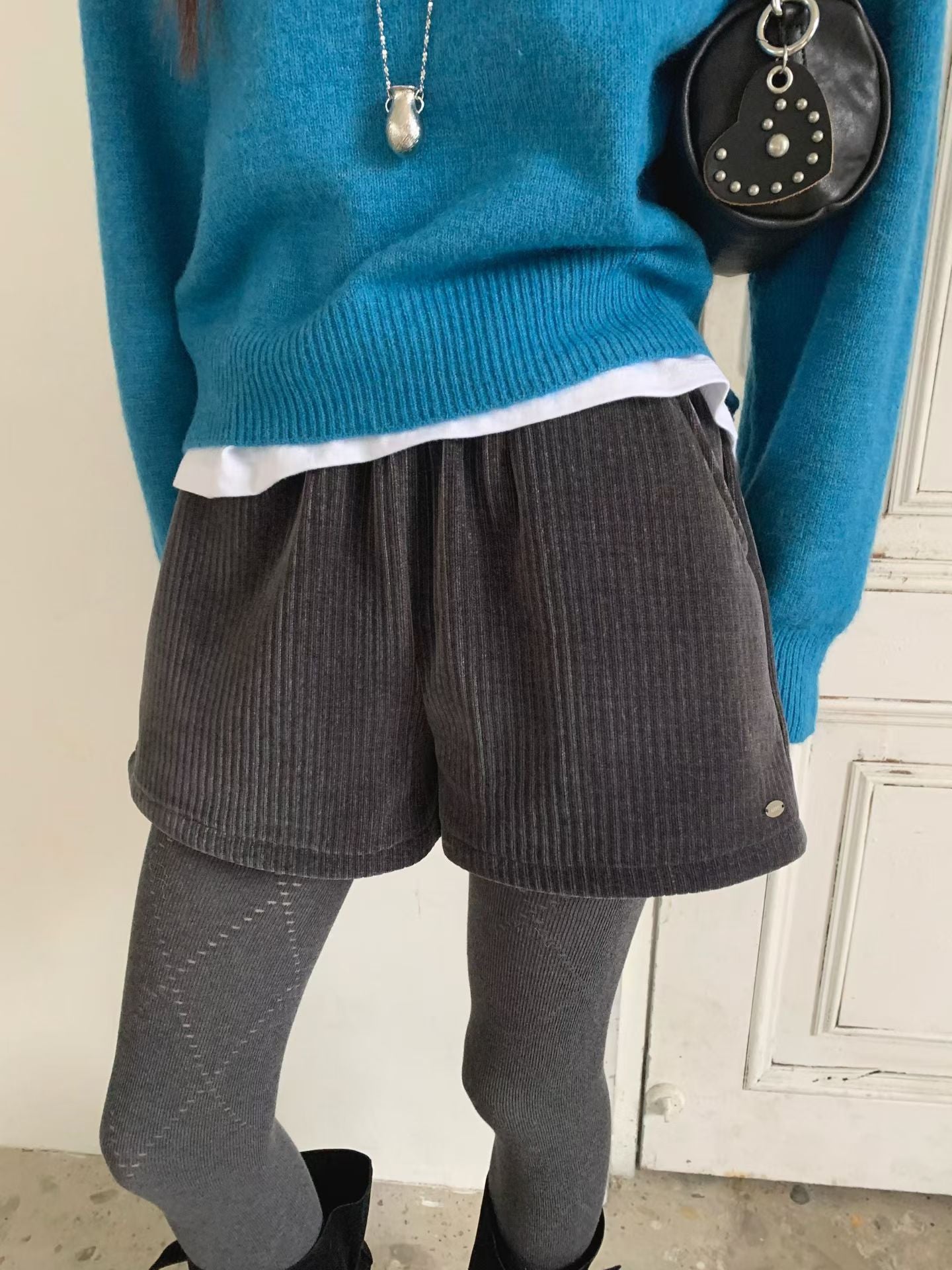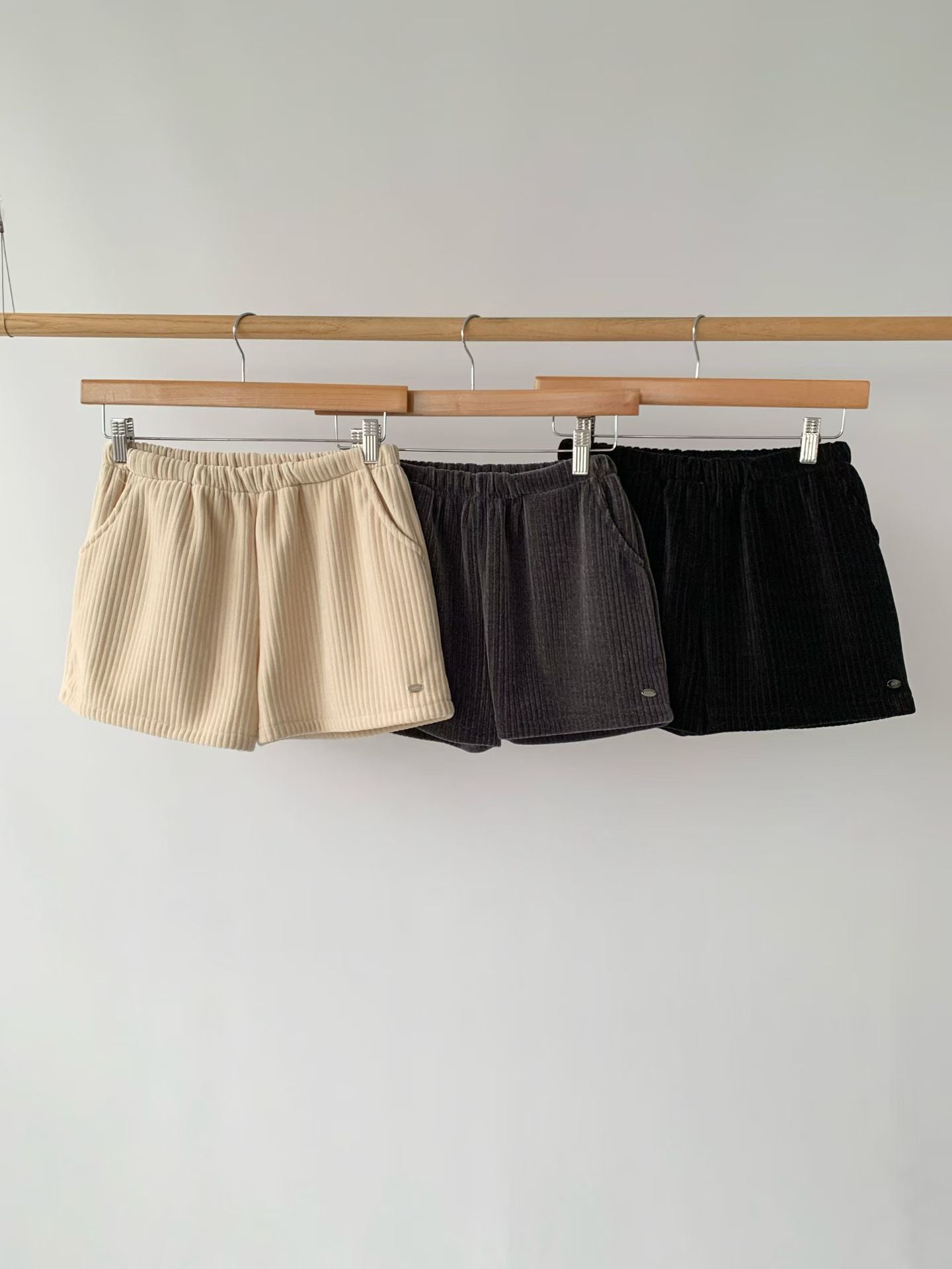 銀牌仔絲絨短褲 ( 黑/深灰/米 )