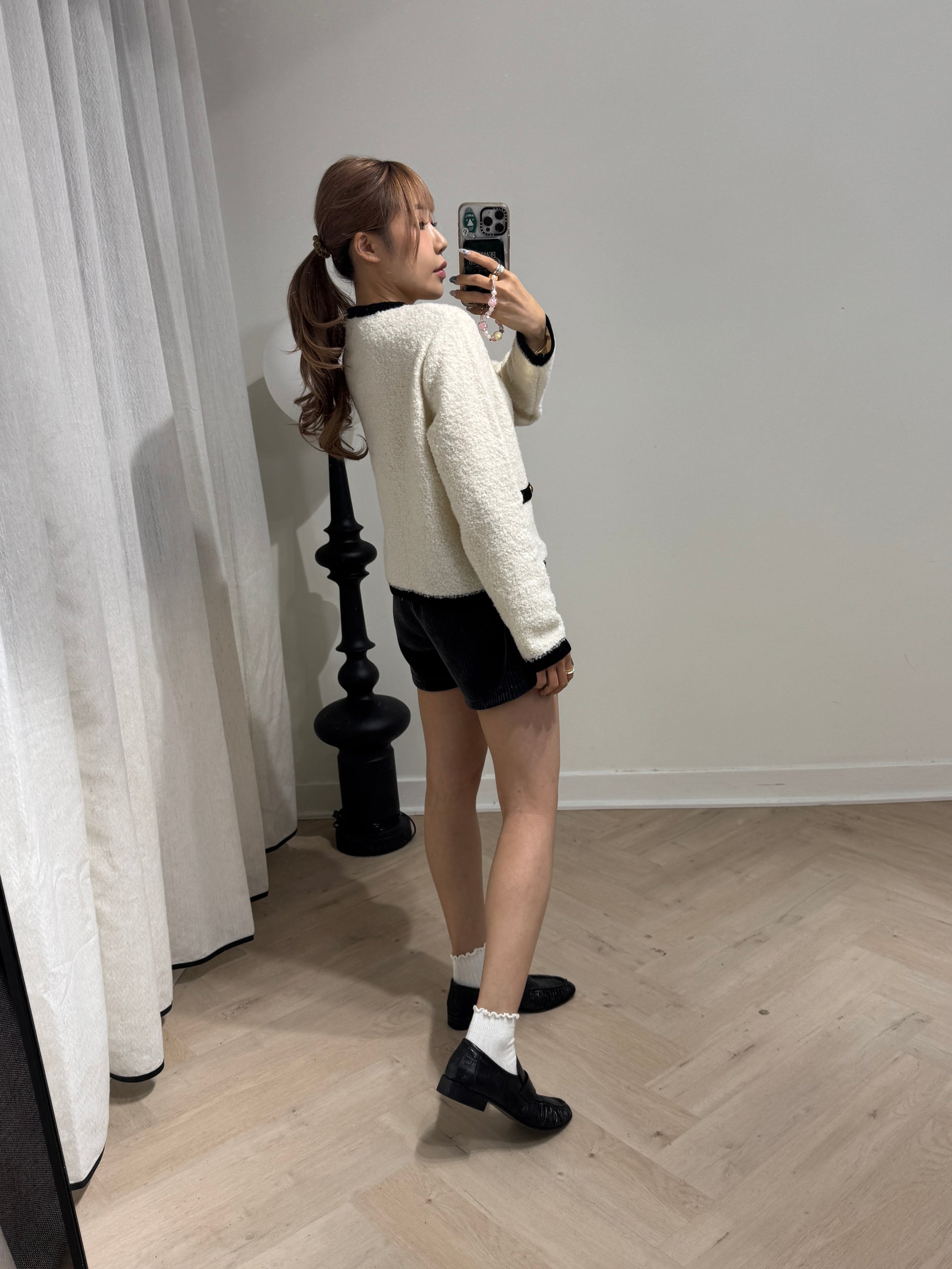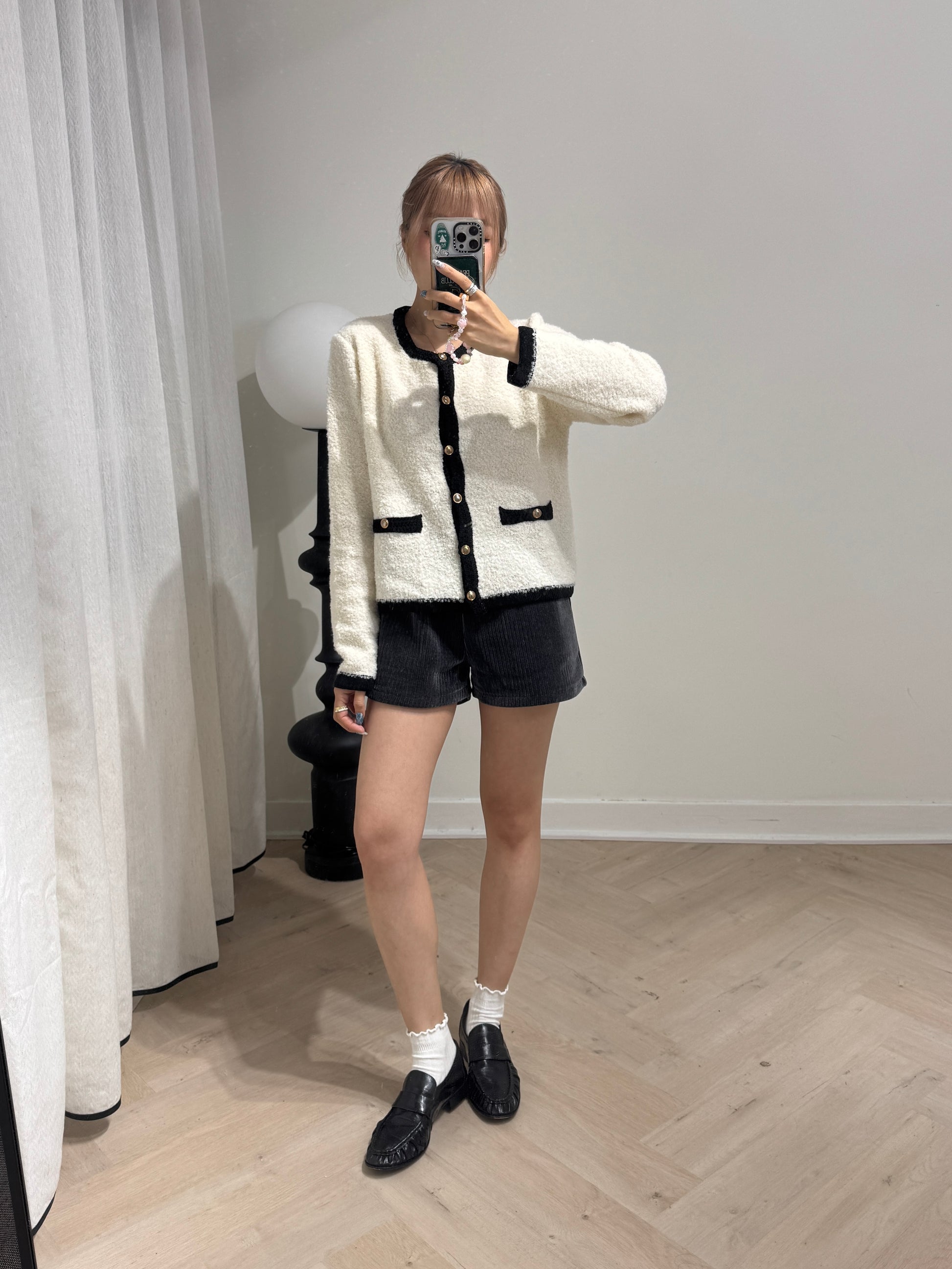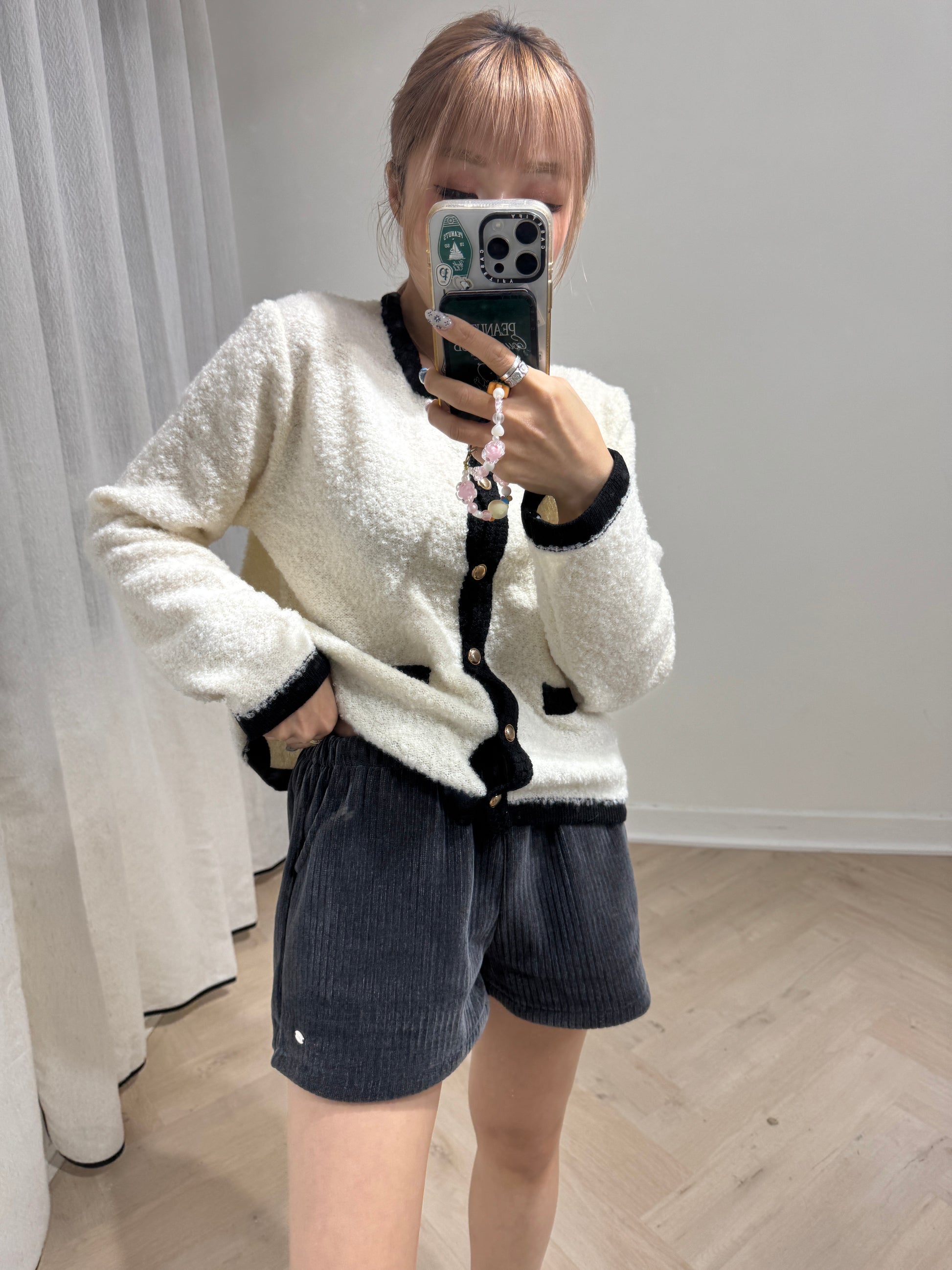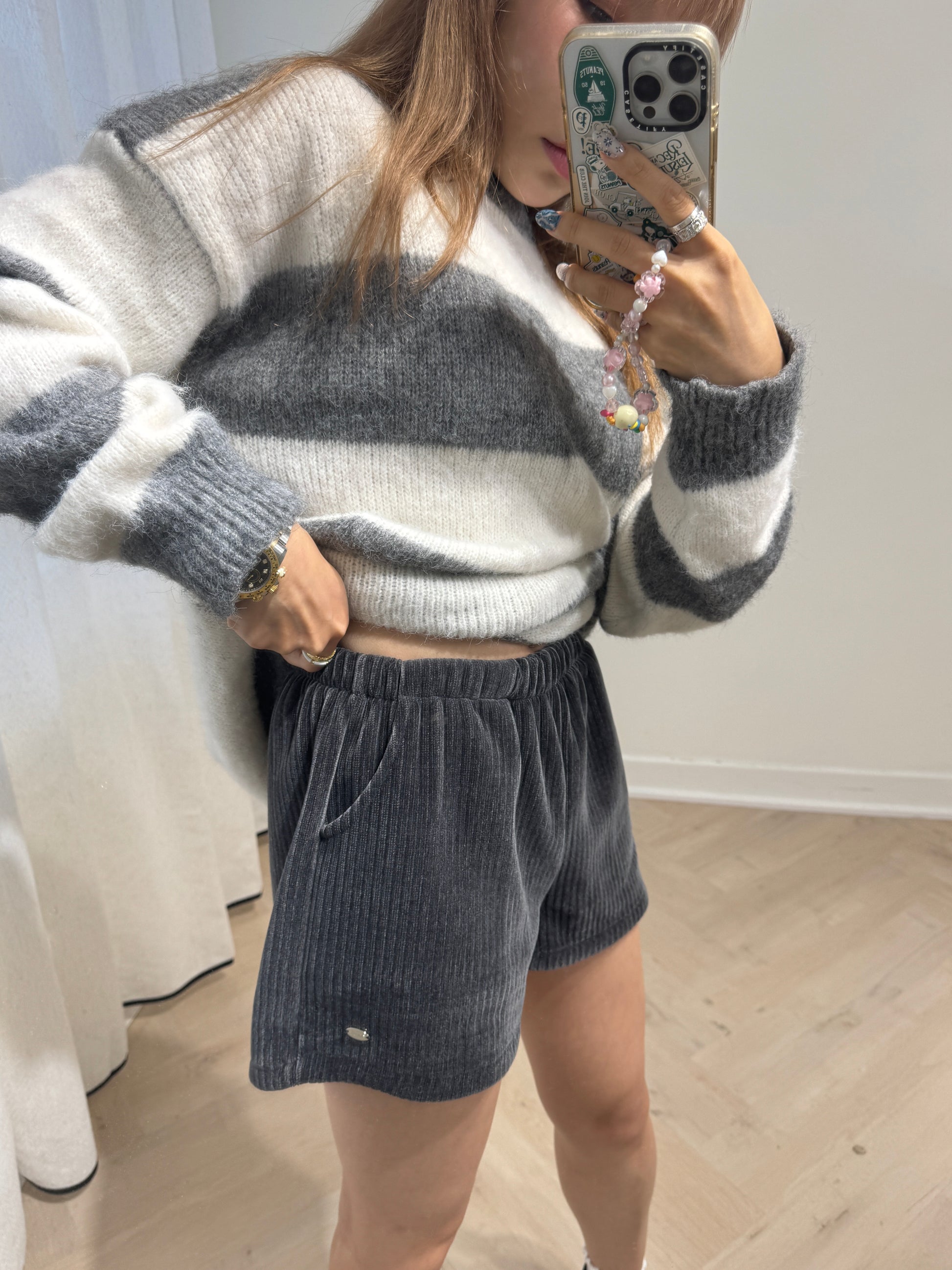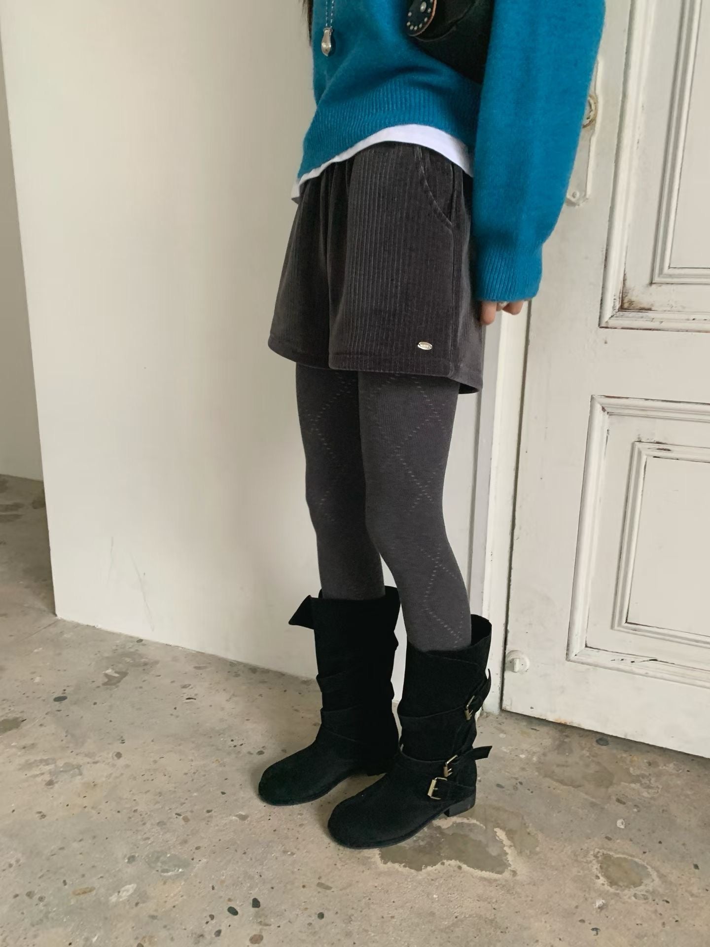 銀牌仔絲絨短褲 ( 黑/深灰/米 )