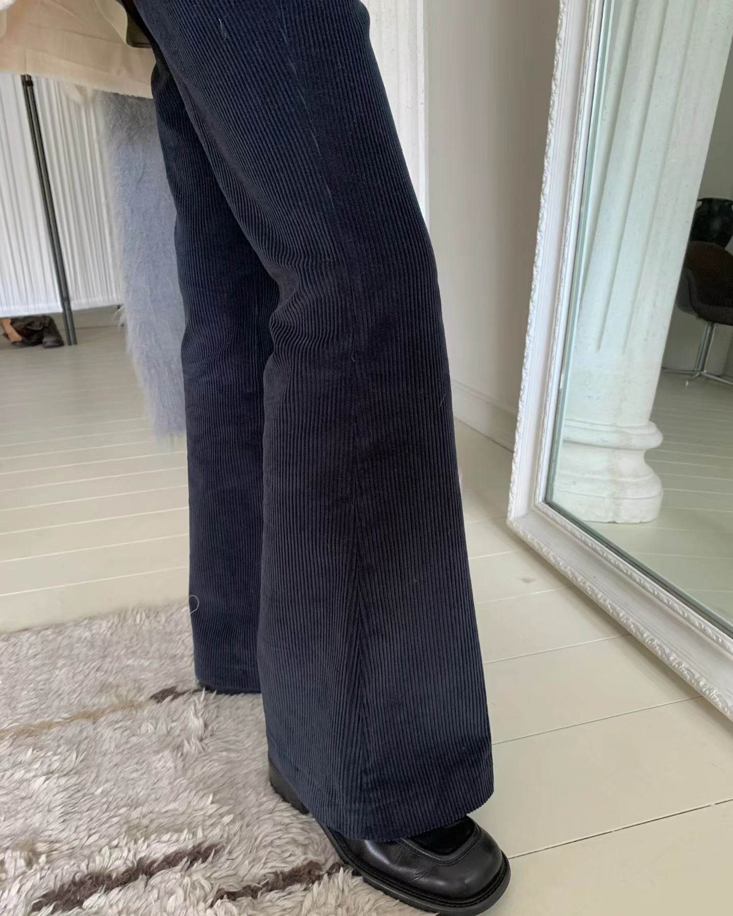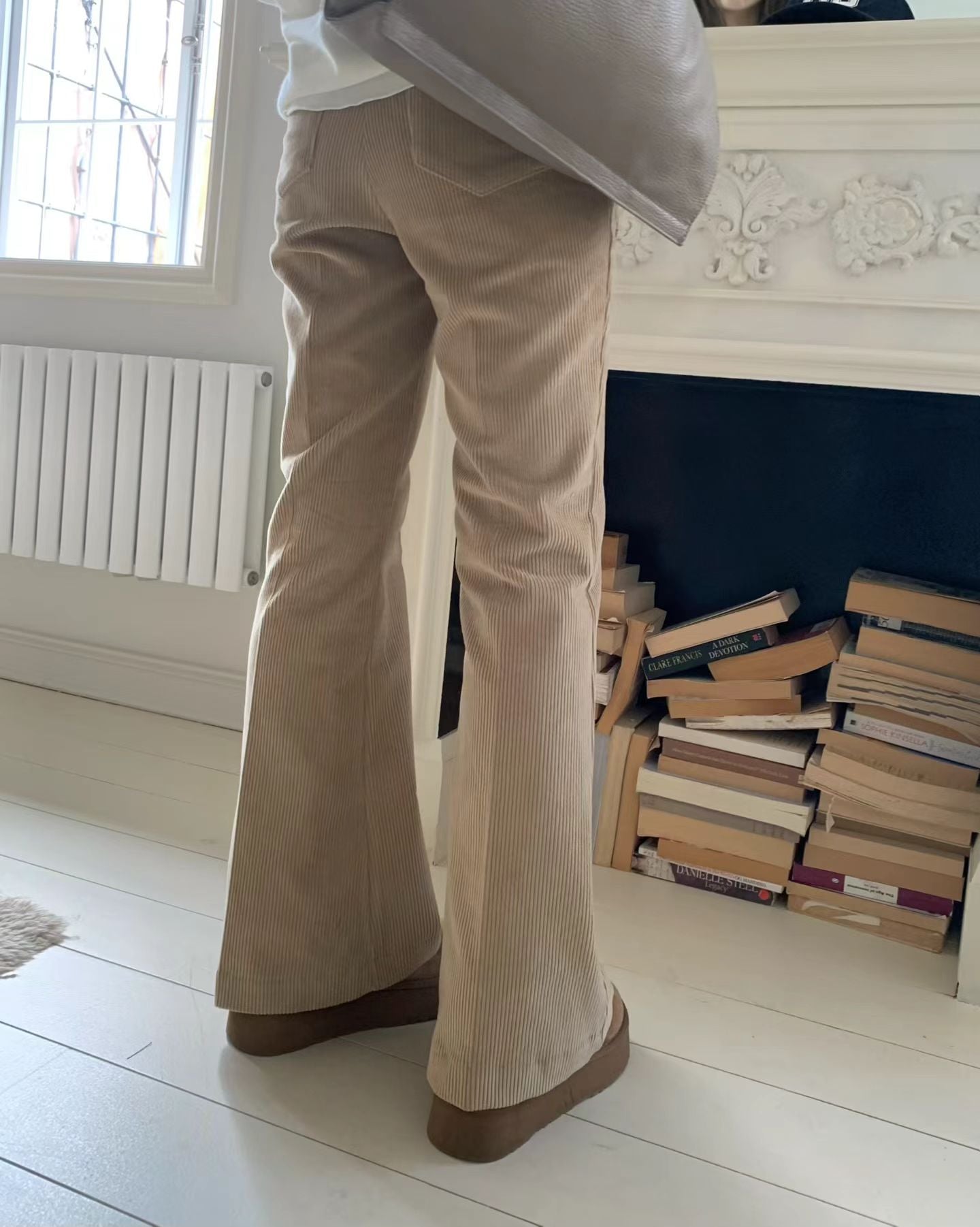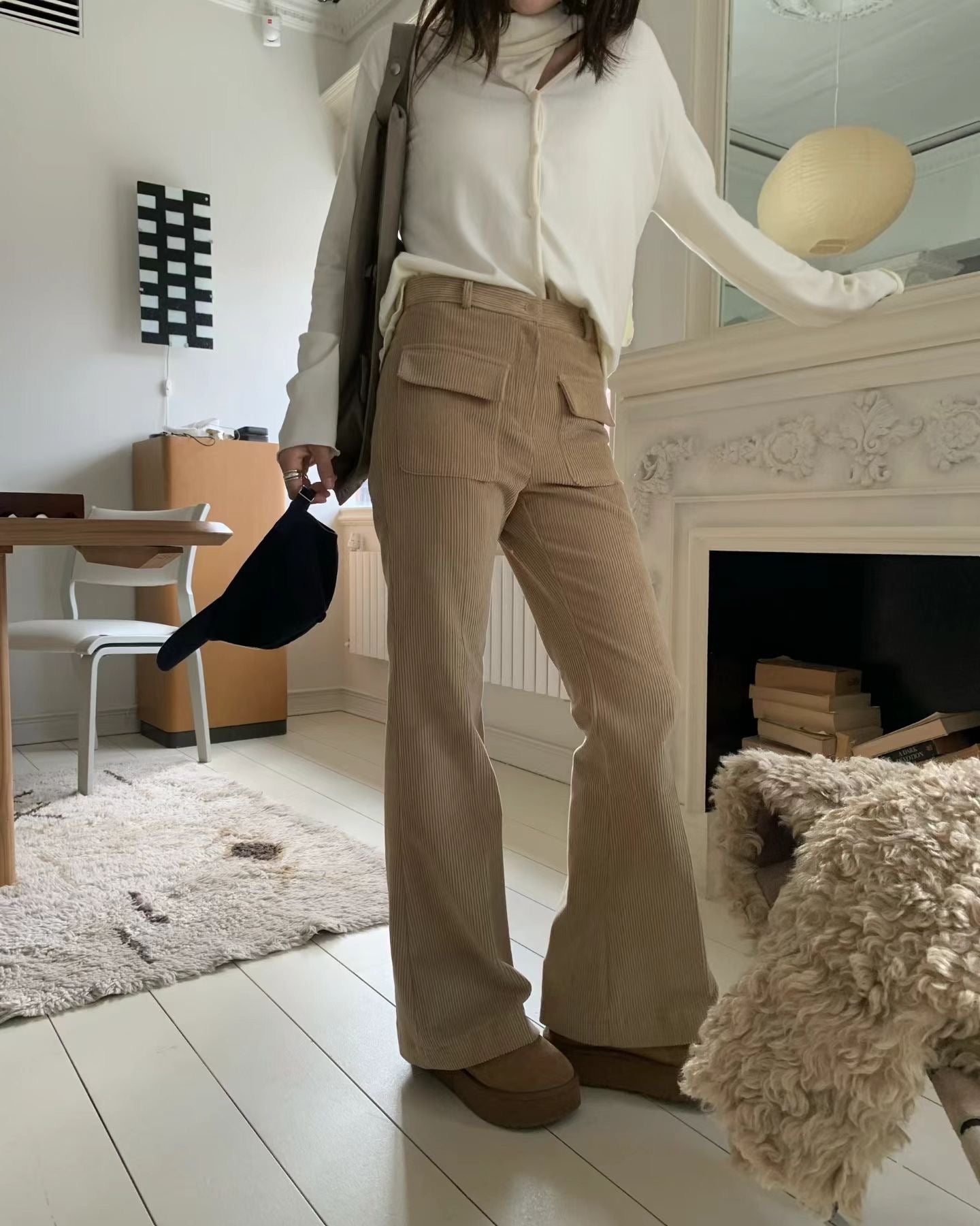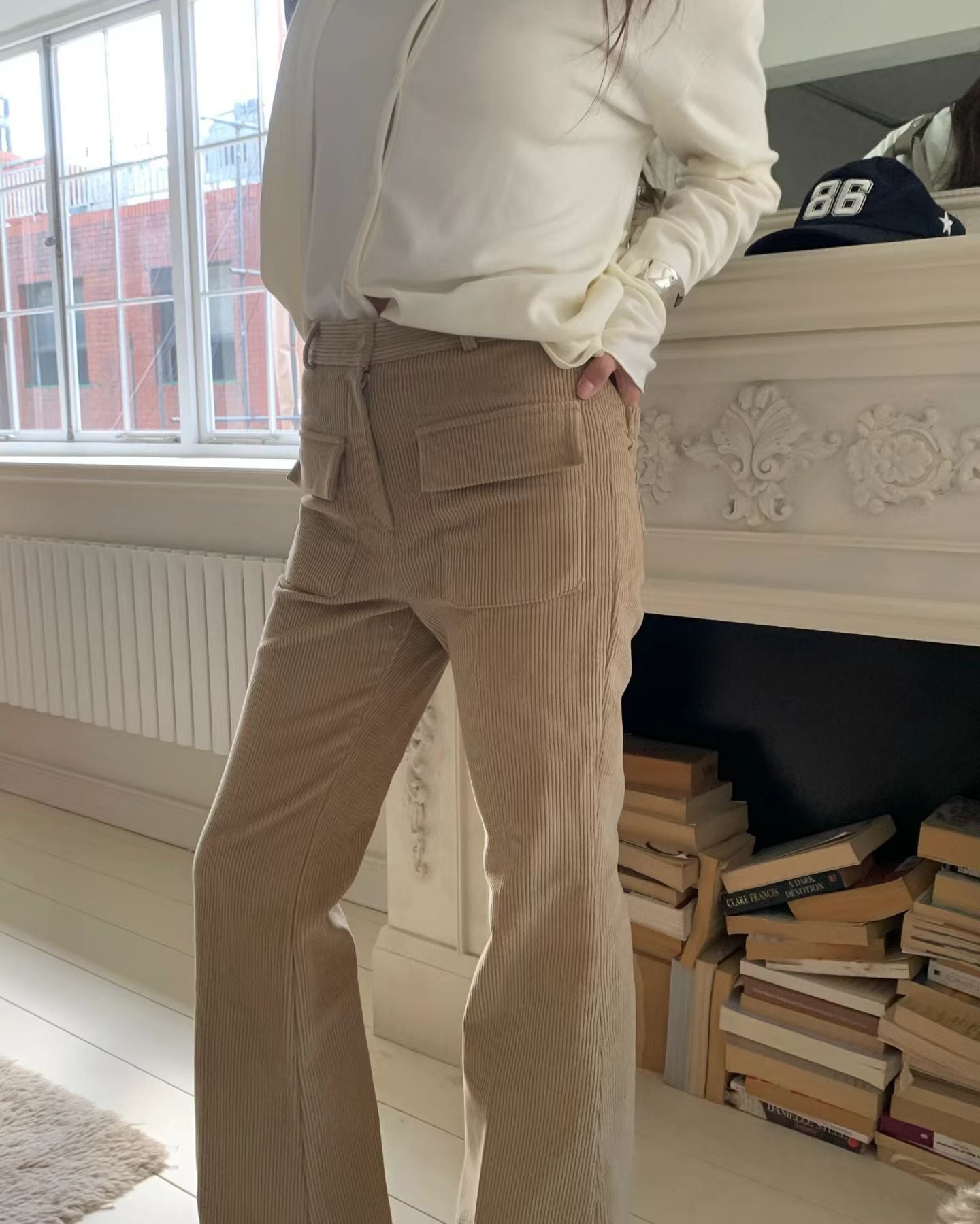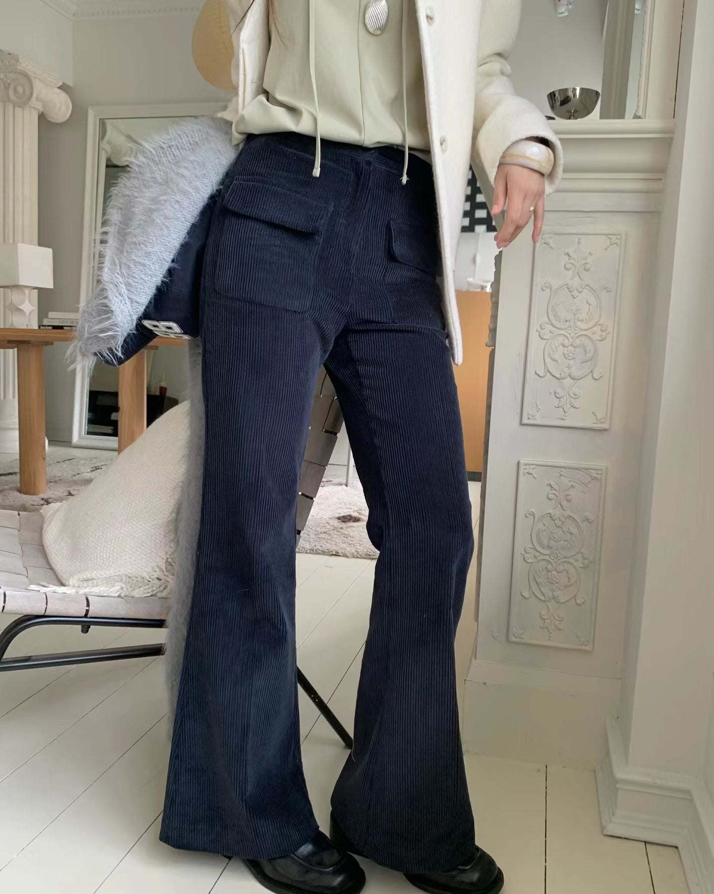 雙口袋燈芯絨喇叭長褲 ( 寶藍/杏 )