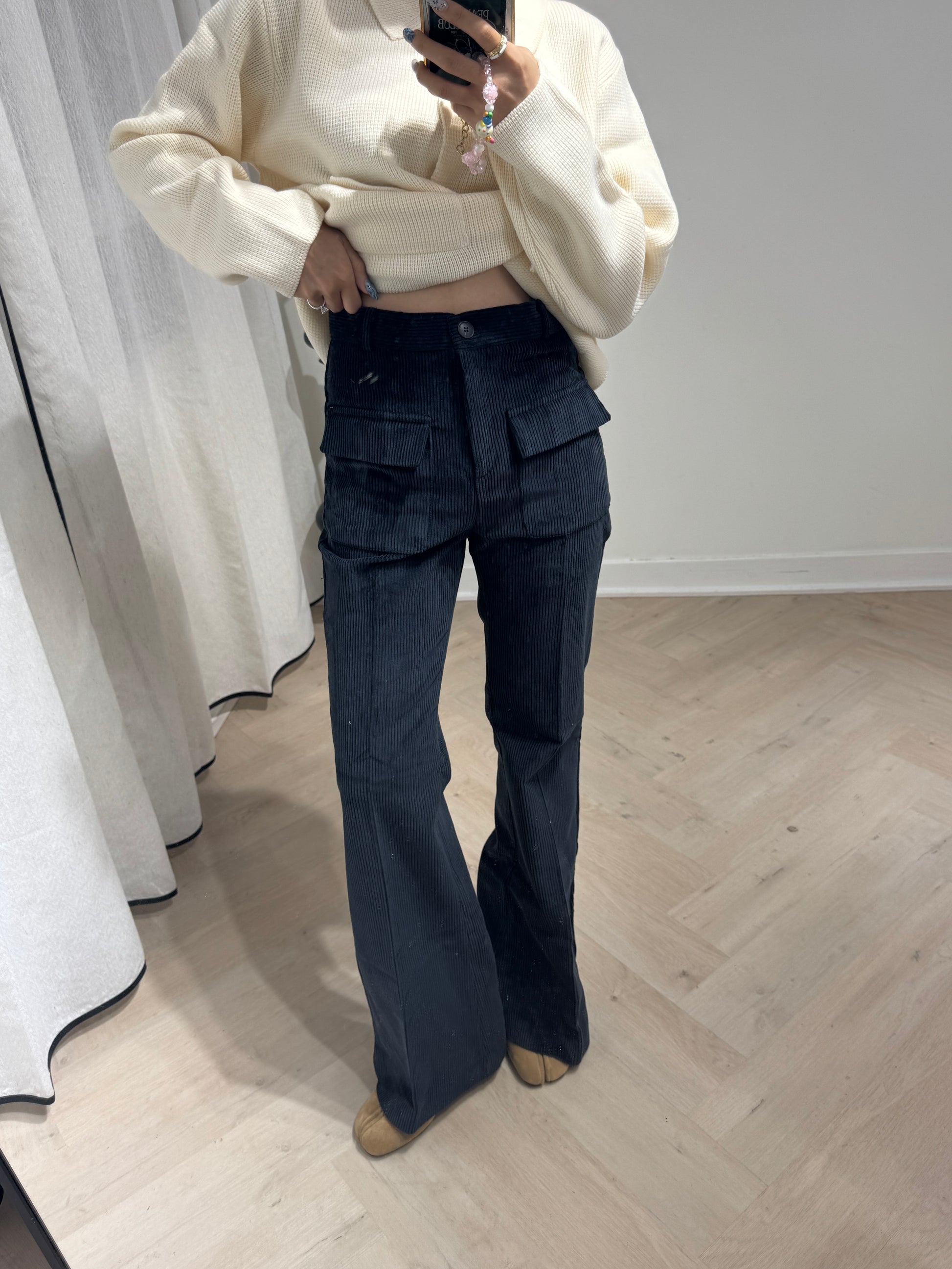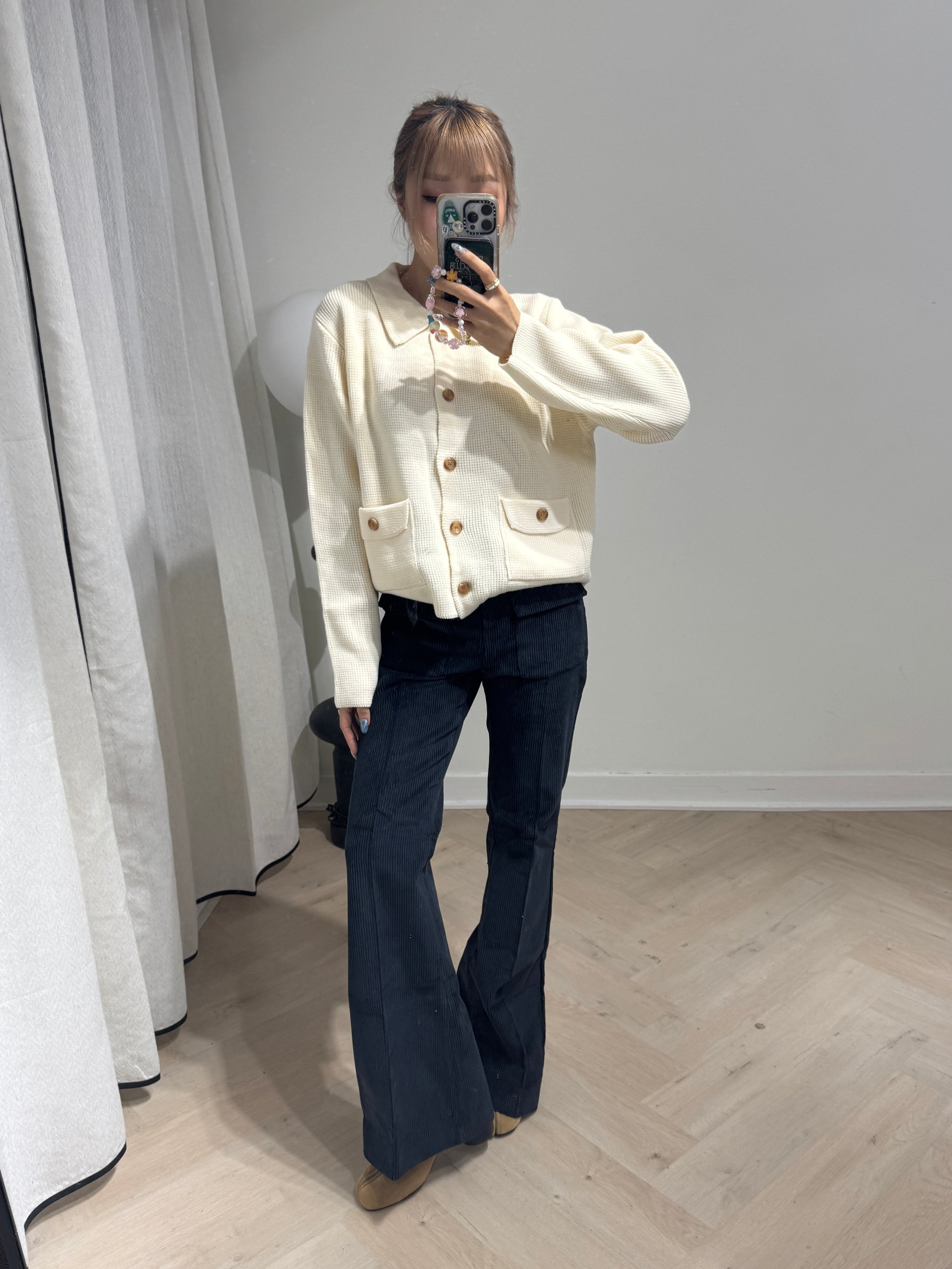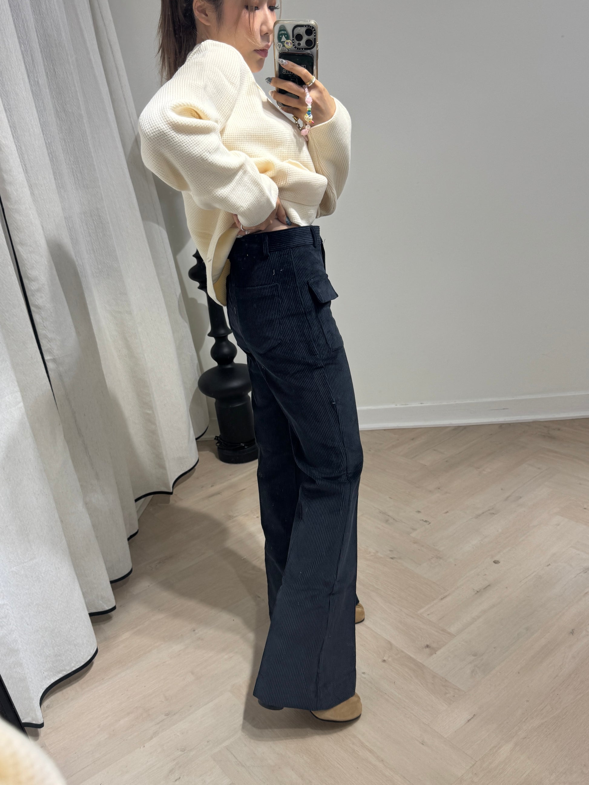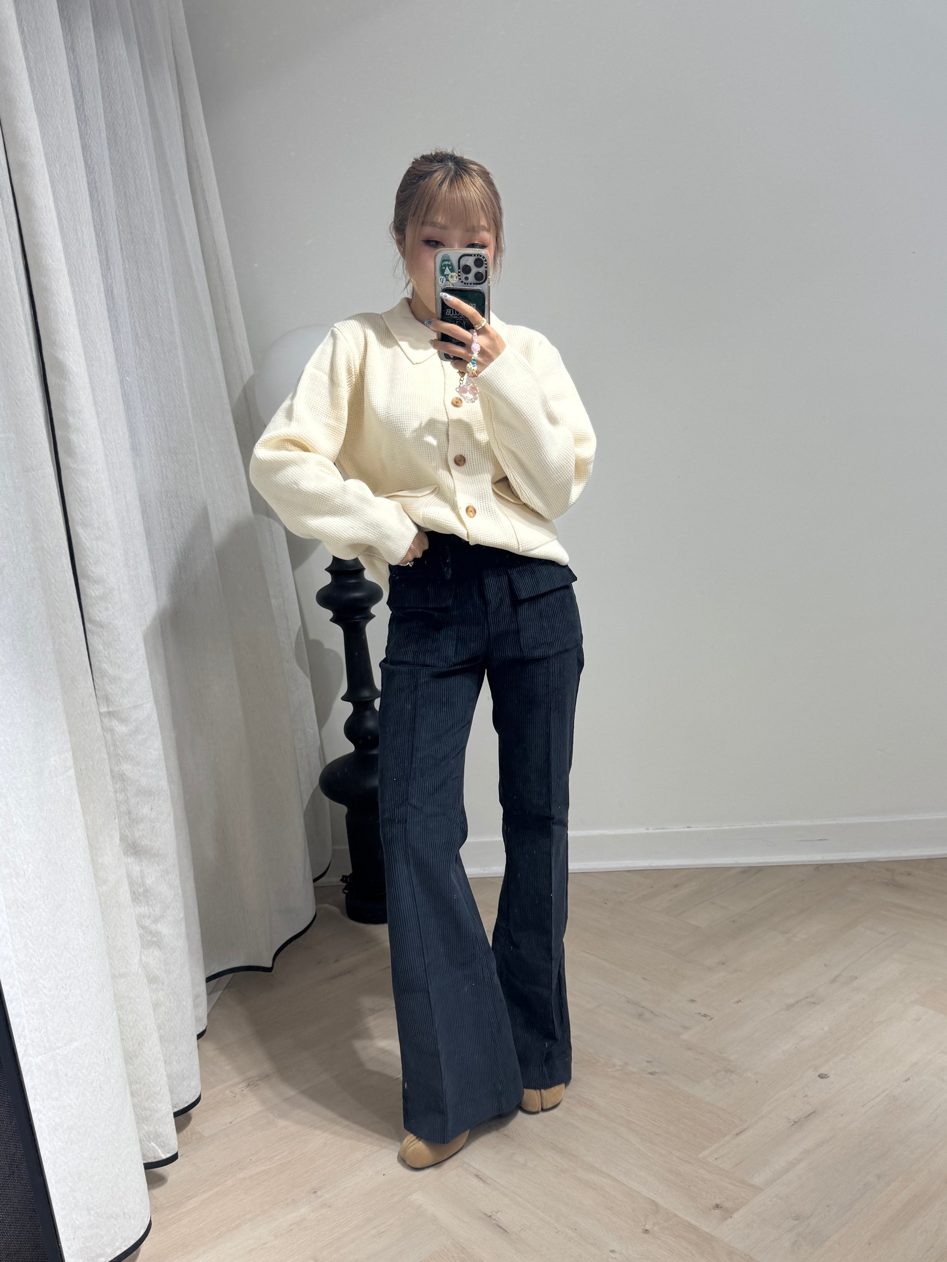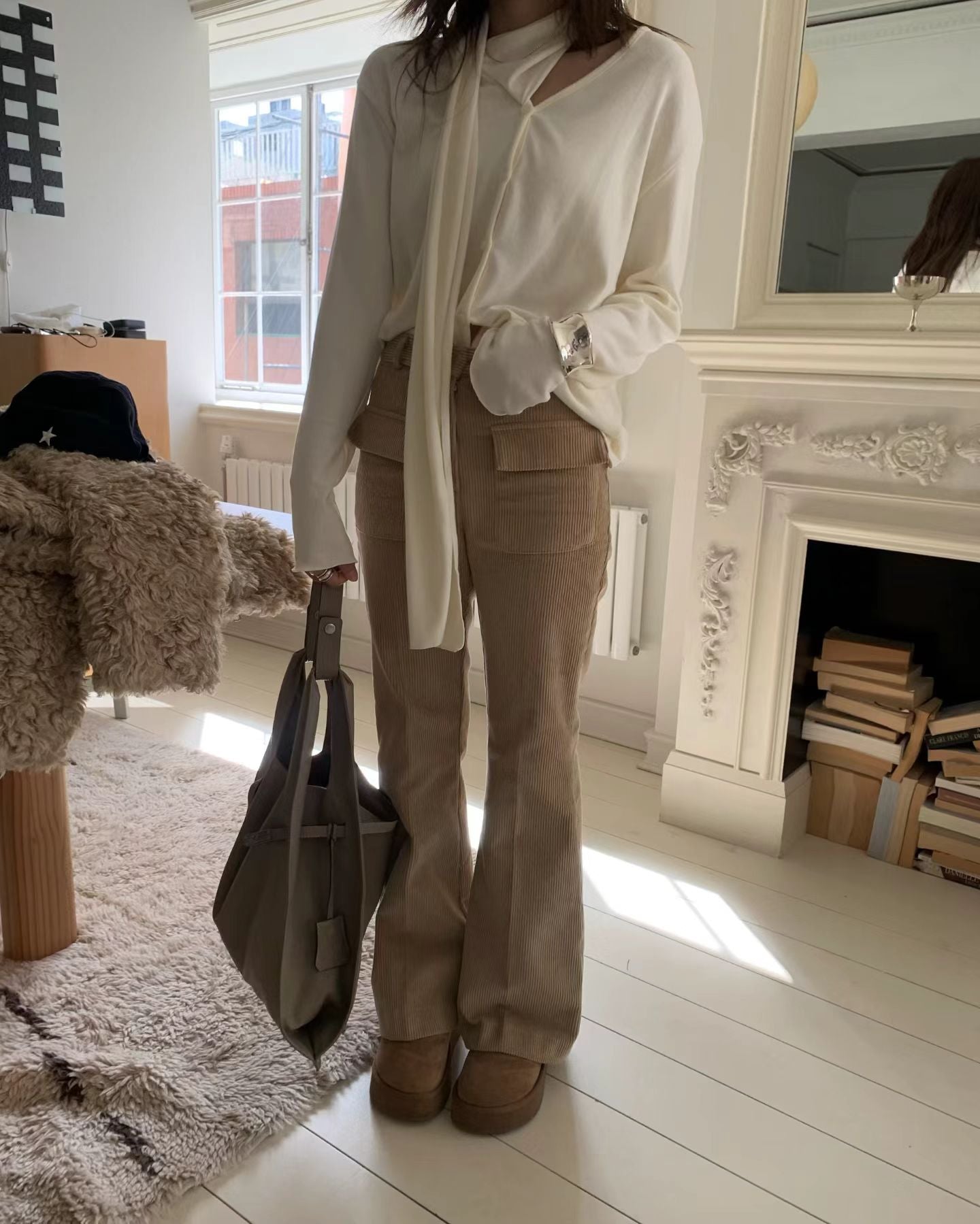 雙口袋燈芯絨喇叭長褲 ( 寶藍/杏 )
