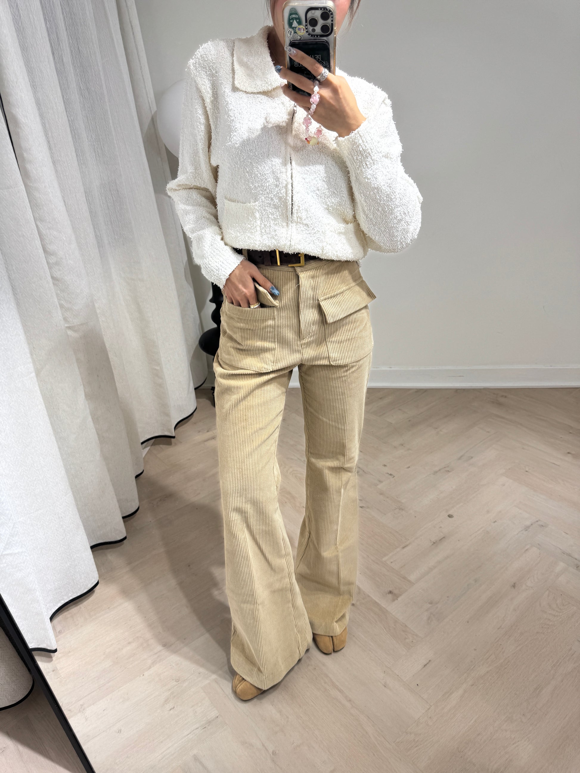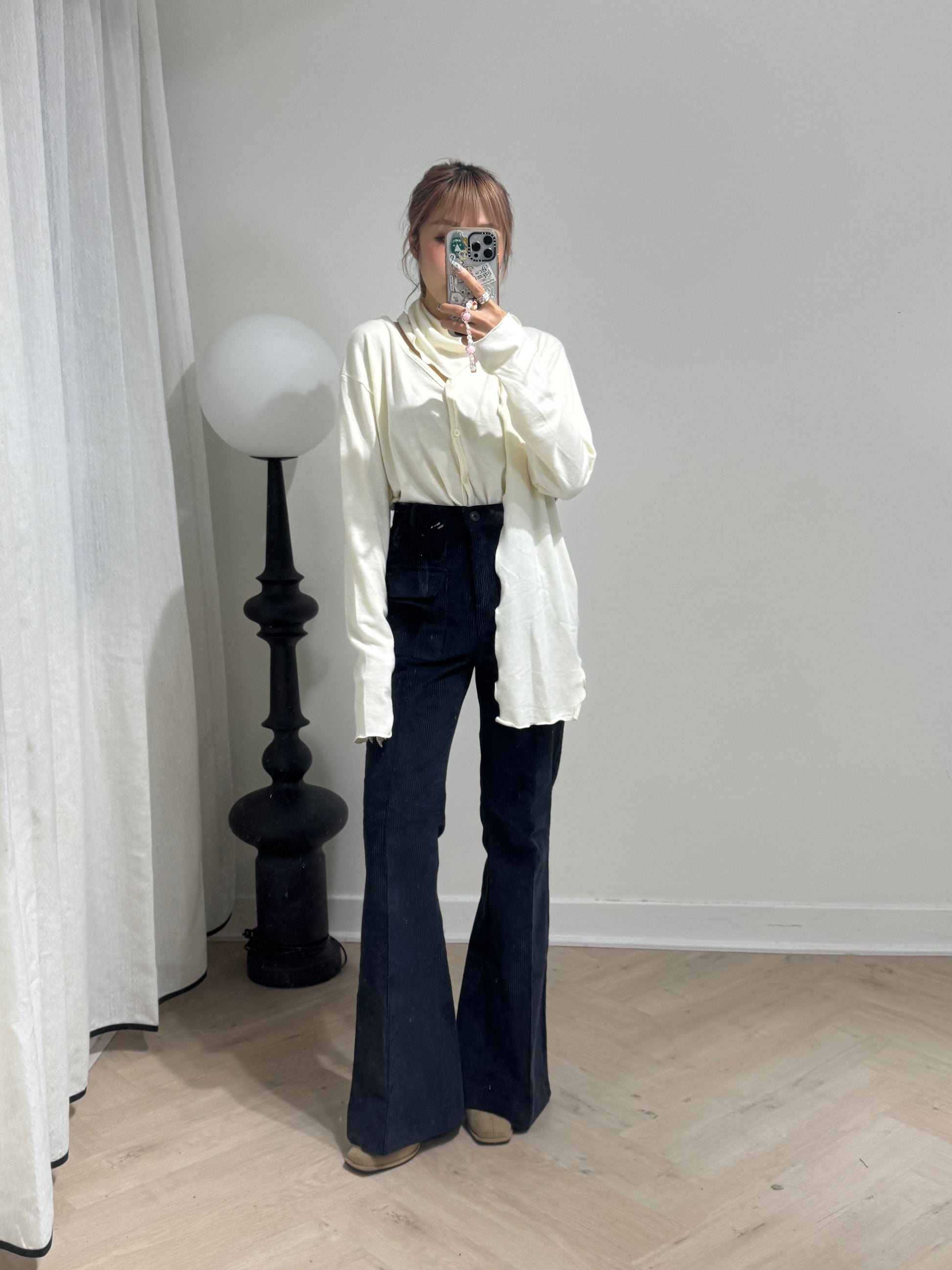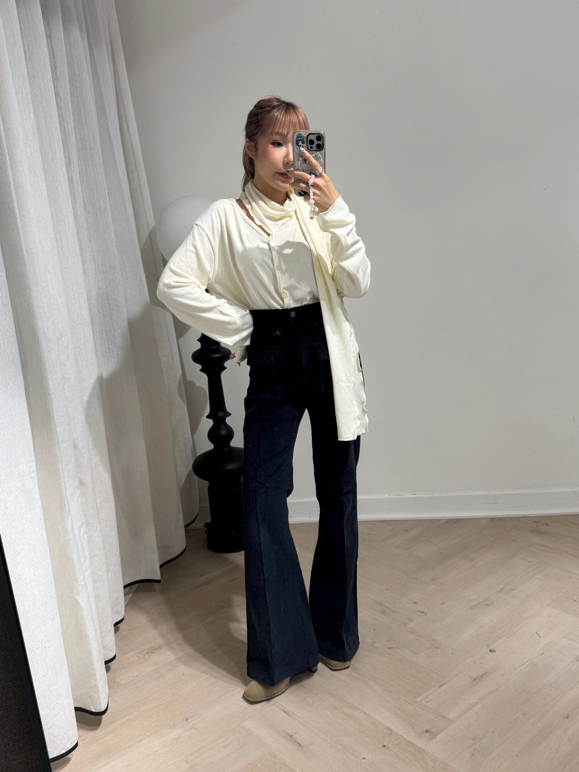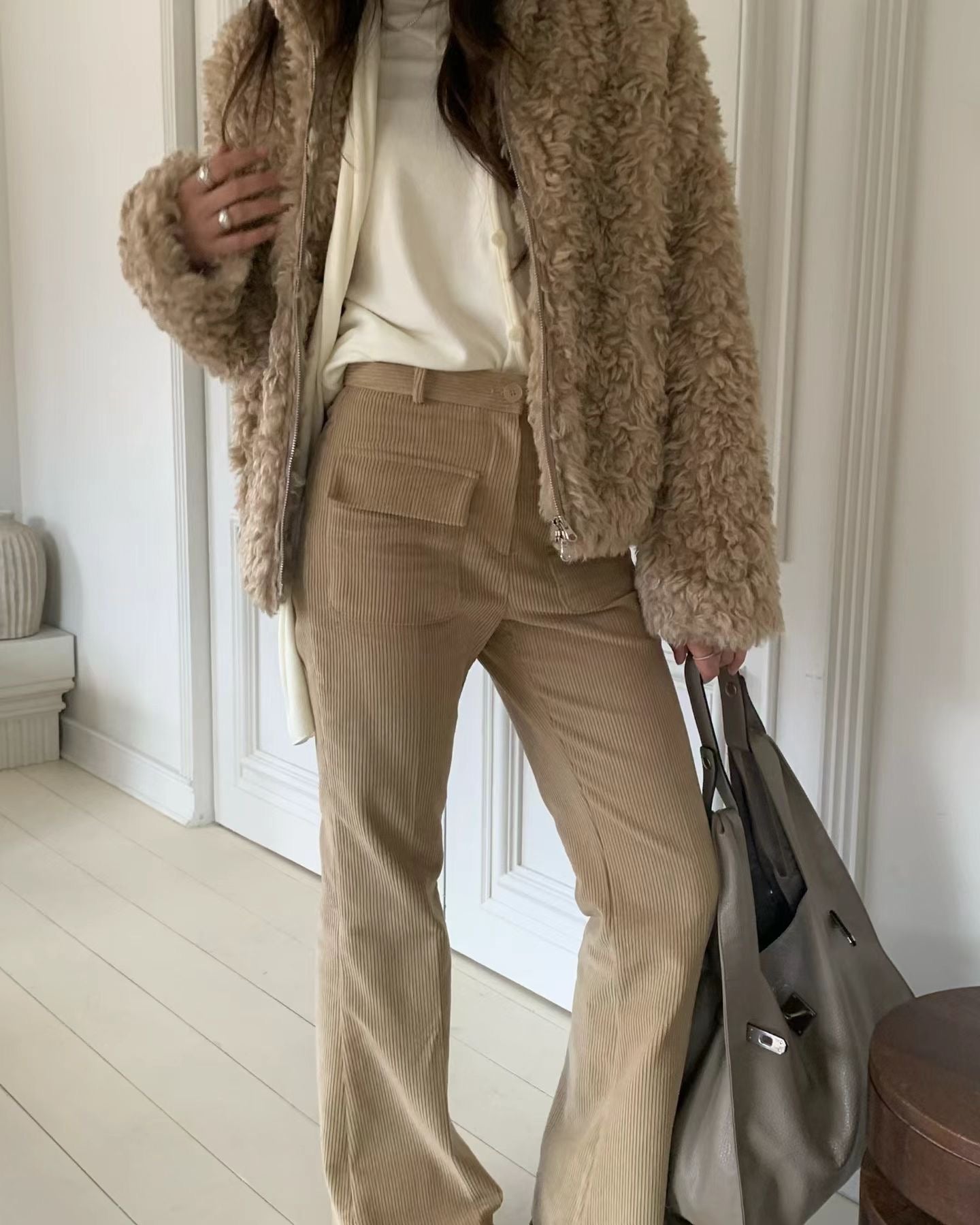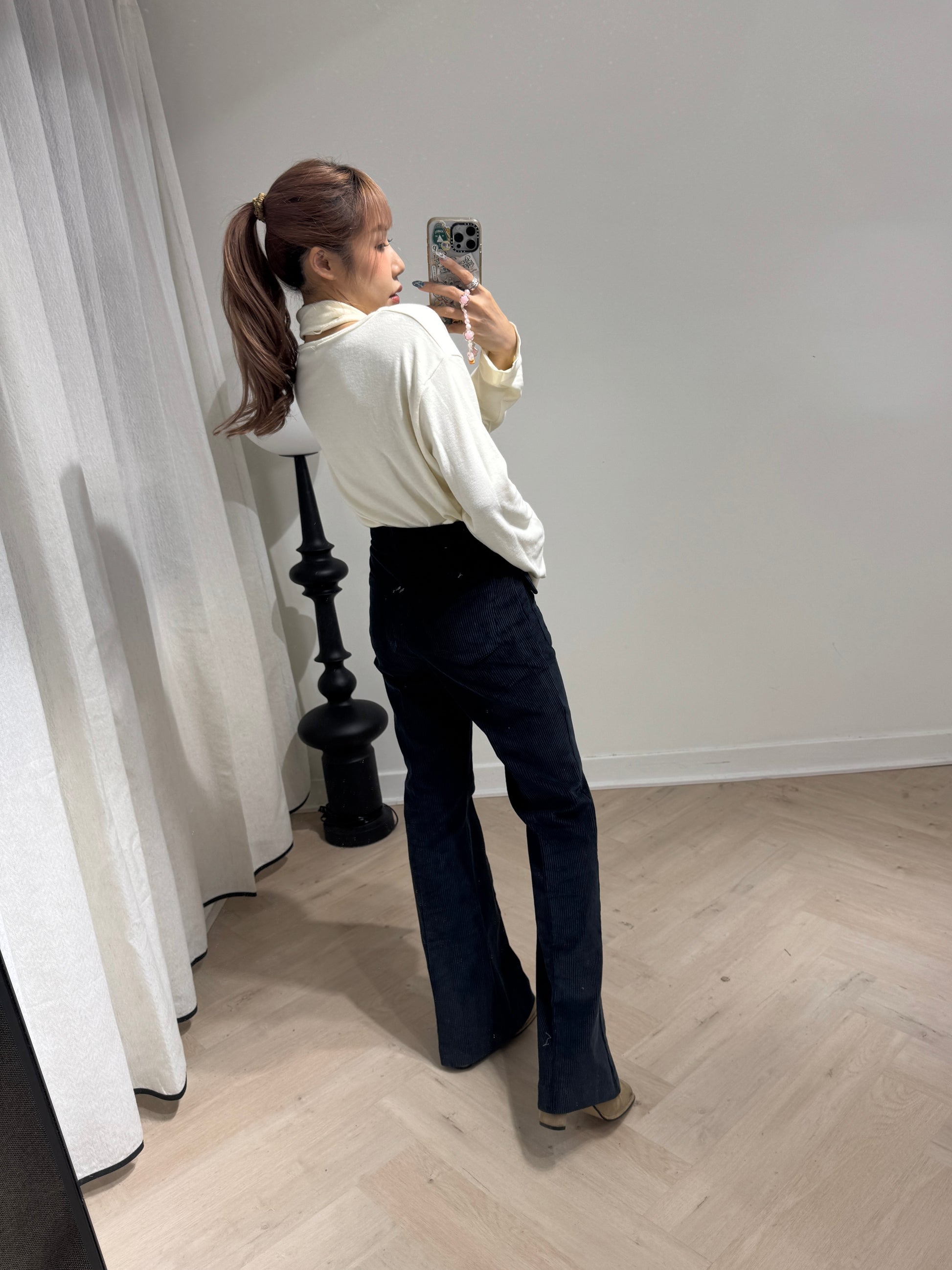 雙口袋燈芯絨喇叭長褲 ( 寶藍/杏 )