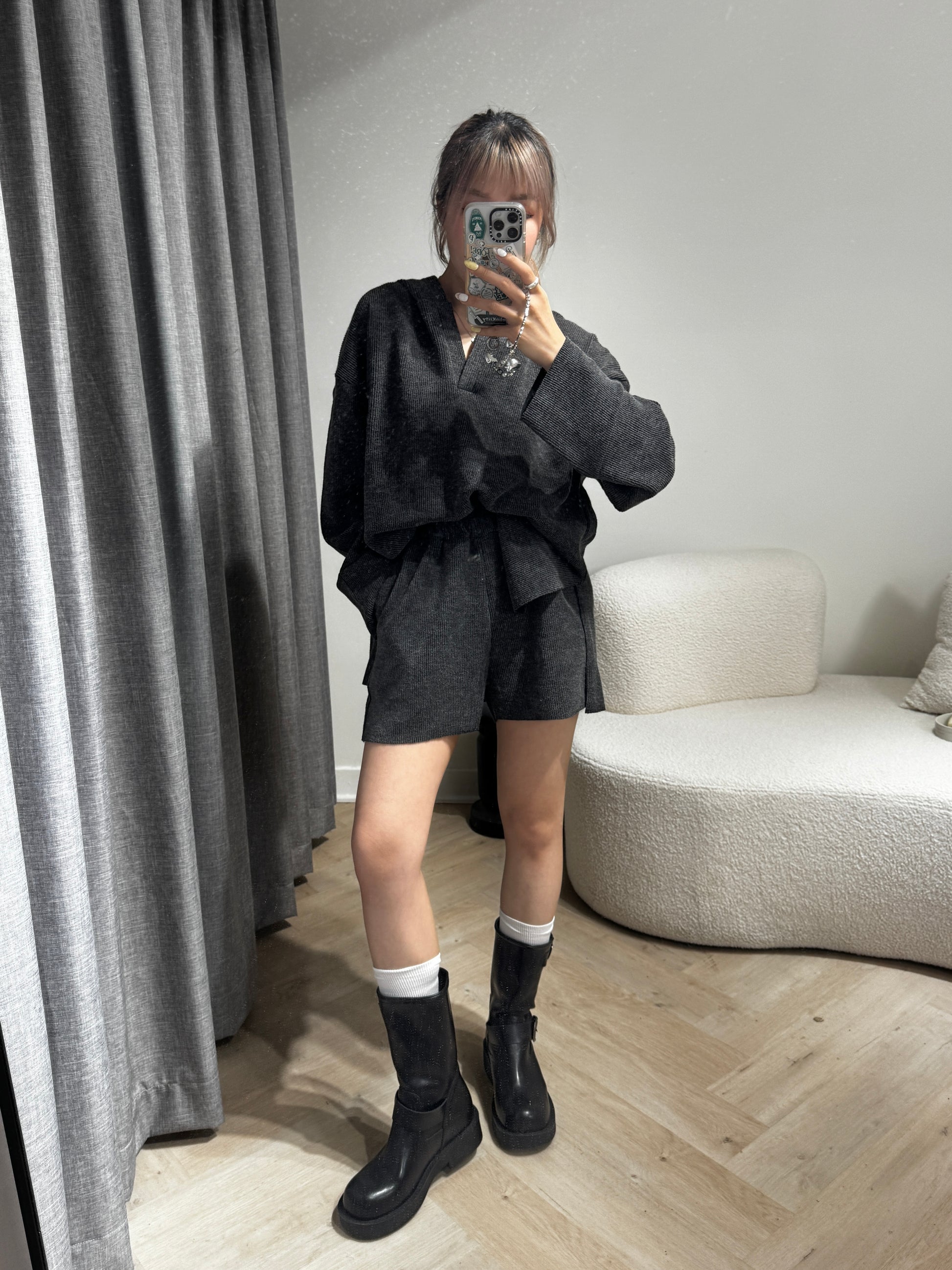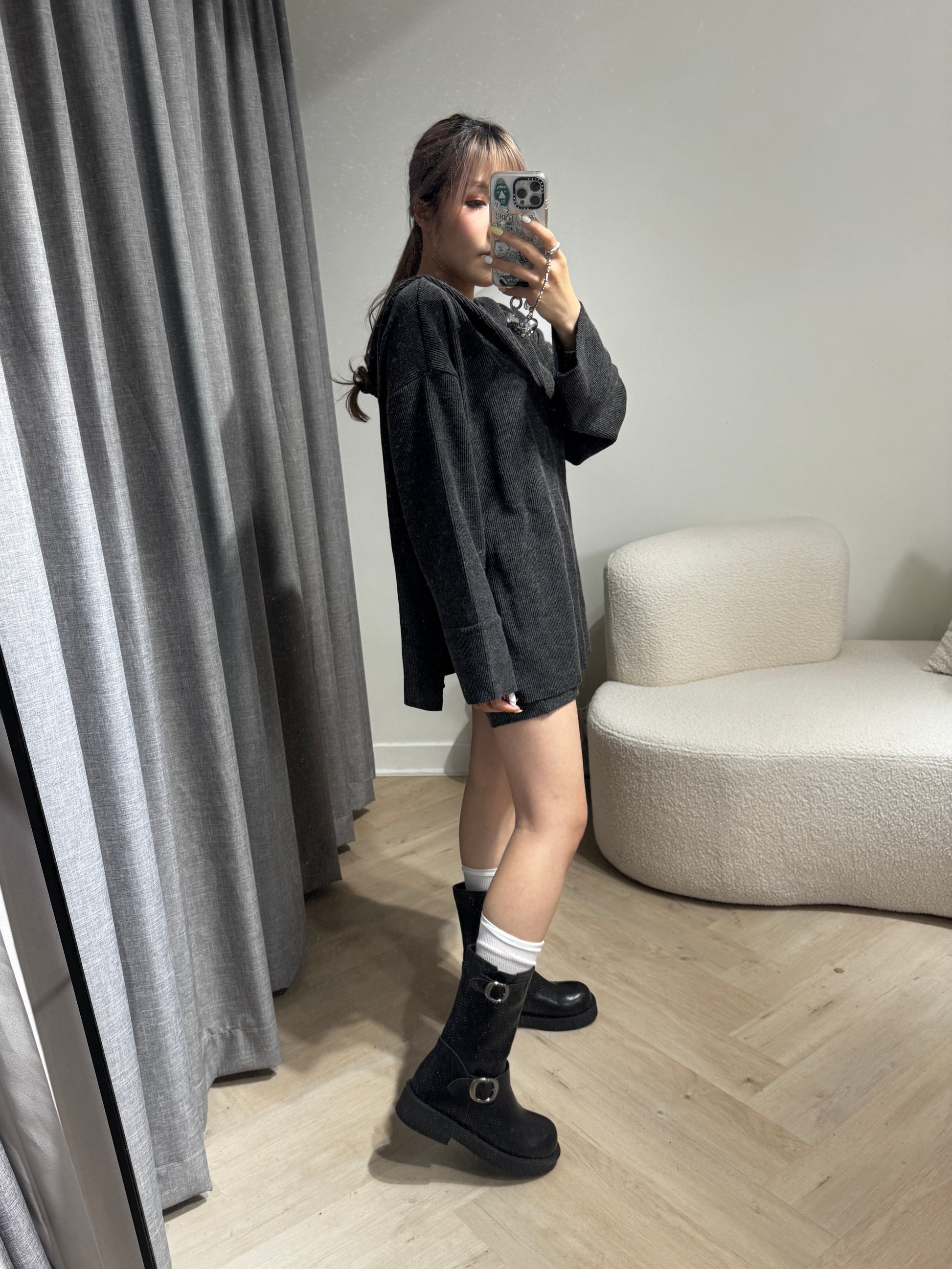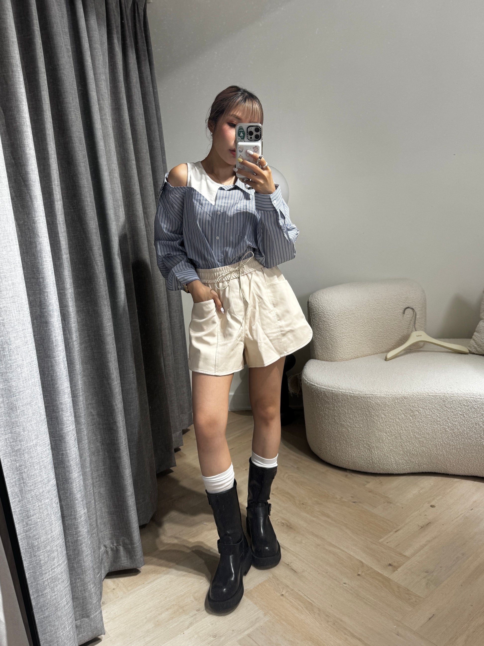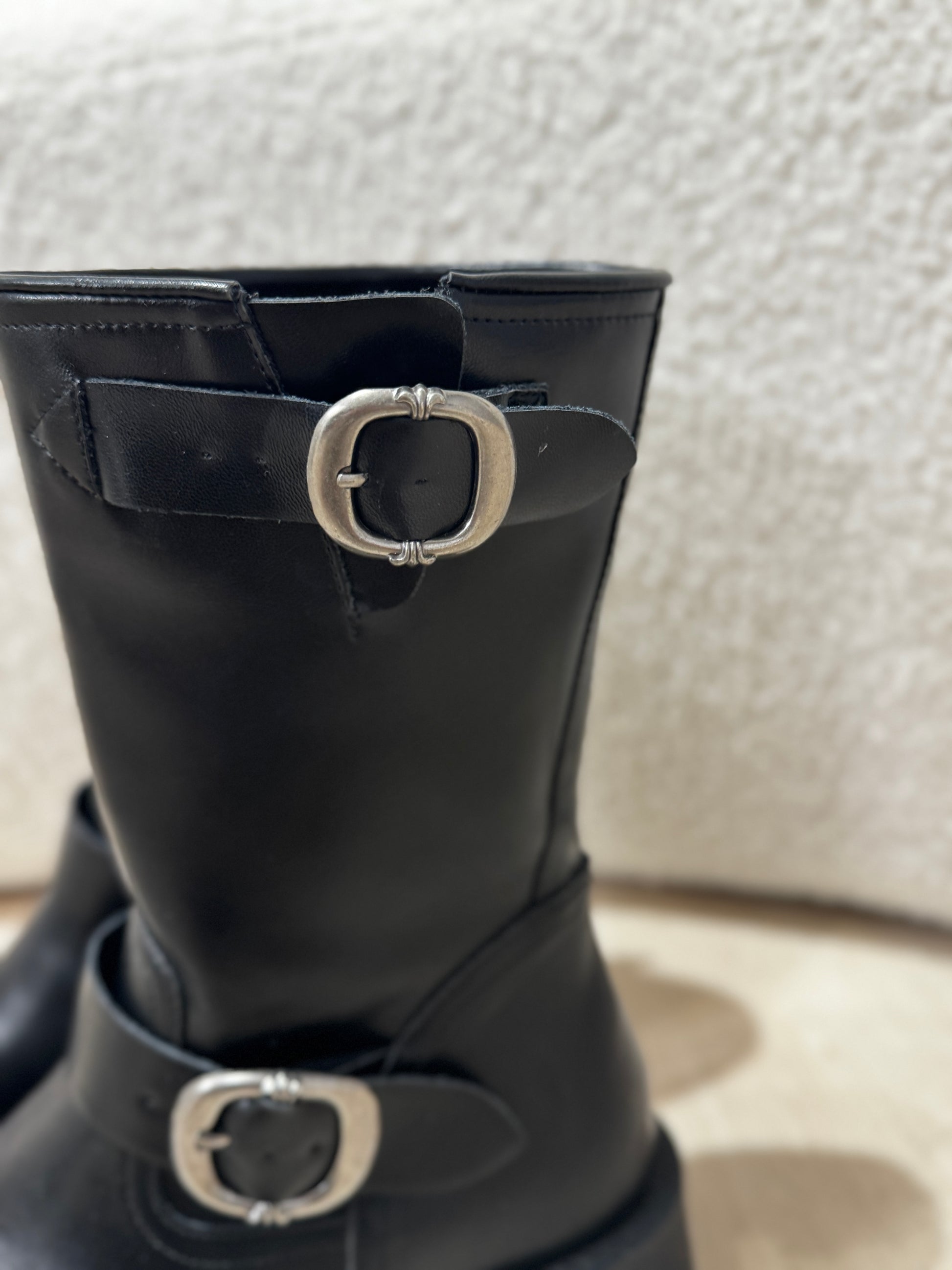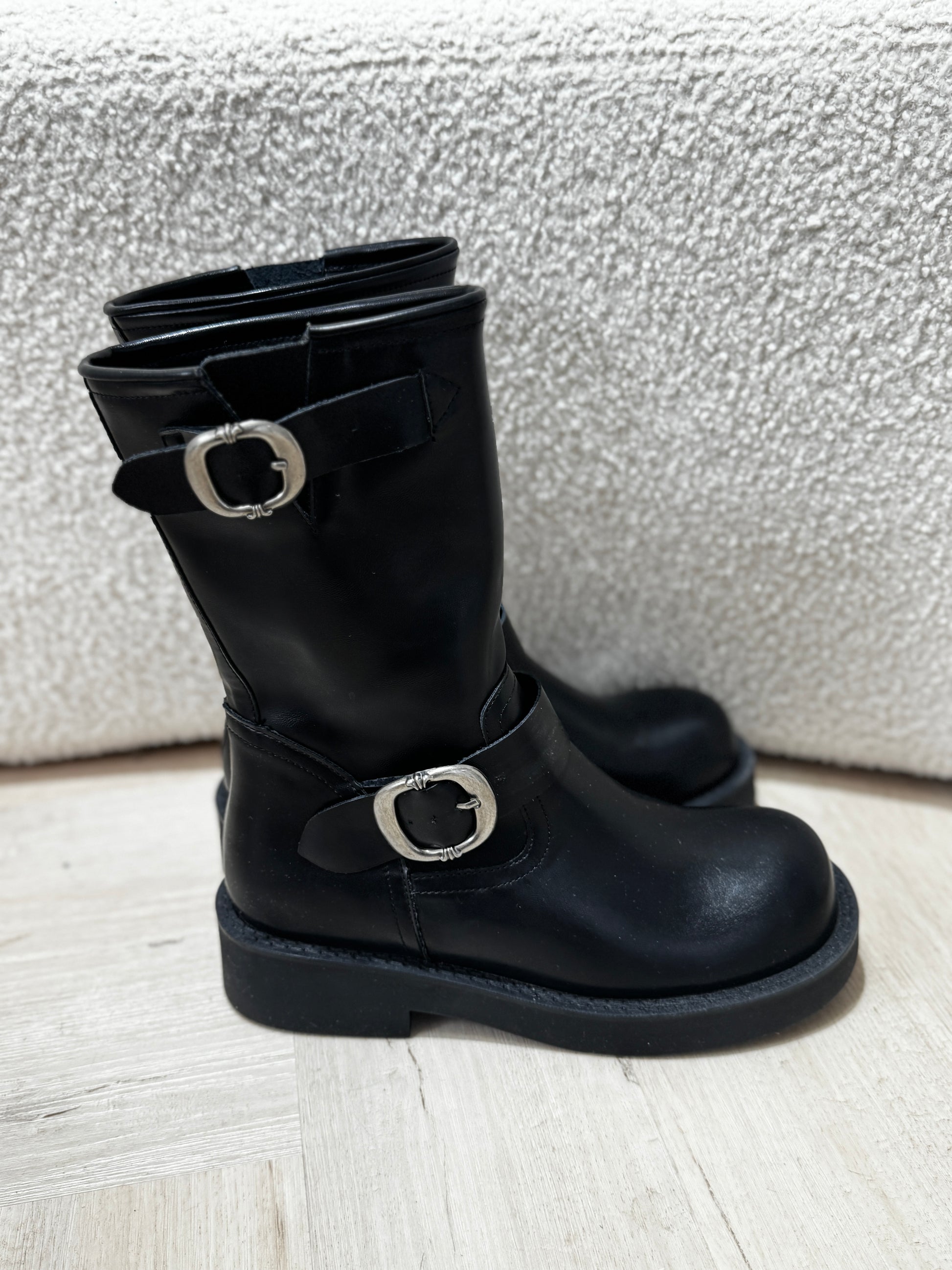雙扣真皮黑色中BOOT