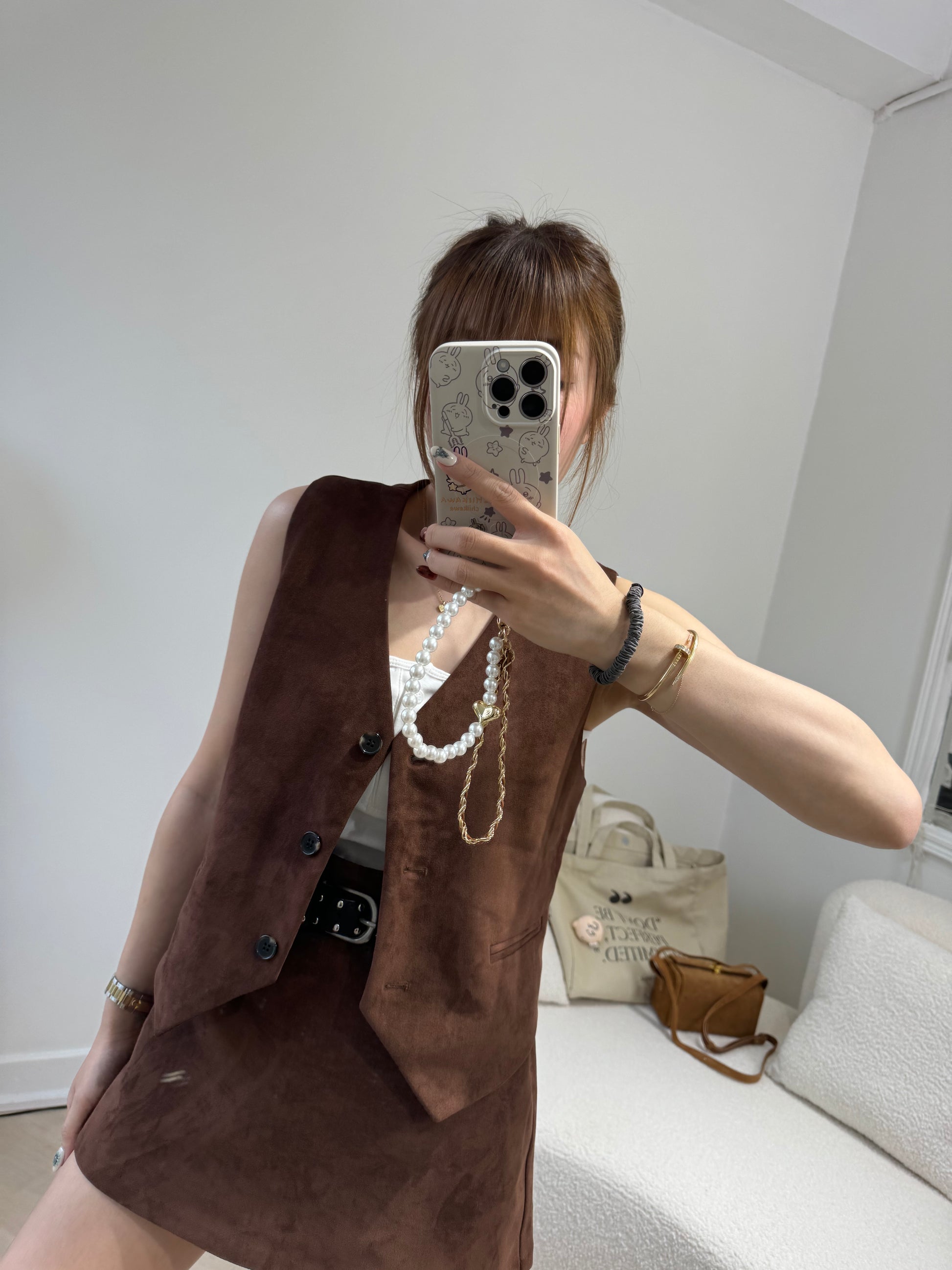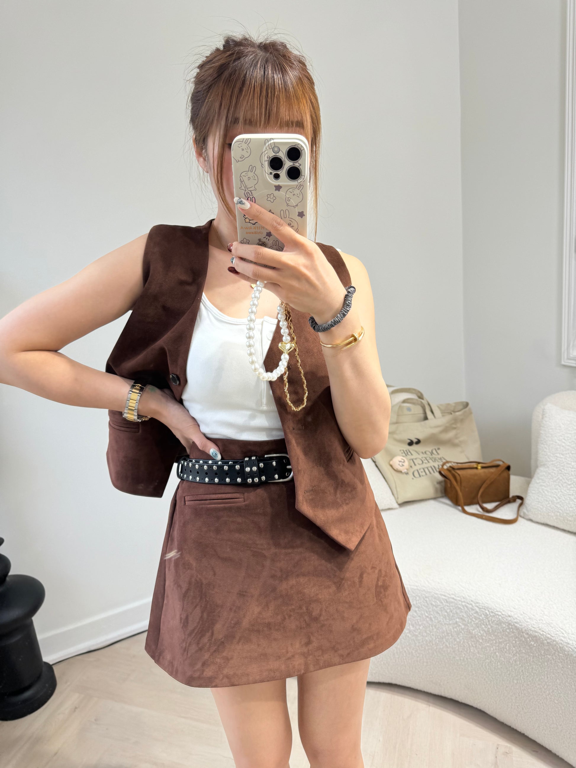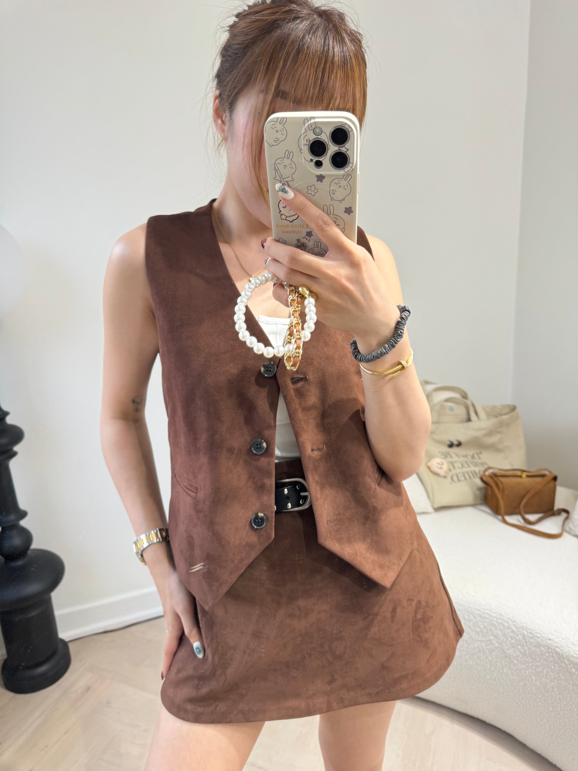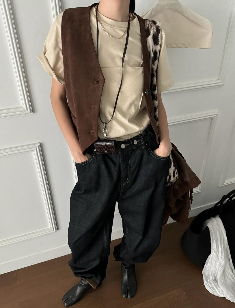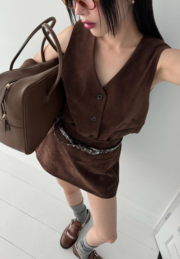 麂布馬甲背心外套 ( 黑/啡/彩藍 )